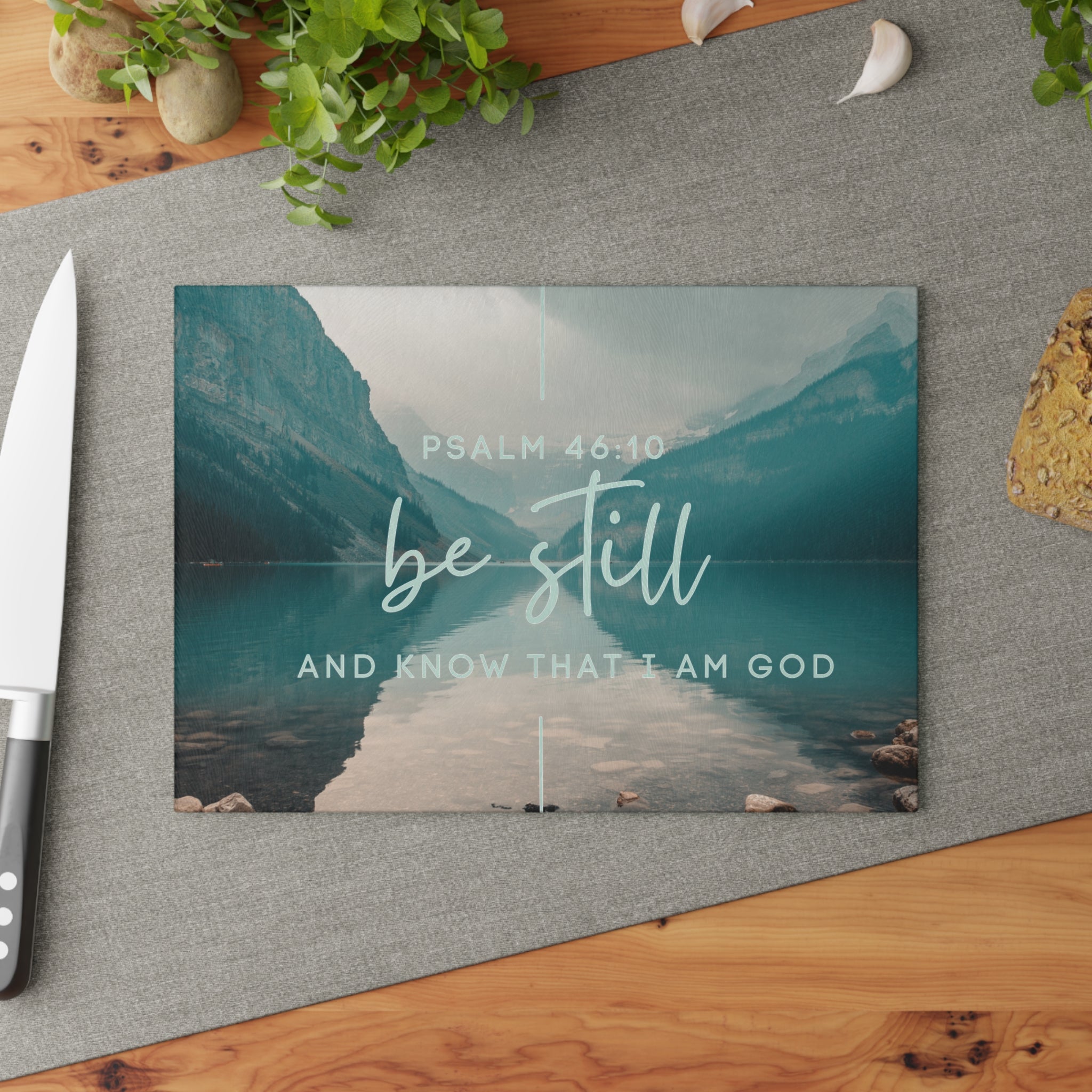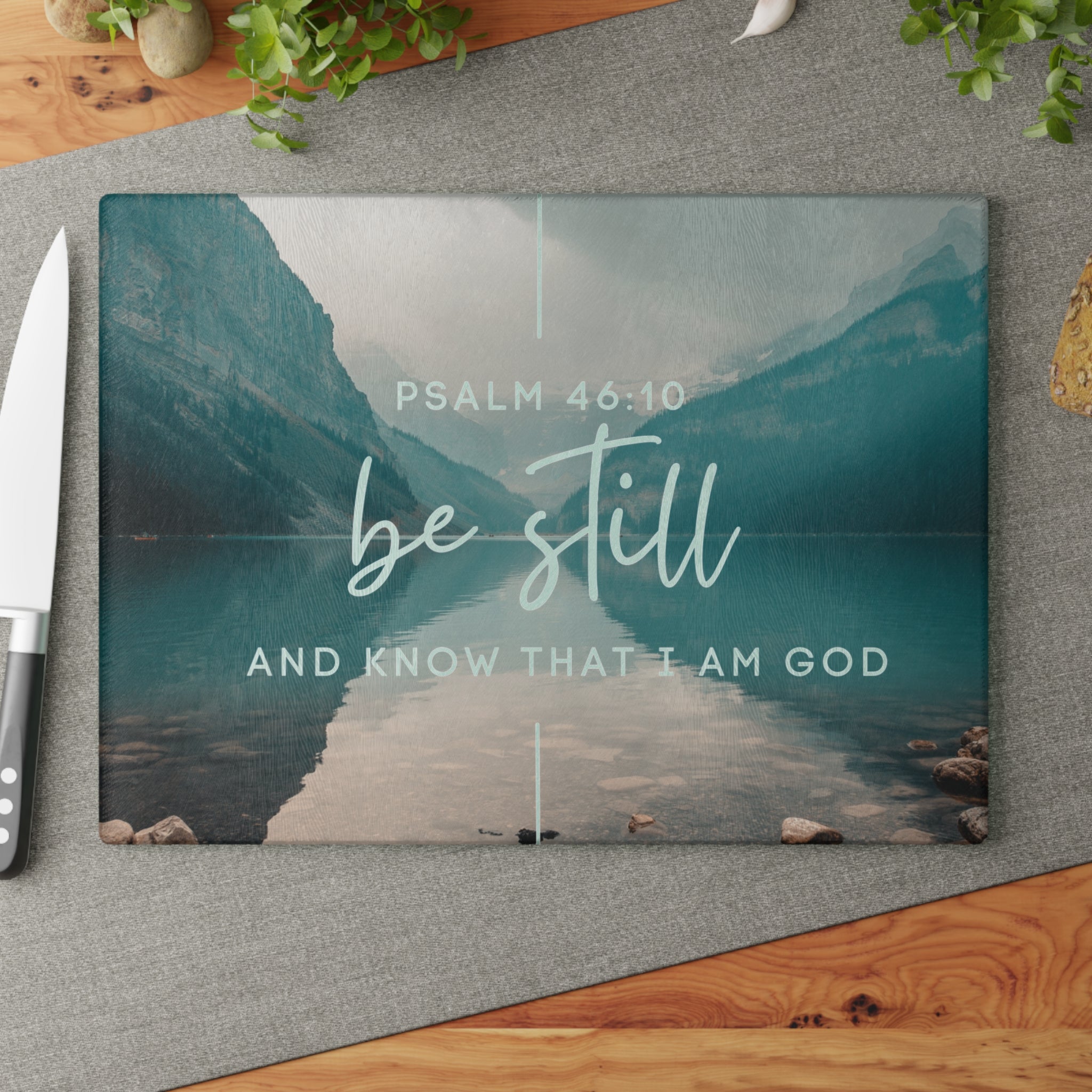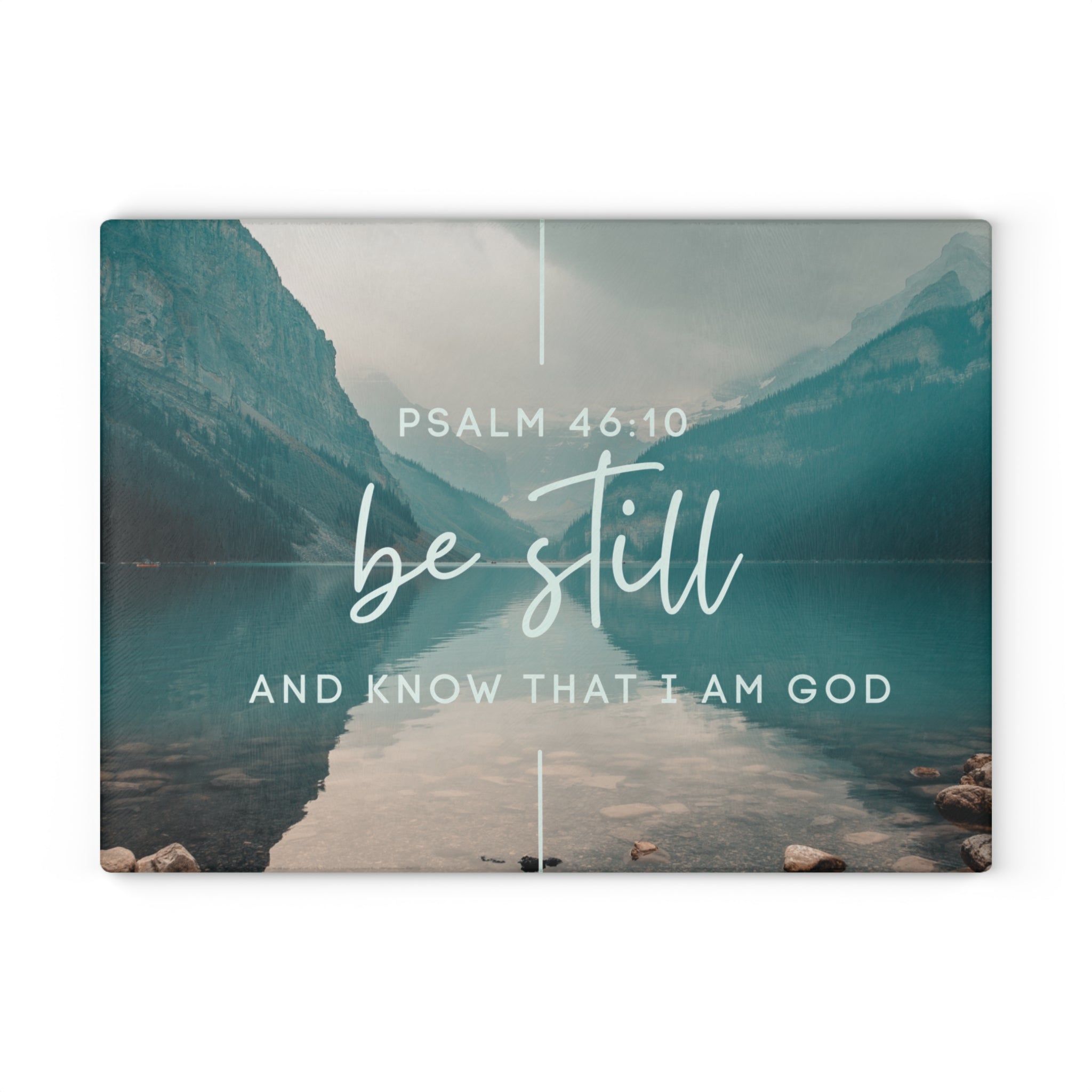 Be Still Psalm 46:10 Glass Cutting Board | Lakescape Scripture Kitchen Decor