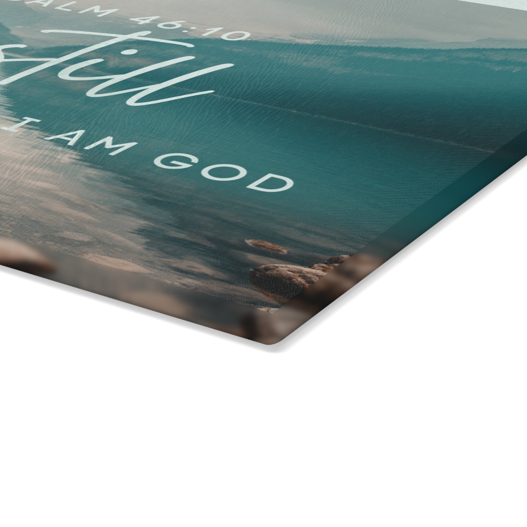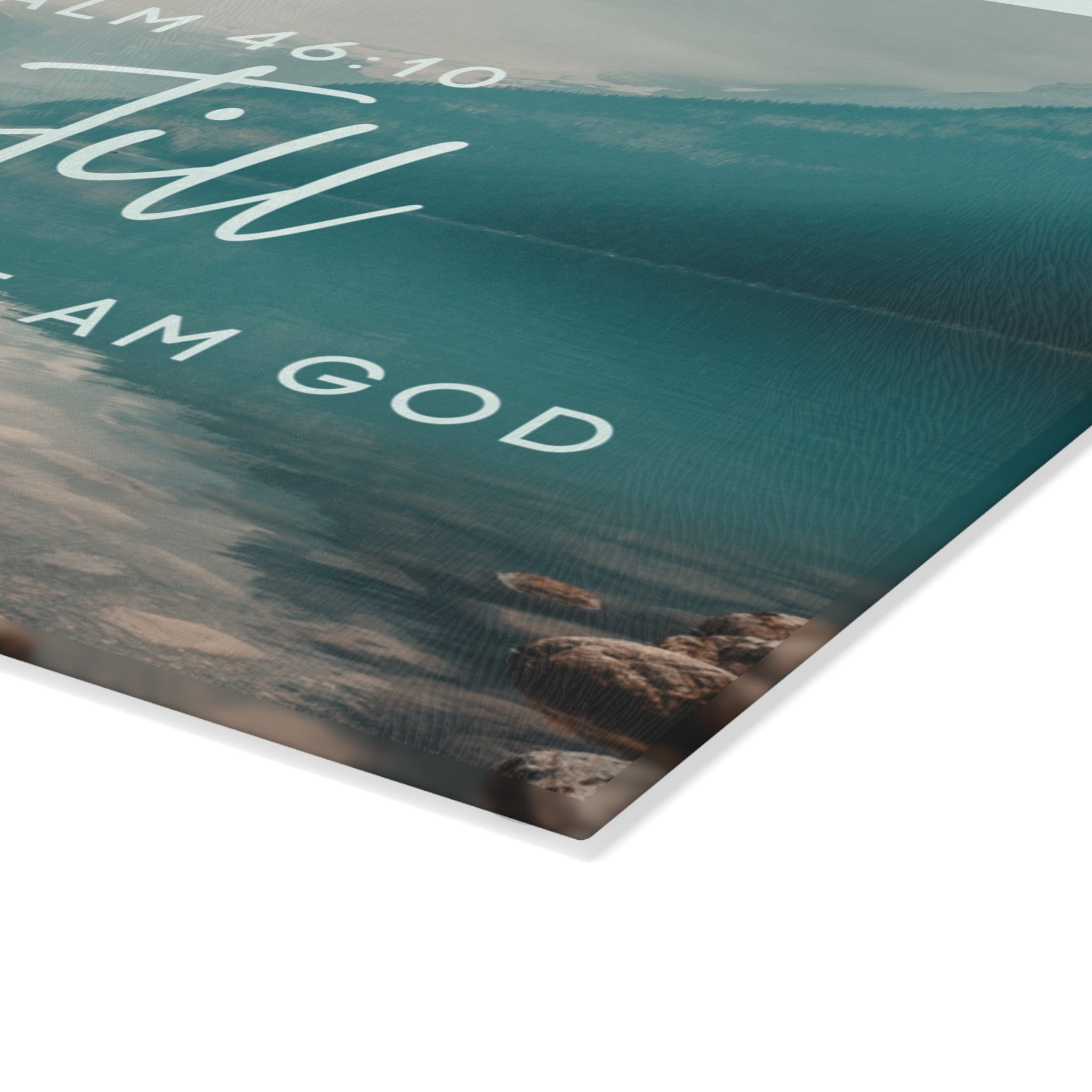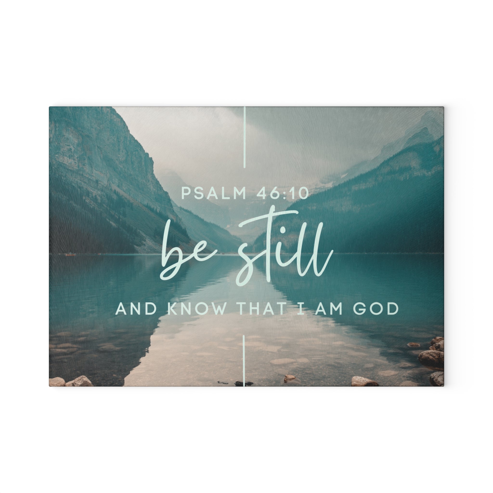 Be Still Psalm 46:10 Glass Cutting Board | Lakescape Scripture Kitchen Decor