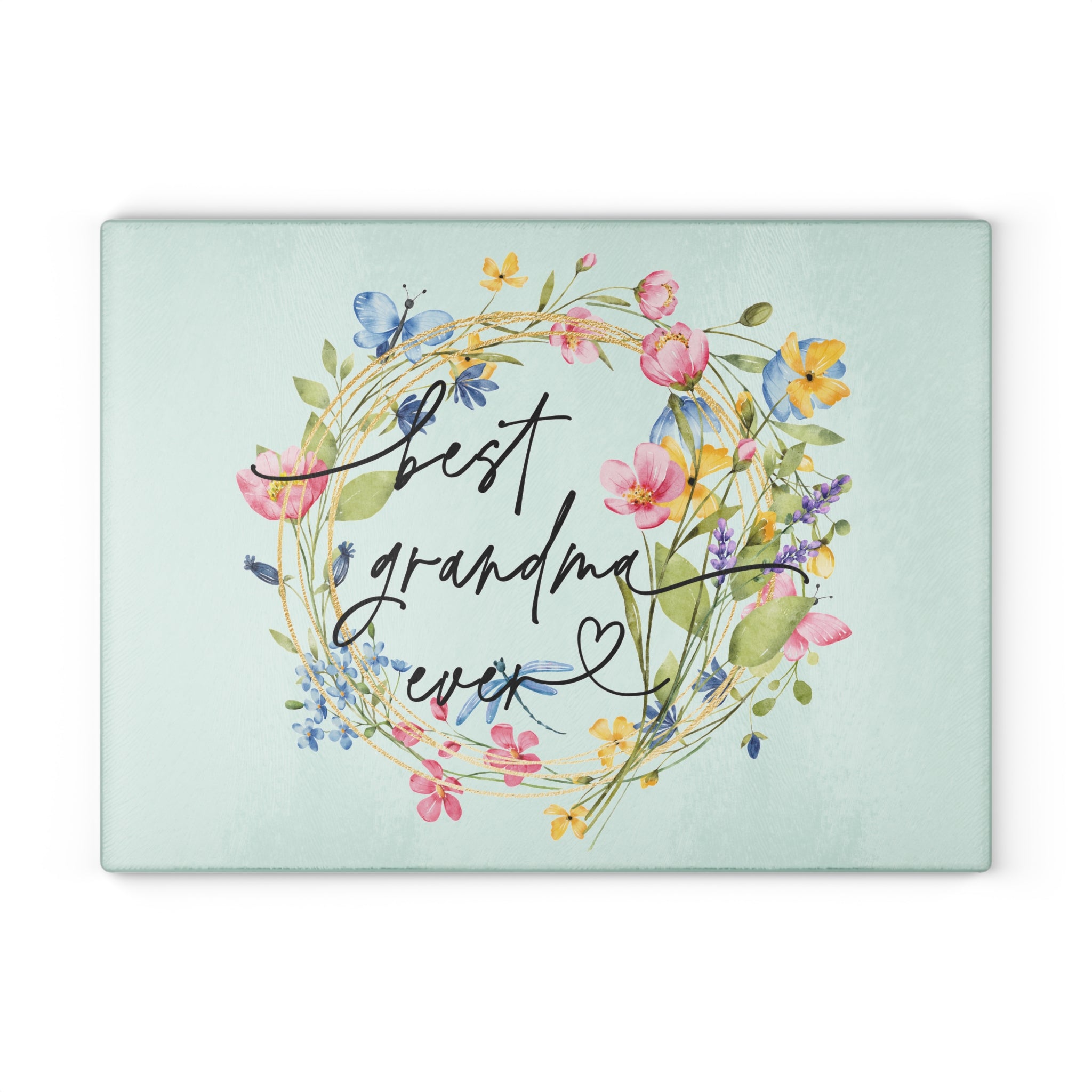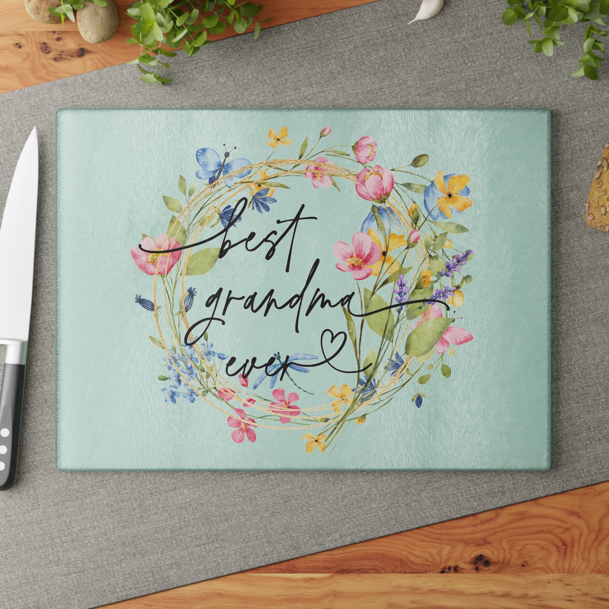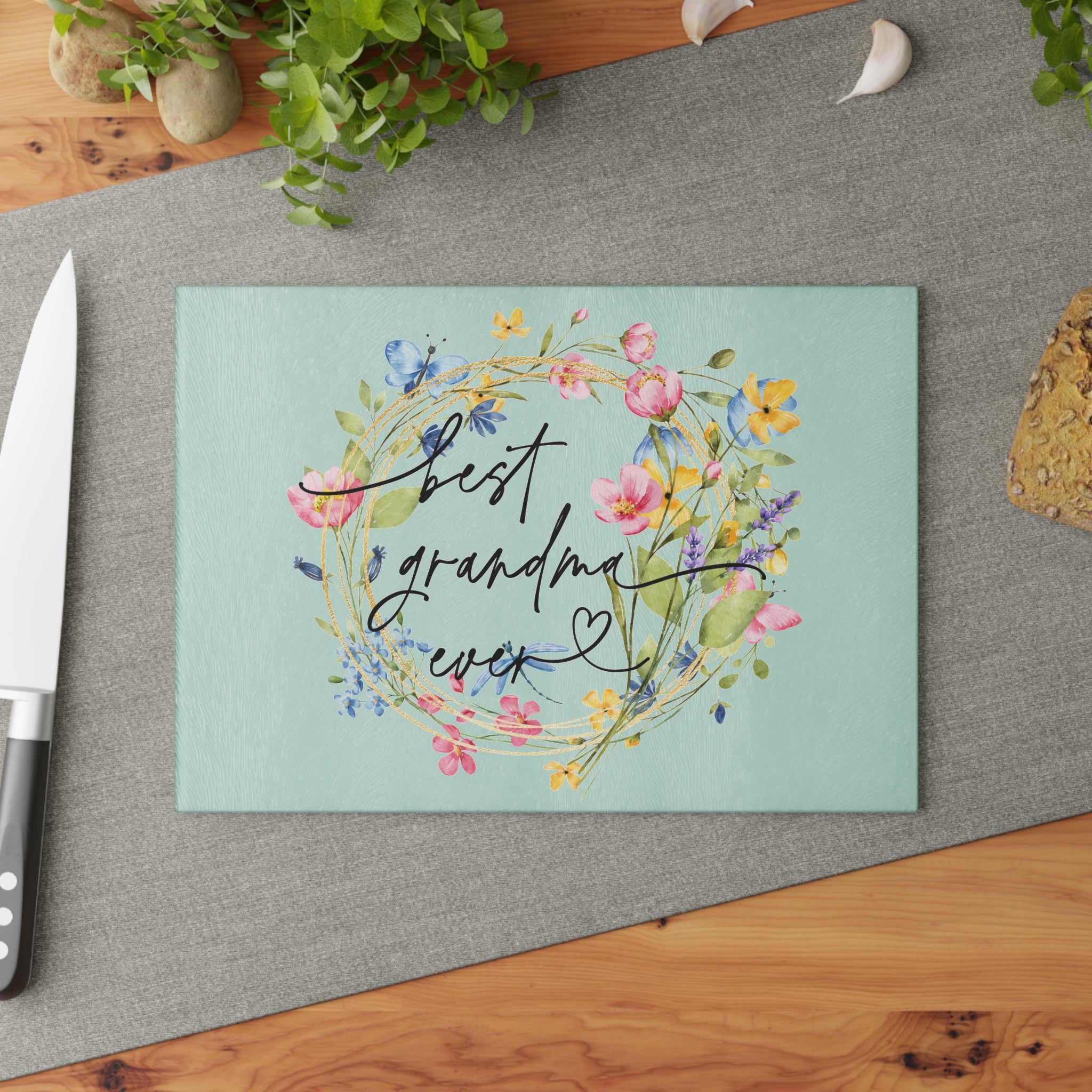 Glass Cutting Board Monogram Wild Flowers Hostess Gift Best Grandma Ever Gift Mother's Day Gift