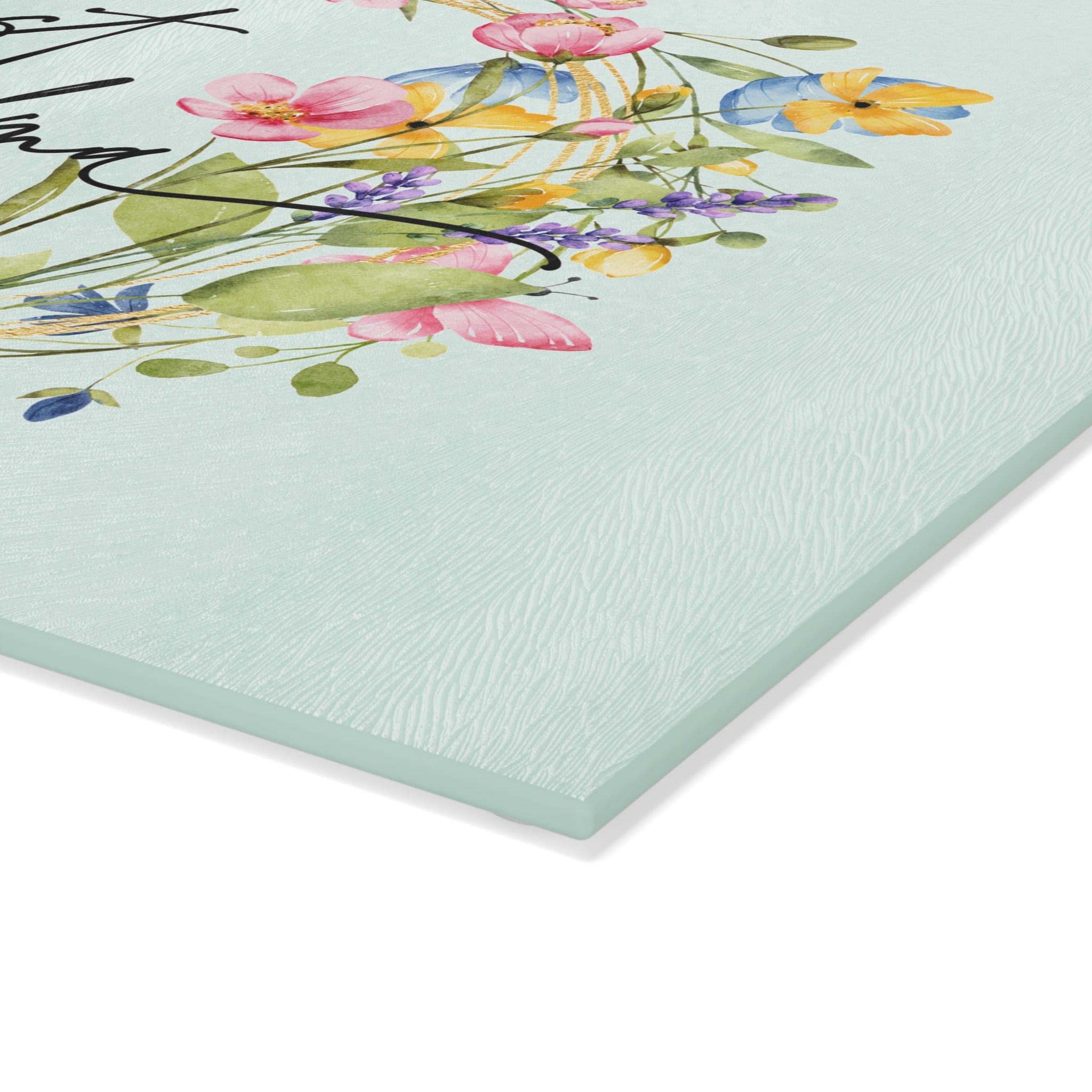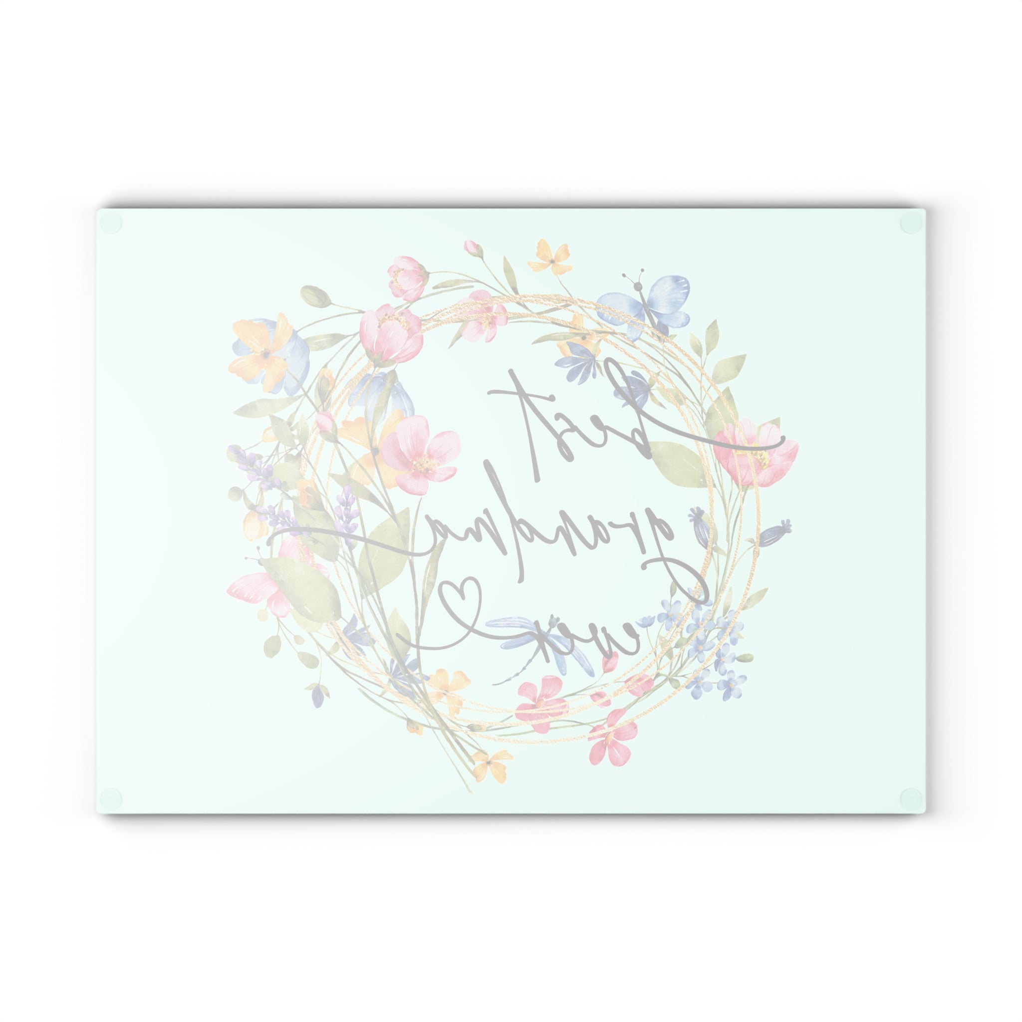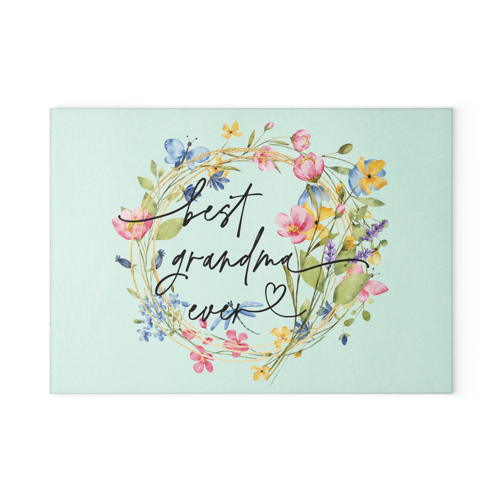 Glass Cutting Board Monogram Wild Flowers Hostess Gift Best Grandma Ever Gift Mother's Day Gift
