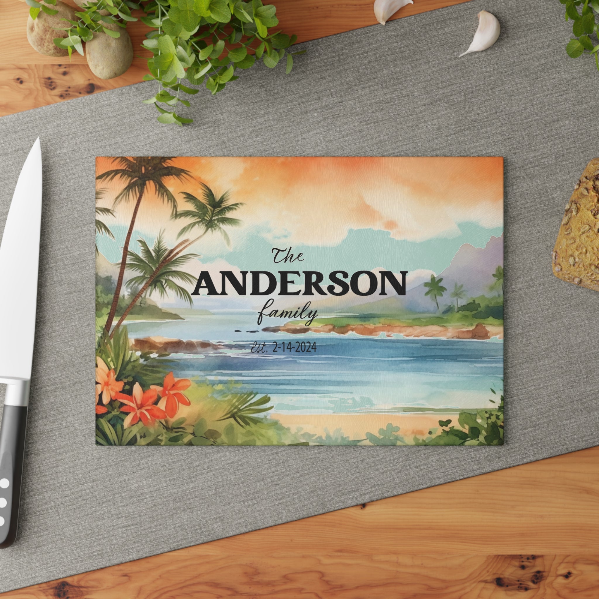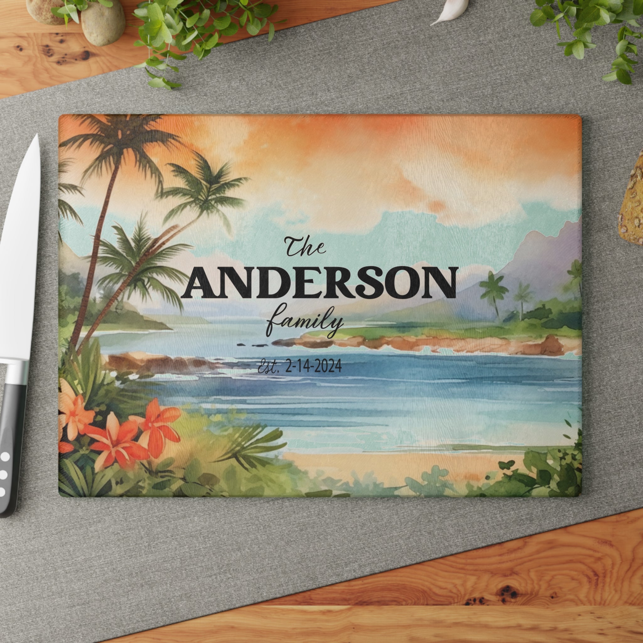 Bring a touch of character into any kitchen with this custom glass cutting board. Its tampered glass material is robust and helps prepare many a tasty meal for a long time to come. The textured surface makes it an ideal chopping, slicing, and dicing area. Available in two sizes: 8" x 11" and 11" x 15". .: Comes in 2 sizes: (8″ × 11″) (20.3cm × 27.9cm) or (11″ × 15″) (27.9cm × 38.1cm) .: Tempered glass material with a textured surface .: Four rubber dots for additional stability .: Hand wash recommended