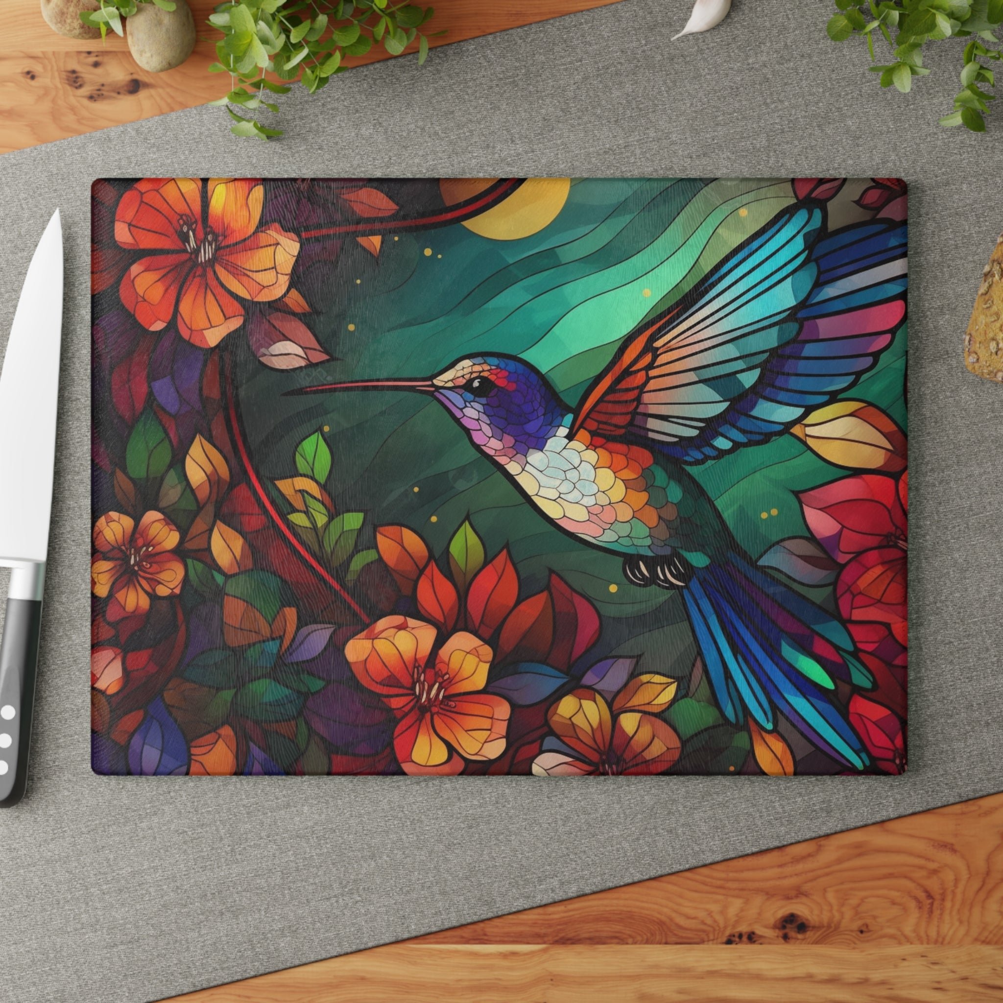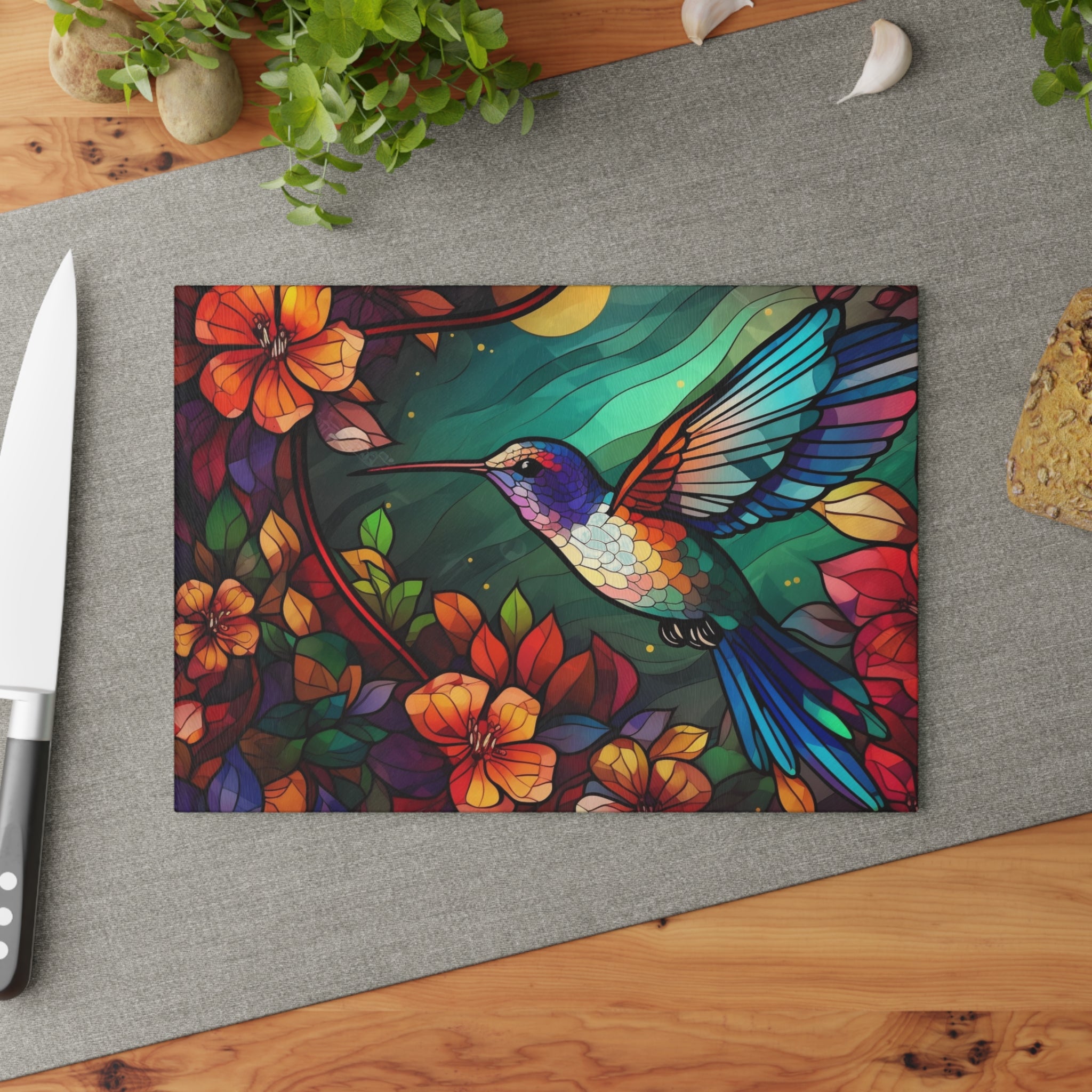 Bring a touch of character into any kitchen with this custom glass cutting board. Its tampered glass material is robust and helps prepare many a tasty meal for a long time to come. The textured surface makes it an ideal chopping, slicing, and dicing area. Available in two sizes: 8" x 11" and 11" x 15".
