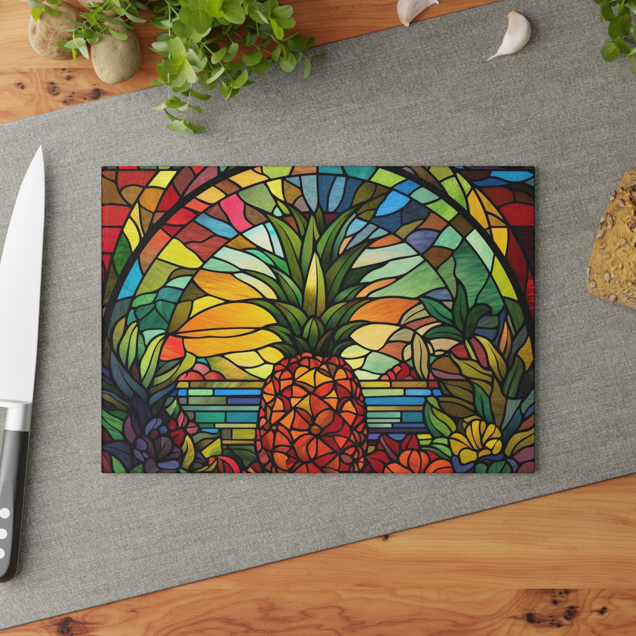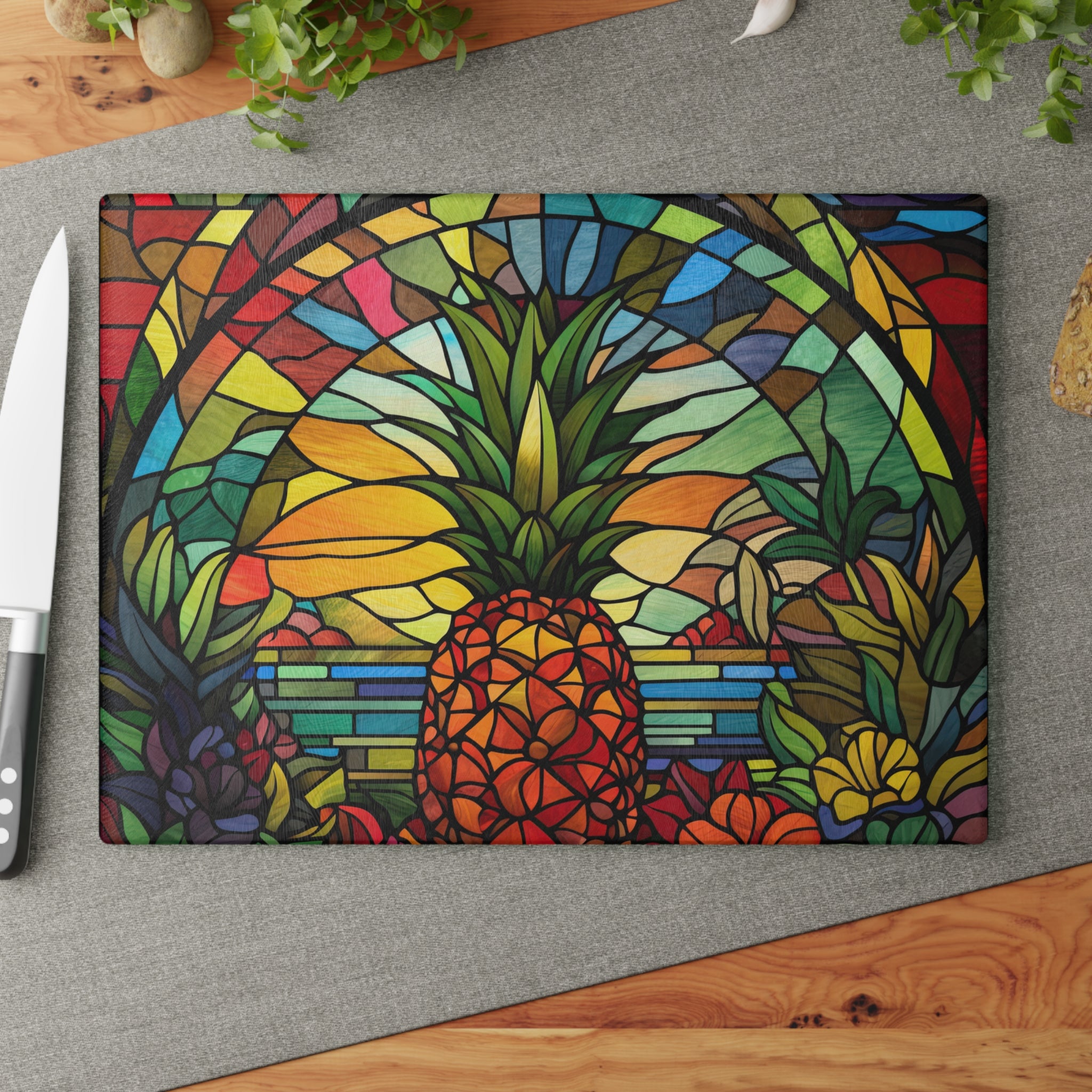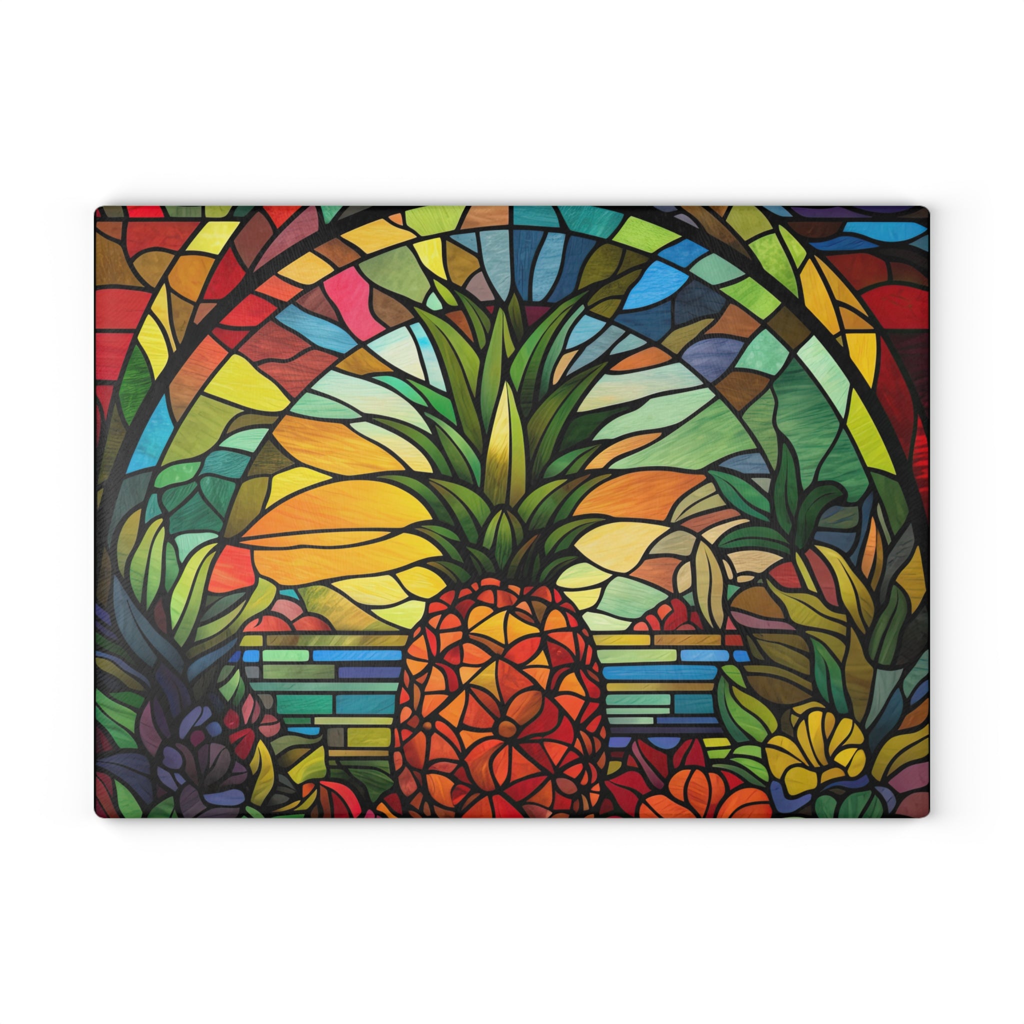Glass Cutting Board Stained Glass Look Pineapple Beach Perfect Housewarming Gift Glass Charcuterie Board