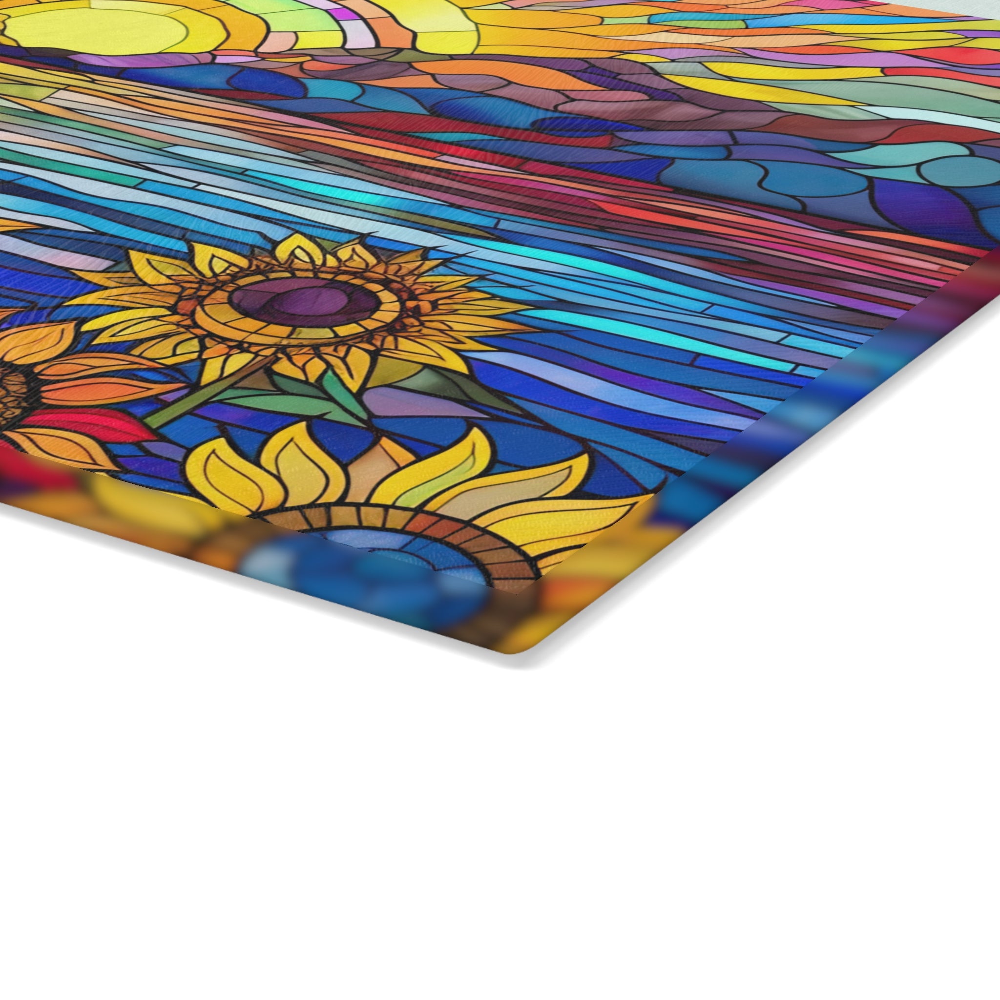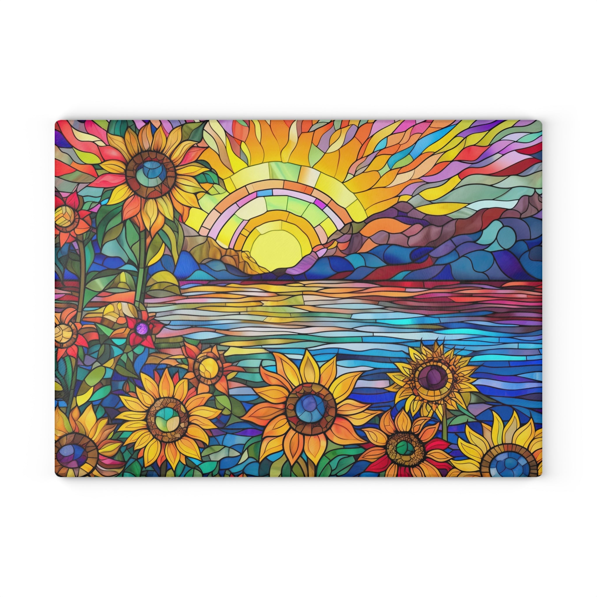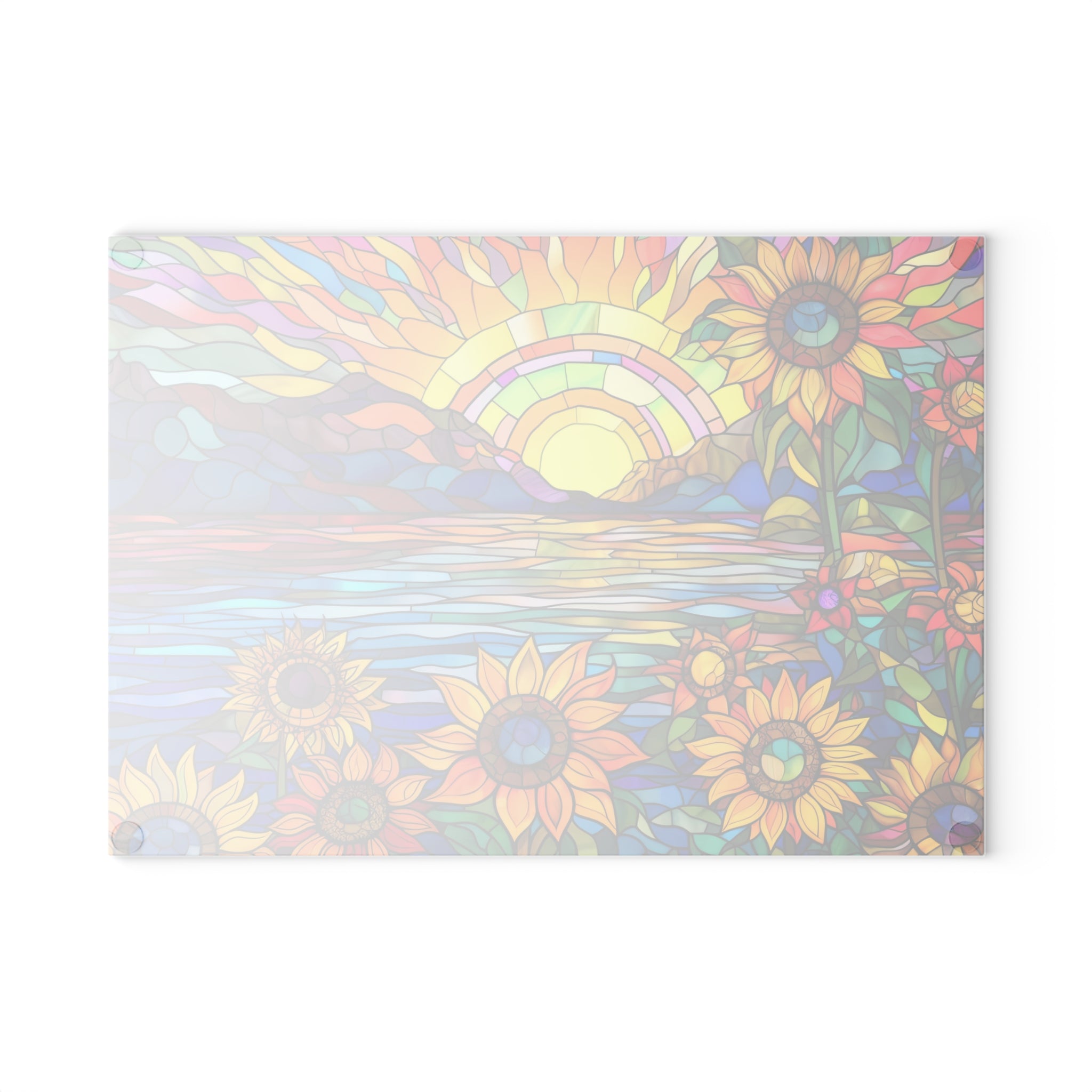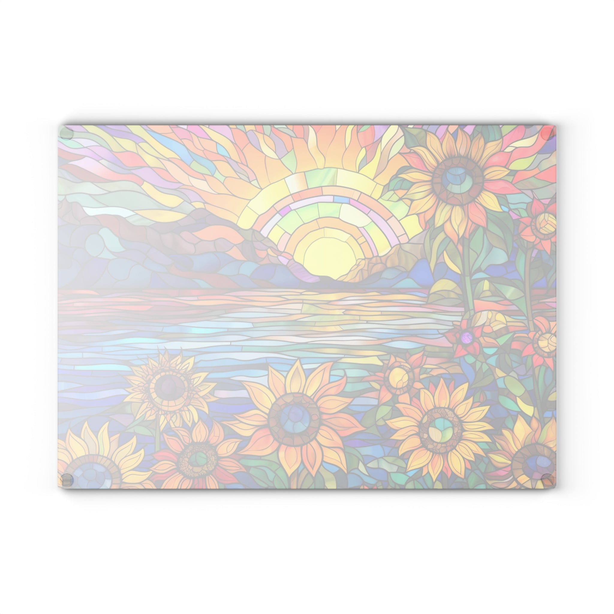 Glass Cutting Board Stained Glass Look Sunflower Sunrise View Perfect Housewarming Gift Glass Charcuterie Board