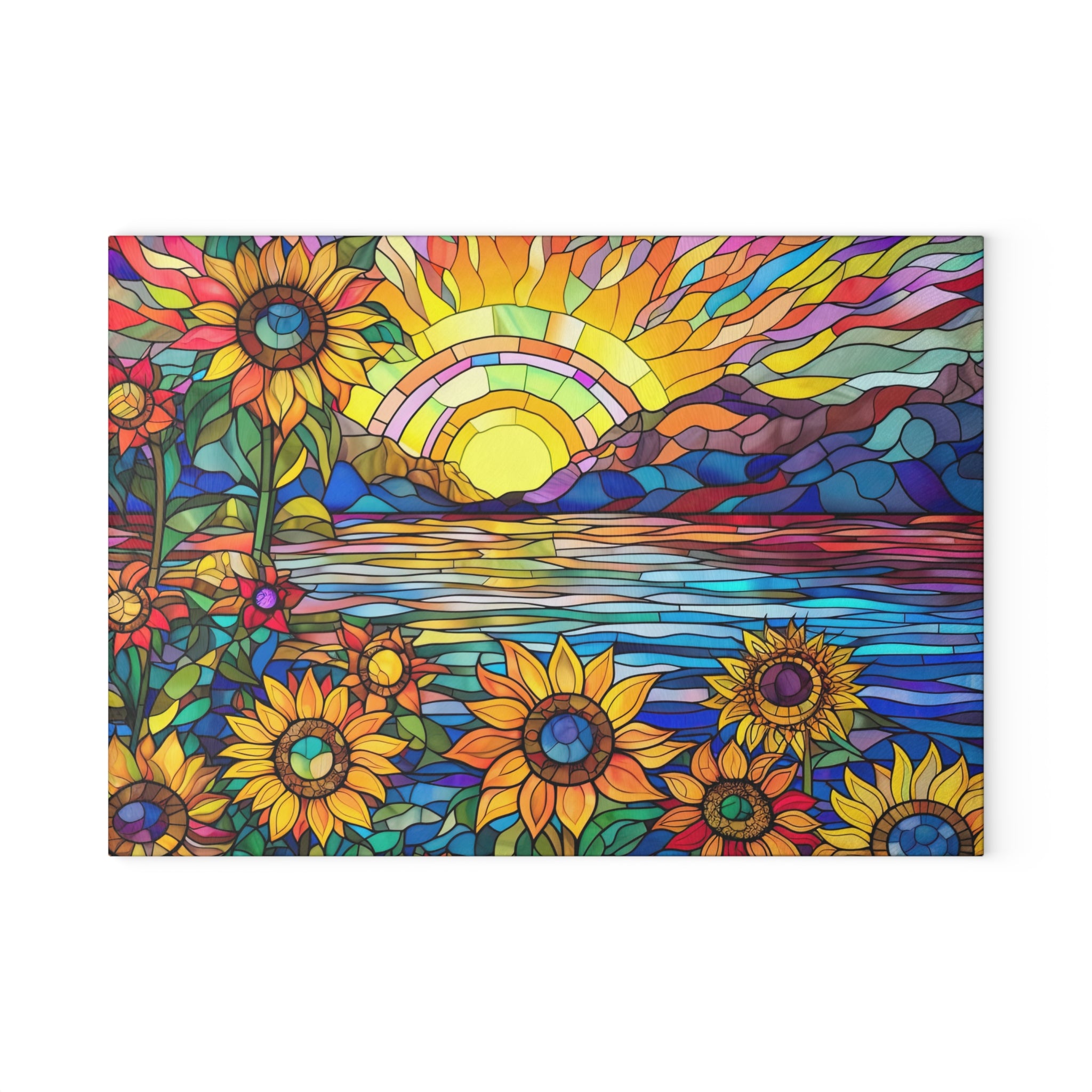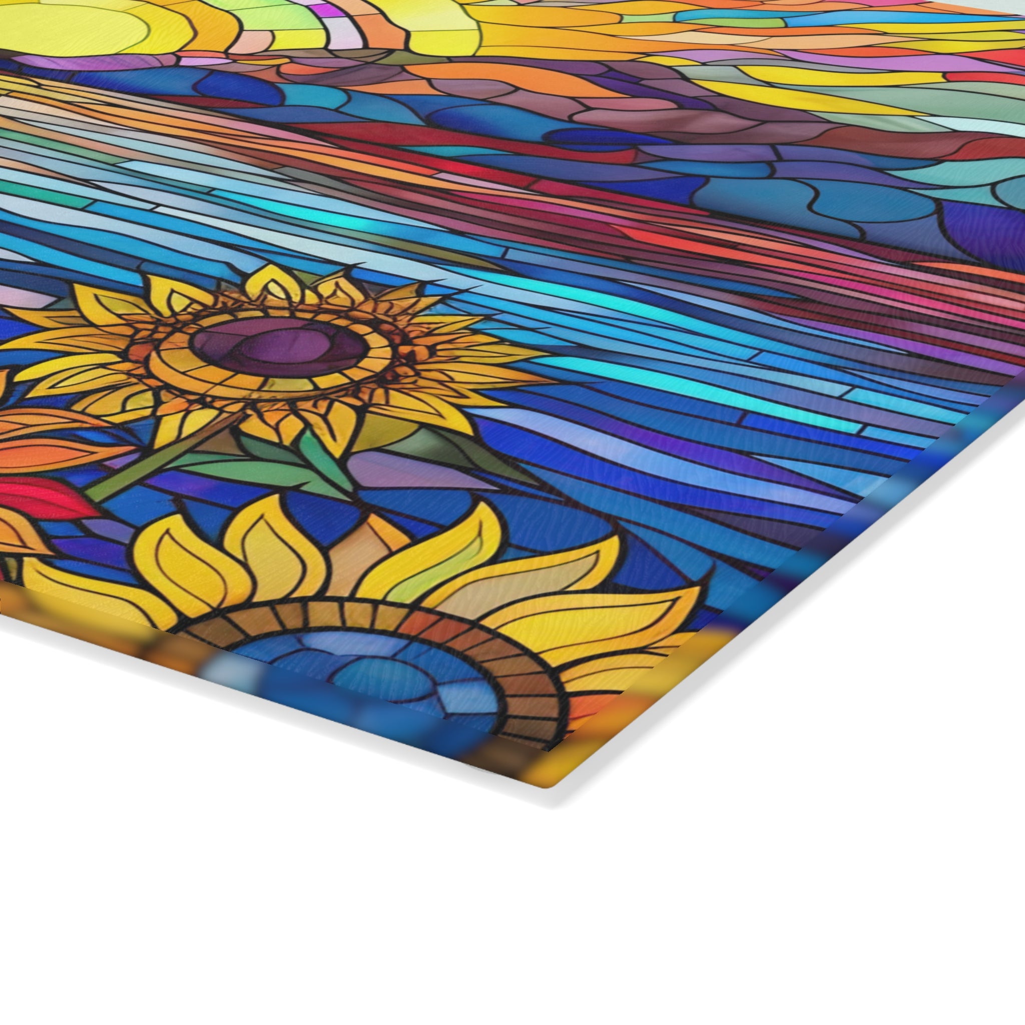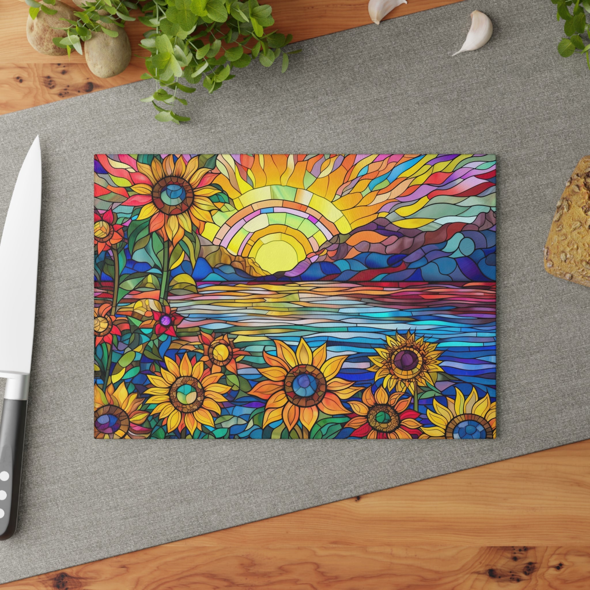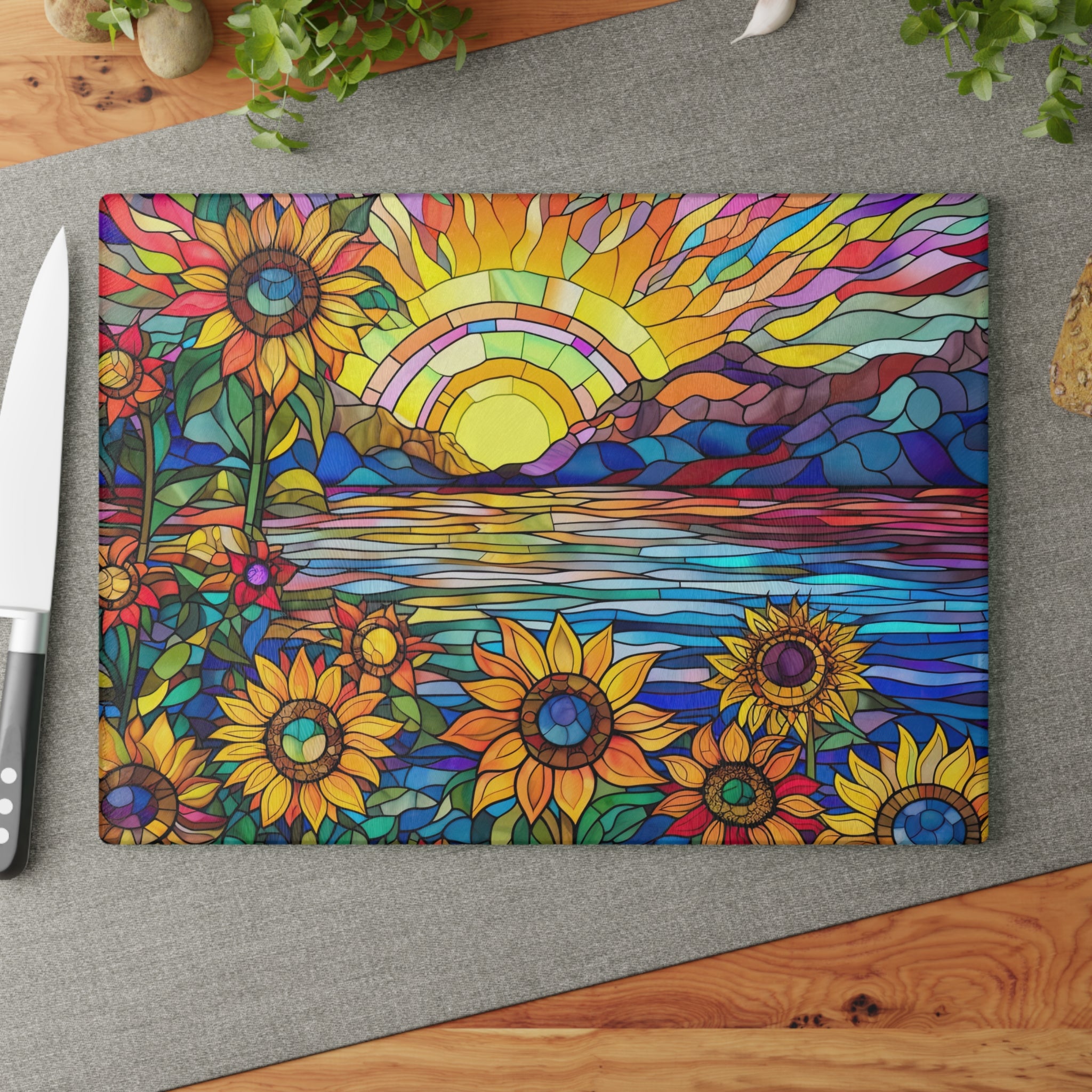 Glass Cutting Board Stained Glass Look Sunflower Sunrise View Perfect Housewarming Gift Glass Charcuterie Board