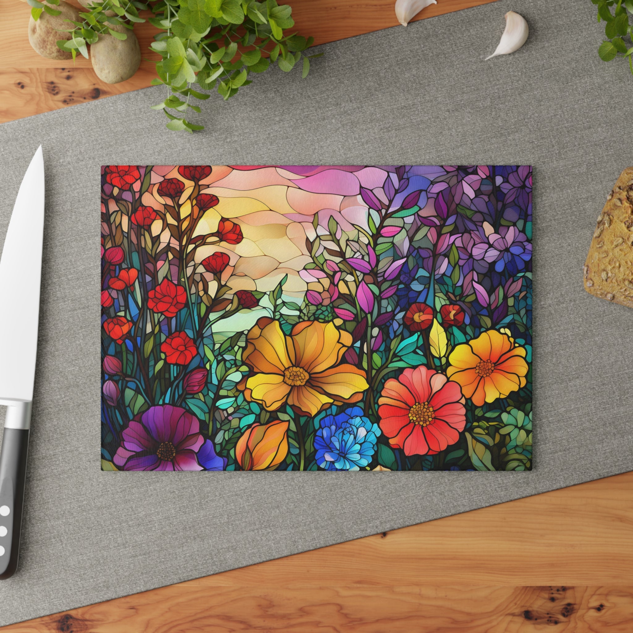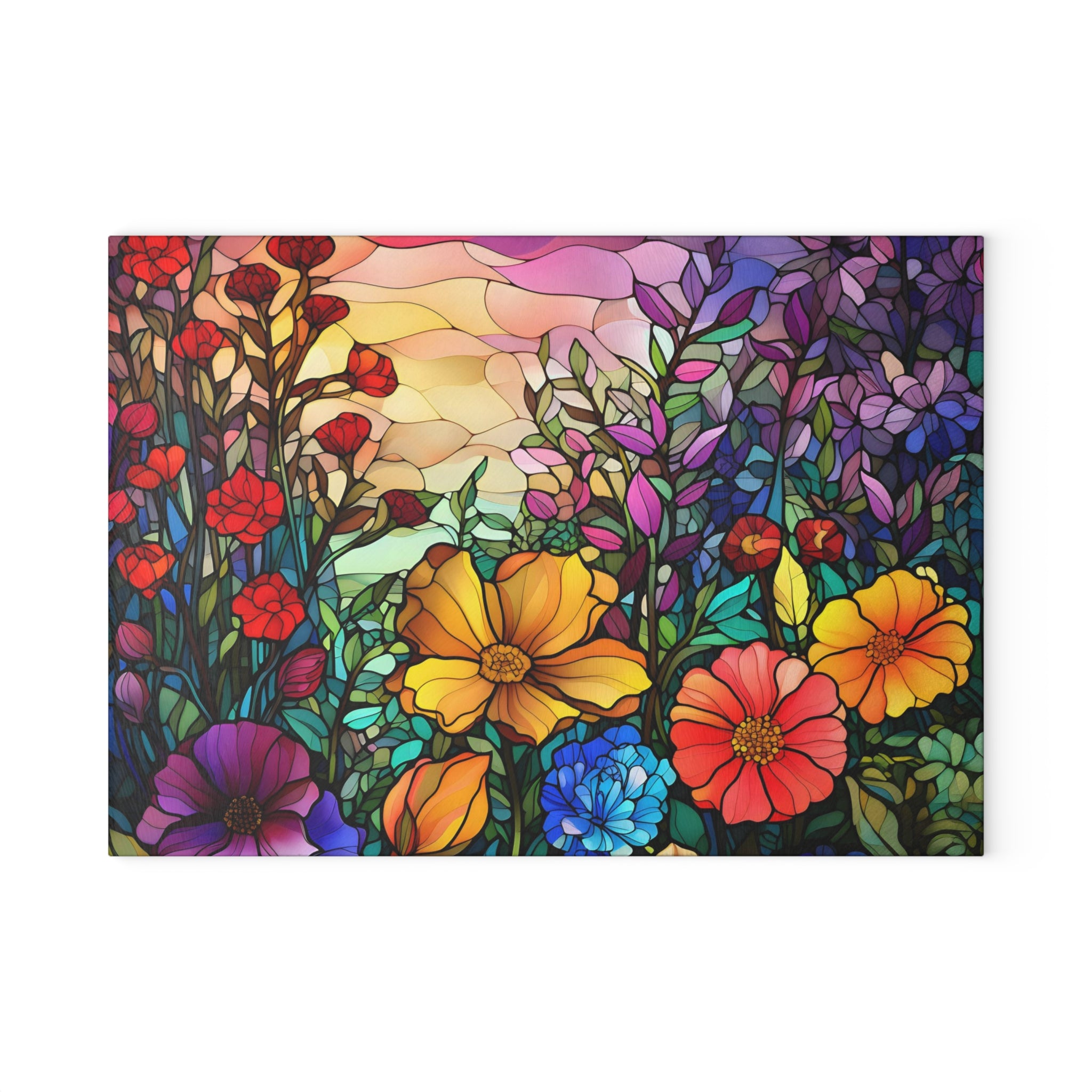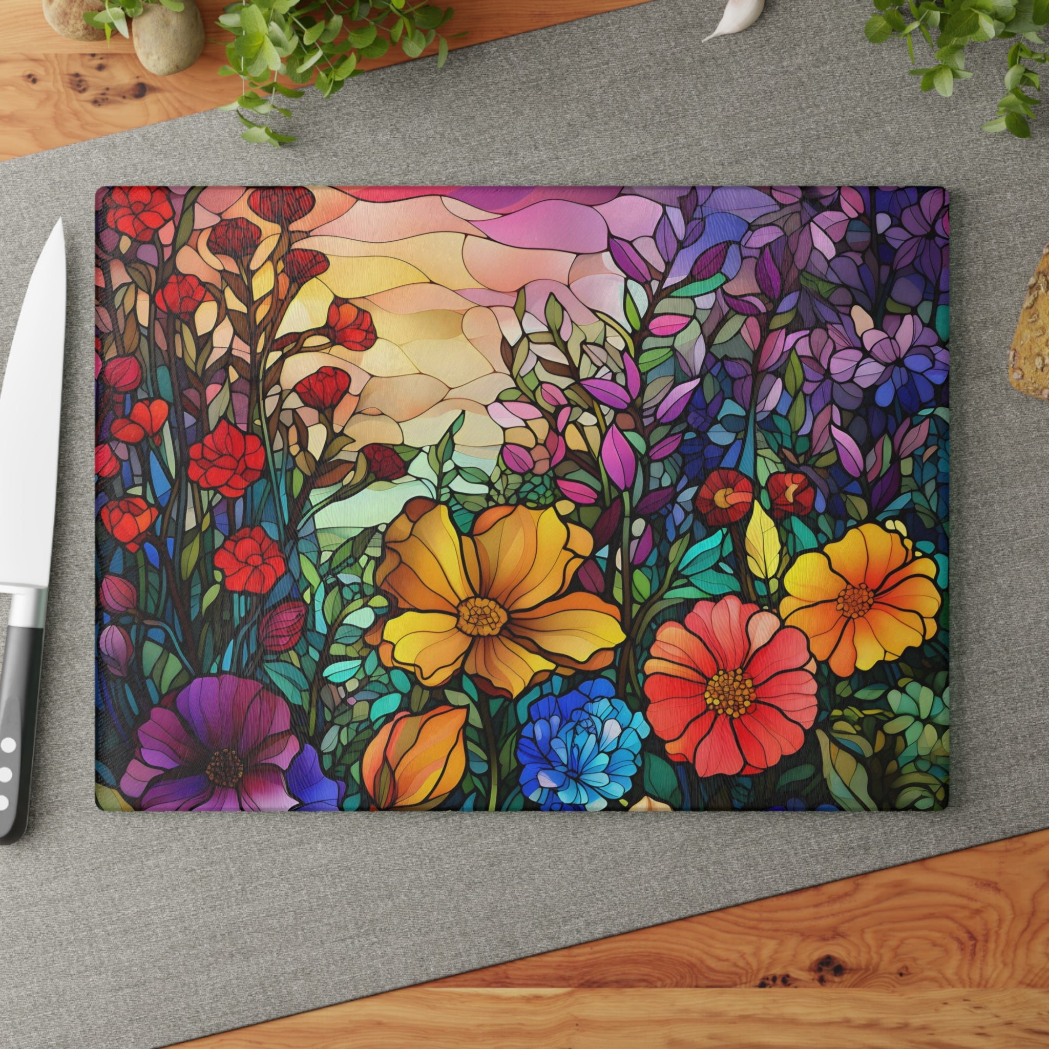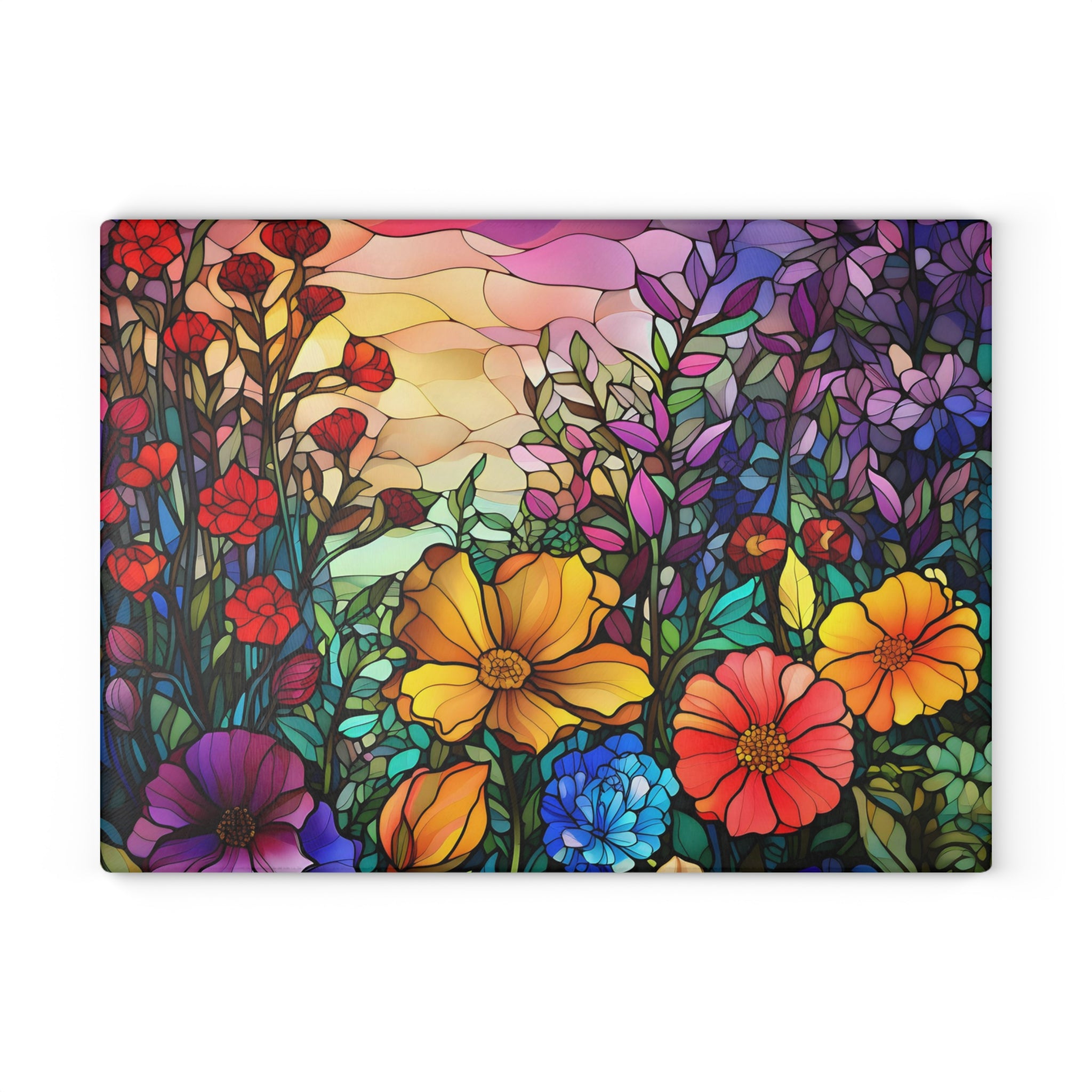 Glass Cutting Board Sunset Flower Stained Glass Look Perfect Housewarming Gift