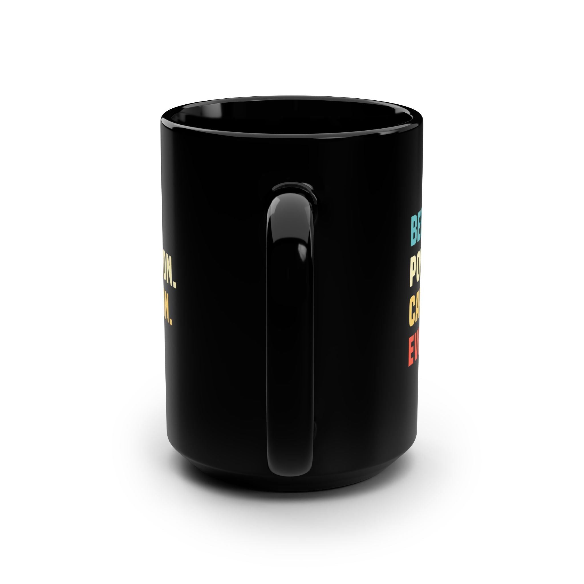 These black mugs come in one size – 15oz (0.44l) – plenty for morning caffeine boosts and hot cups of tea on a rainy day. They're easy to grip and feel sturdy thanks to the C-shaped handle. Add more personality by decorating them with your original designs. They'll be printed on the black ceramic material in picture-perfect quality with a glossy finish.