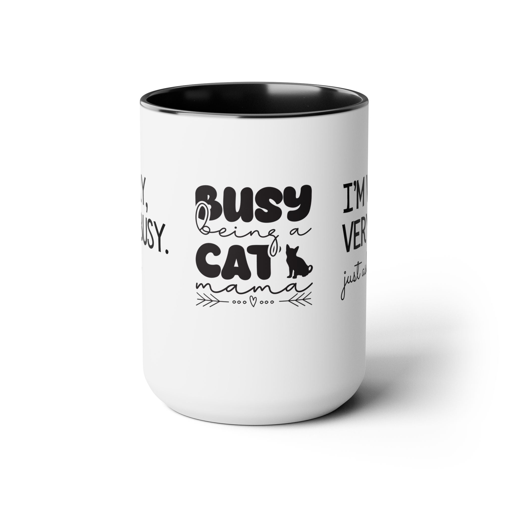 Cat Mama Coffee Mug Two-Tone Coffee Mug, 15oz Mug I'm Very Very Busy Being a Cat Mama Perfect Gift Mug for Cat Moms