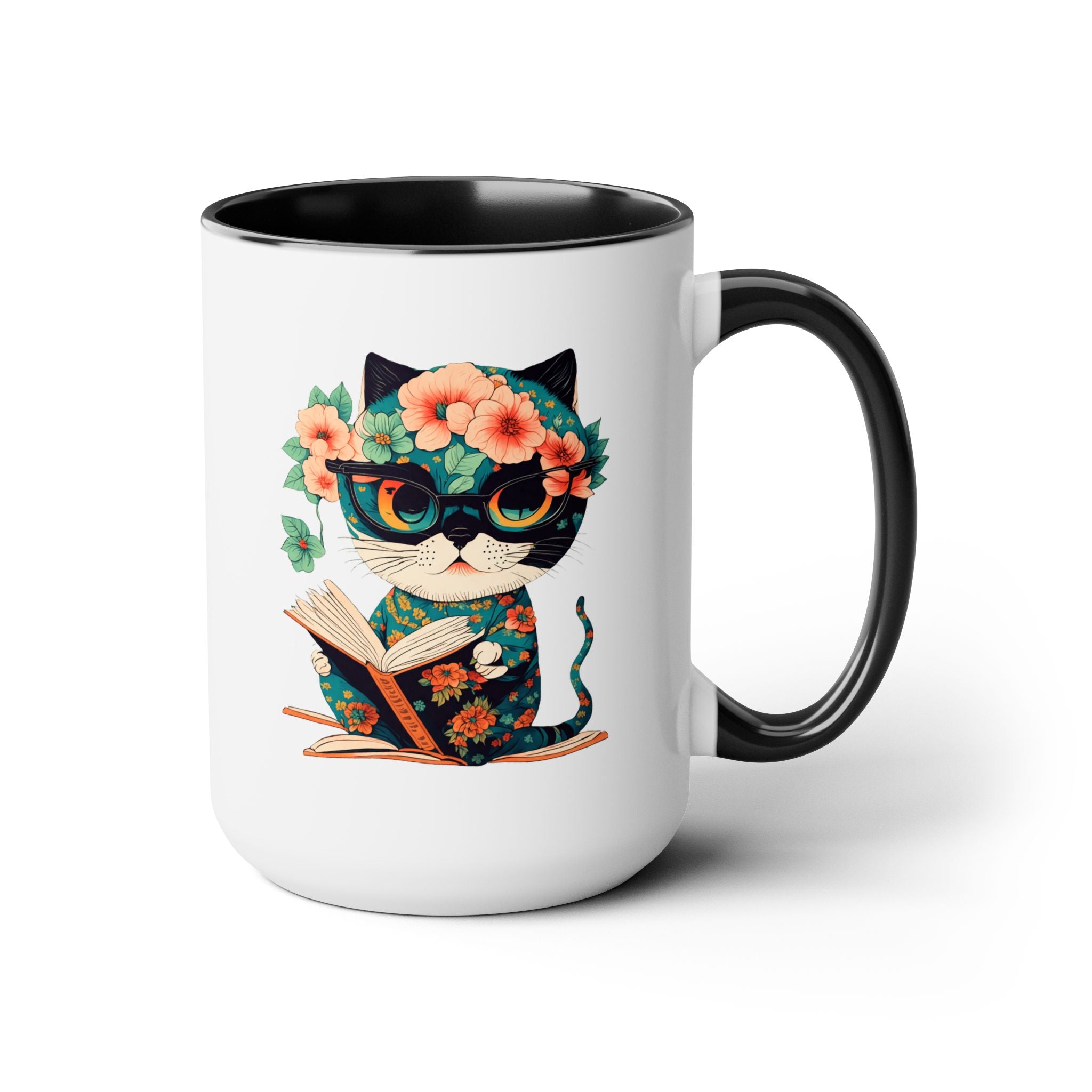 Coffee Mugs, 15oz Aloha Cat Reading a Book