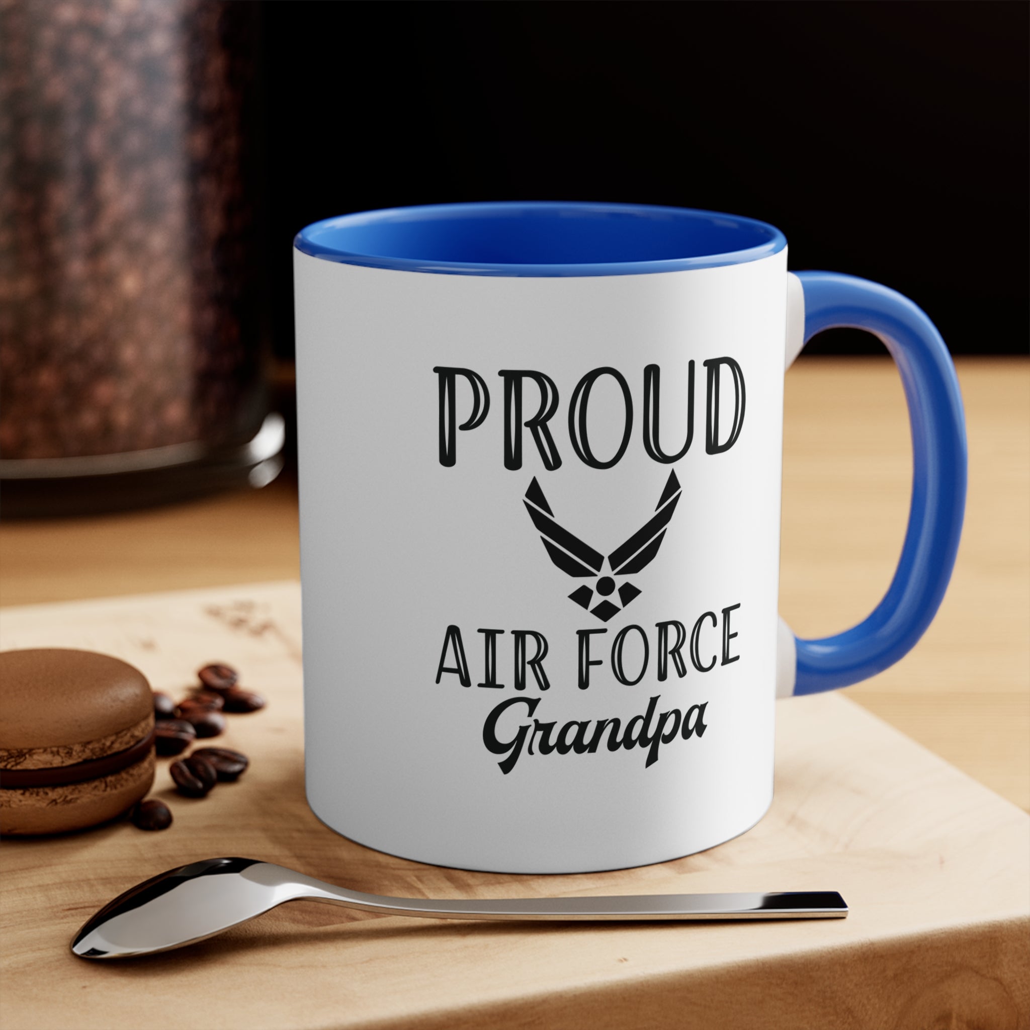 If you're looking for a mug that celebrates your Air Force grandma, look no further! This personalized accent mug is perfect for her. She's sure to love it. The quality ceramic and printing can withstand machine washing, making it a durable and long-lasting gift. Order now and let her know how much you care! .: Material: white ceramic with colored interior and handle .: One size: 11 oz (0.33 l) .: Rounded corners .: C-handle