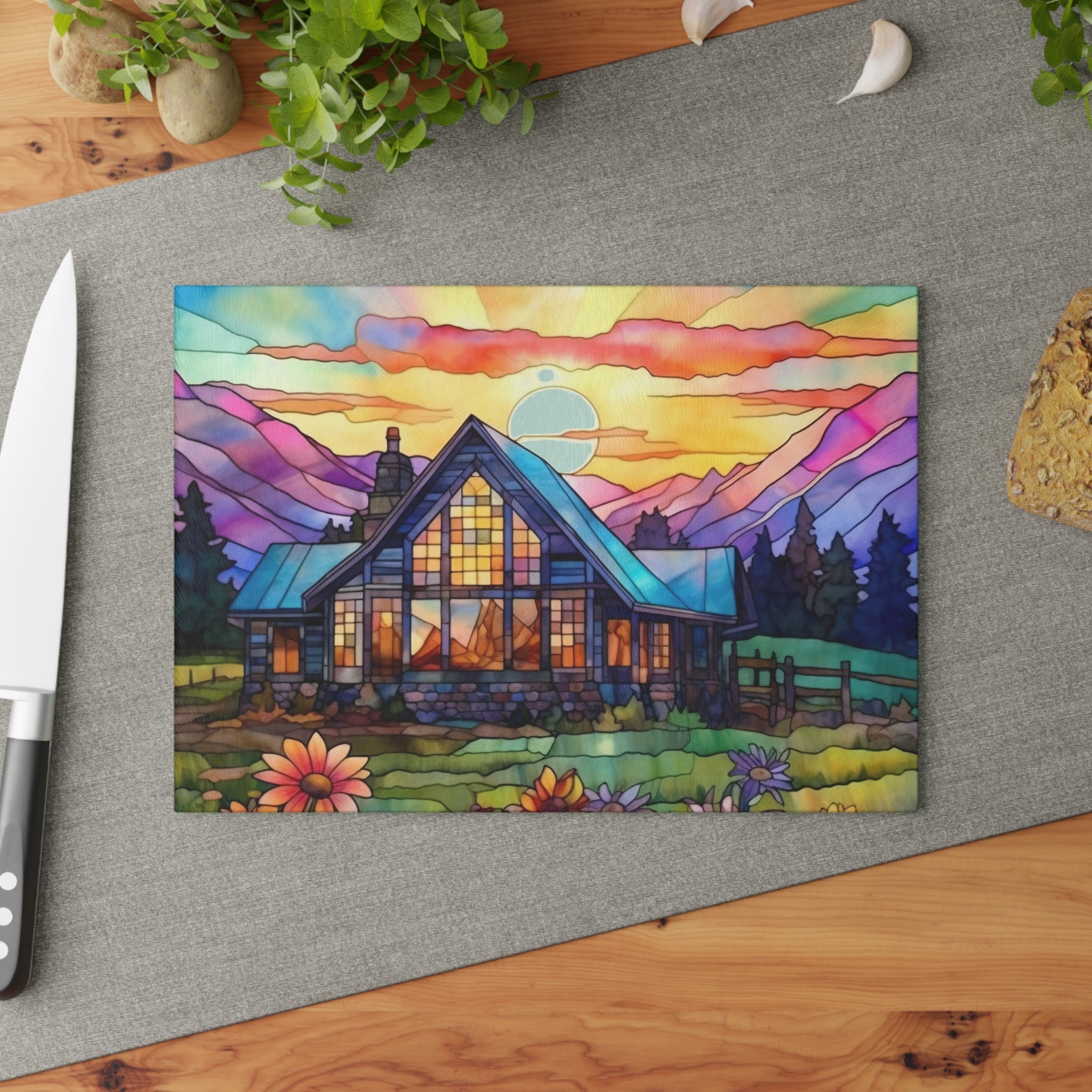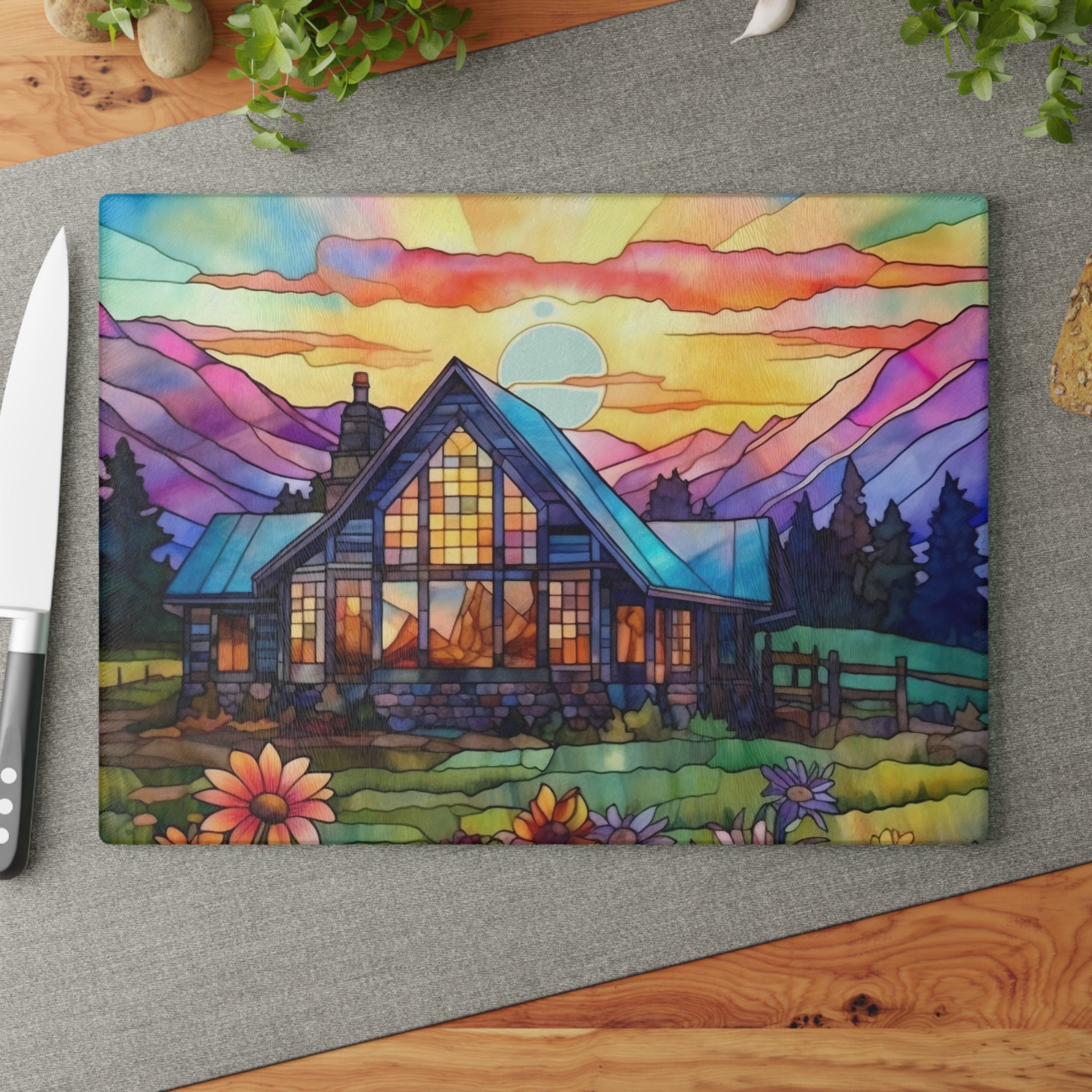 Cabin in the Woods Glass Cutting Board Beach and Flower Perfect Housewarming Gift