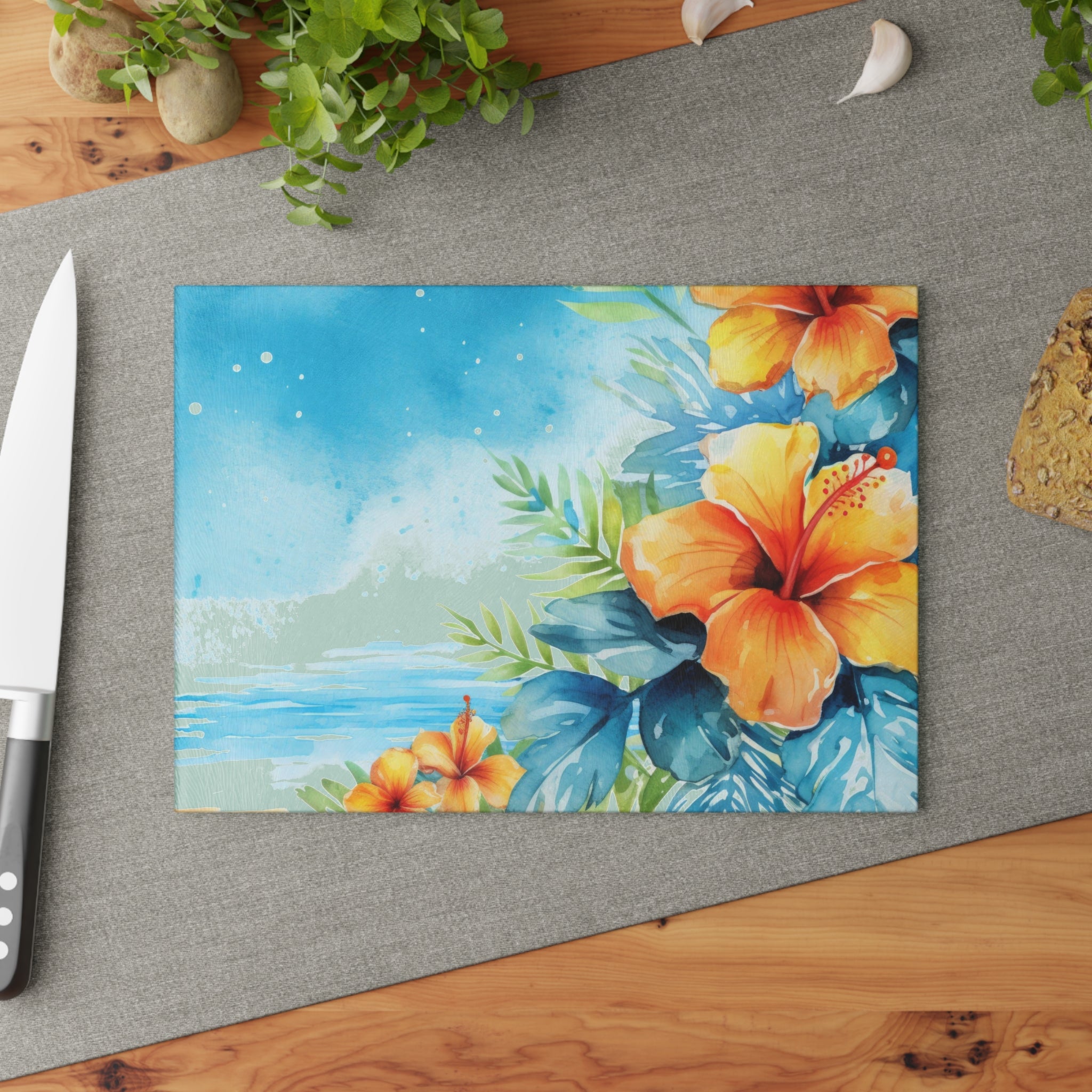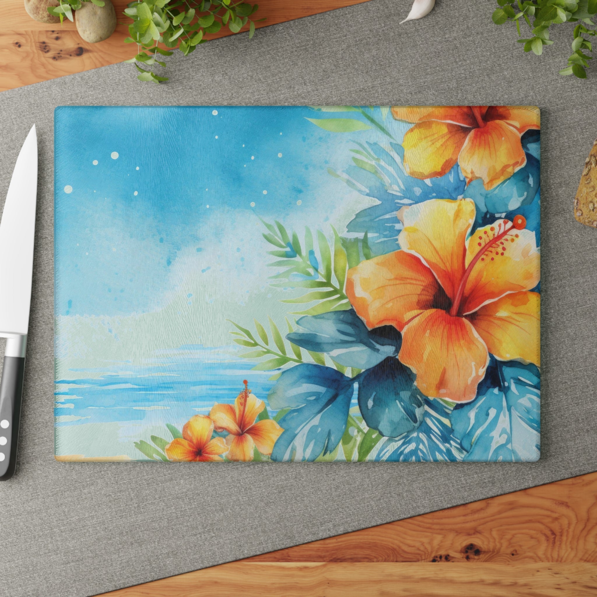 Glass Cutting Board Aloha Hawaiian Flowers Perfect Housewarming Gift