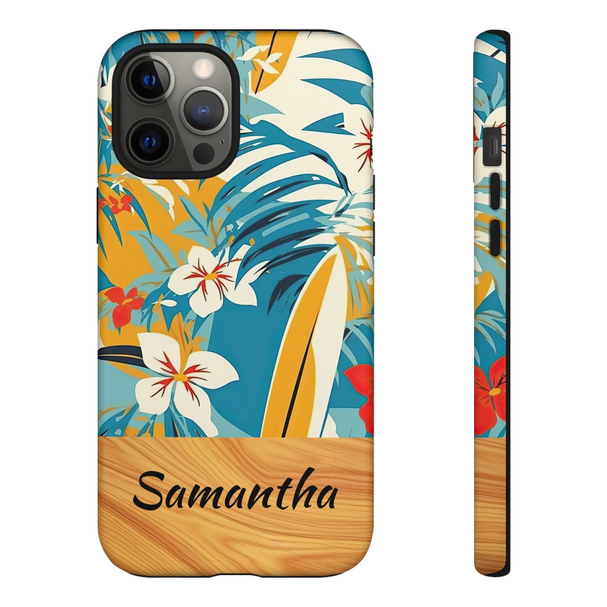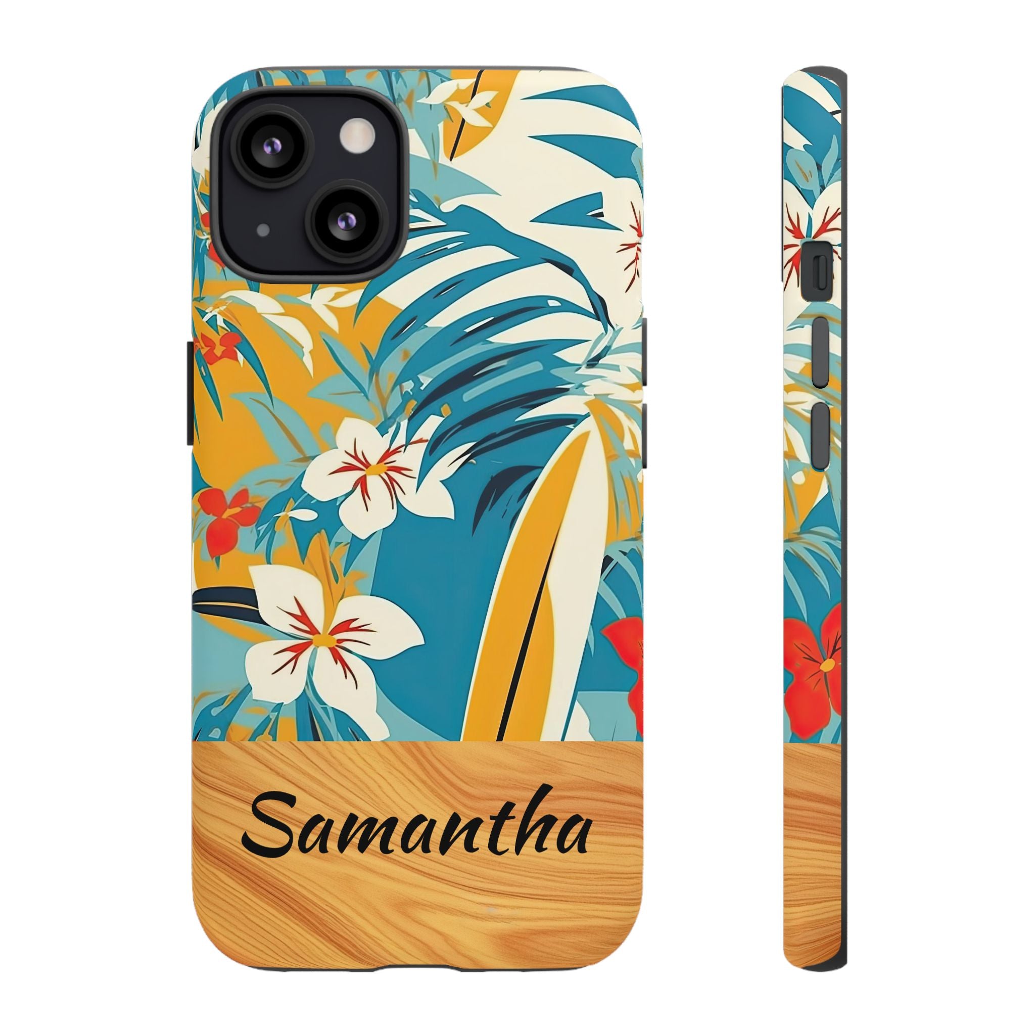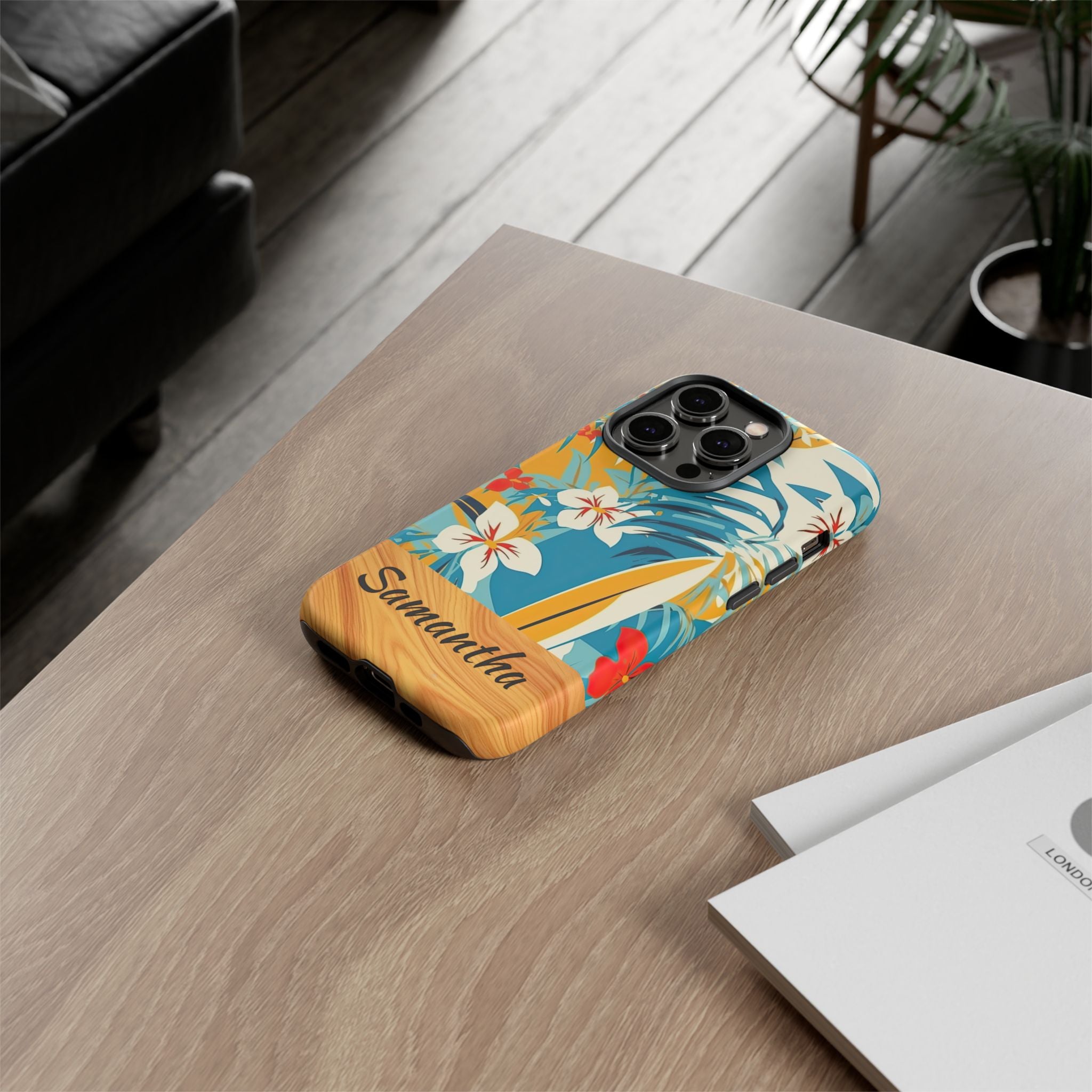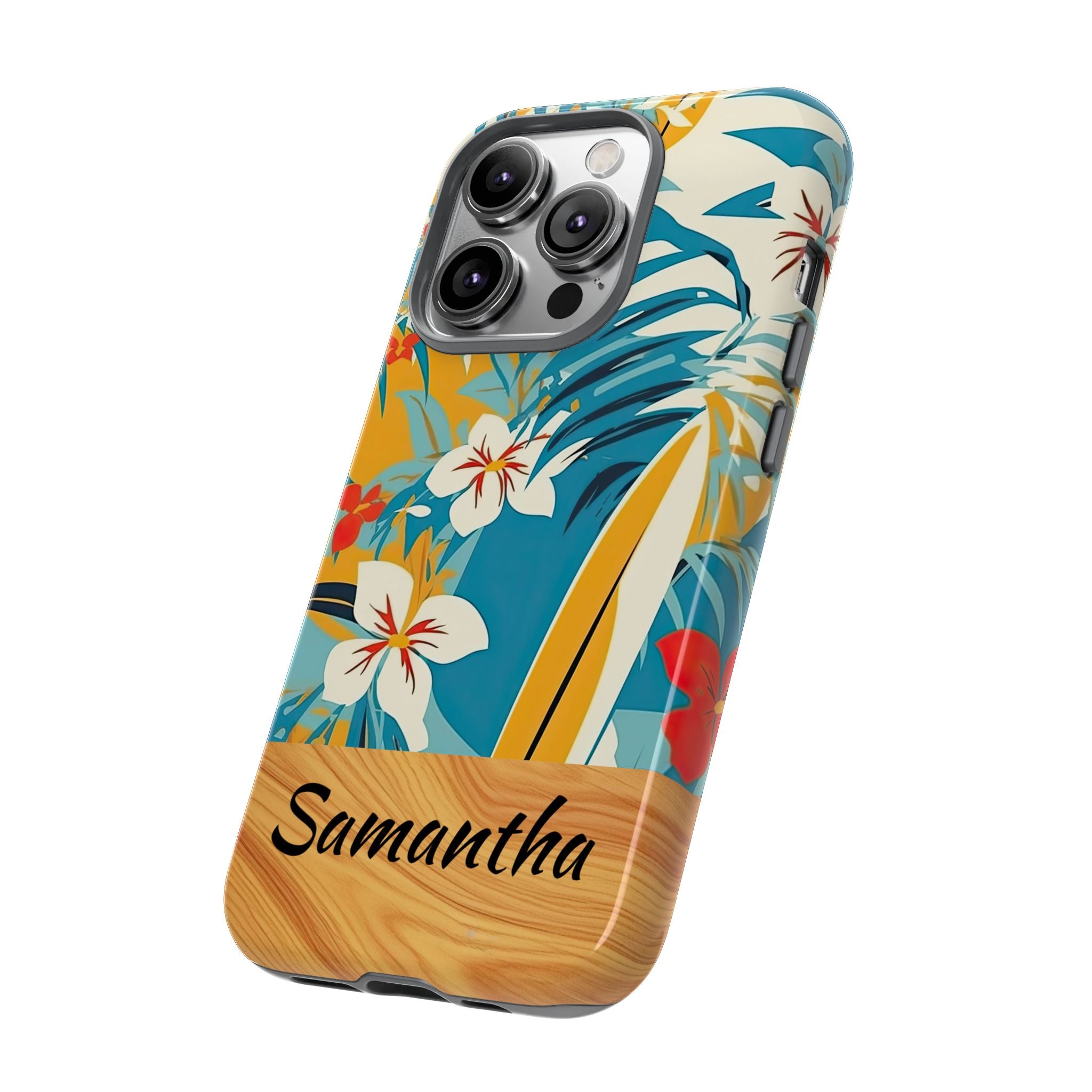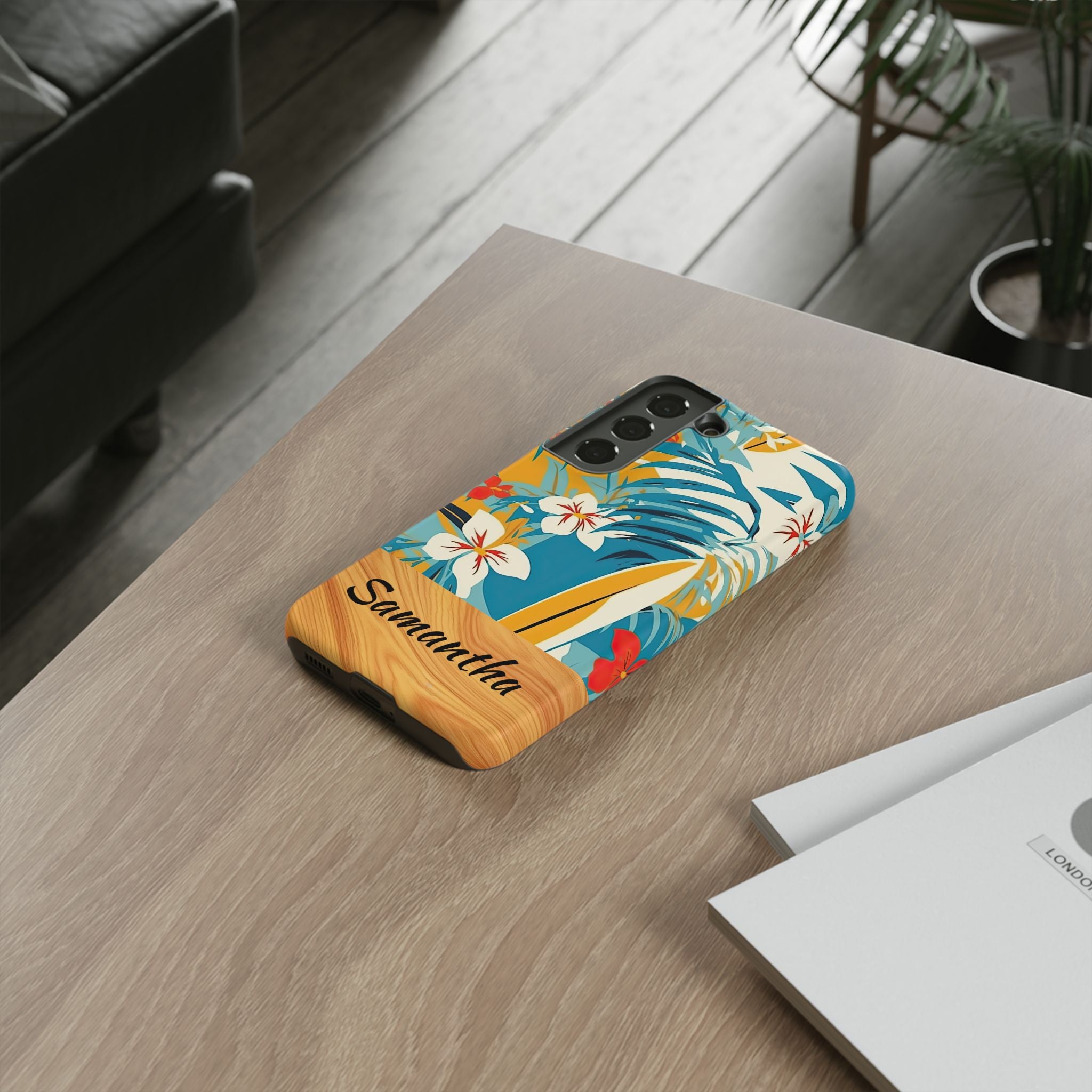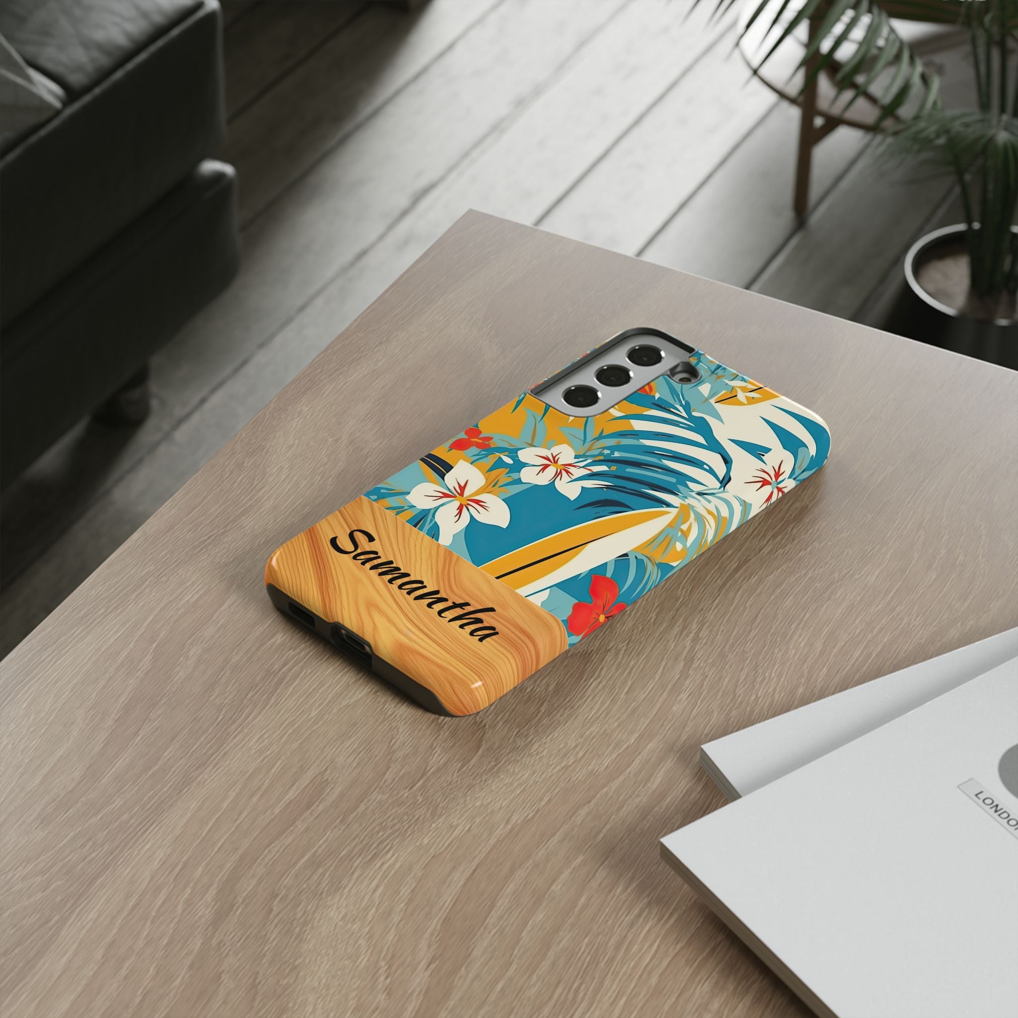 Custom Phone Tough Case Hawaii Surf Boards with Woodgrain Personalize with Name