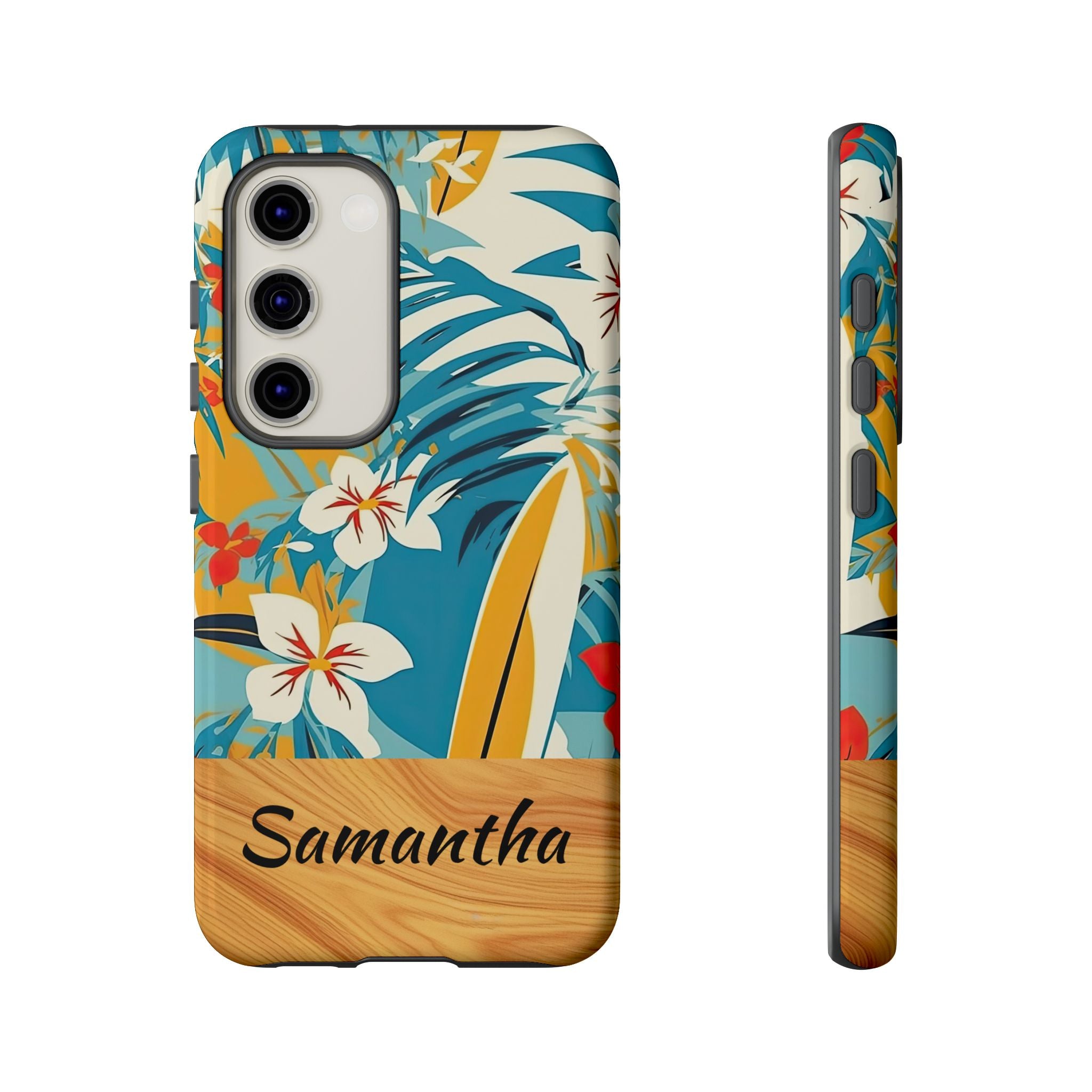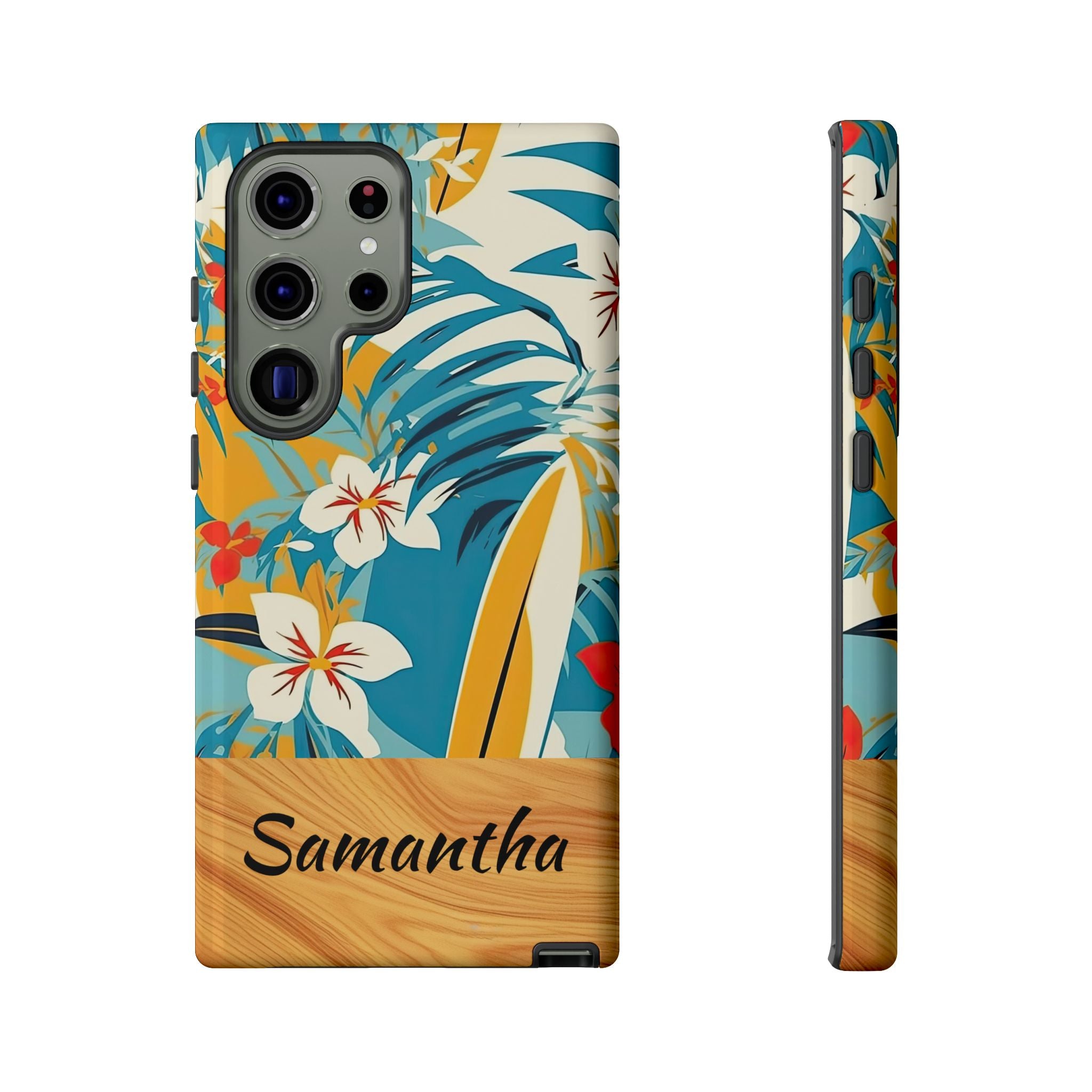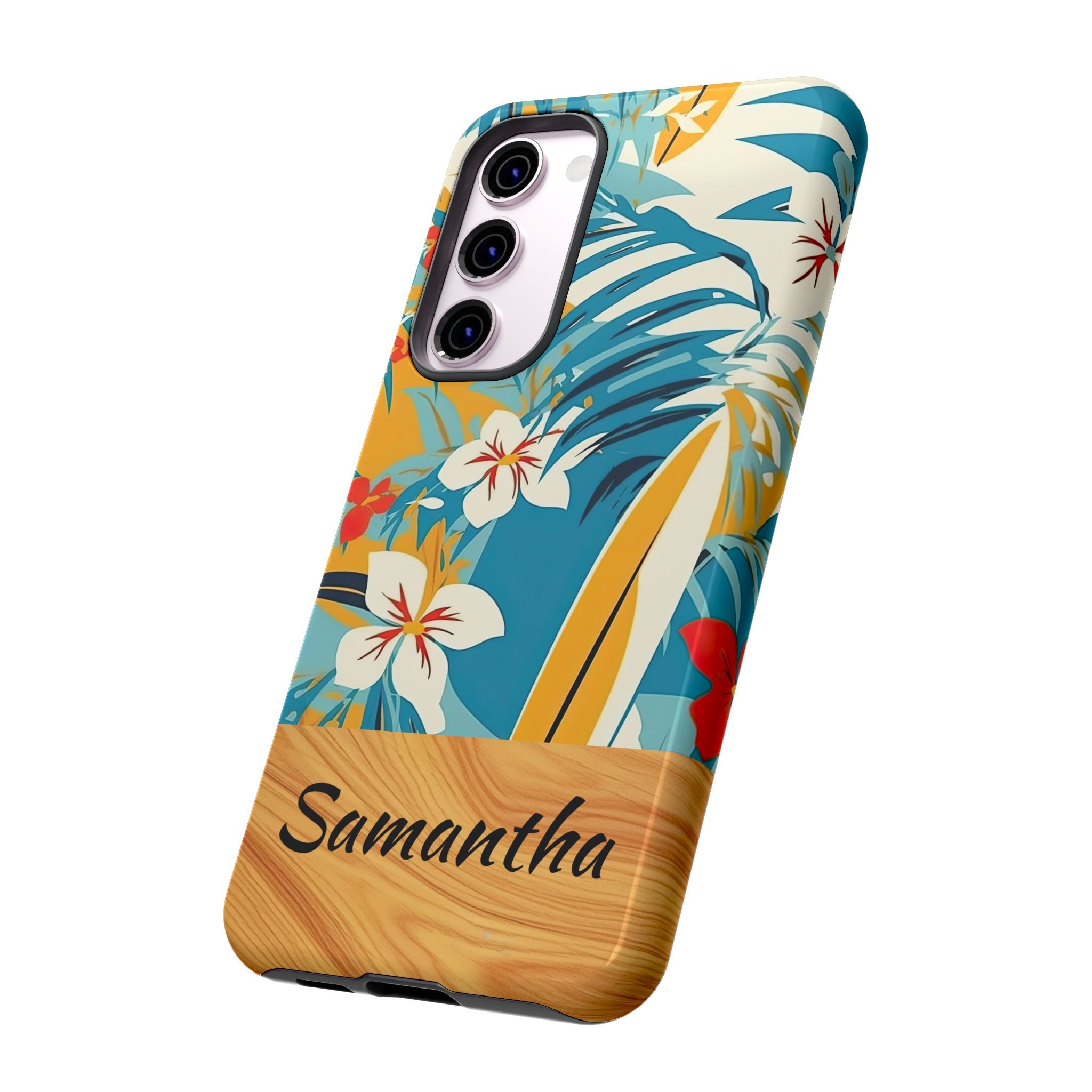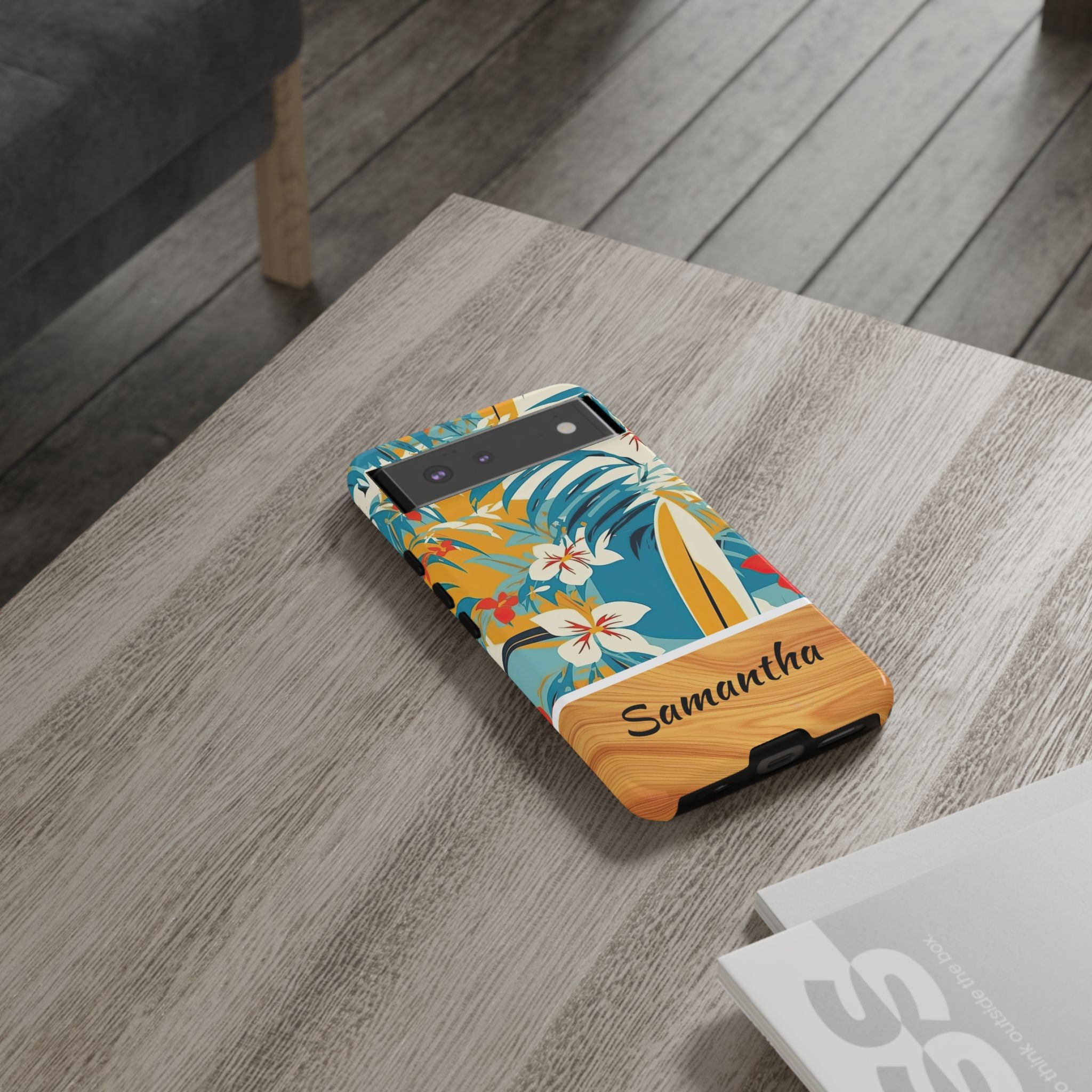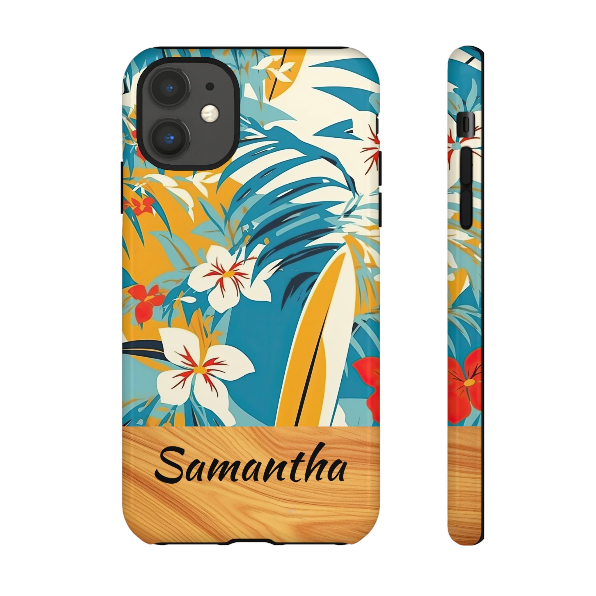 Custom Phone Tough Case Hawaii Surf Boards with Woodgrain Personalize with Name