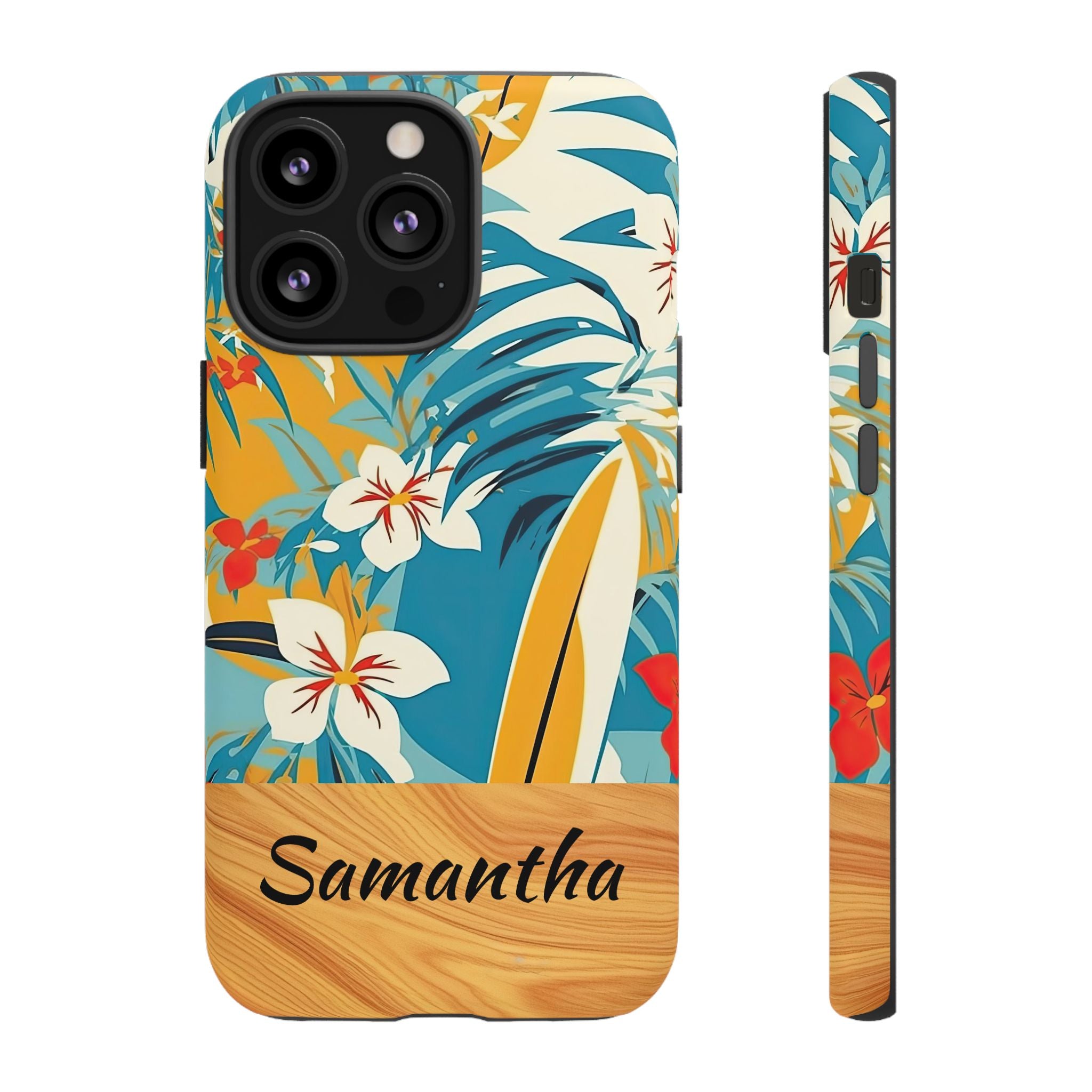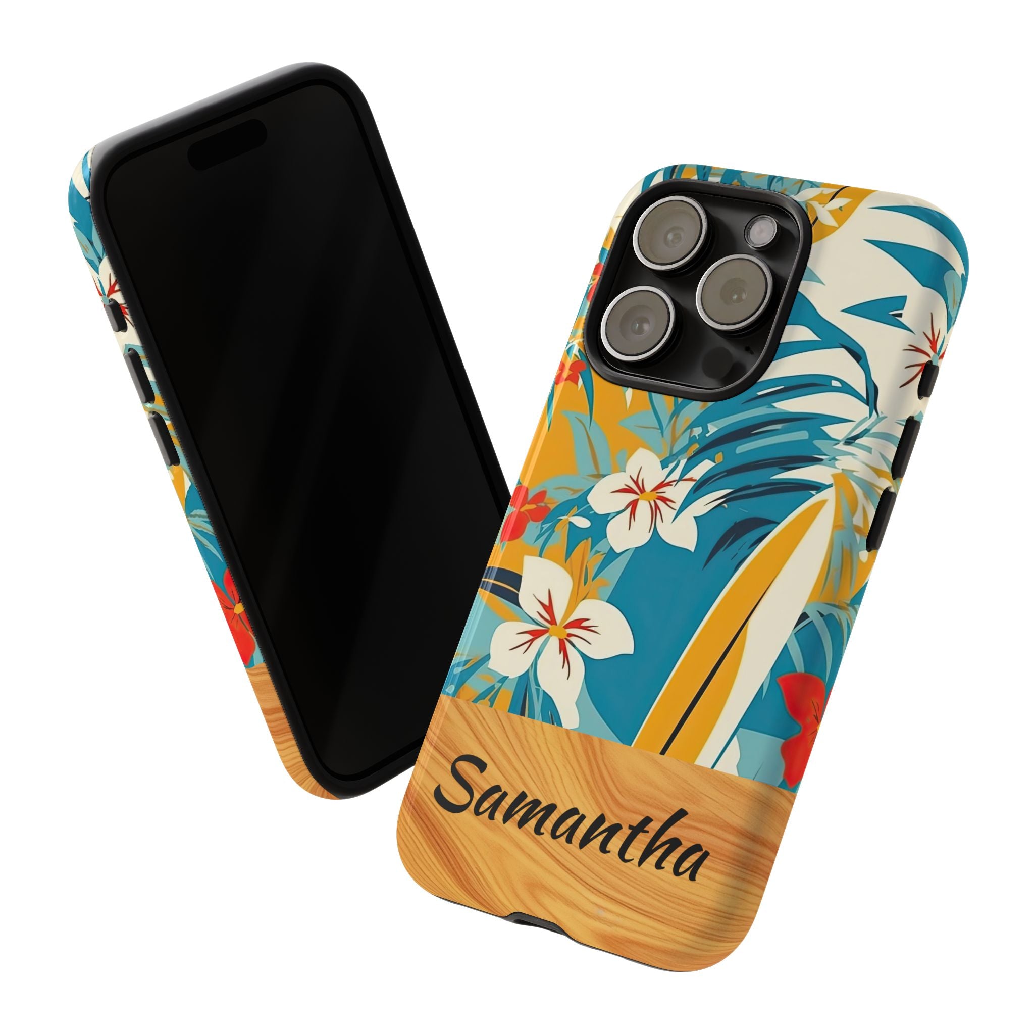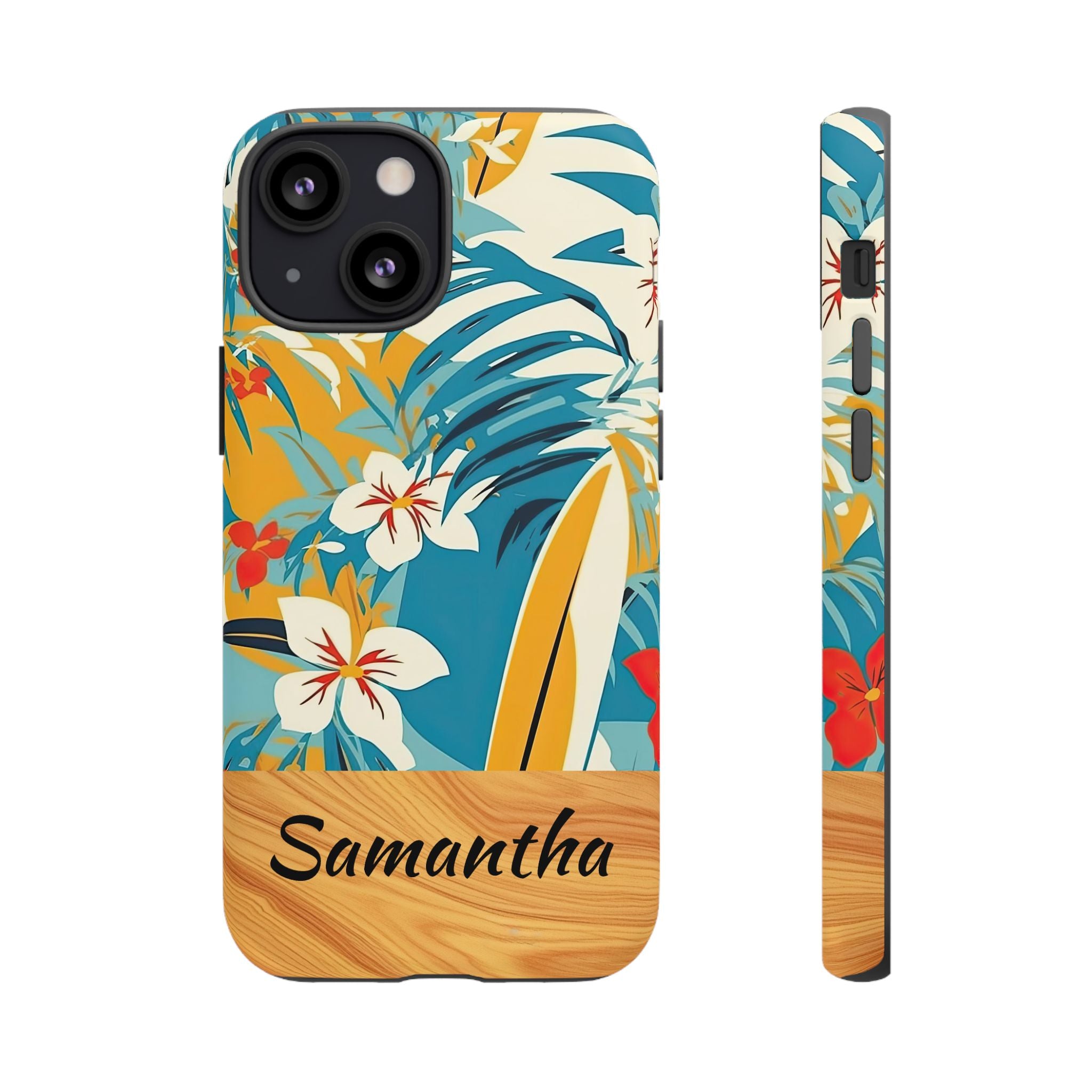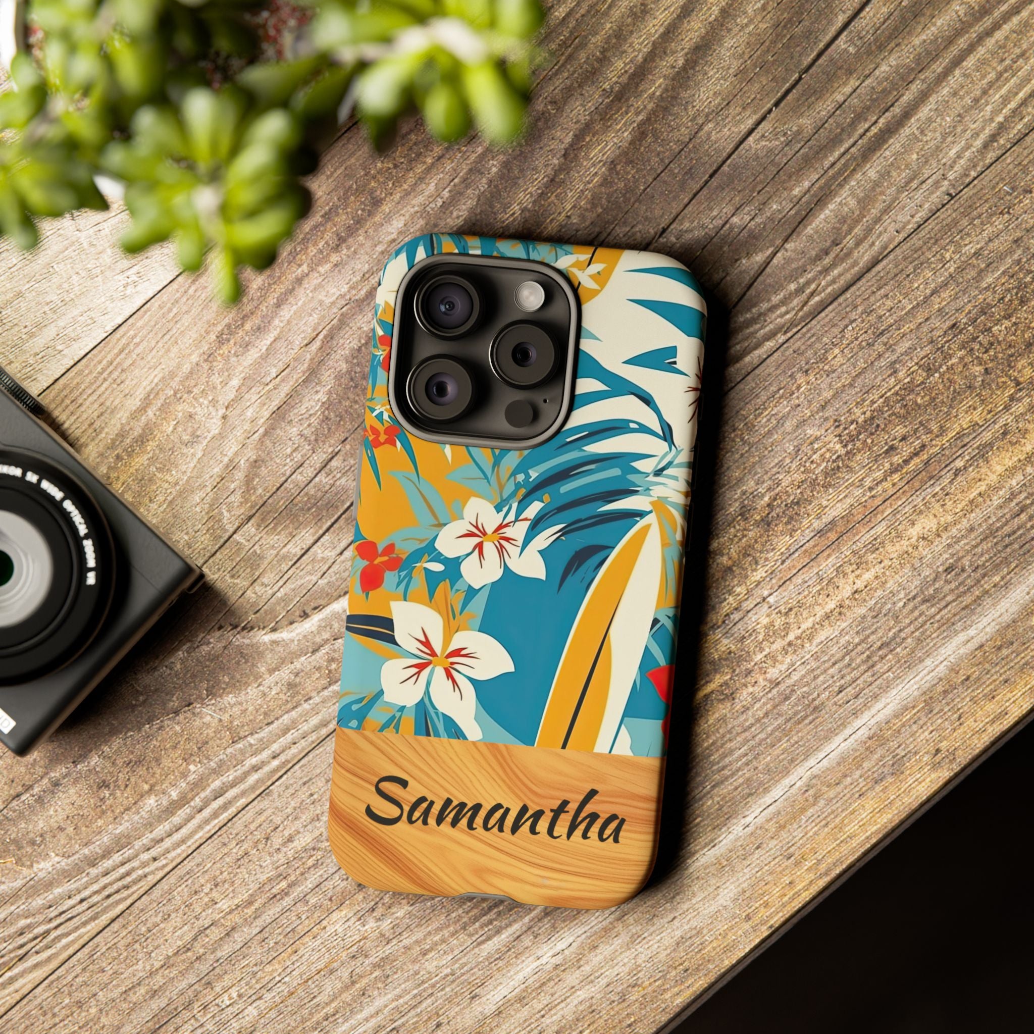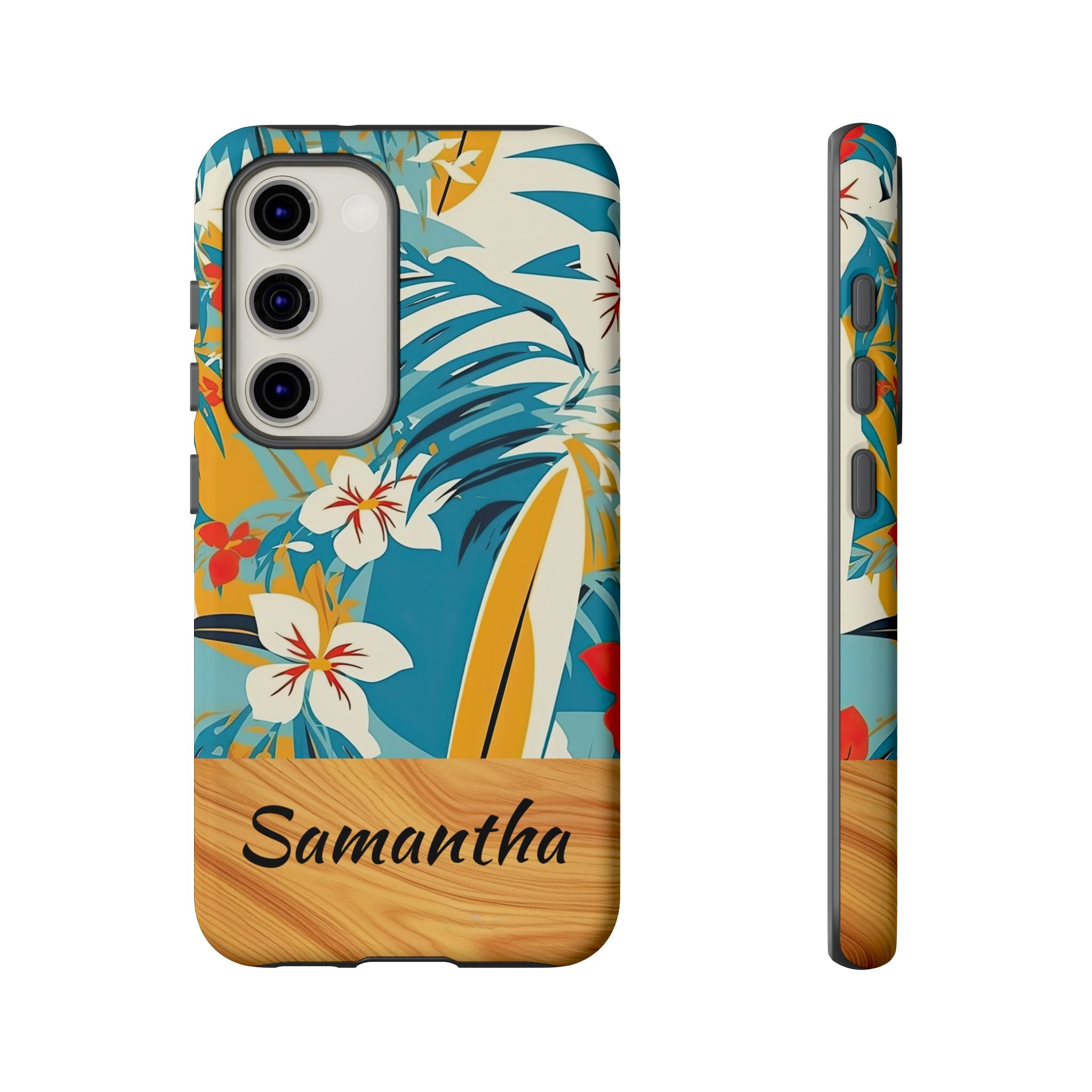 Custom Phone Tough Case Hawaii Surf Boards with Woodgrain Personalize with Name