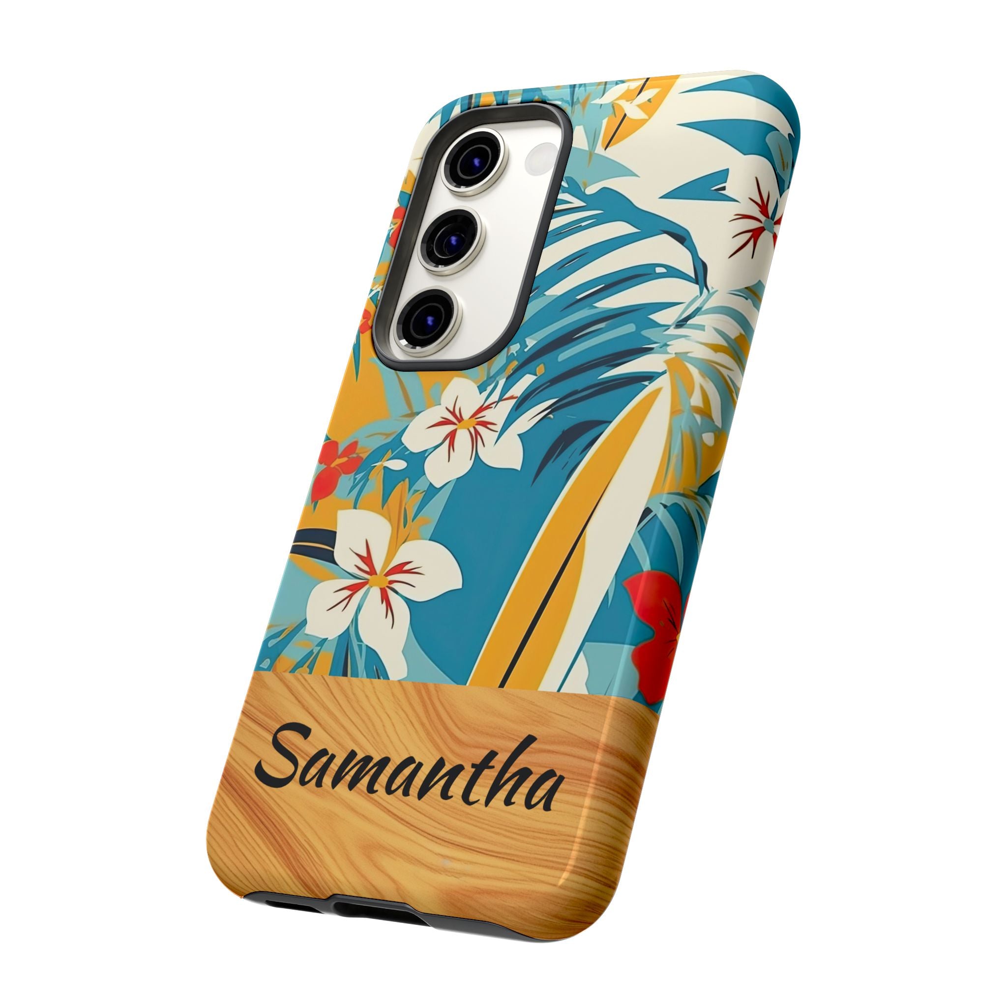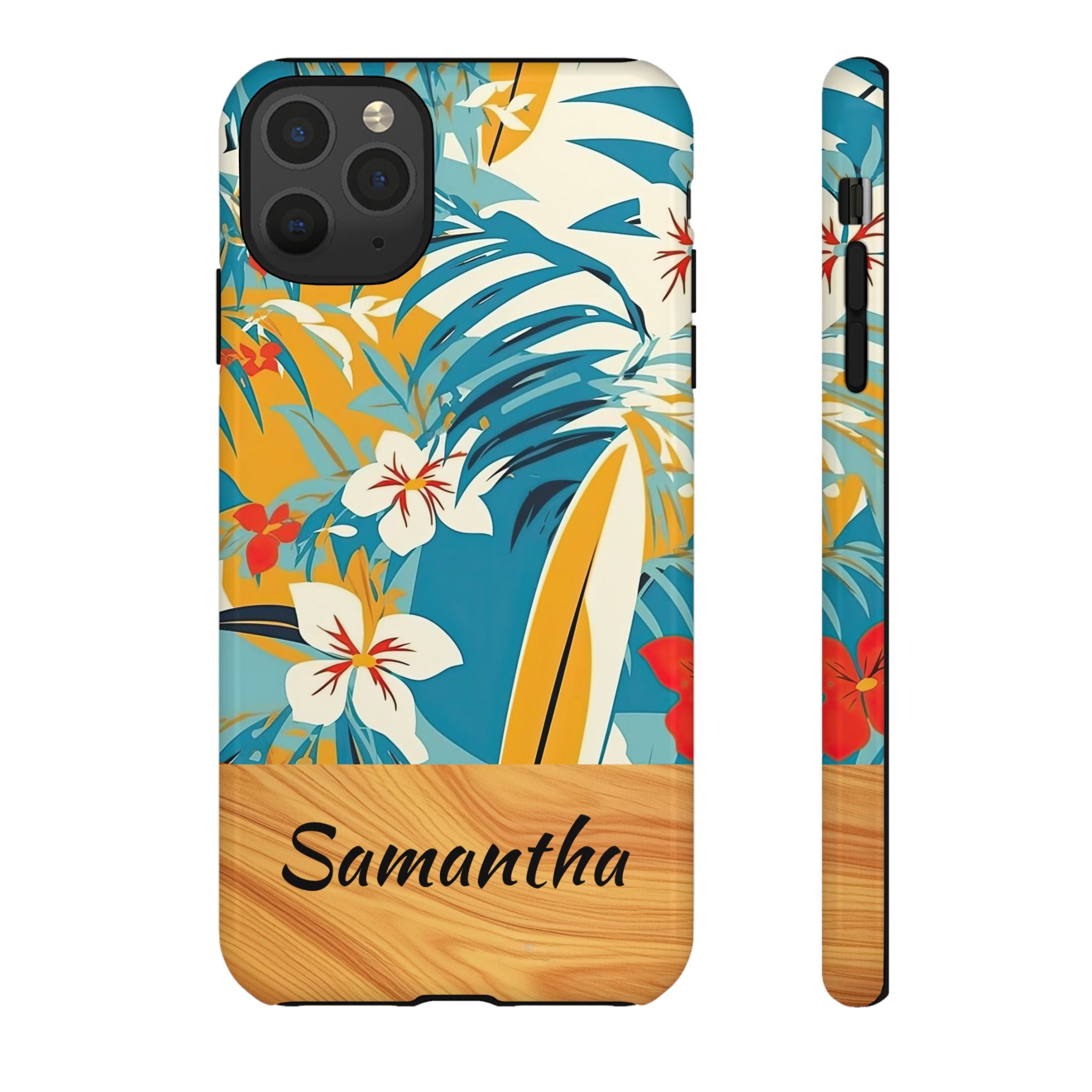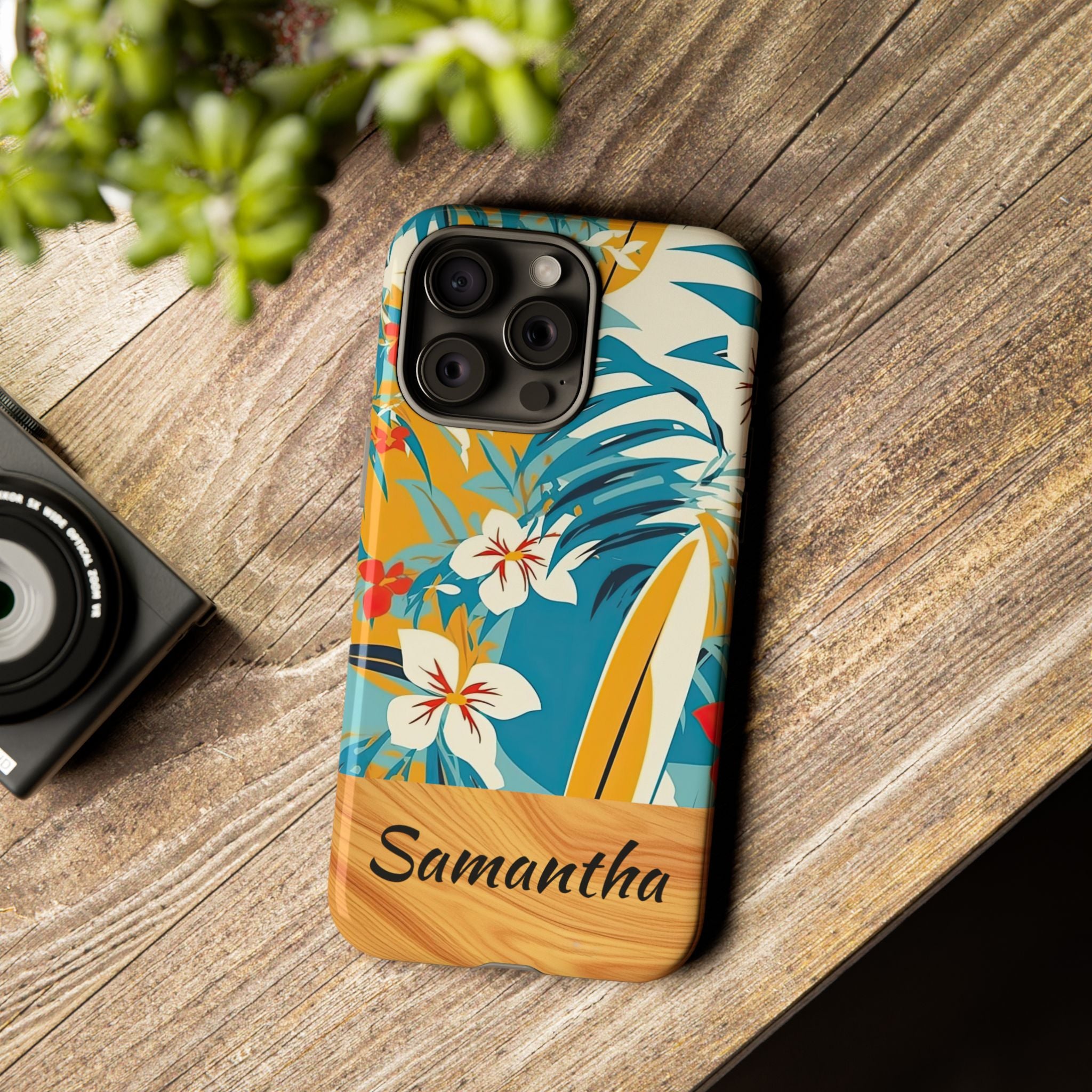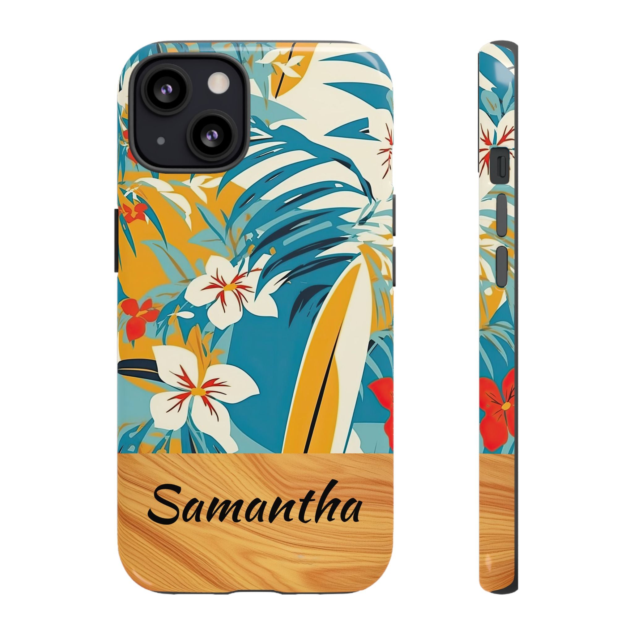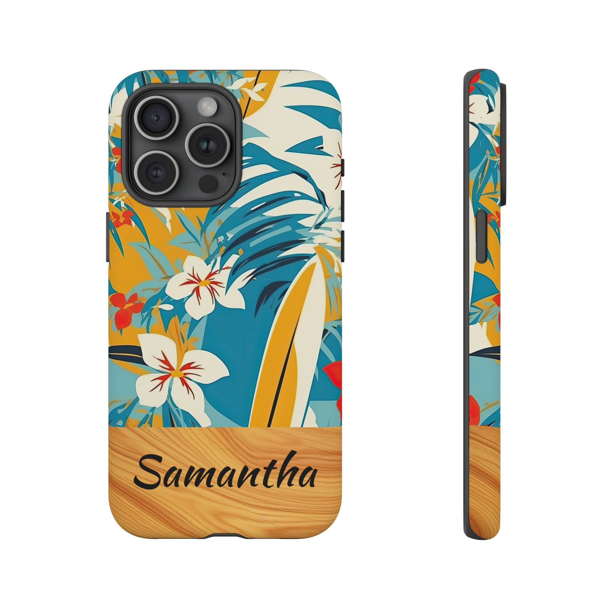 Custom Phone Tough Case Hawaii Surf Boards with Woodgrain Personalize with Name