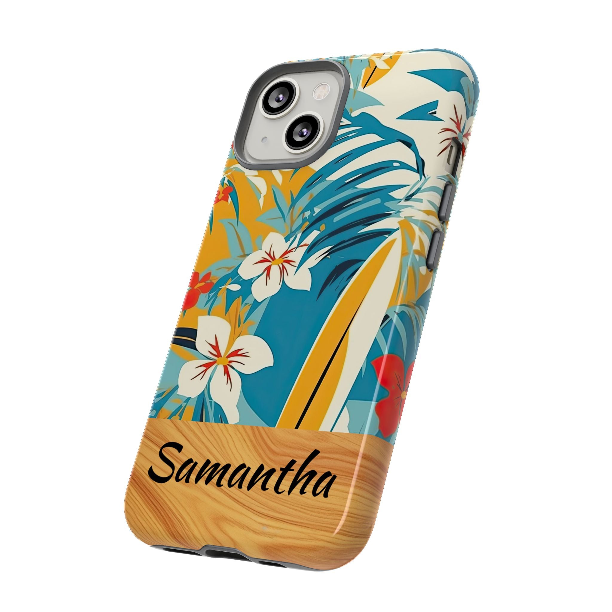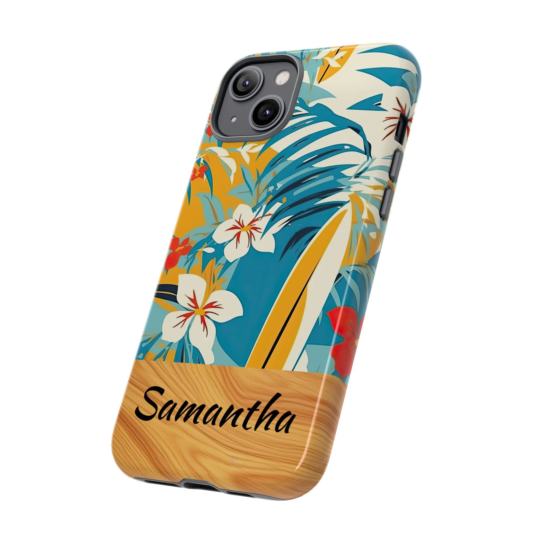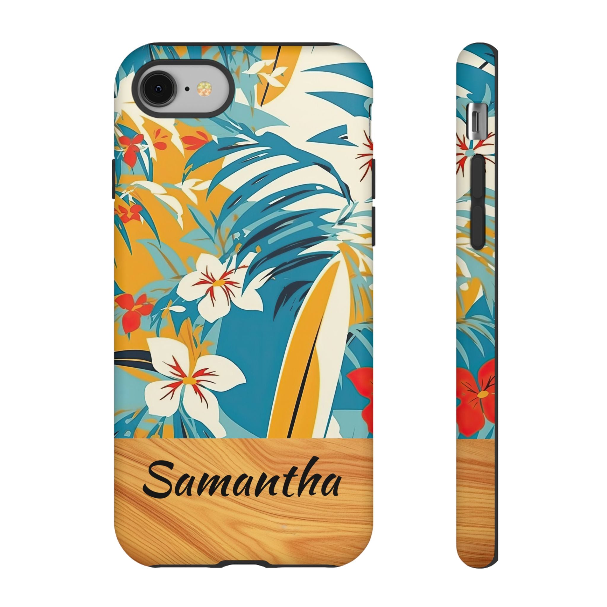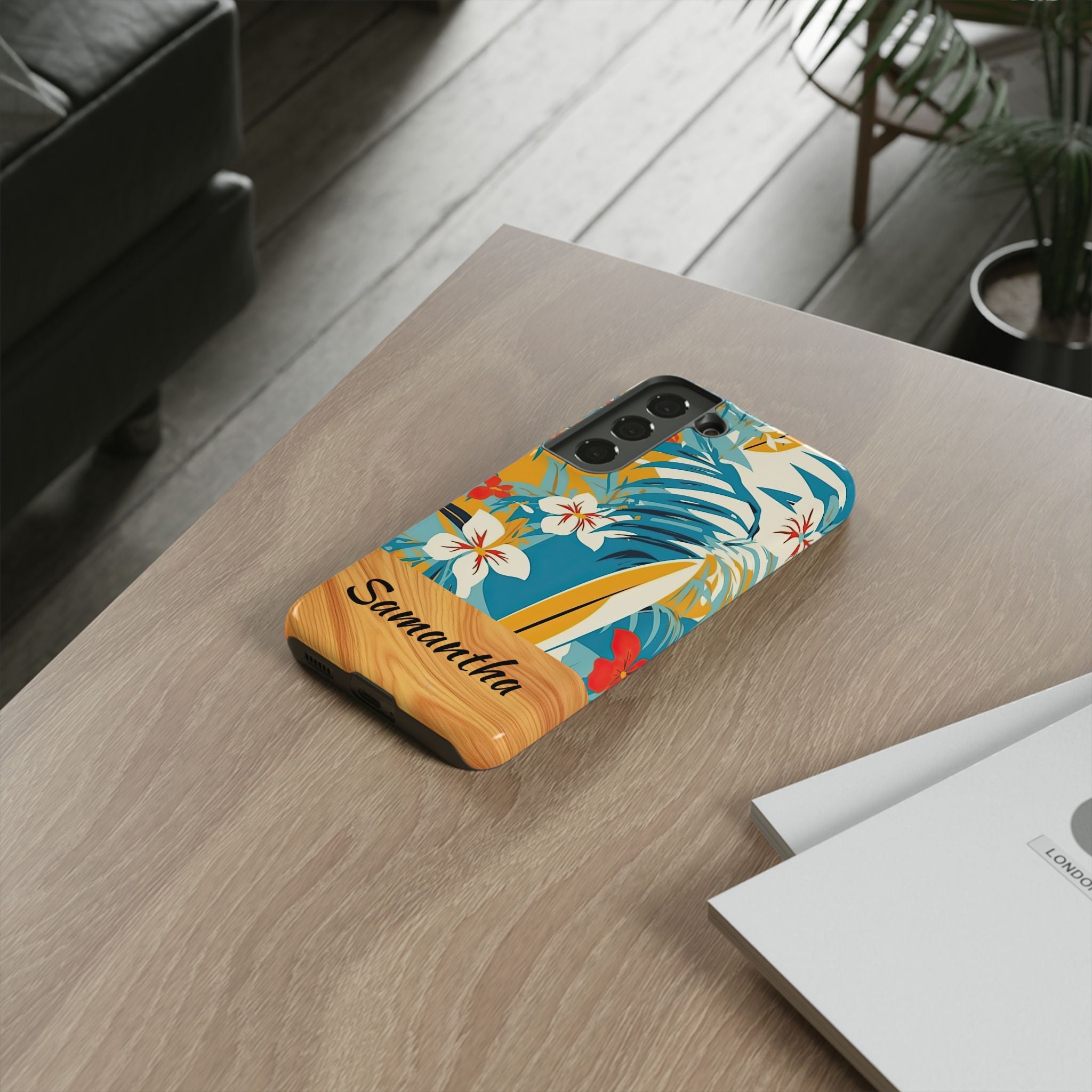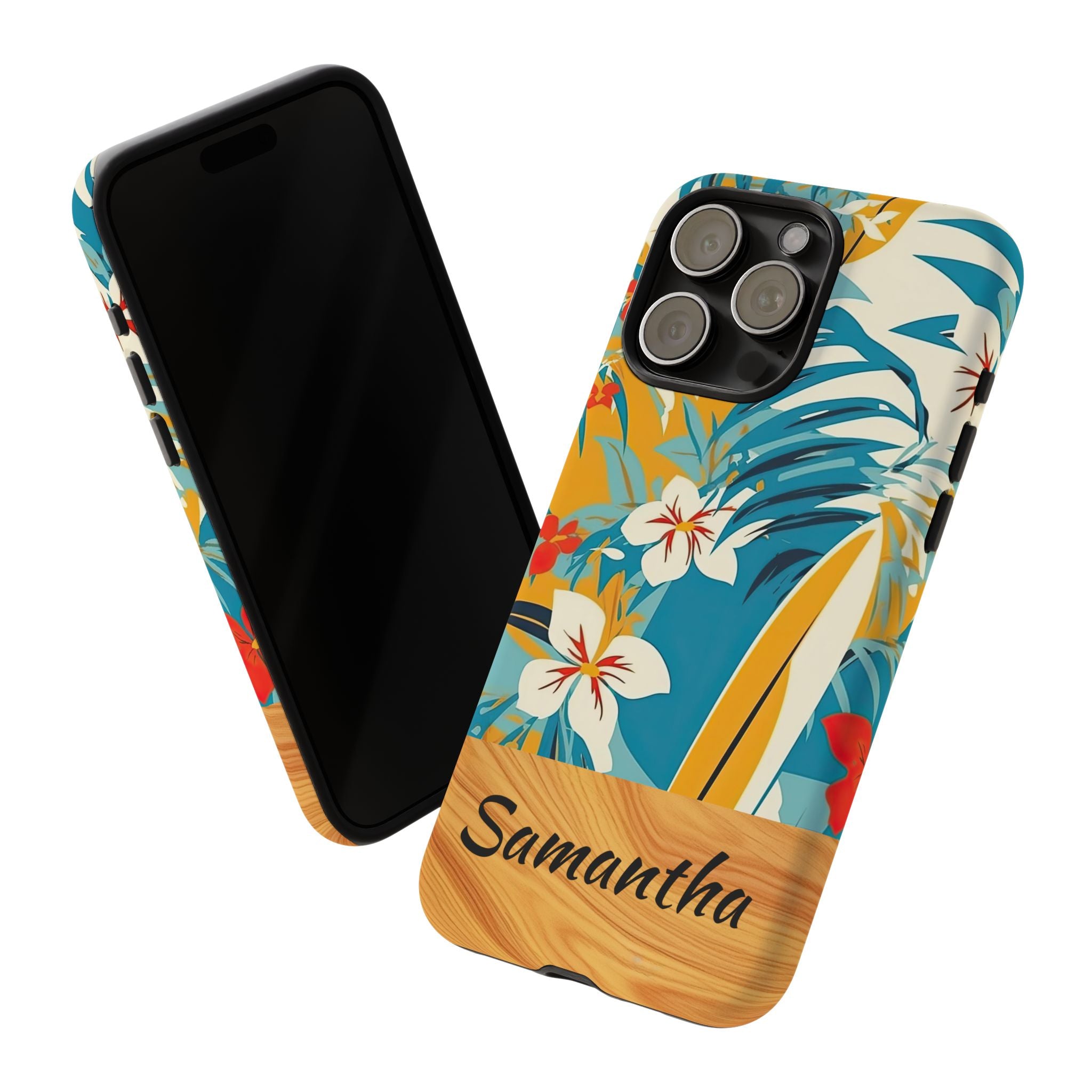 Custom Phone Tough Case Hawaii Surf Boards with Woodgrain Personalize with Name