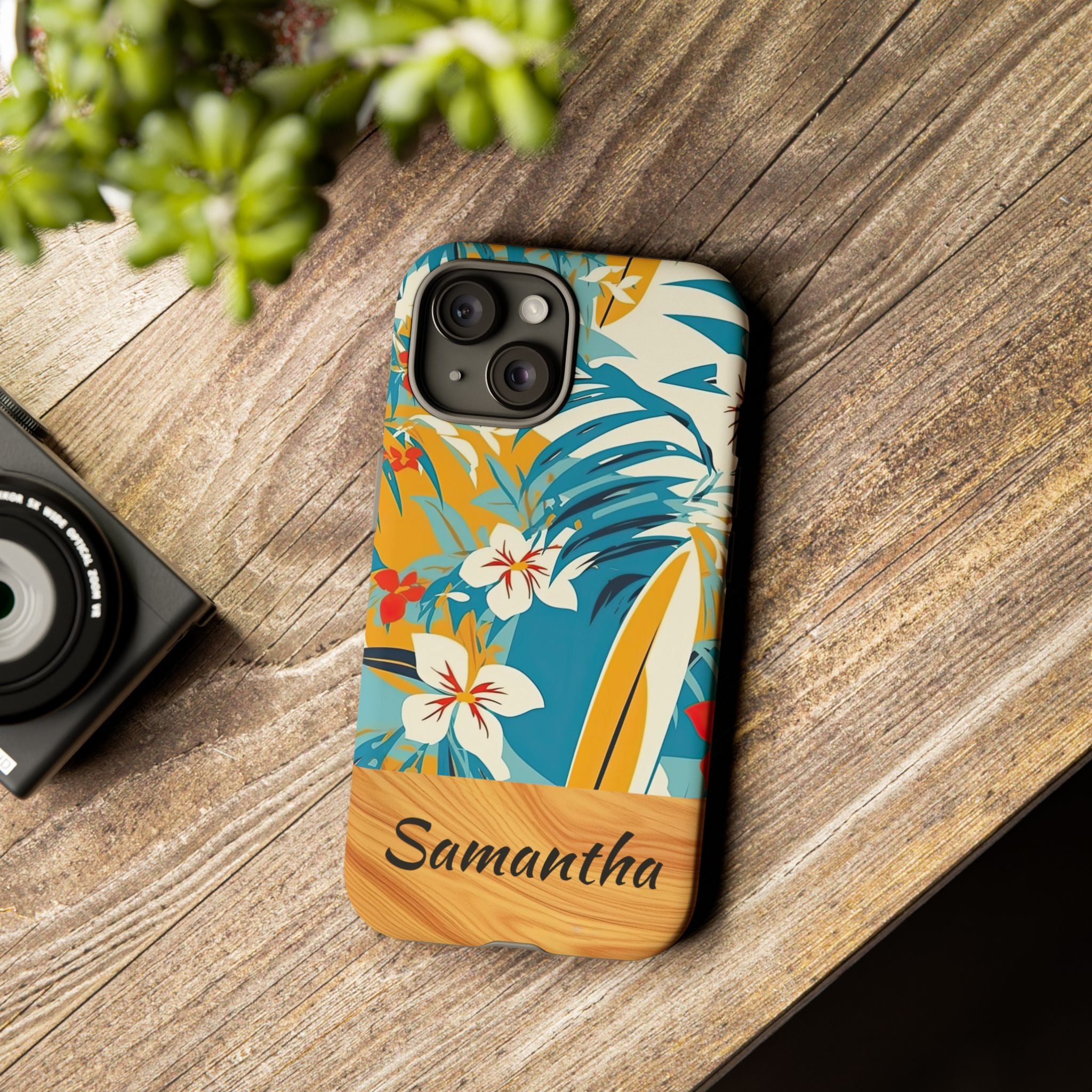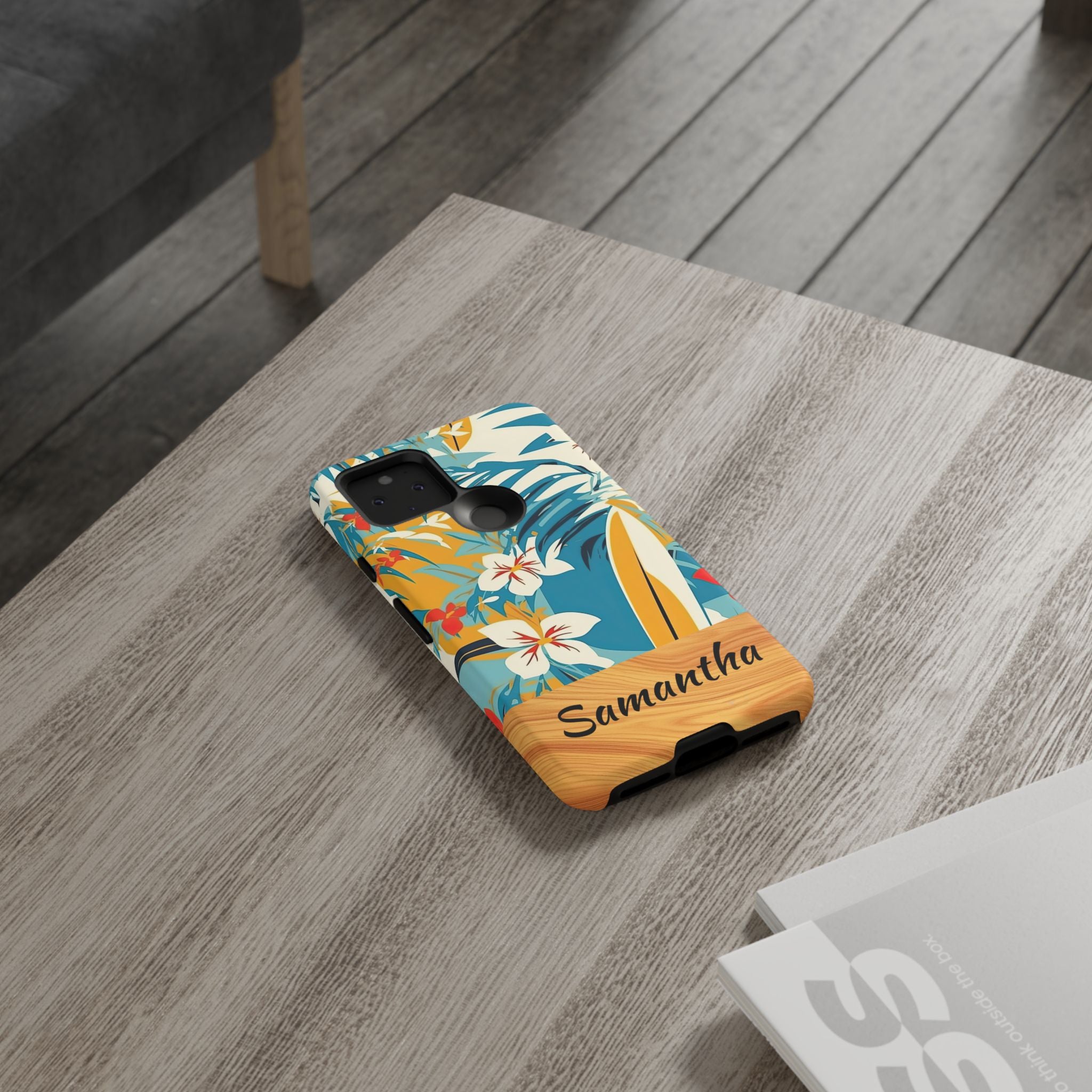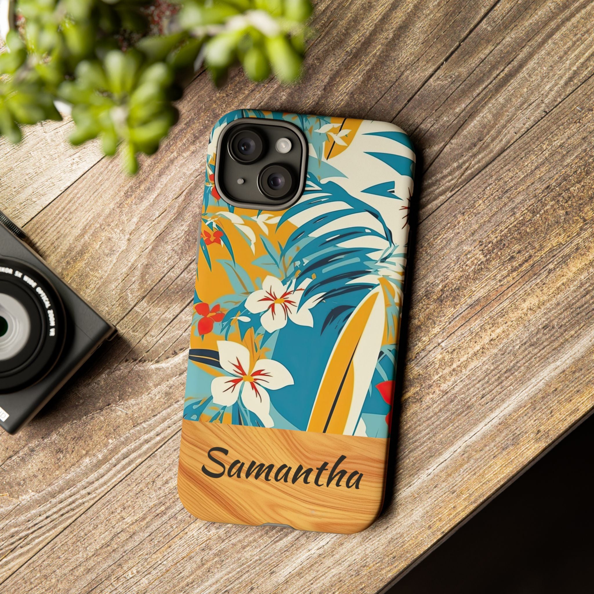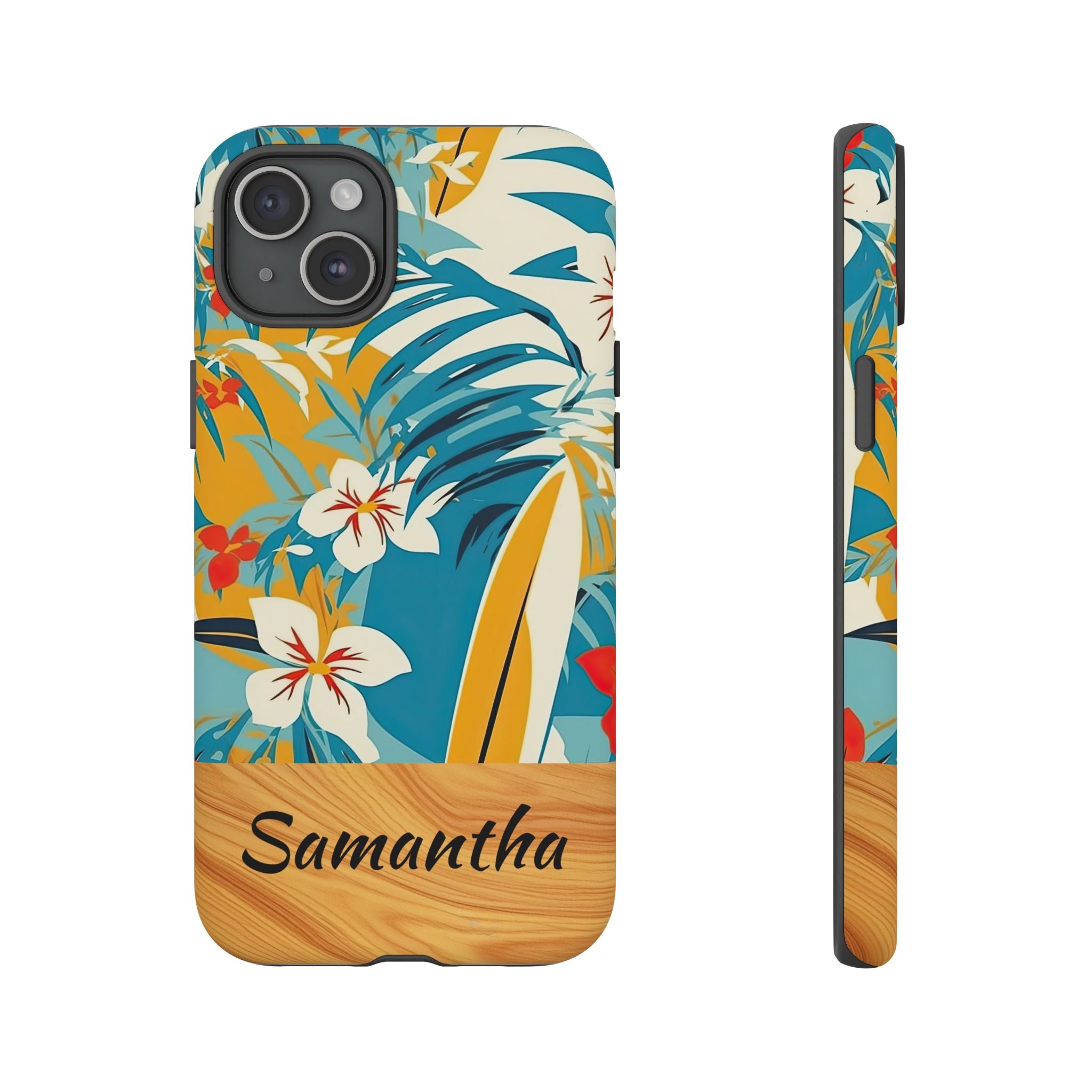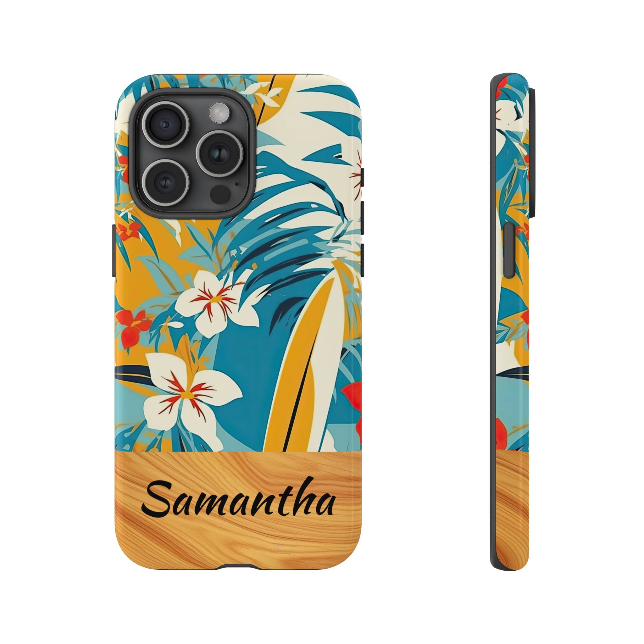 Custom Phone Tough Case Hawaii Surf Boards with Woodgrain Personalize with Name