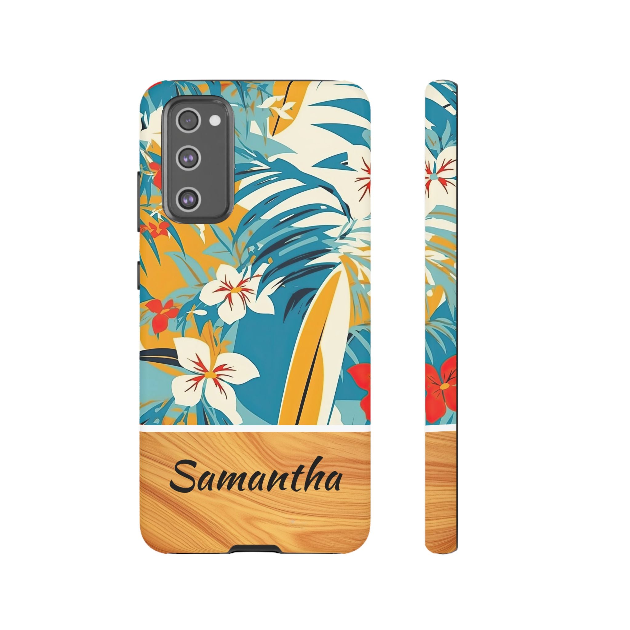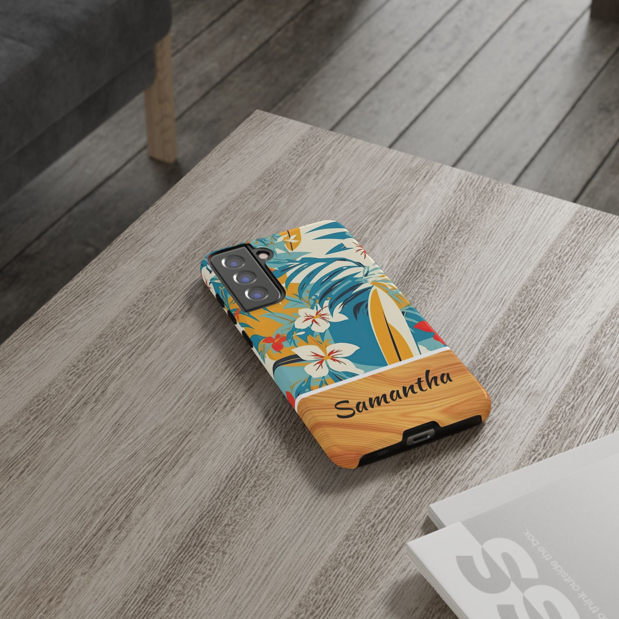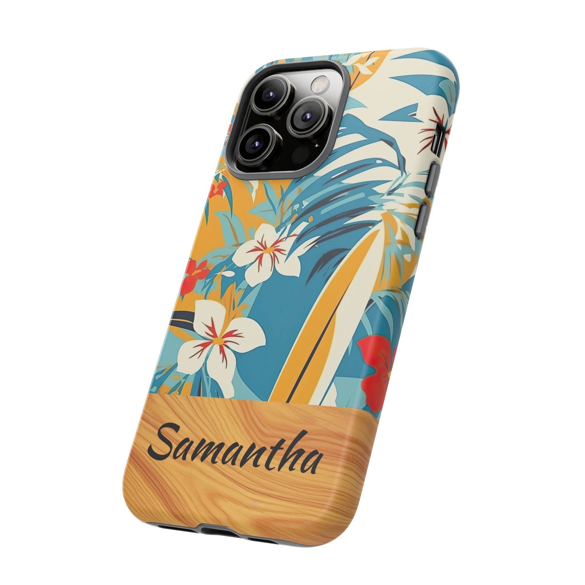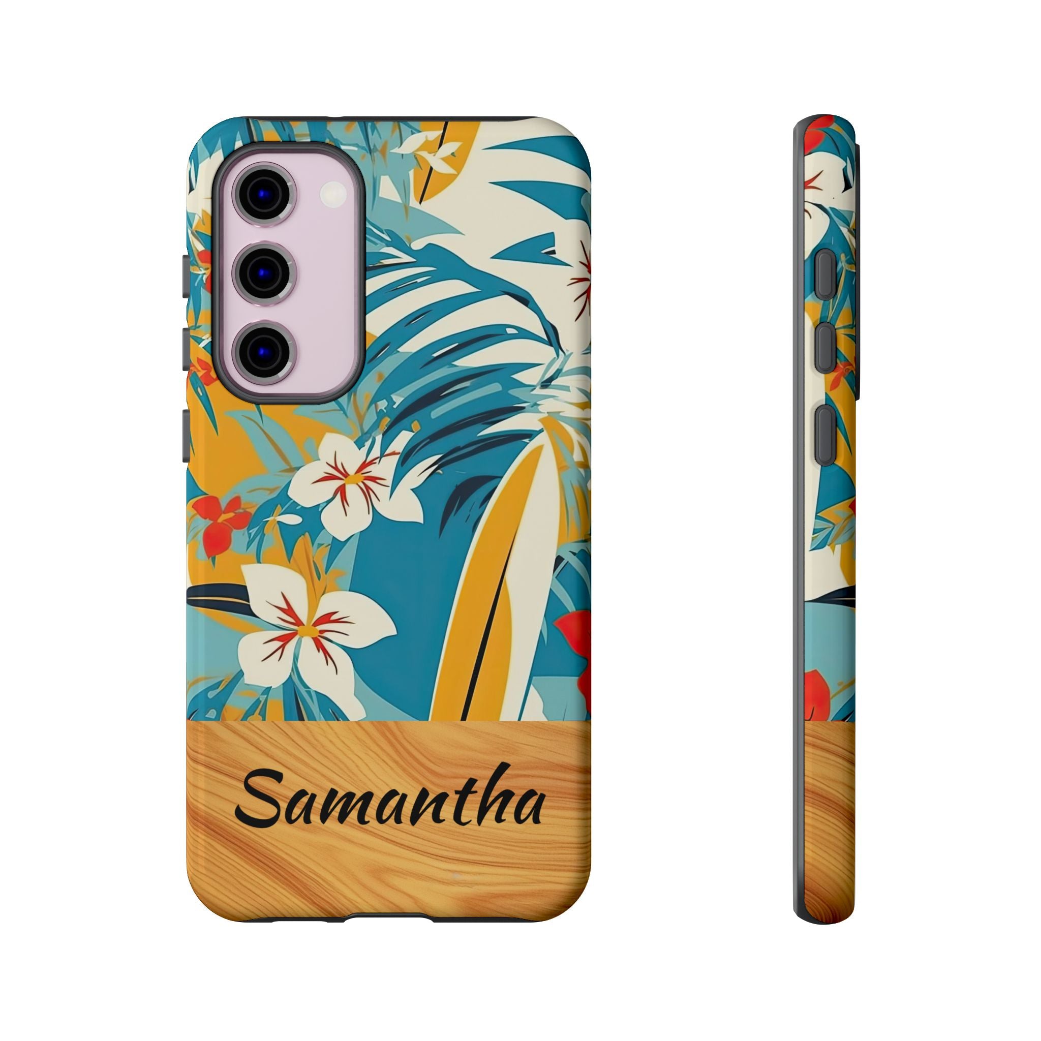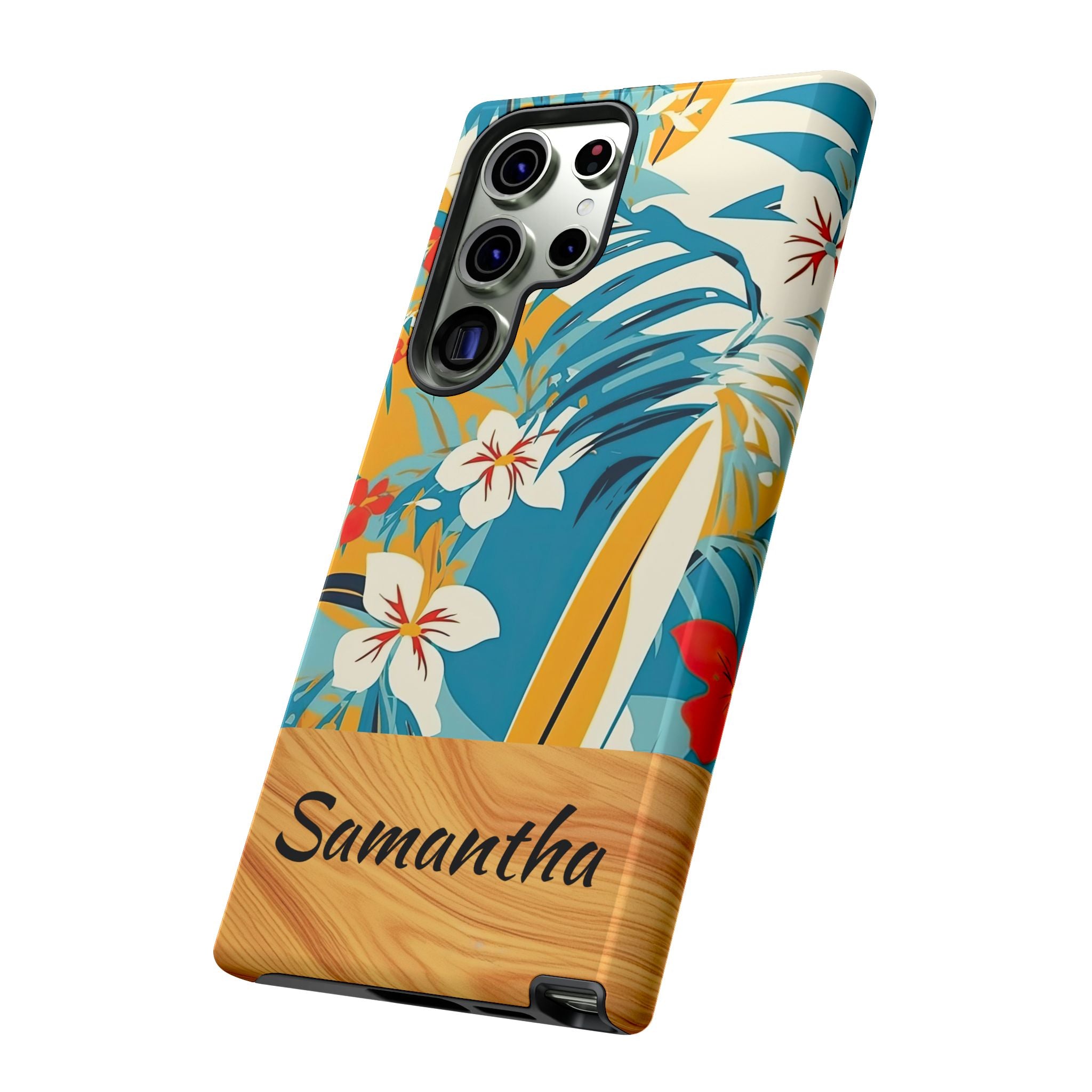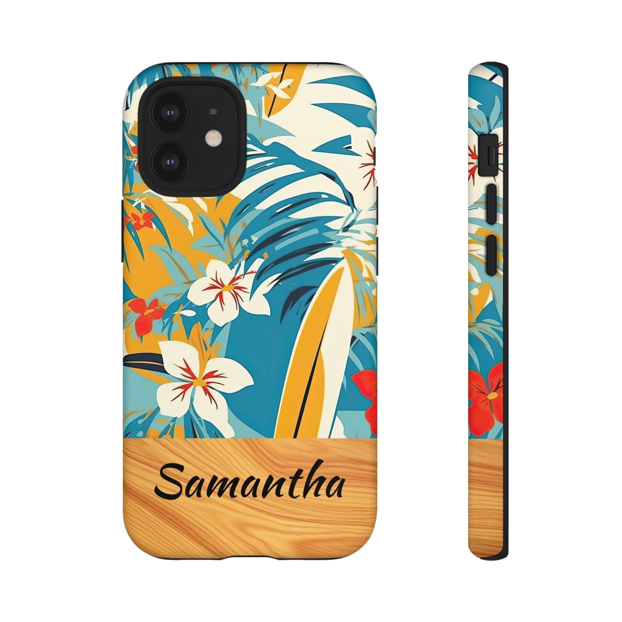Custom Phone Tough Case Hawaii Surf Boards with Woodgrain Personalize with Name