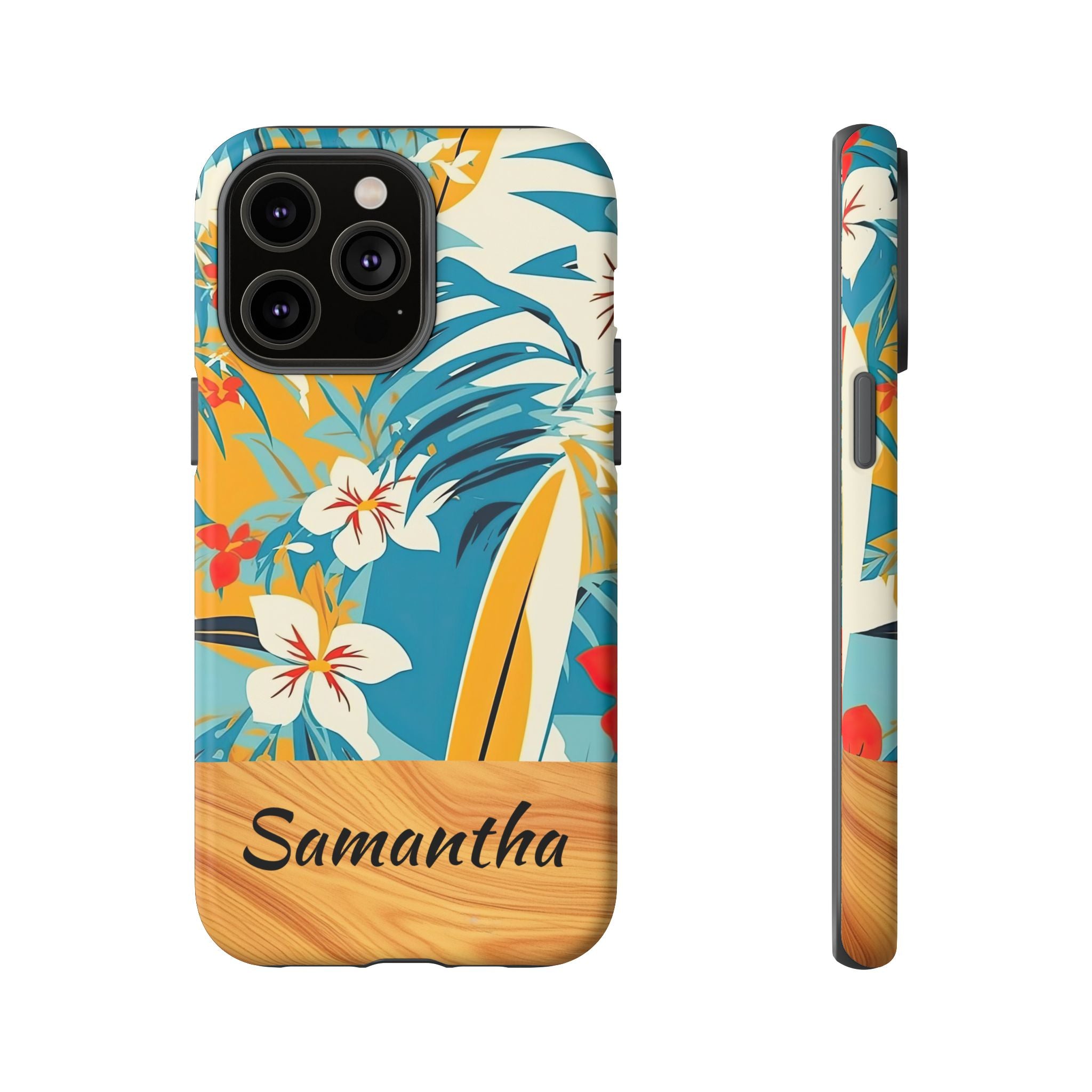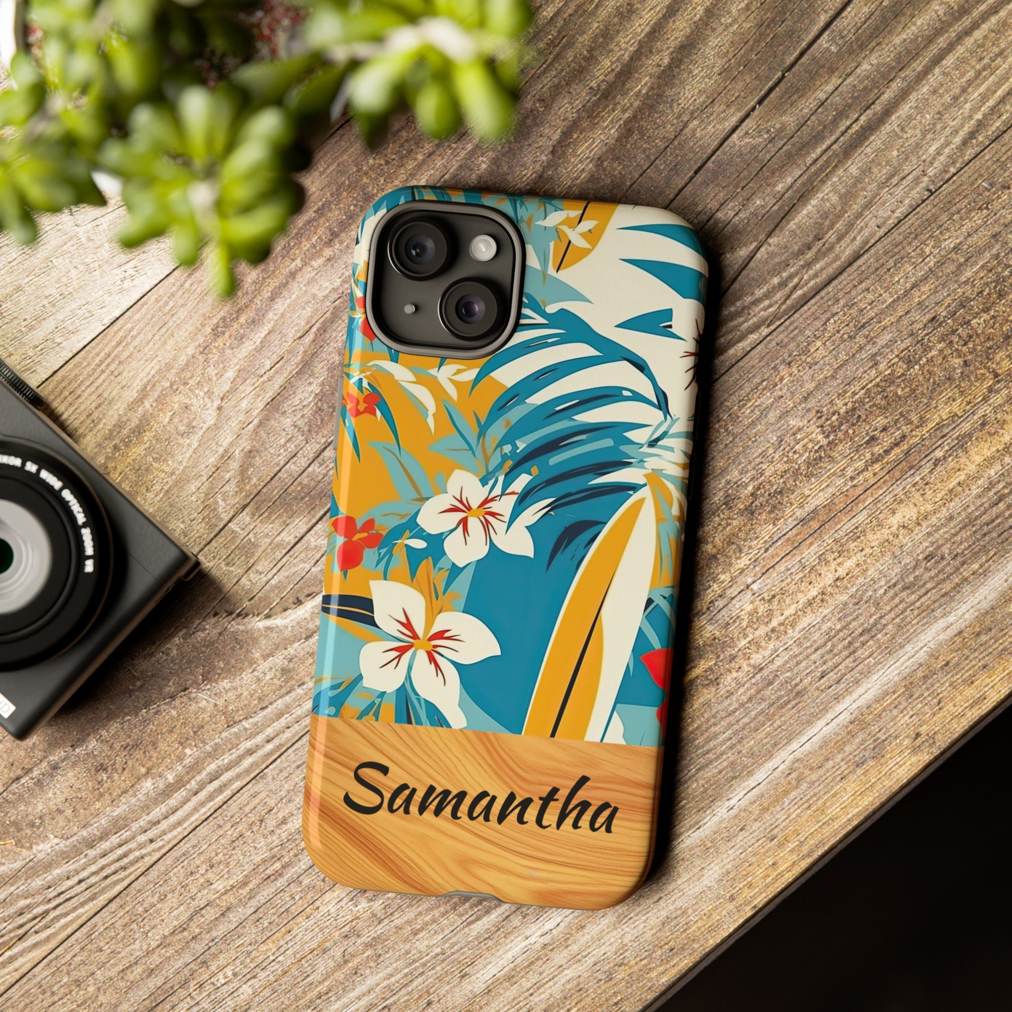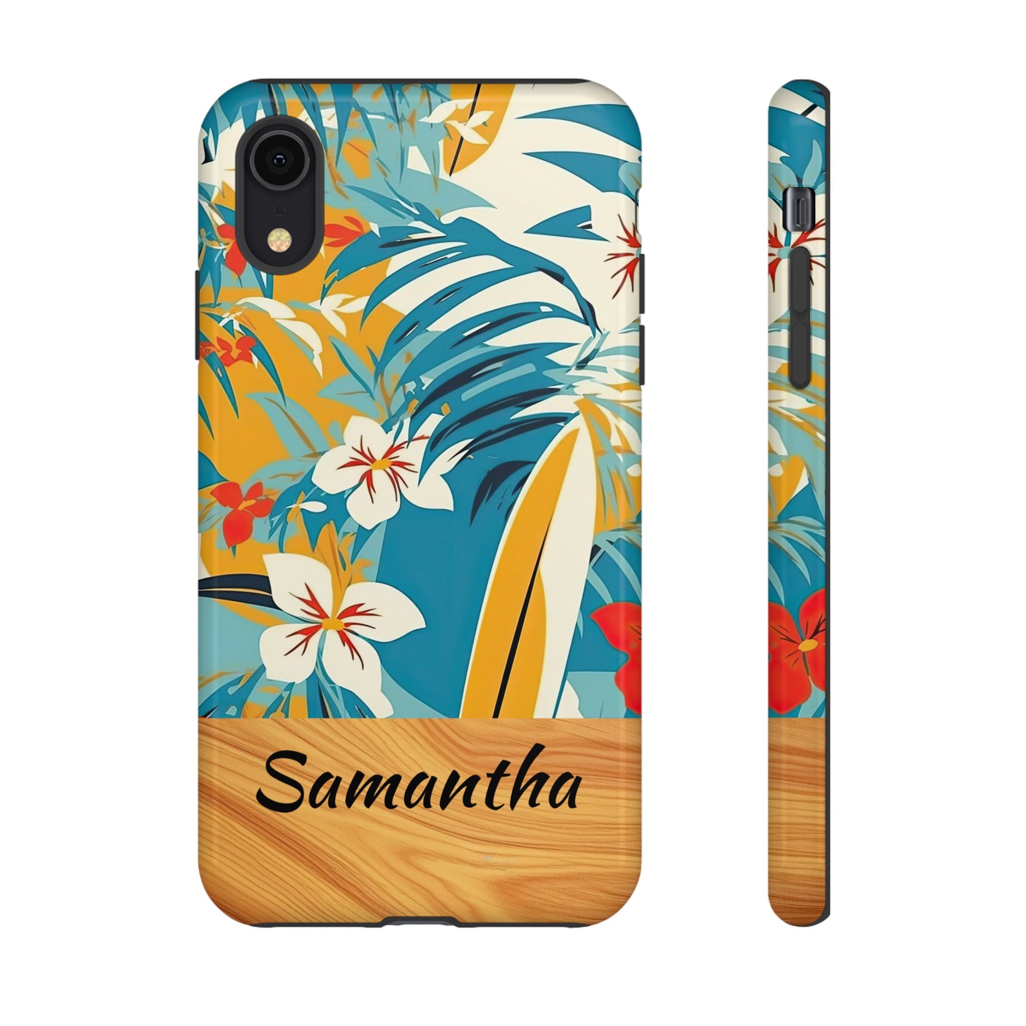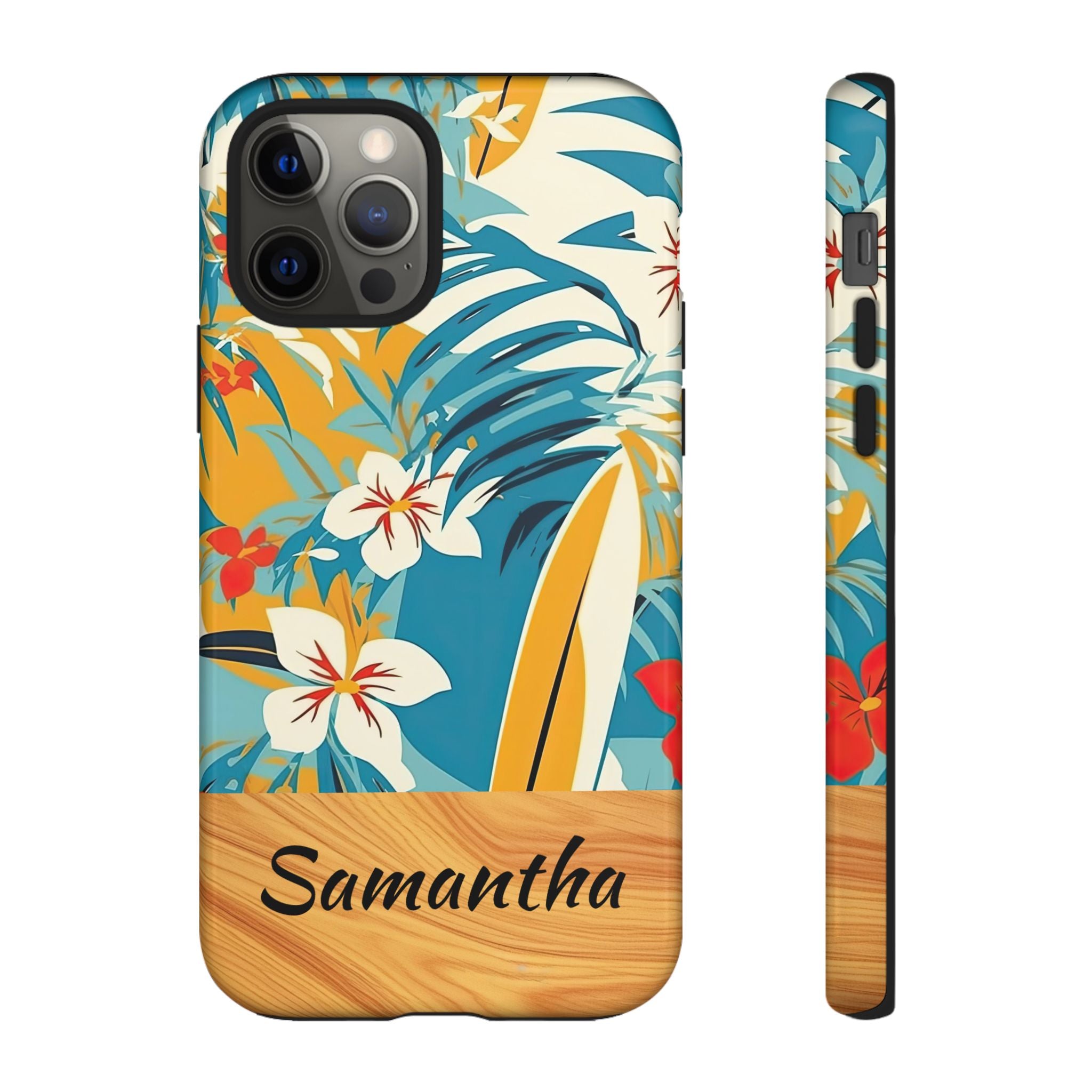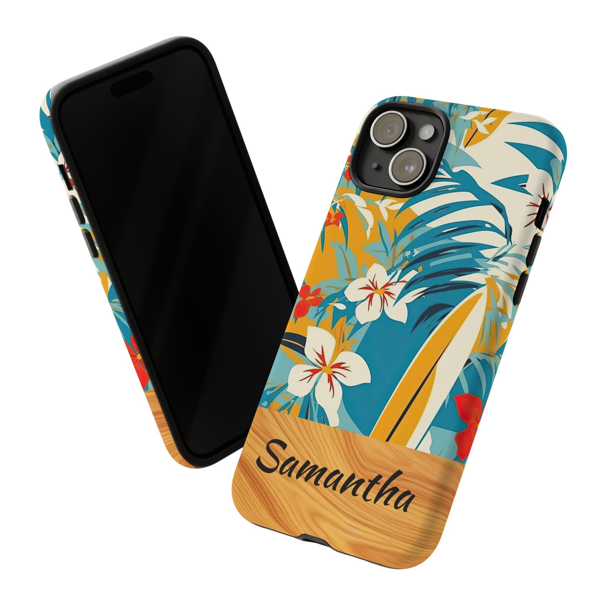 Custom Phone Tough Case Hawaii Surf Boards with Woodgrain Personalize with Name