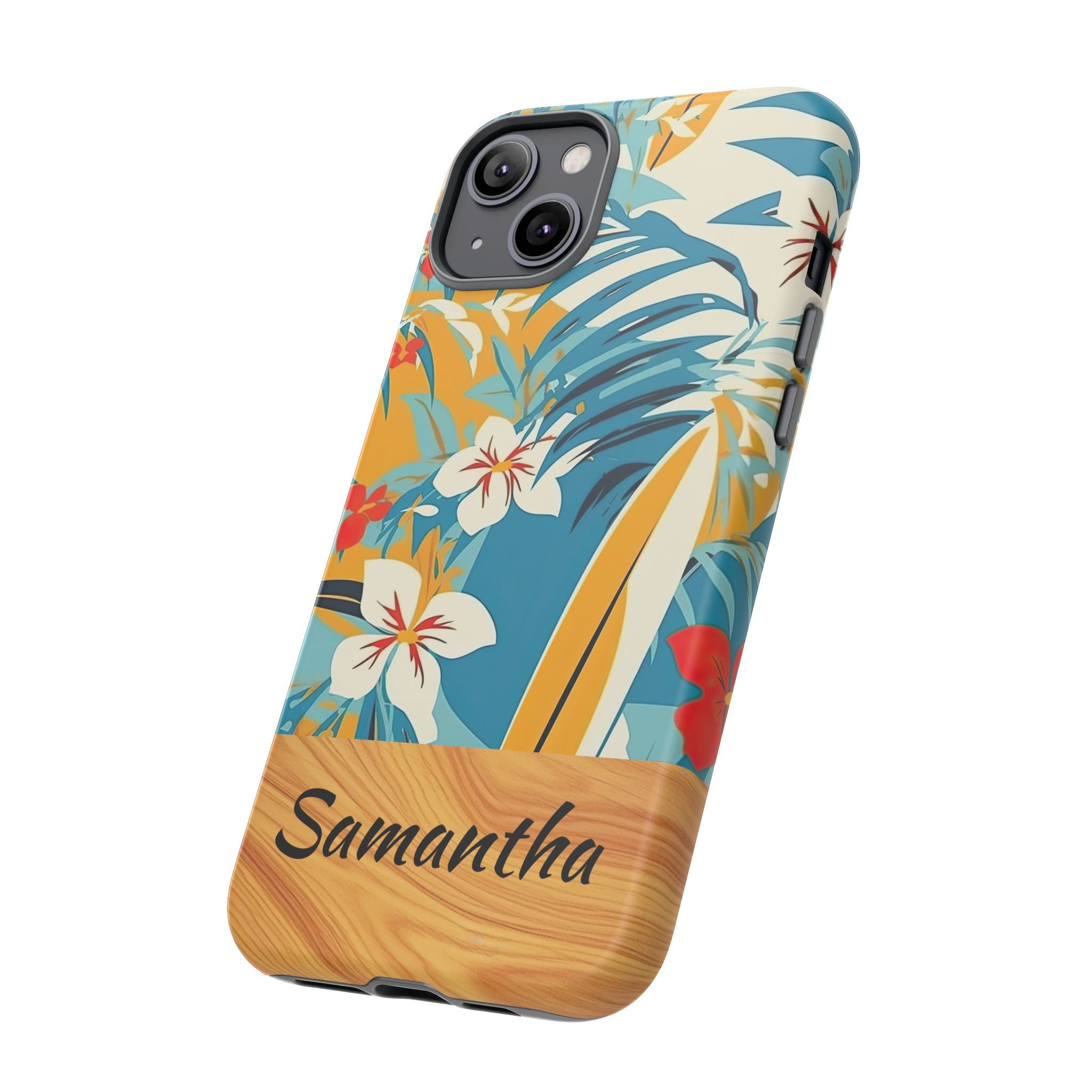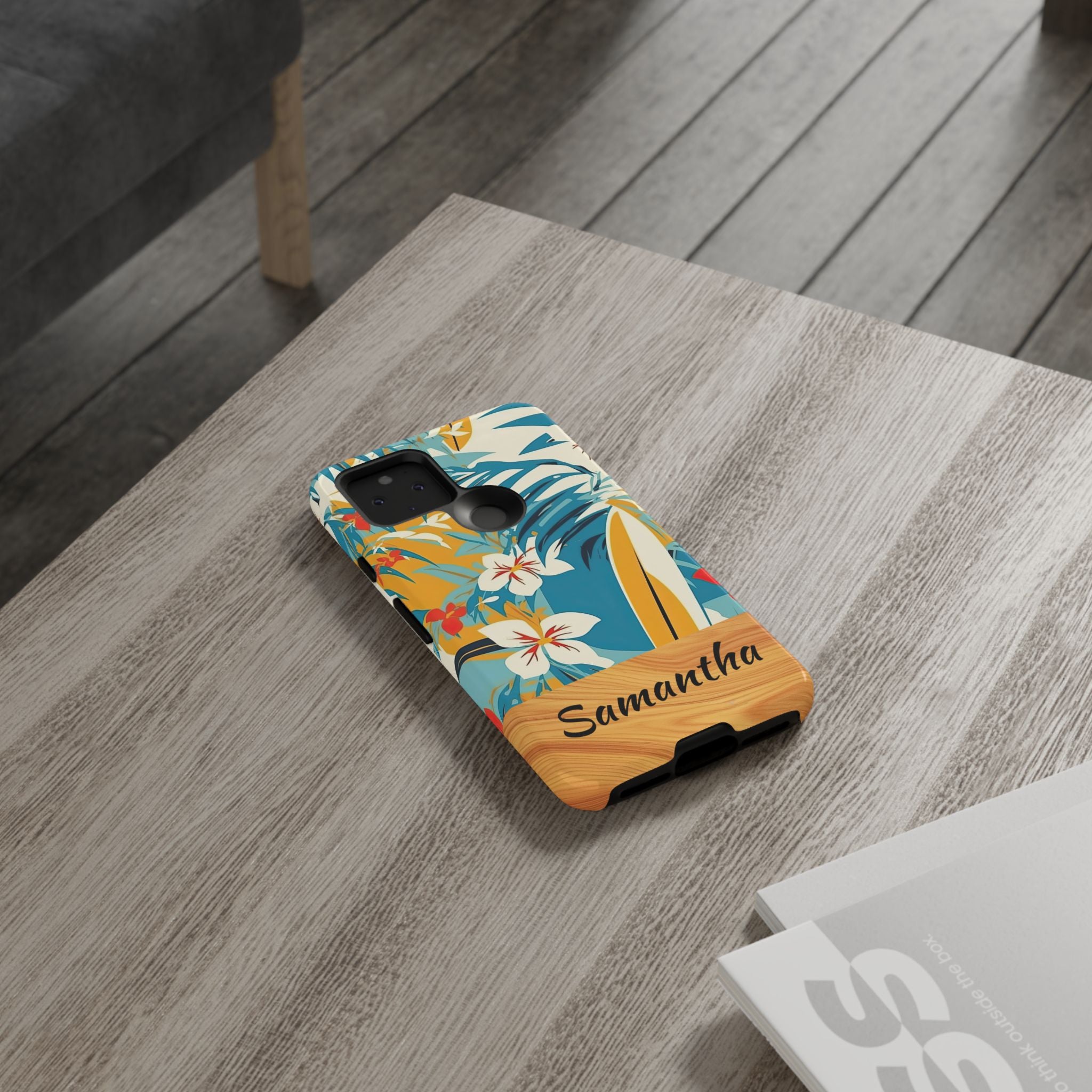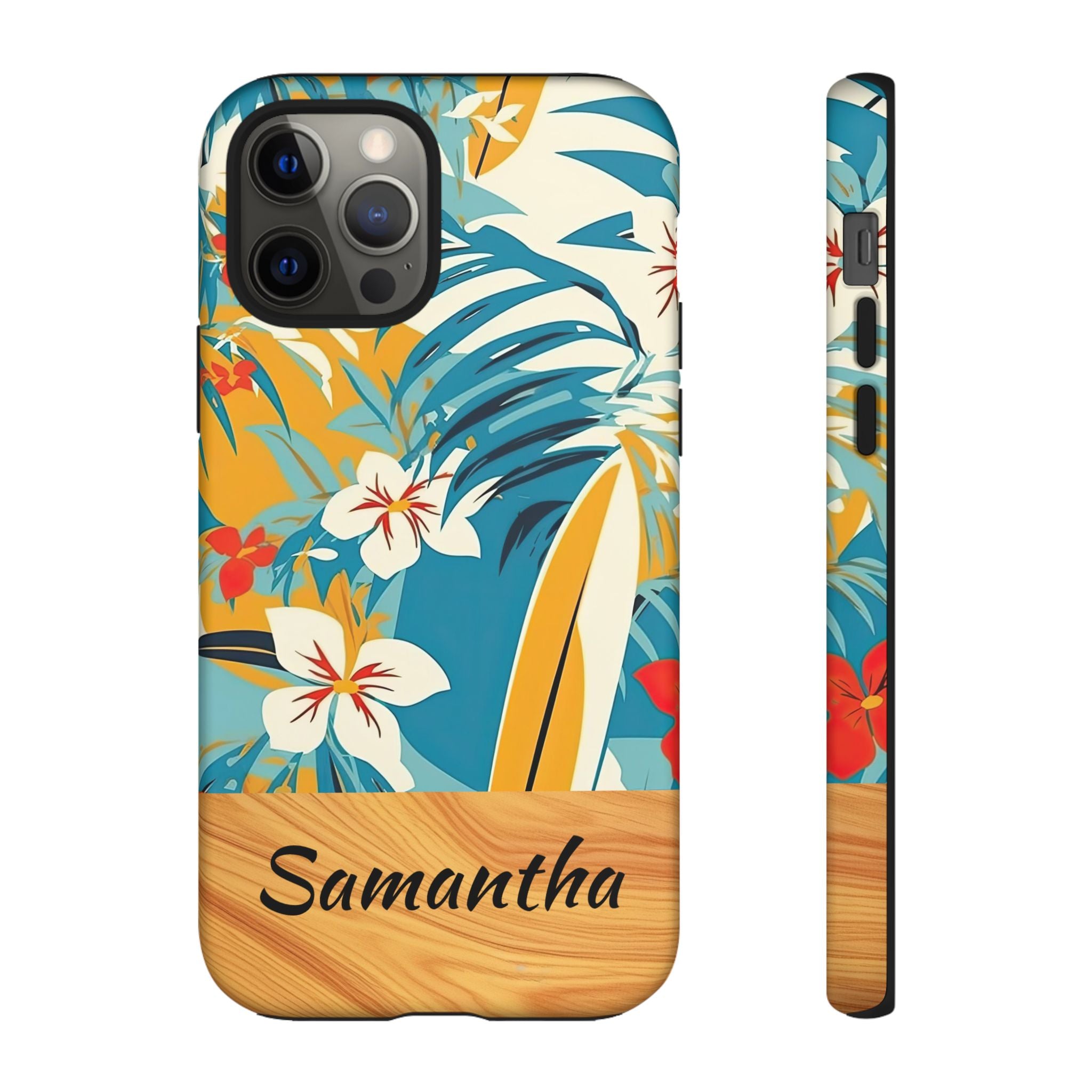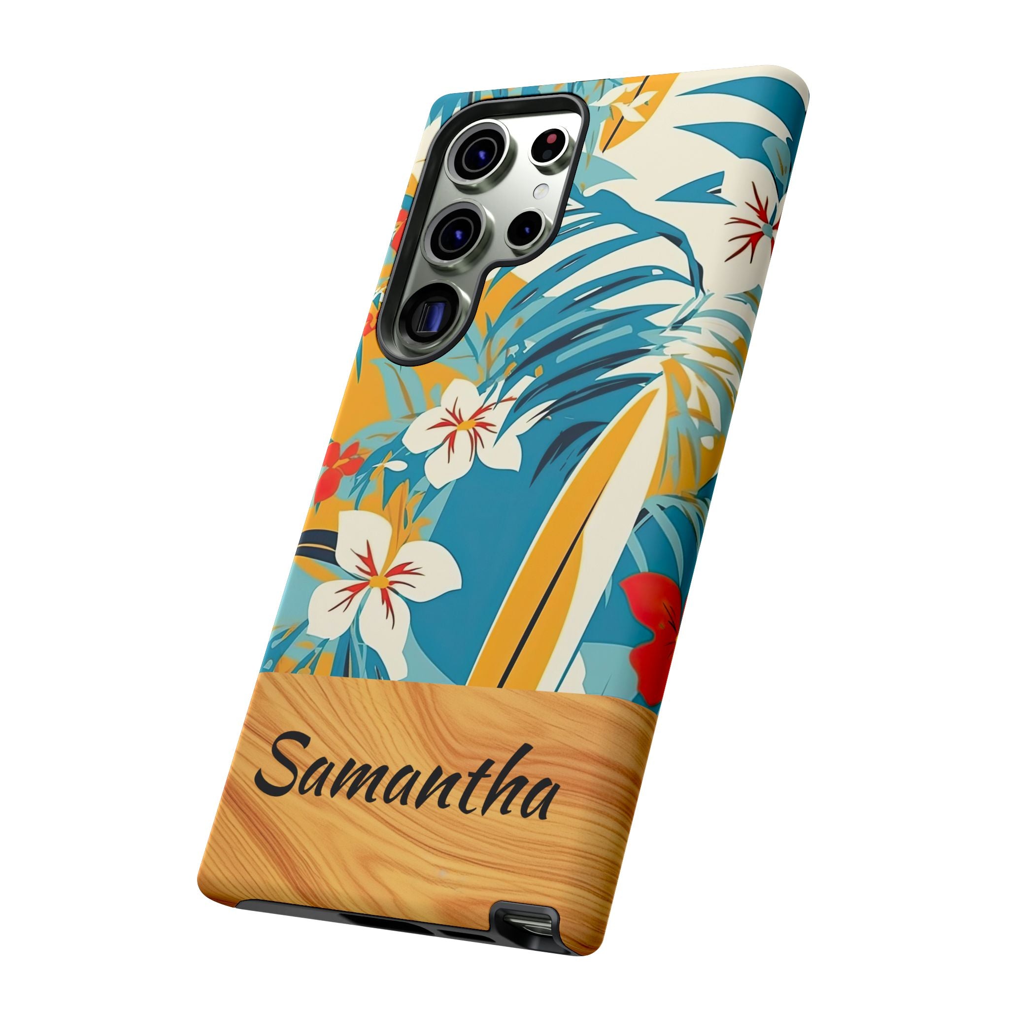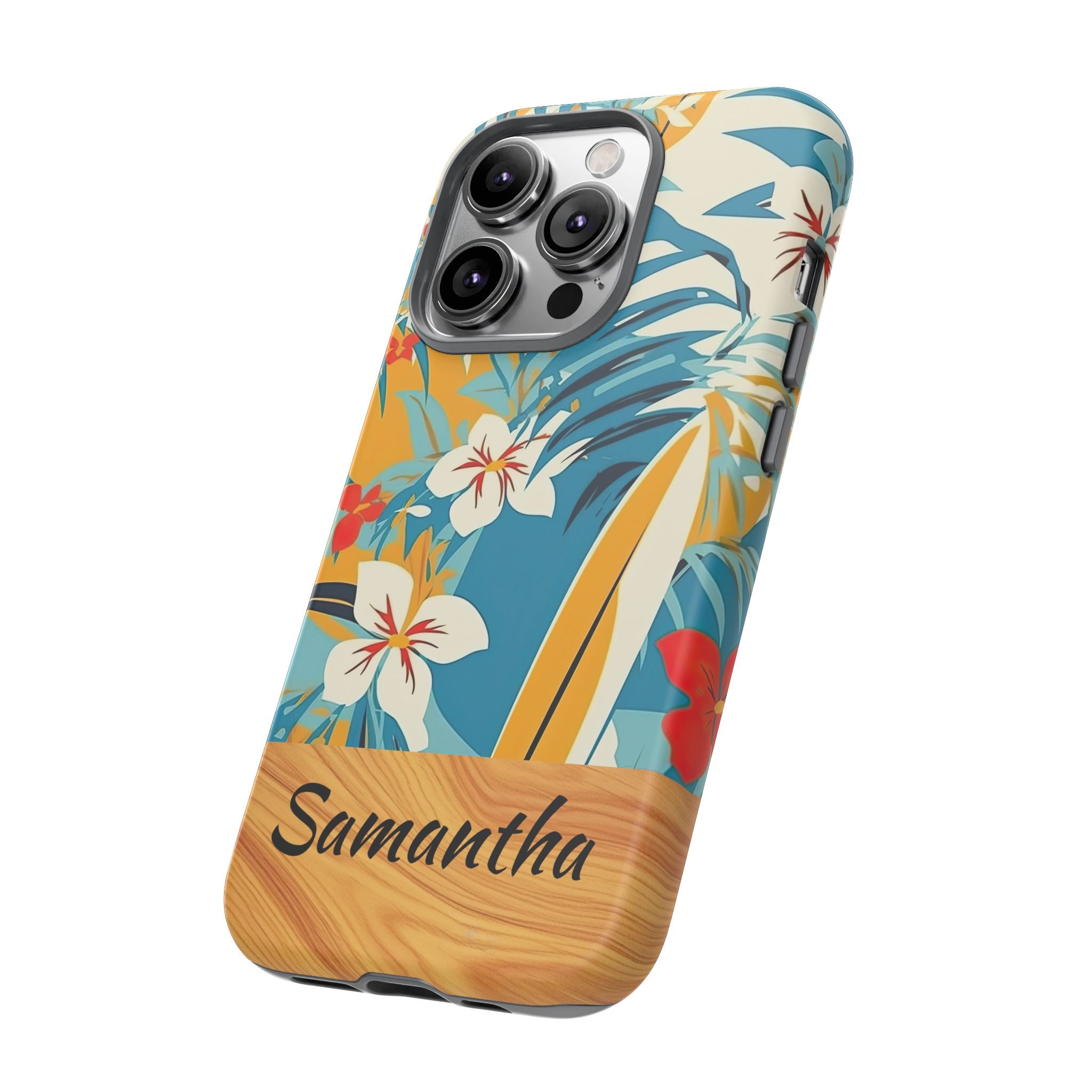 Custom Phone Tough Case Hawaii Surf Boards with Woodgrain Personalize with Name