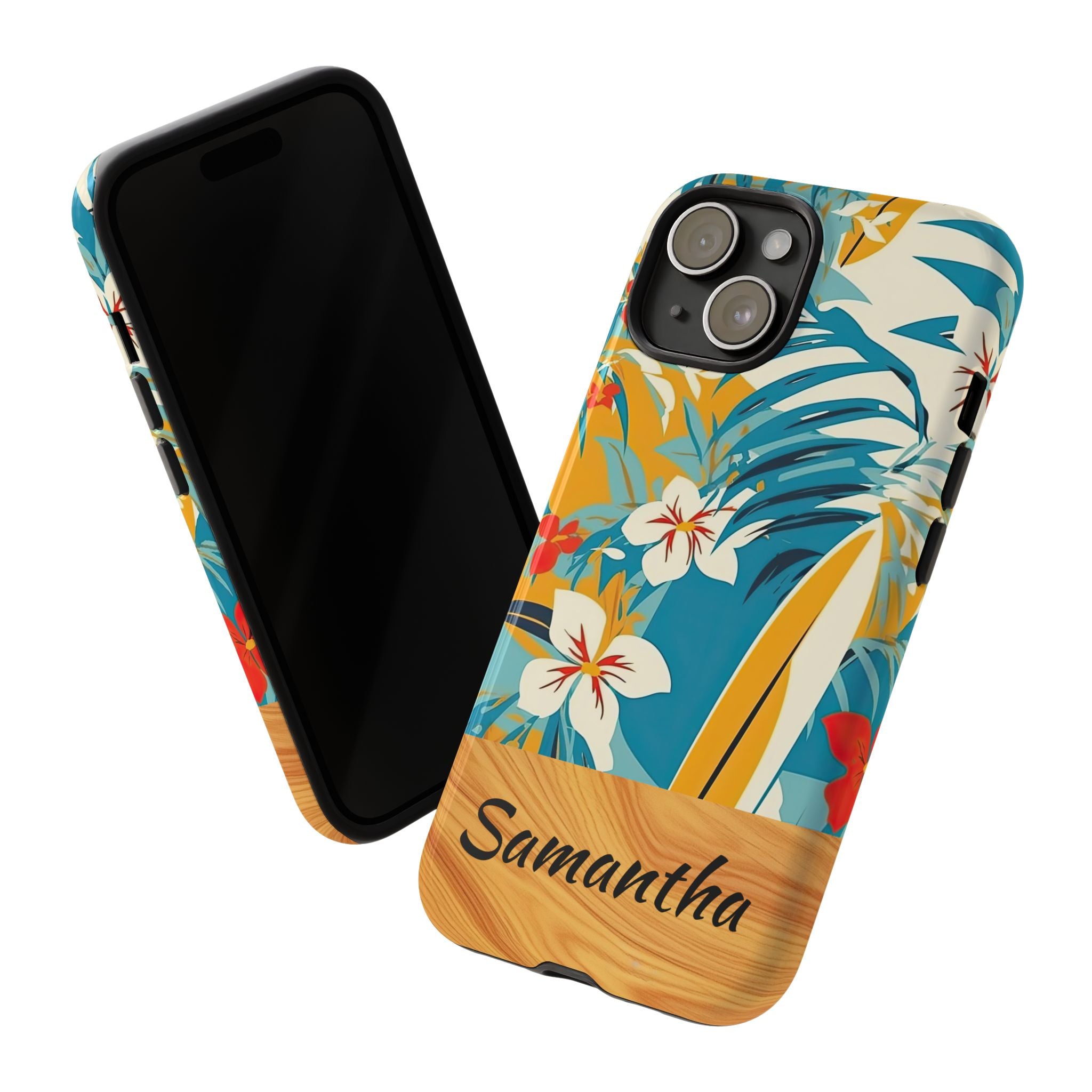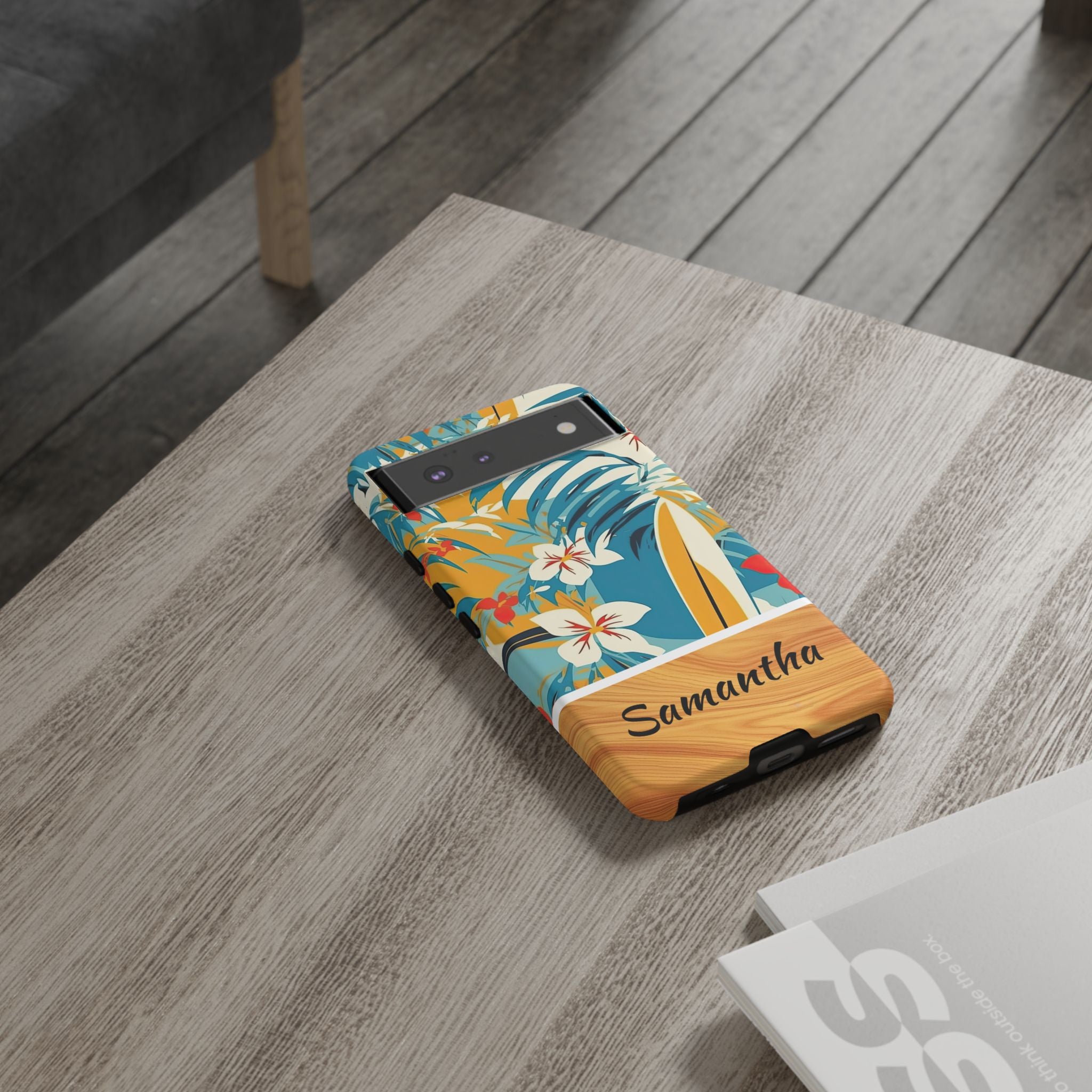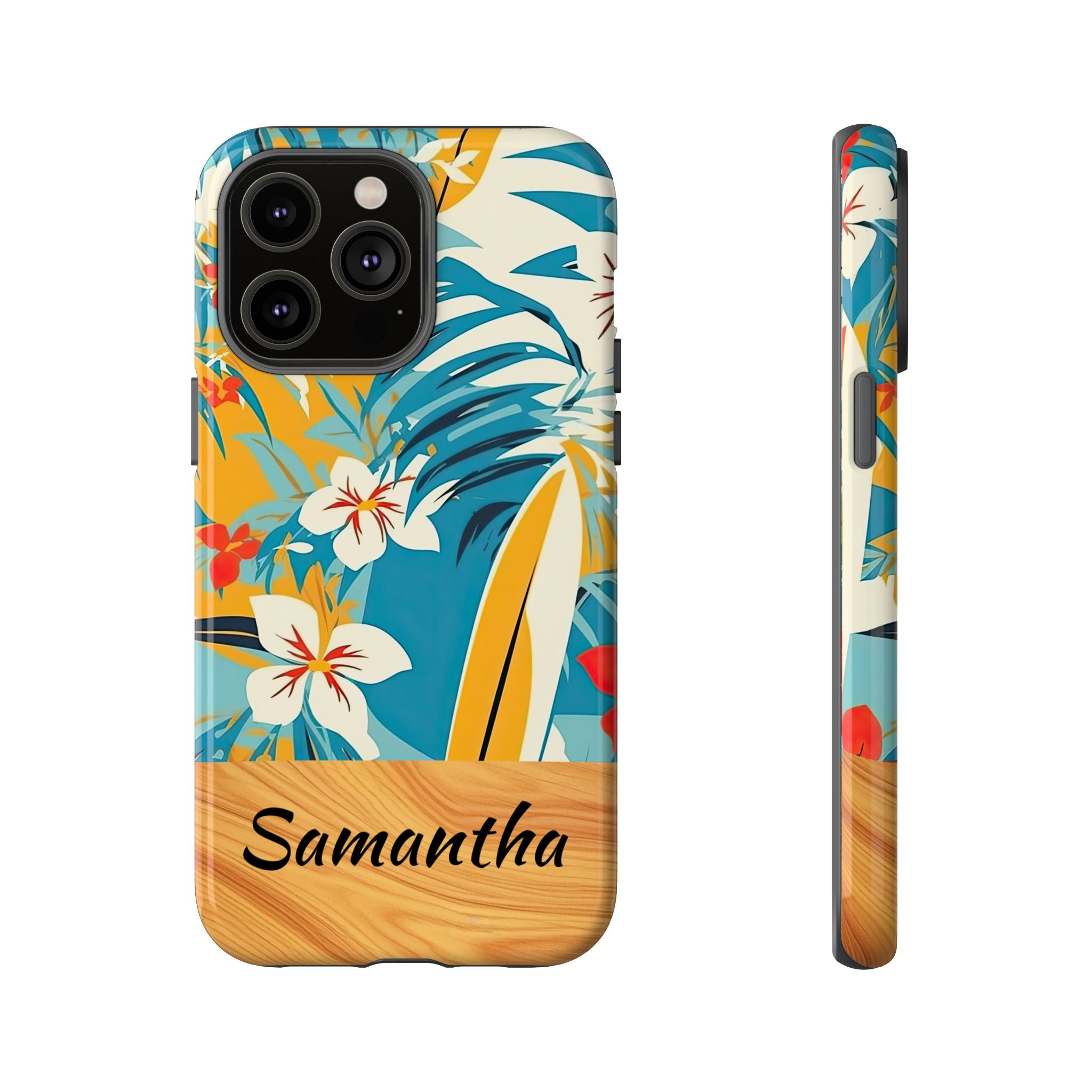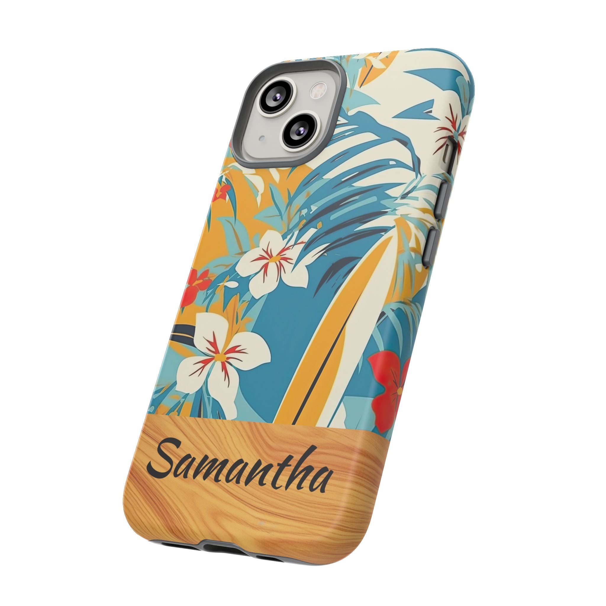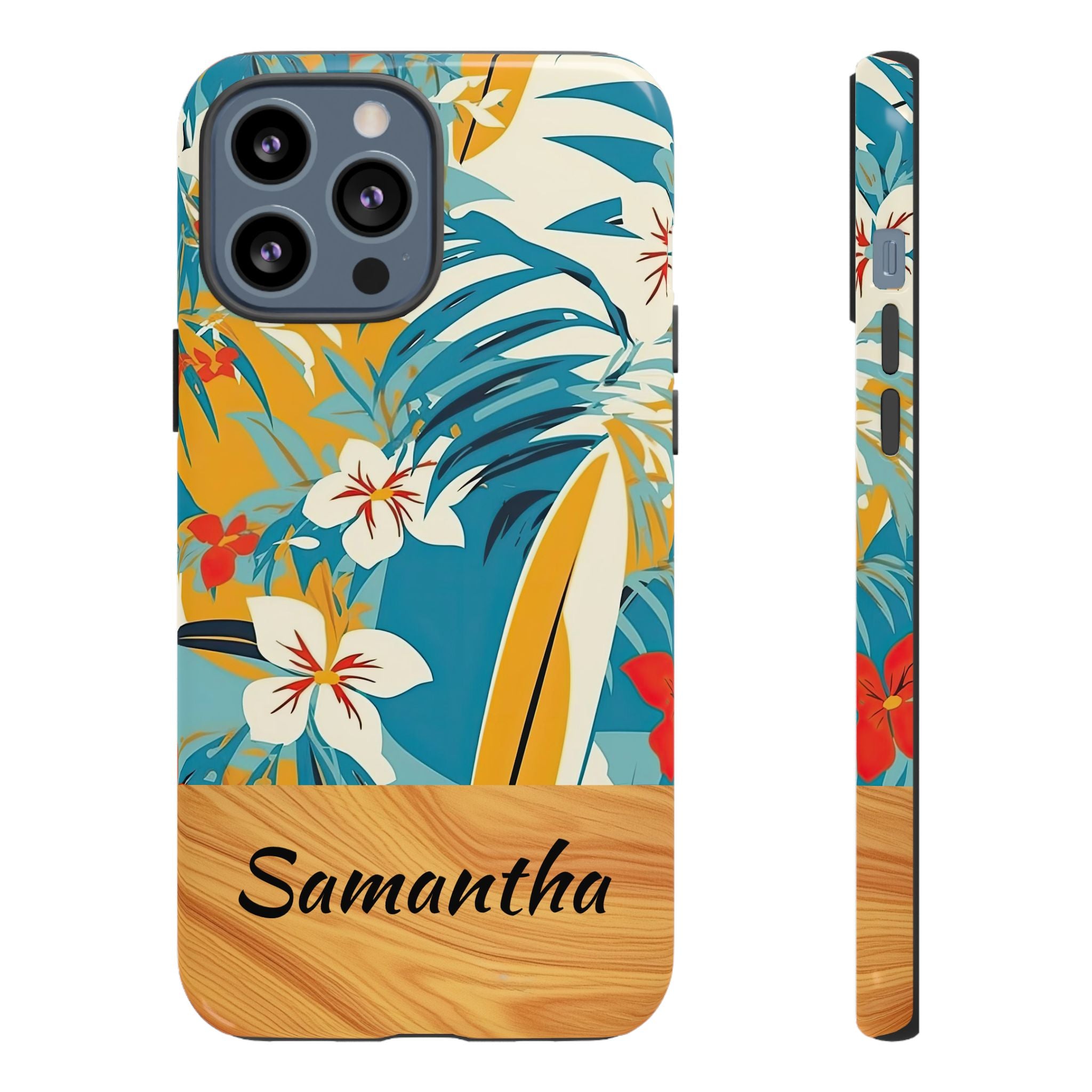 Custom Phone Tough Case Hawaii Surf Boards with Woodgrain Personalize with Name