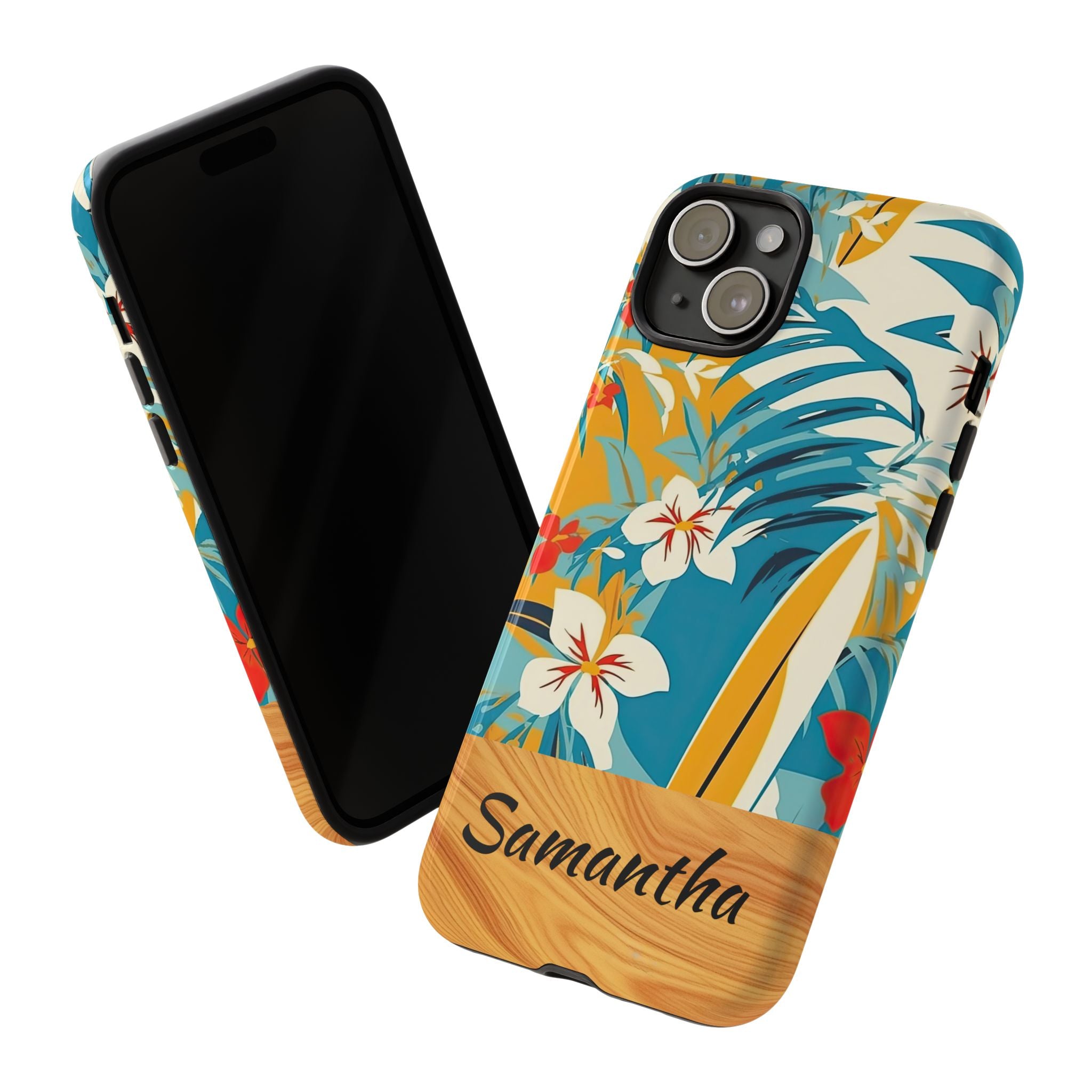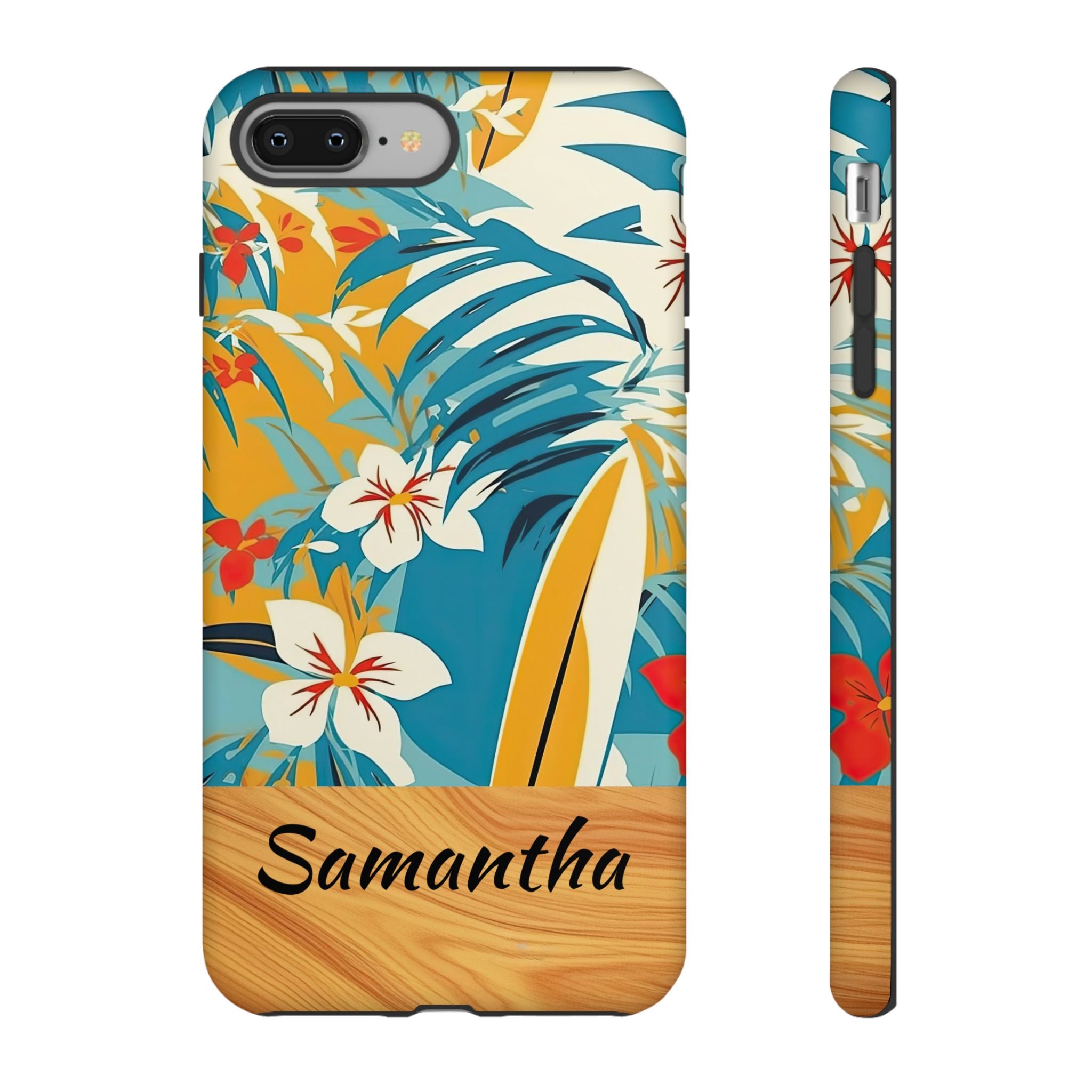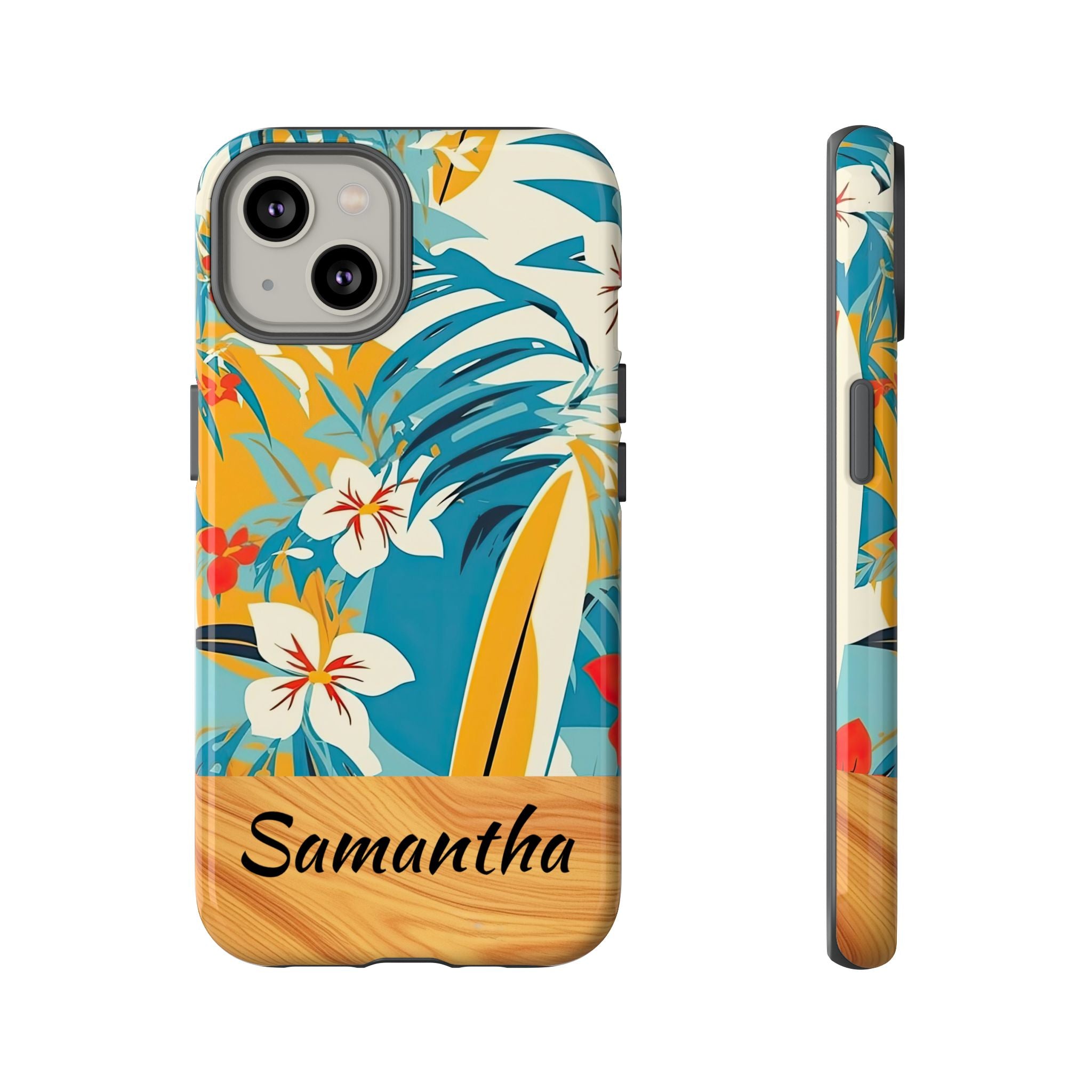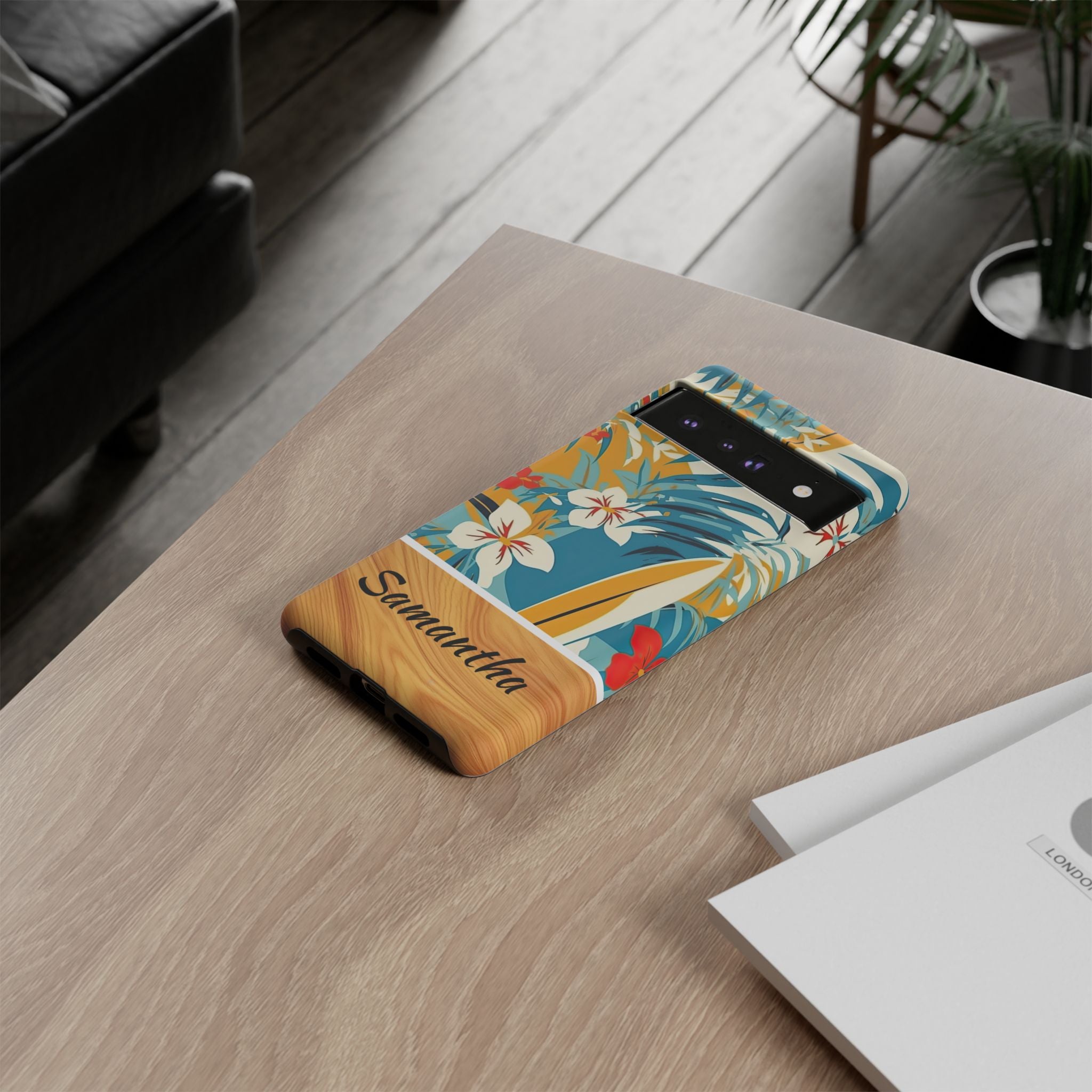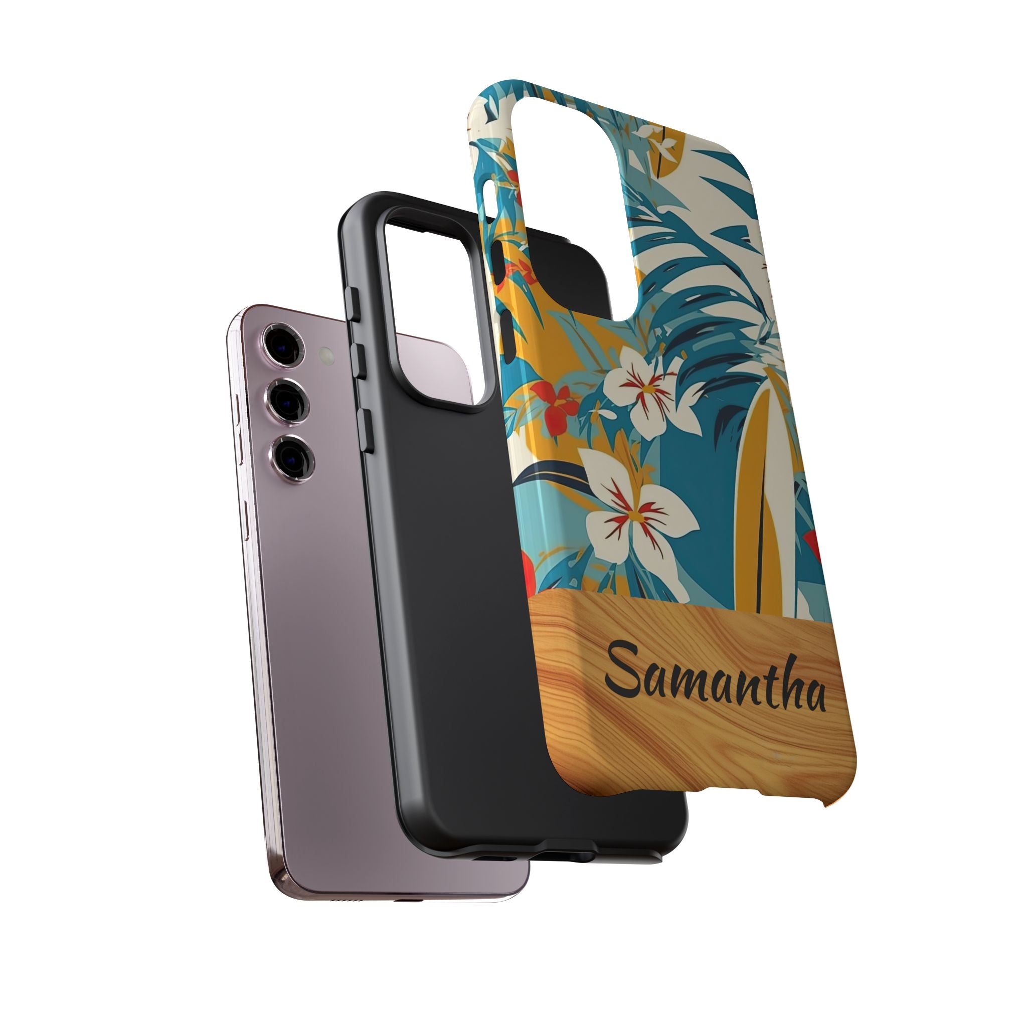 Custom Phone Tough Case Hawaii Surf Boards with Woodgrain Personalize with Name