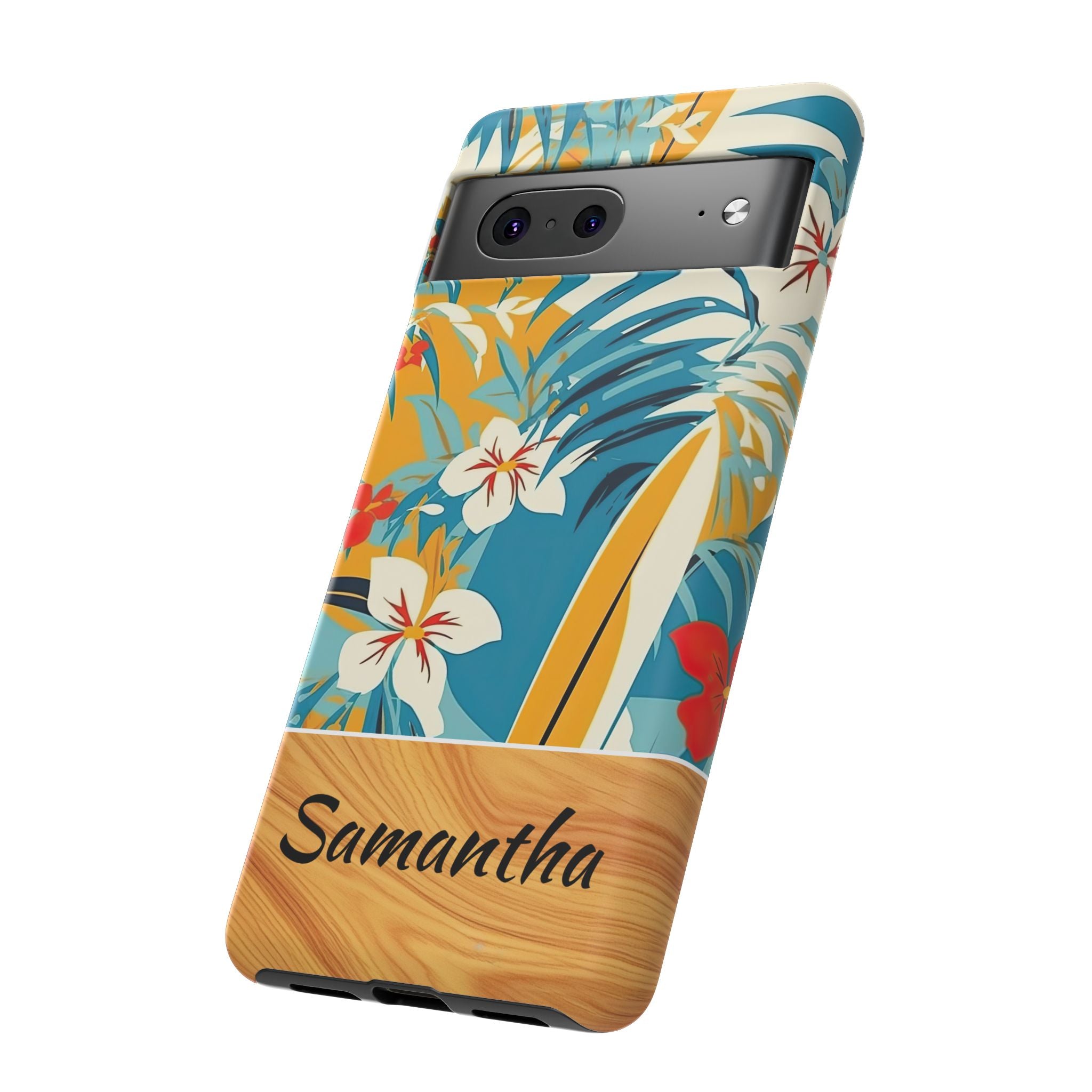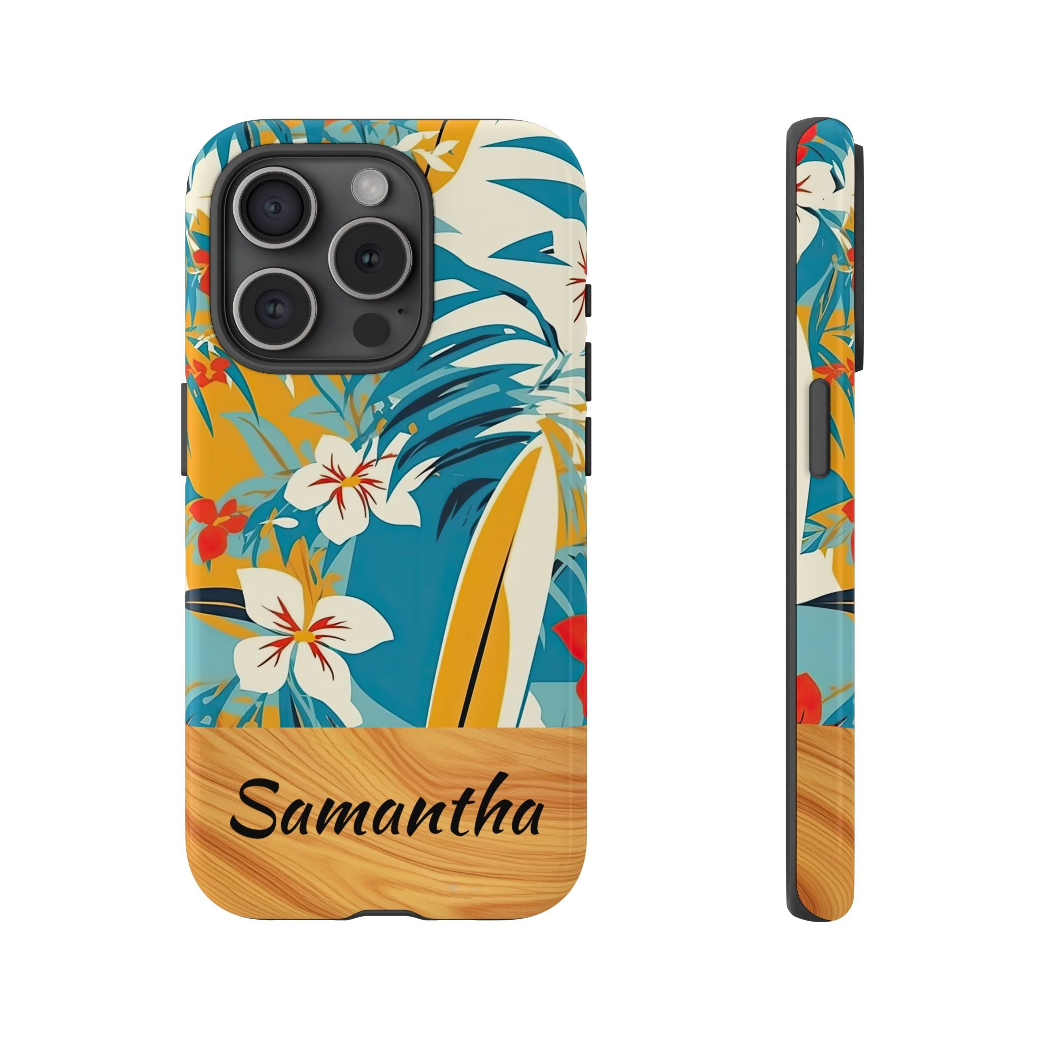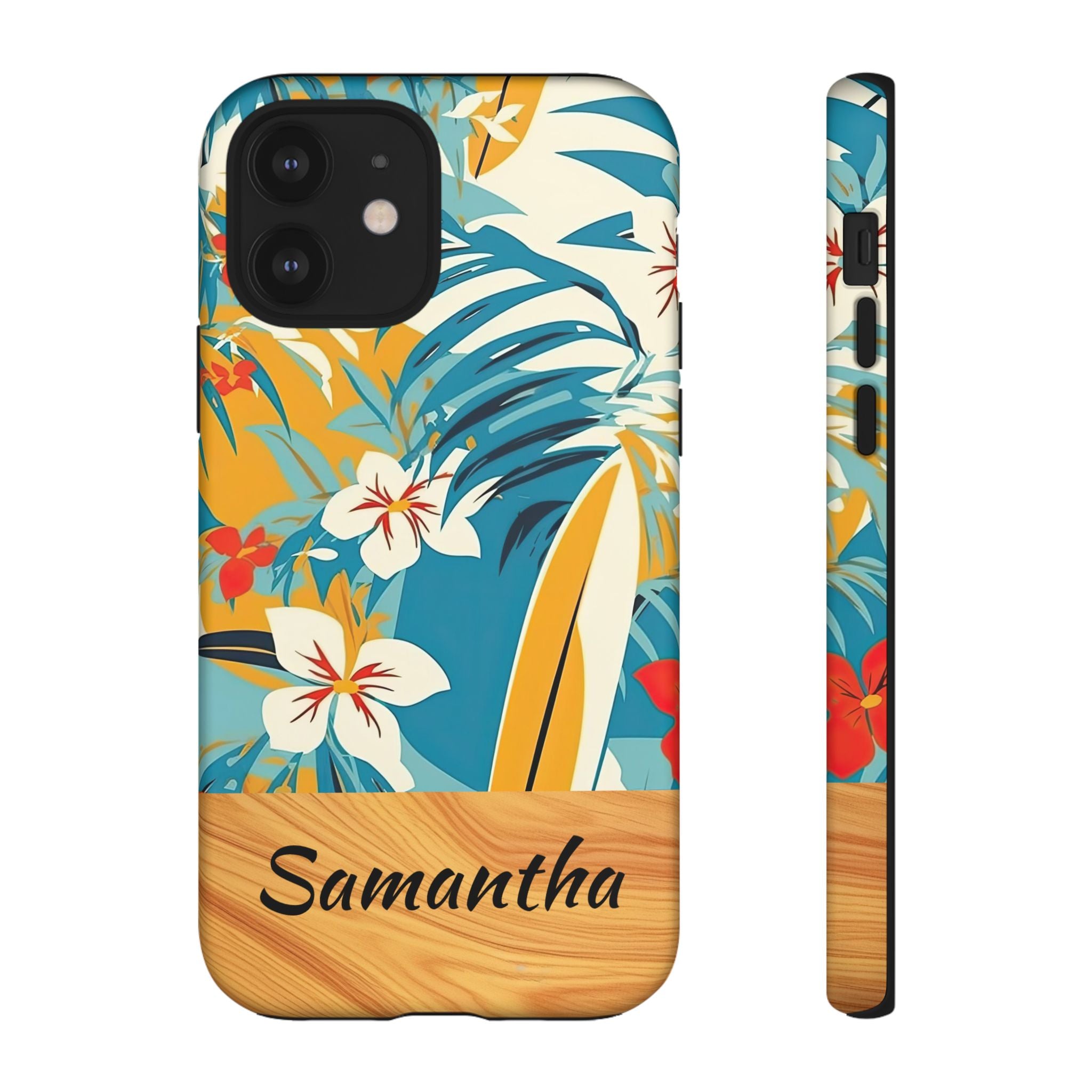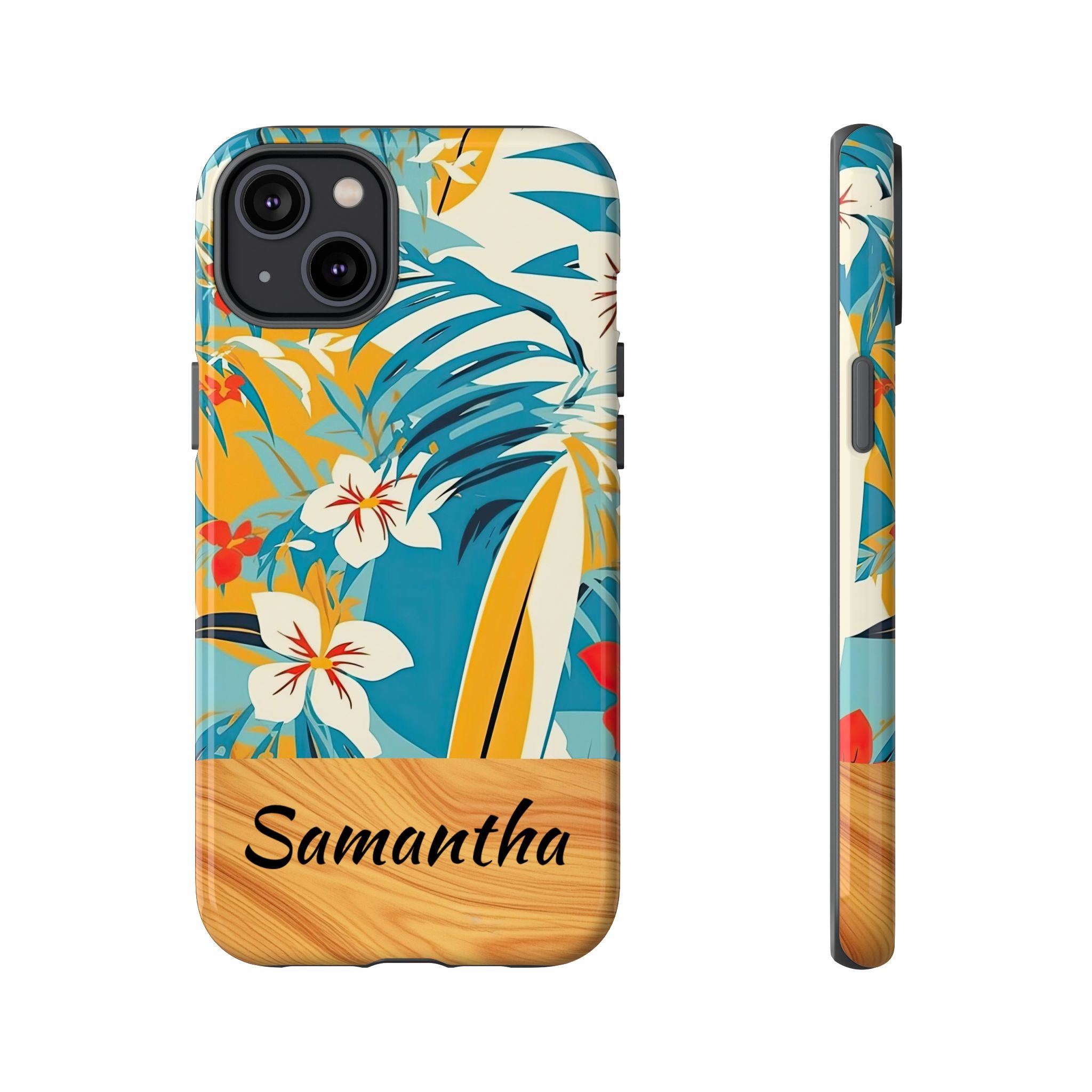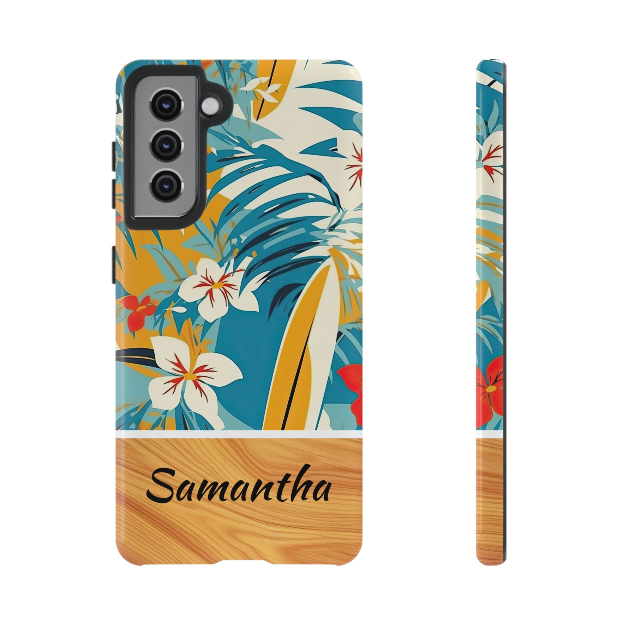 Custom Phone Tough Case Hawaii Surf Boards with Woodgrain Personalize with Name