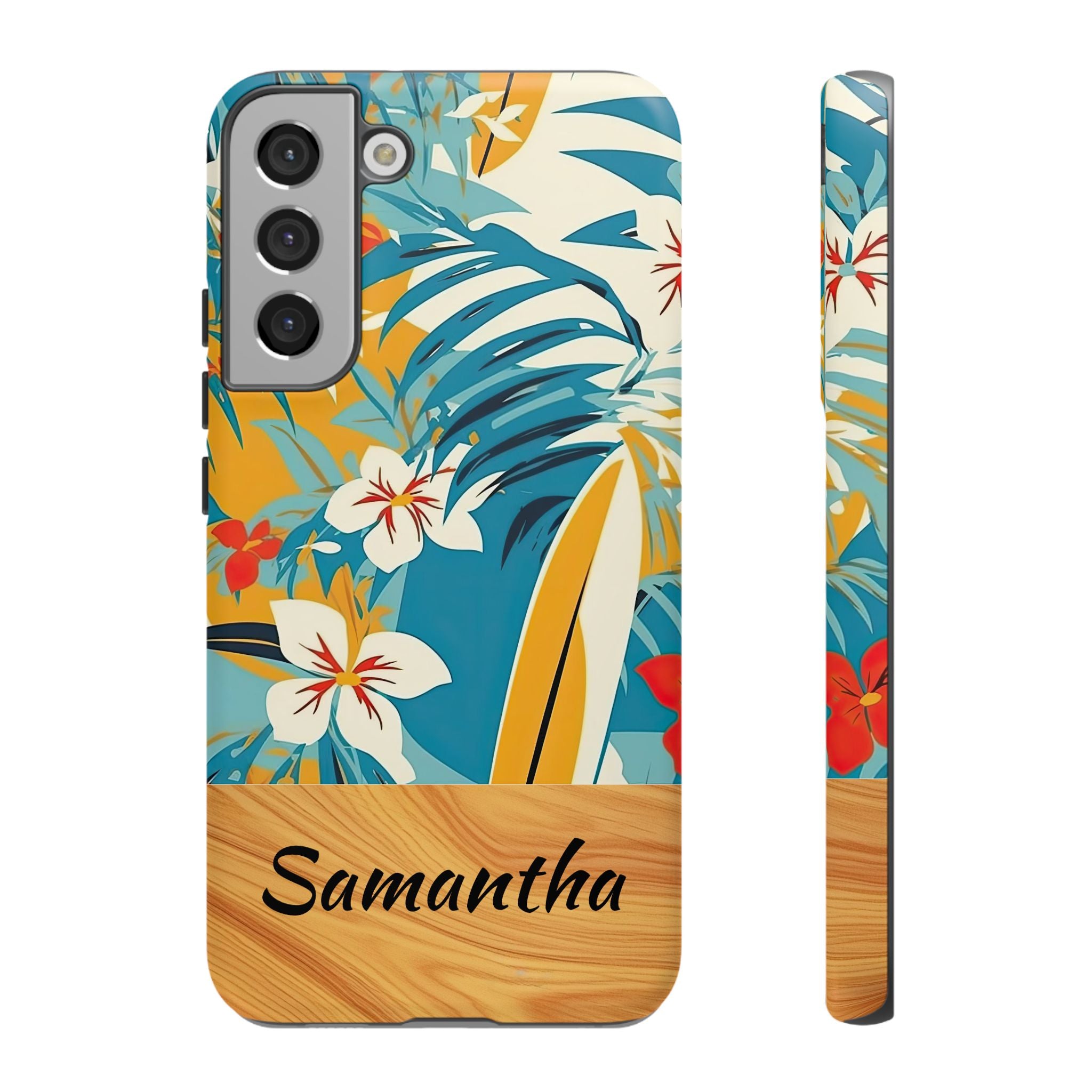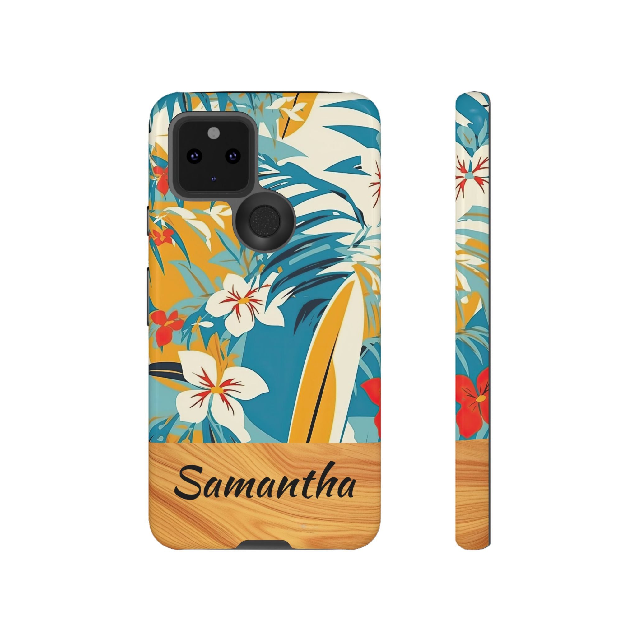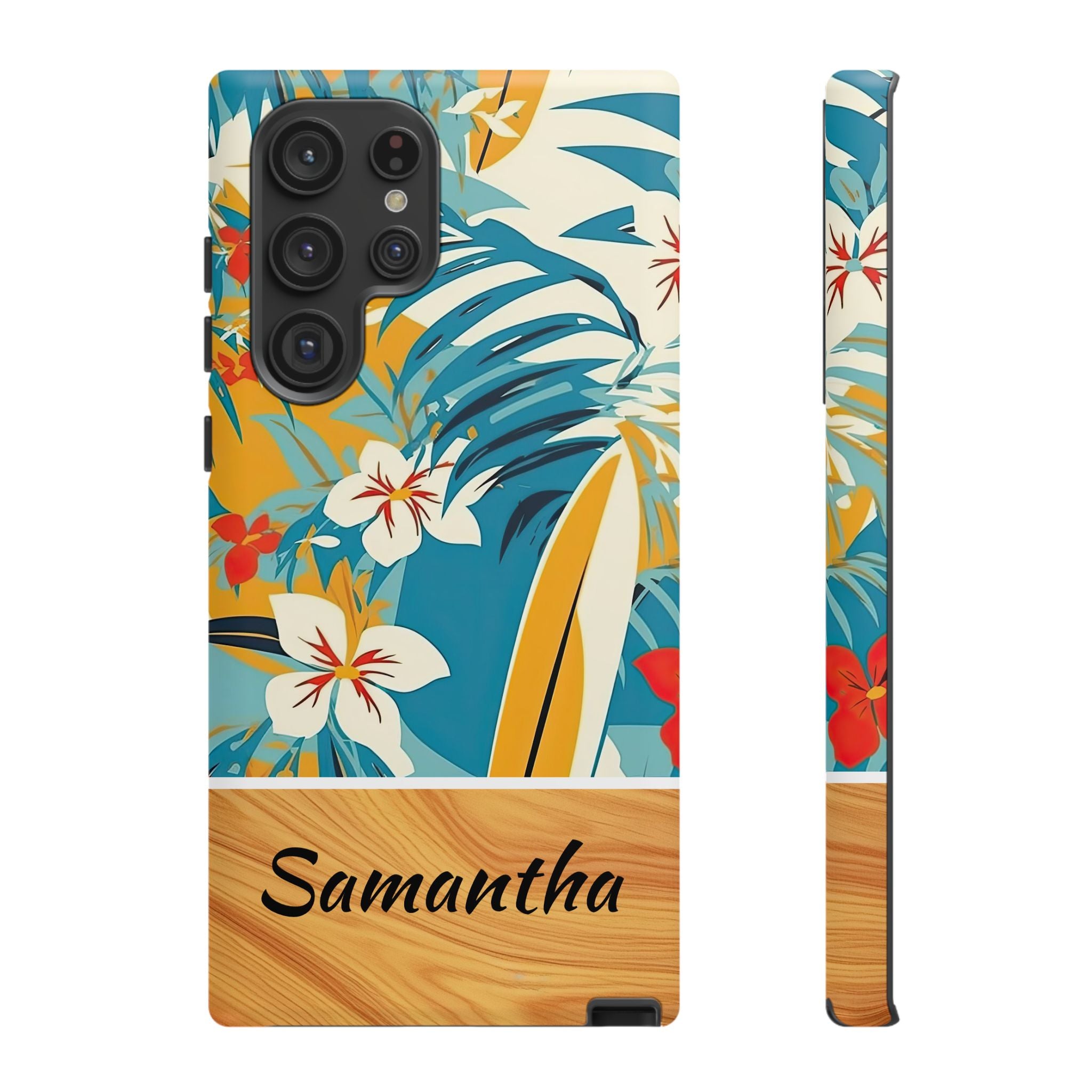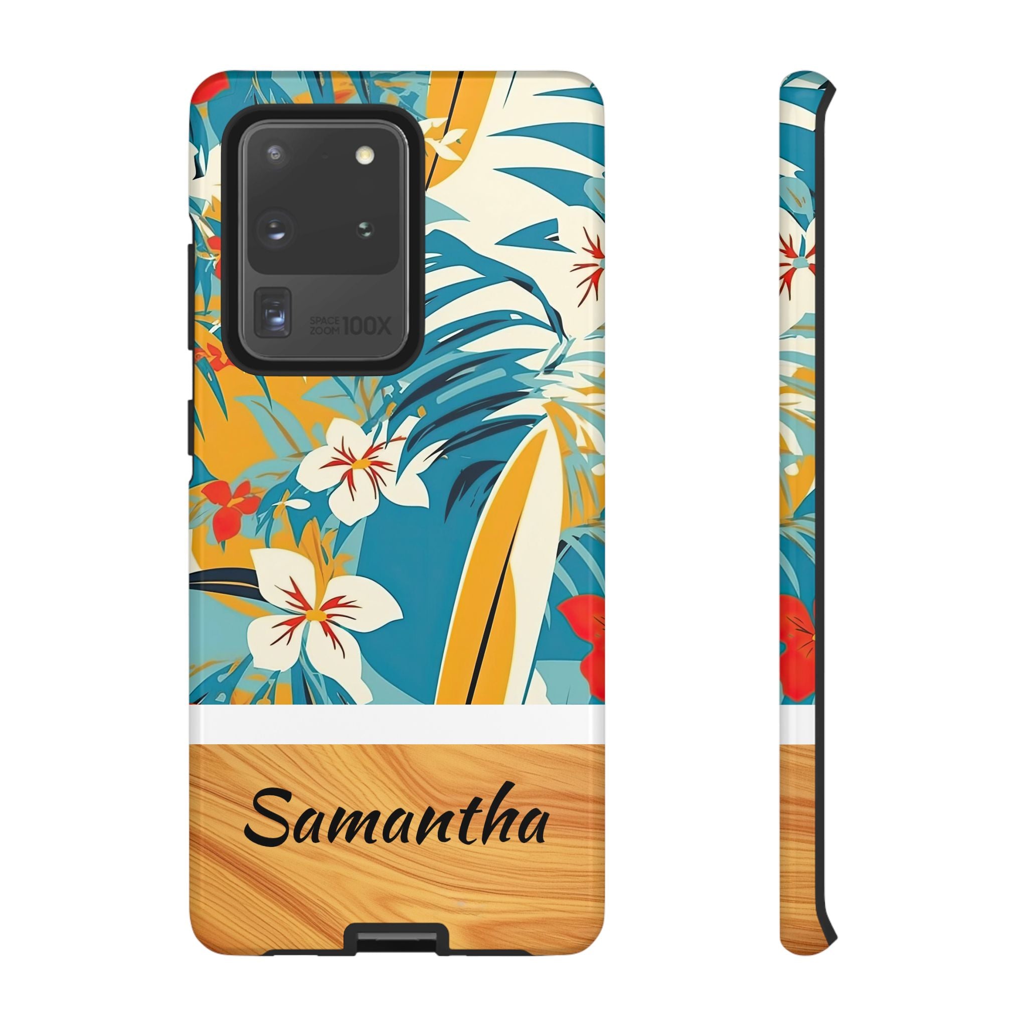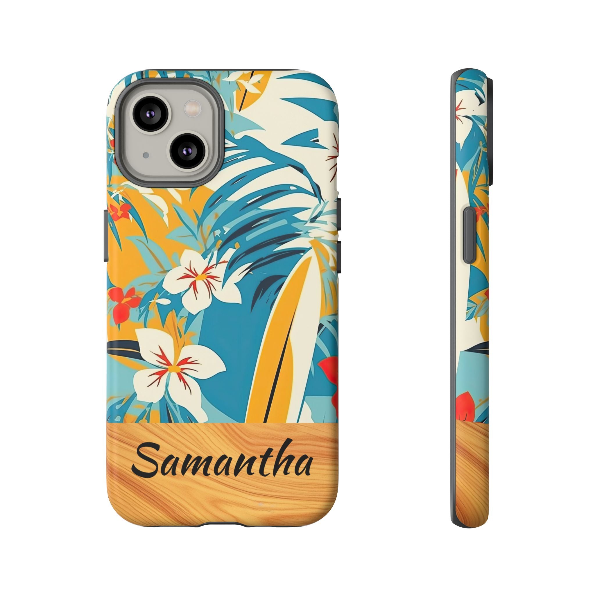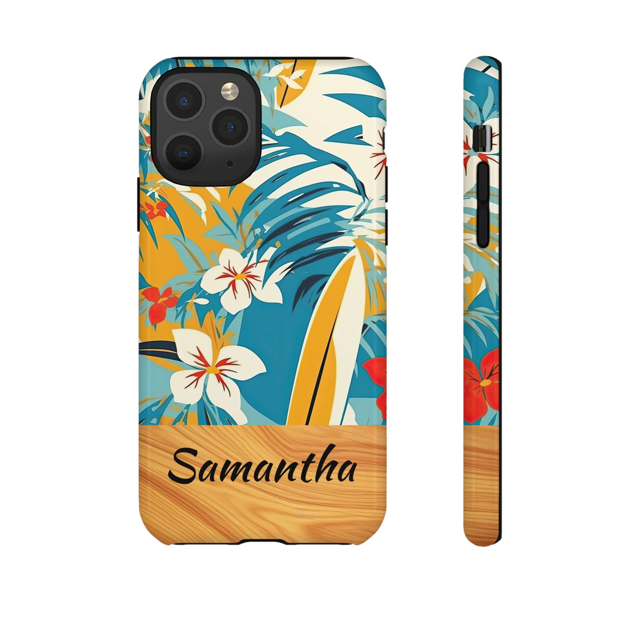 Custom Phone Tough Case Hawaii Surf Boards with Woodgrain Personalize with Name