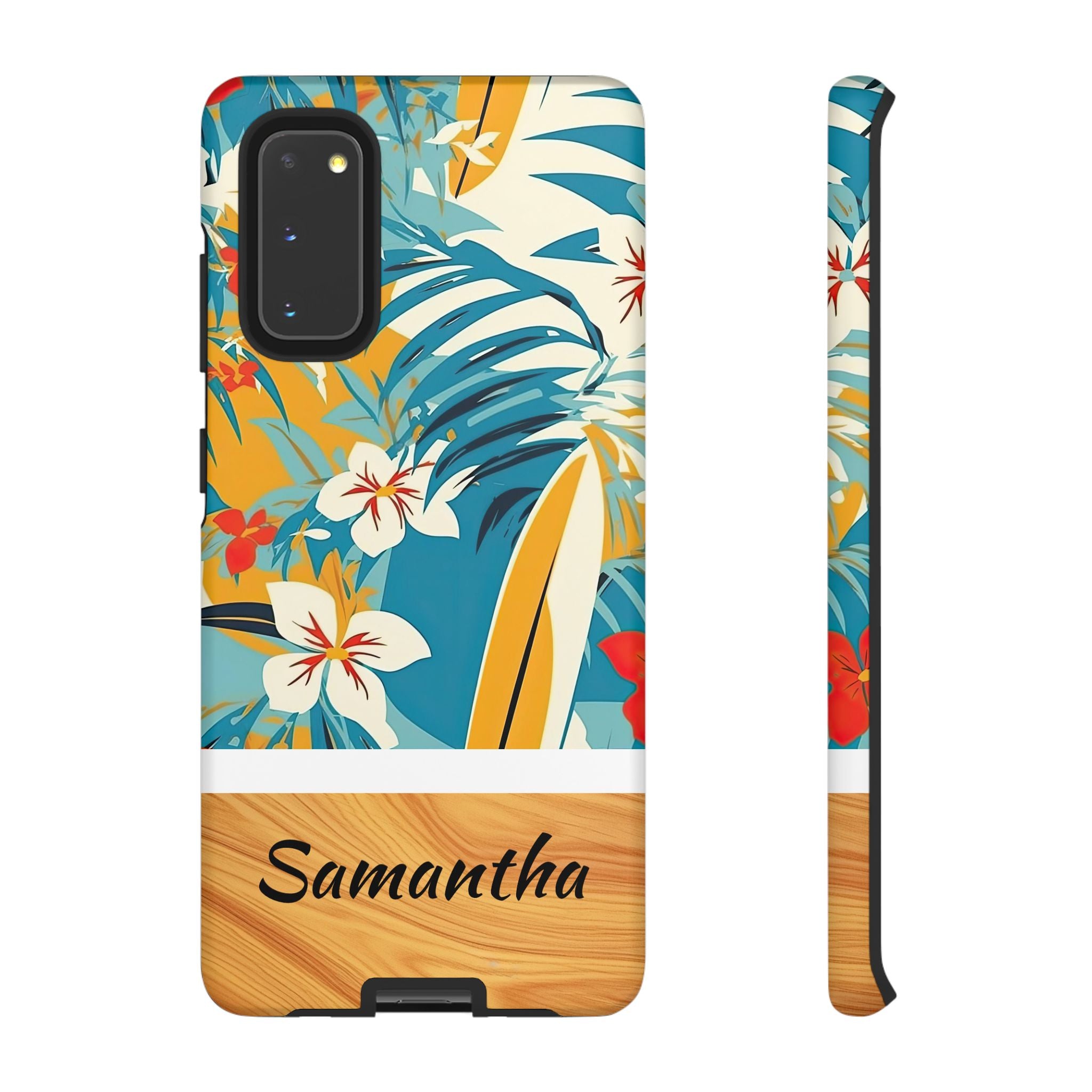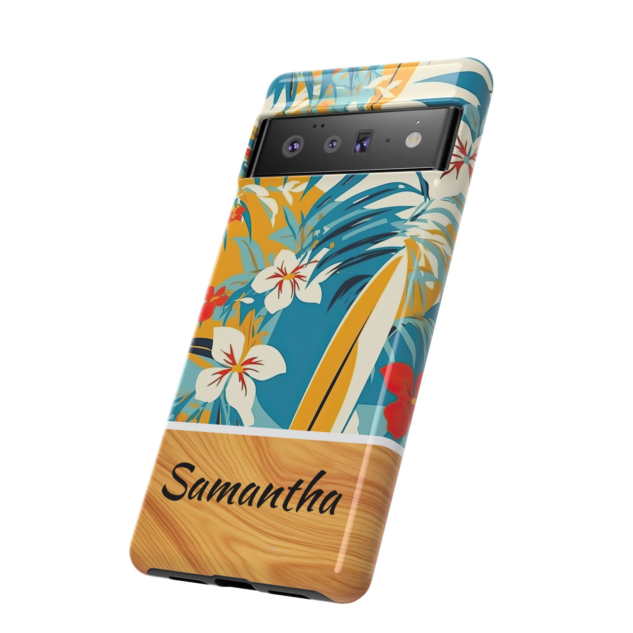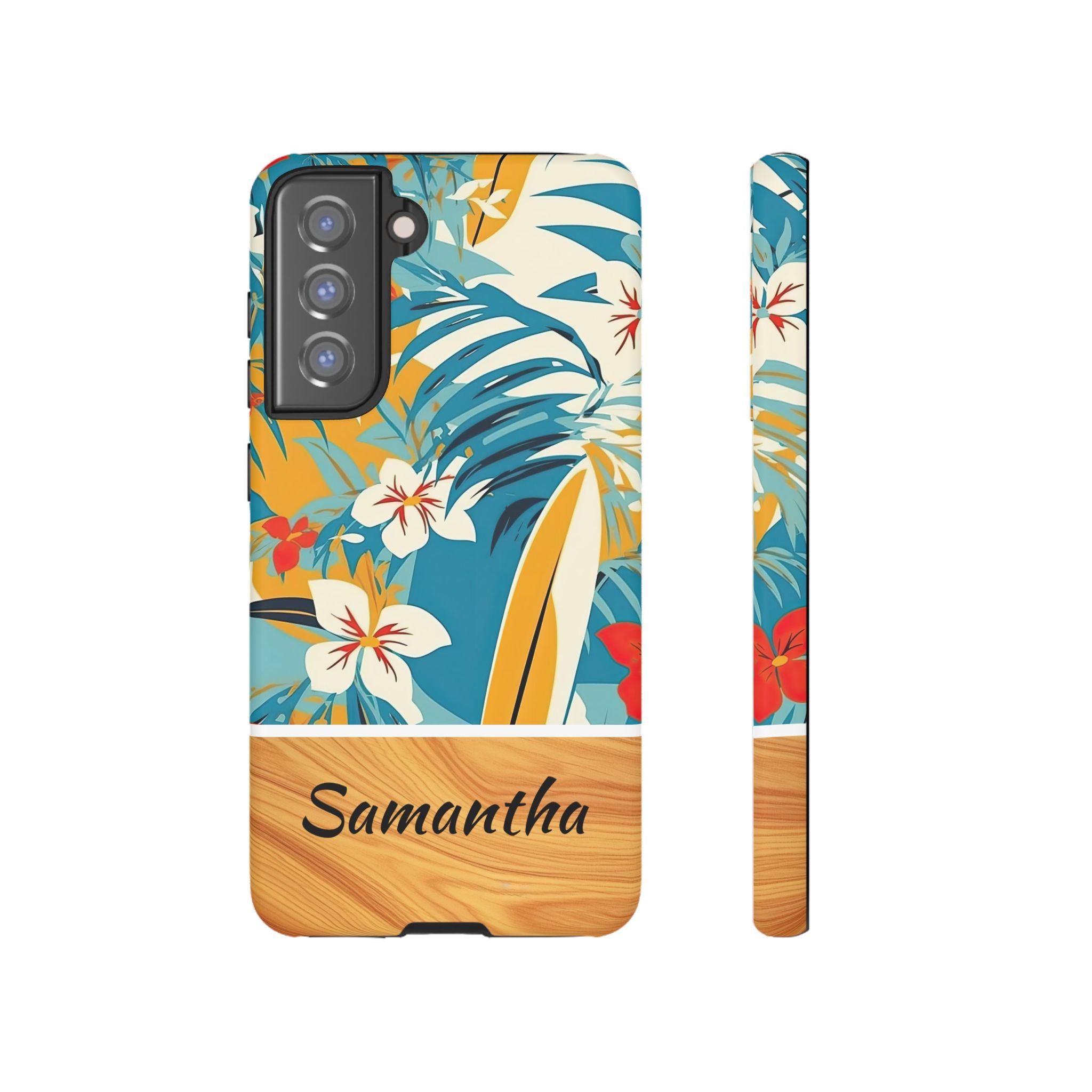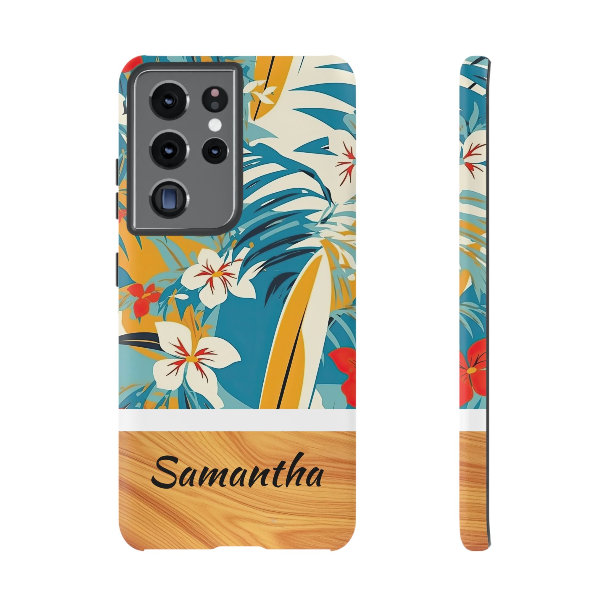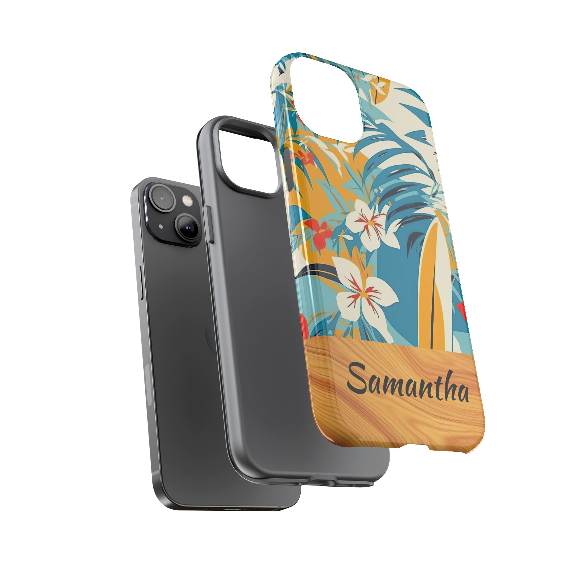 Custom Phone Tough Case Hawaii Surf Boards with Woodgrain Personalize with Name