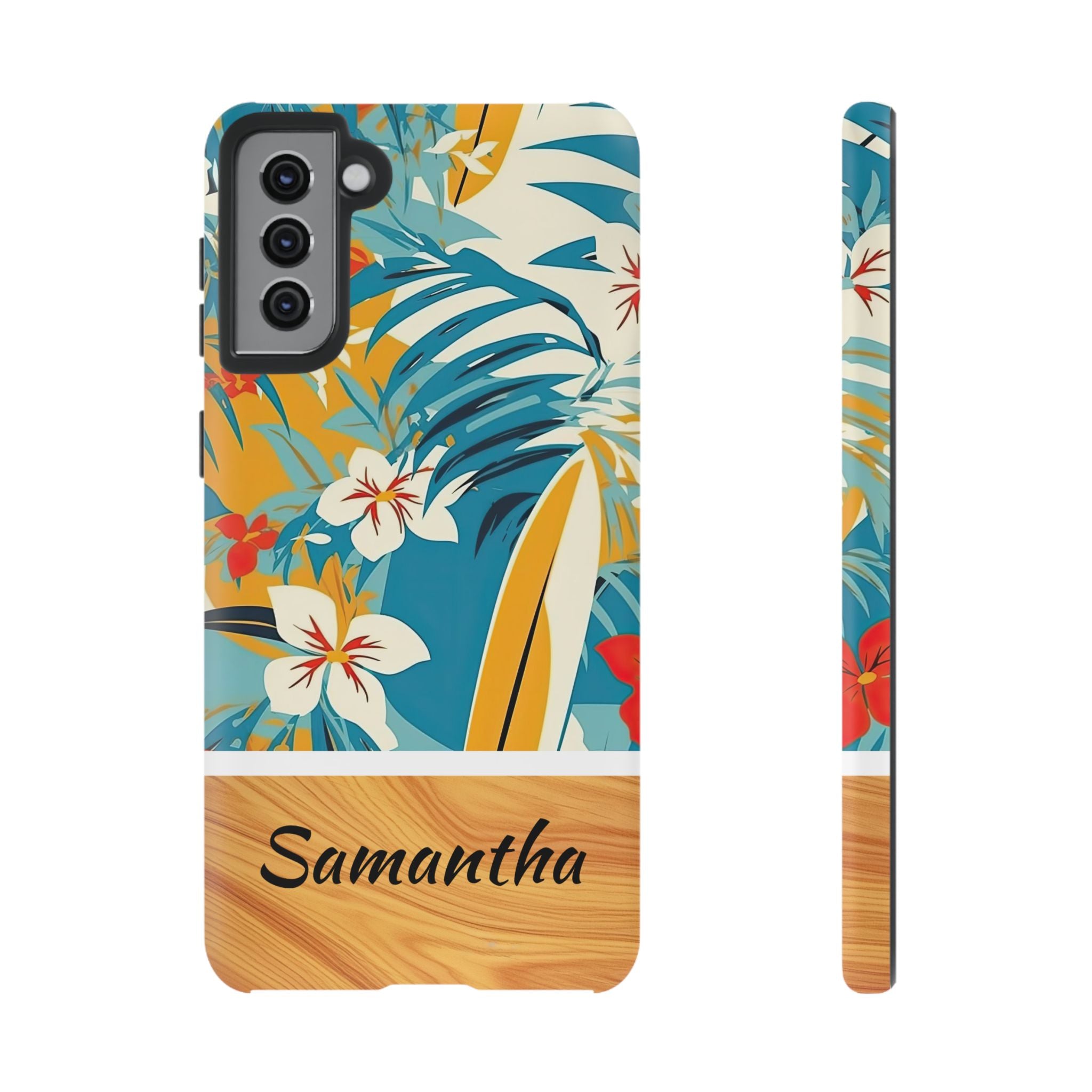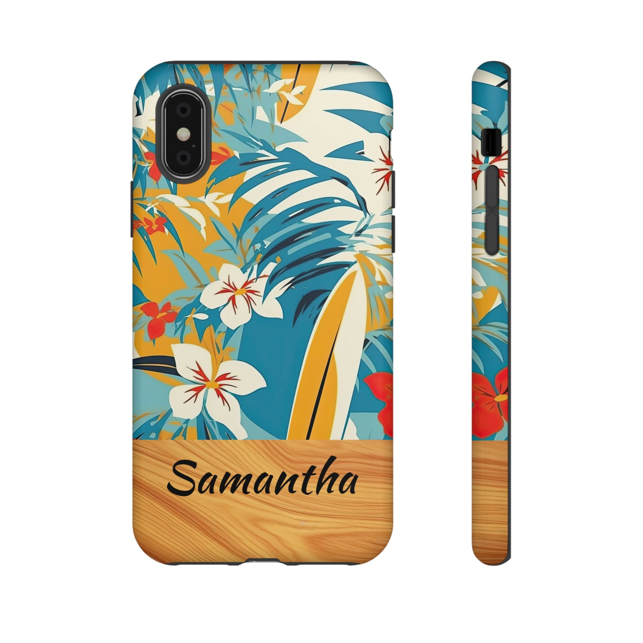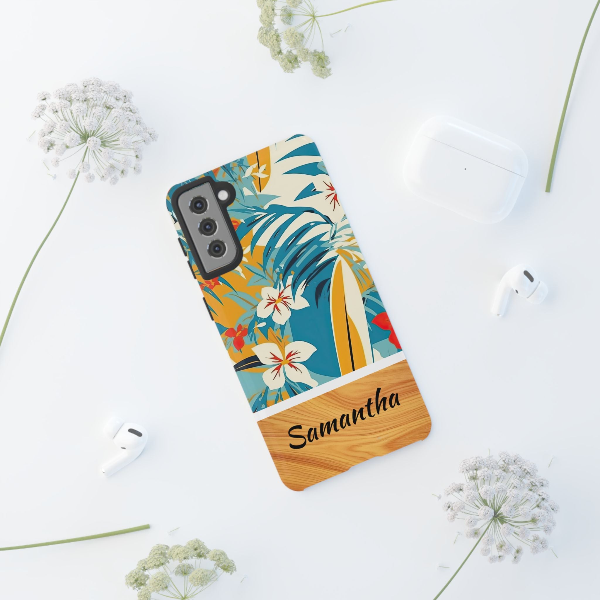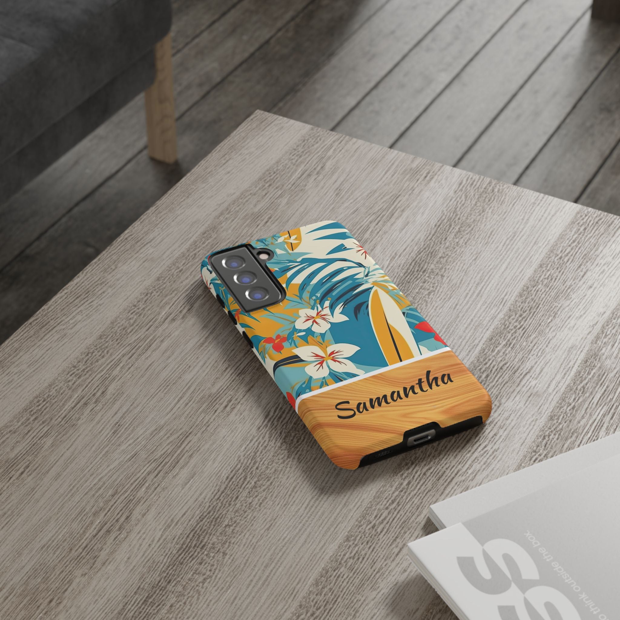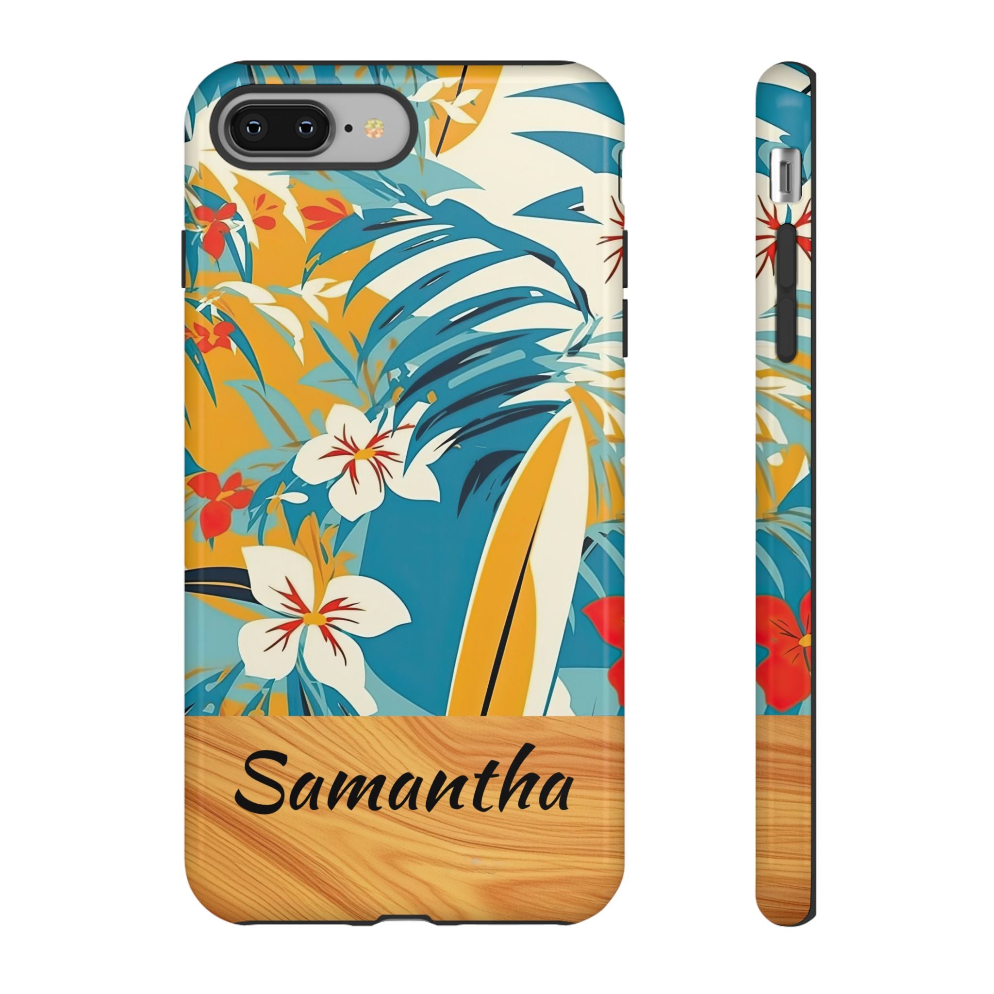Custom Phone Tough Case Hawaii Surf Boards with Woodgrain Personalize with Name