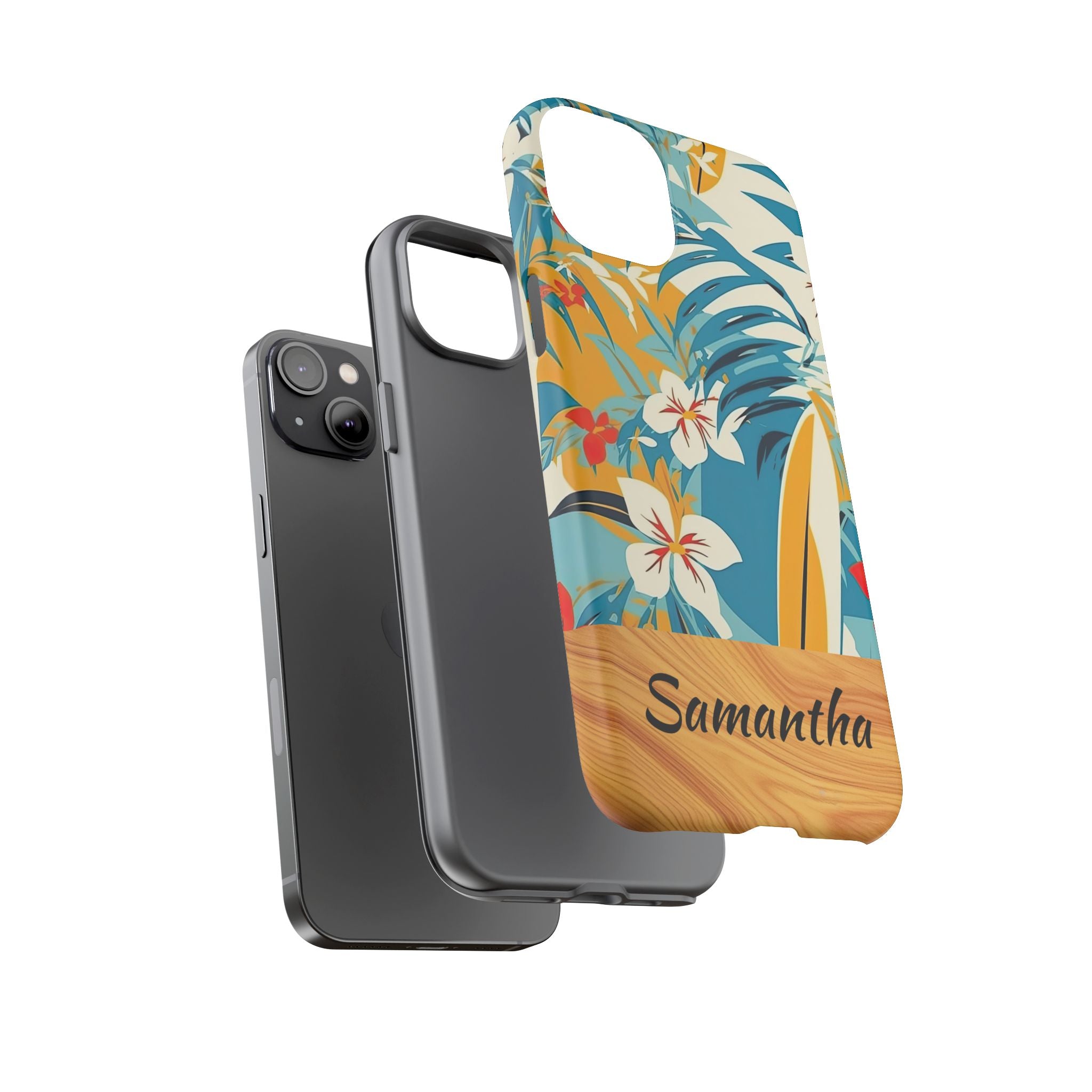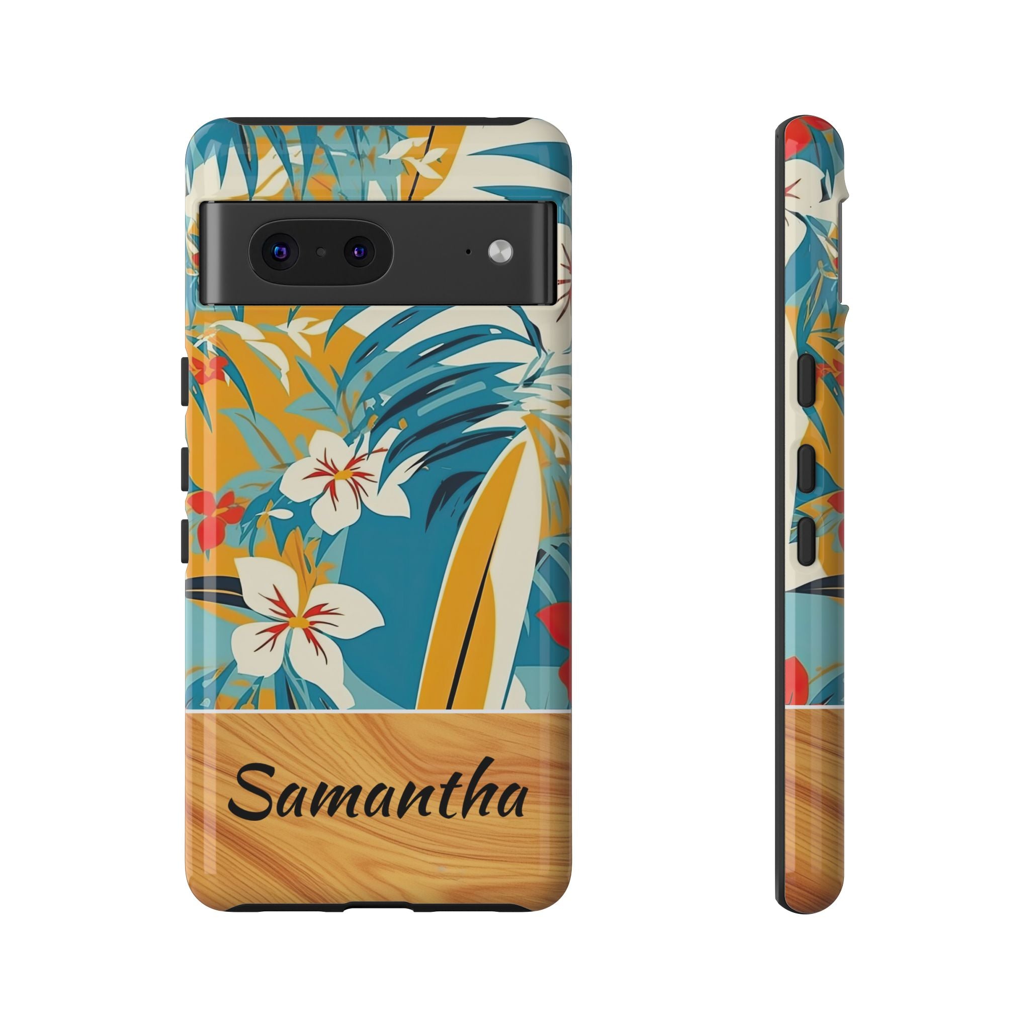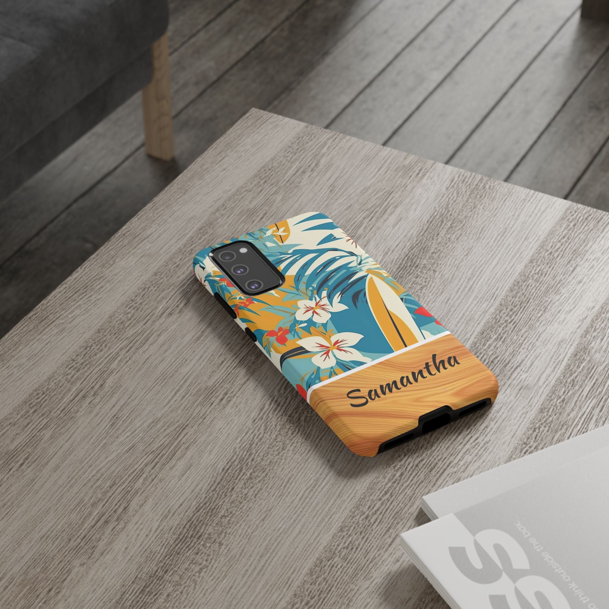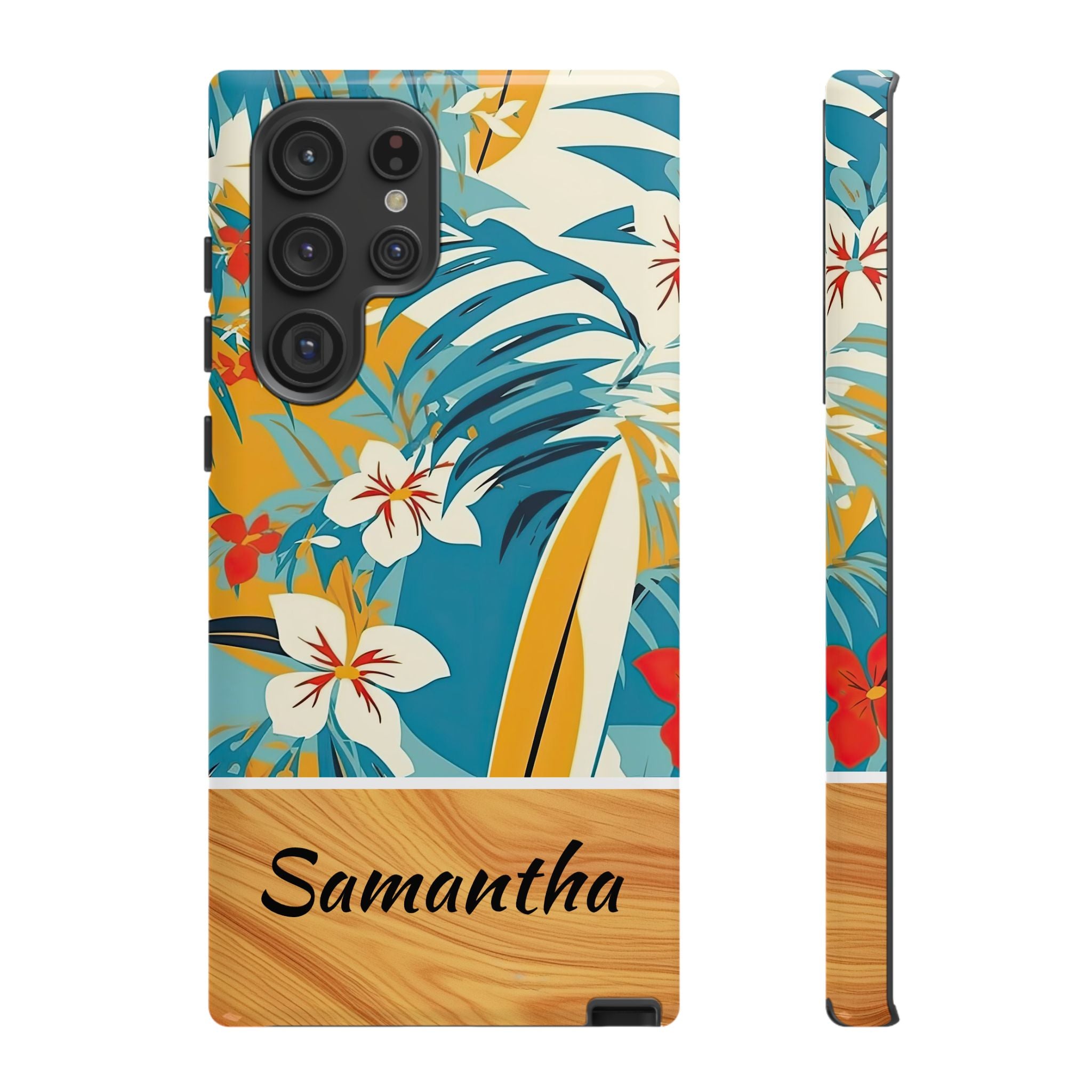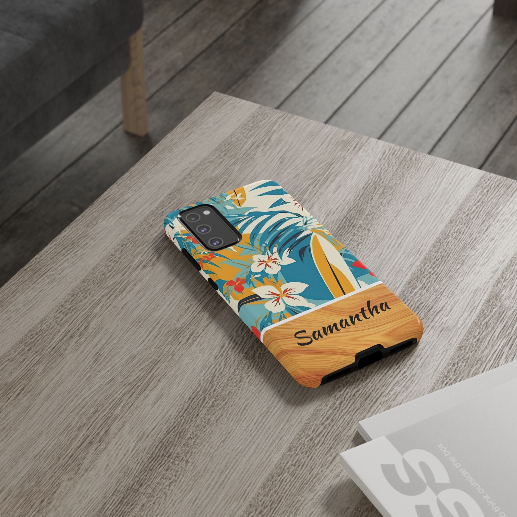 Custom Phone Tough Case Hawaii Surf Boards with Woodgrain Personalize with Name