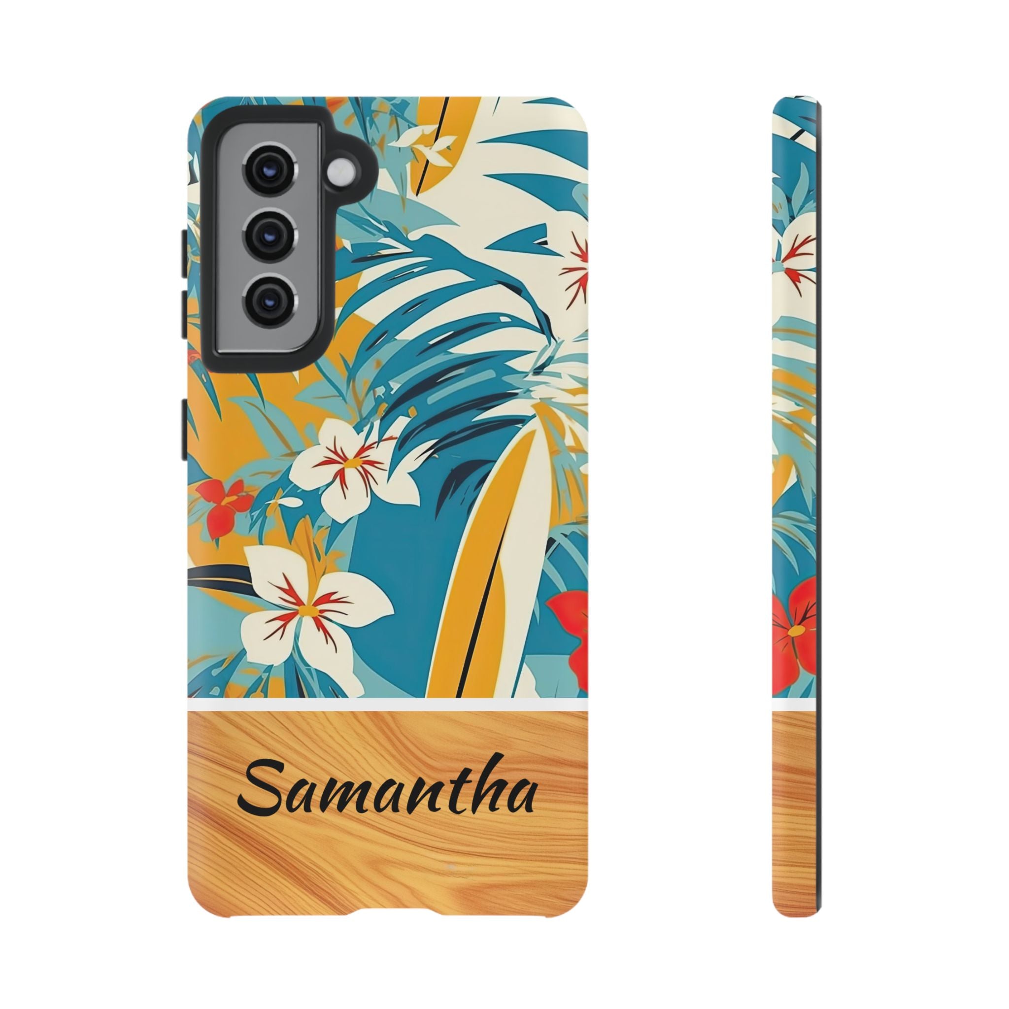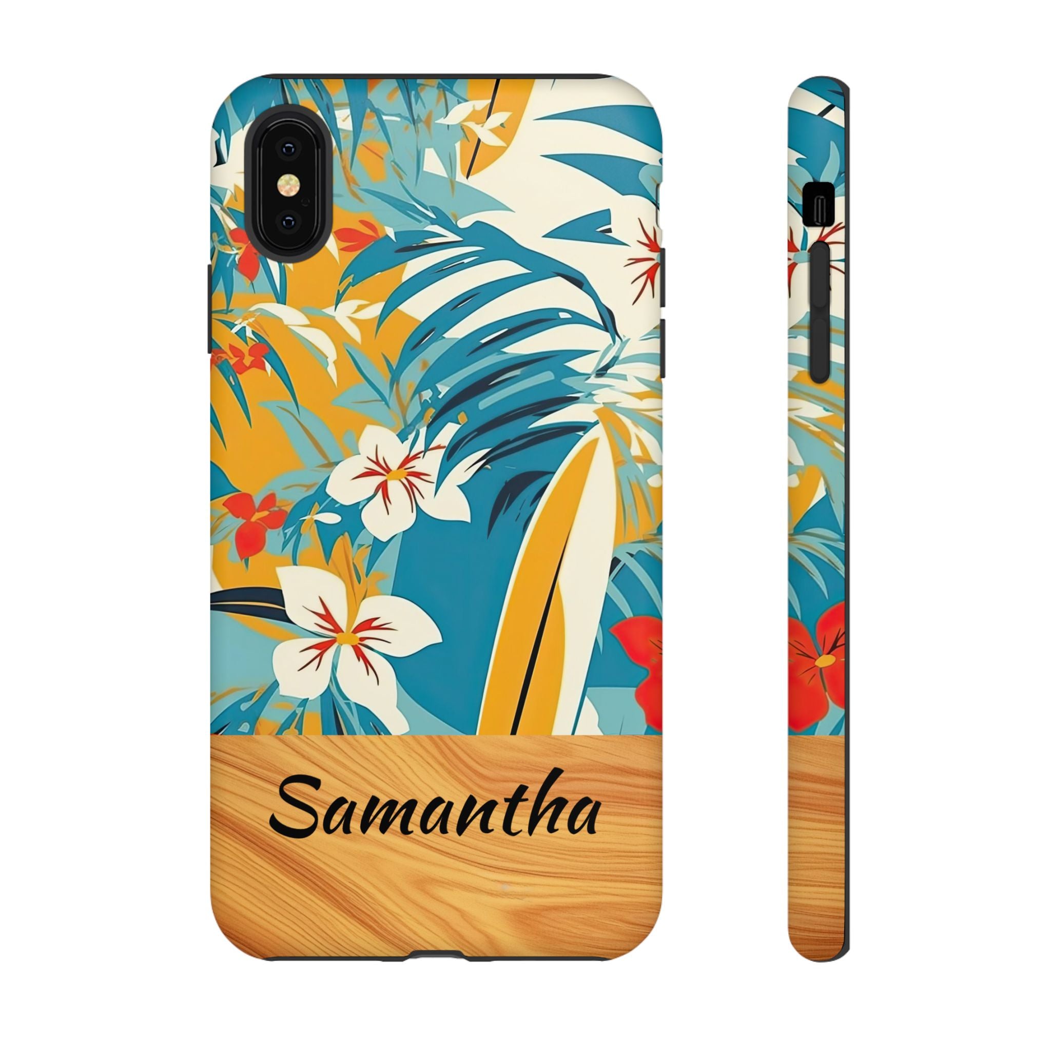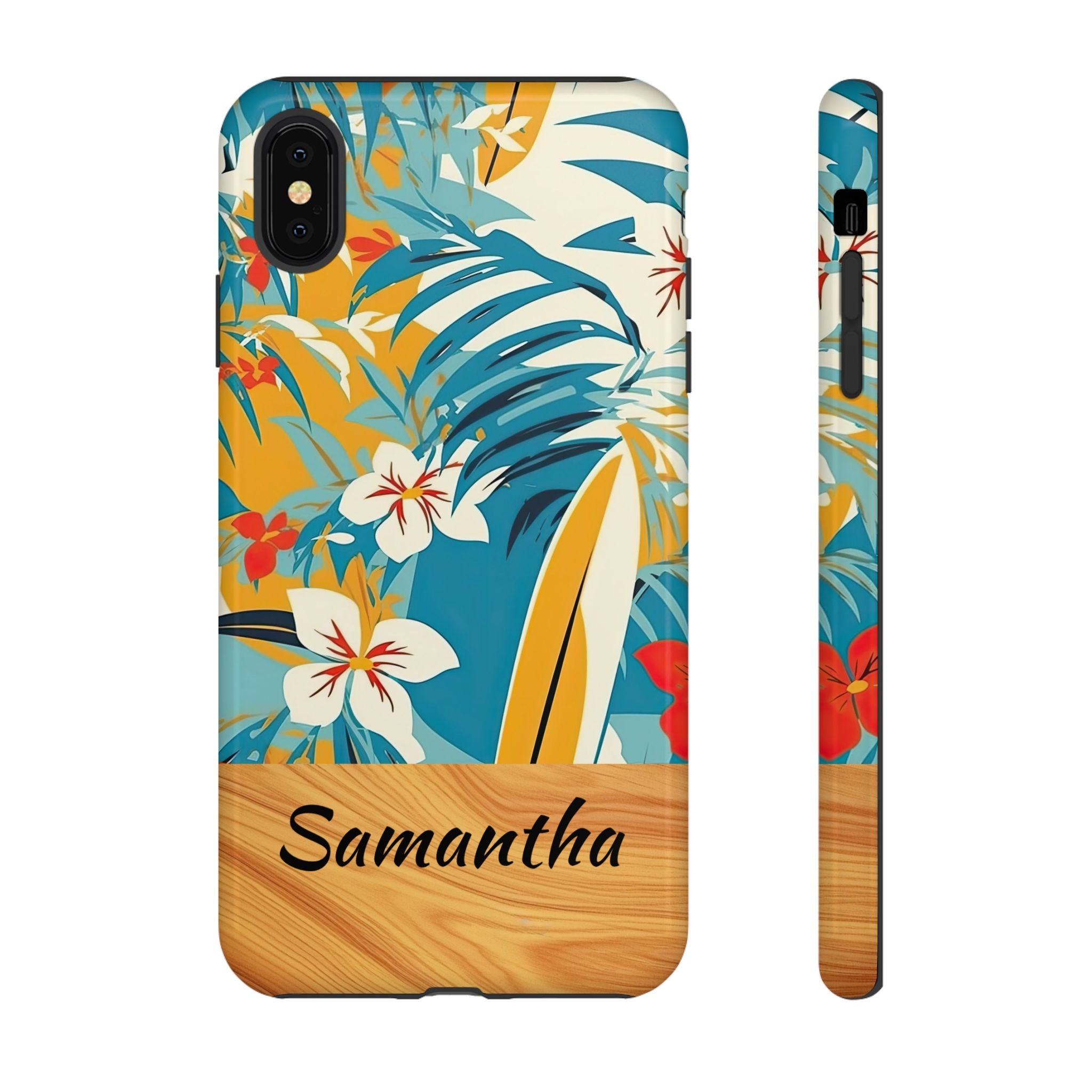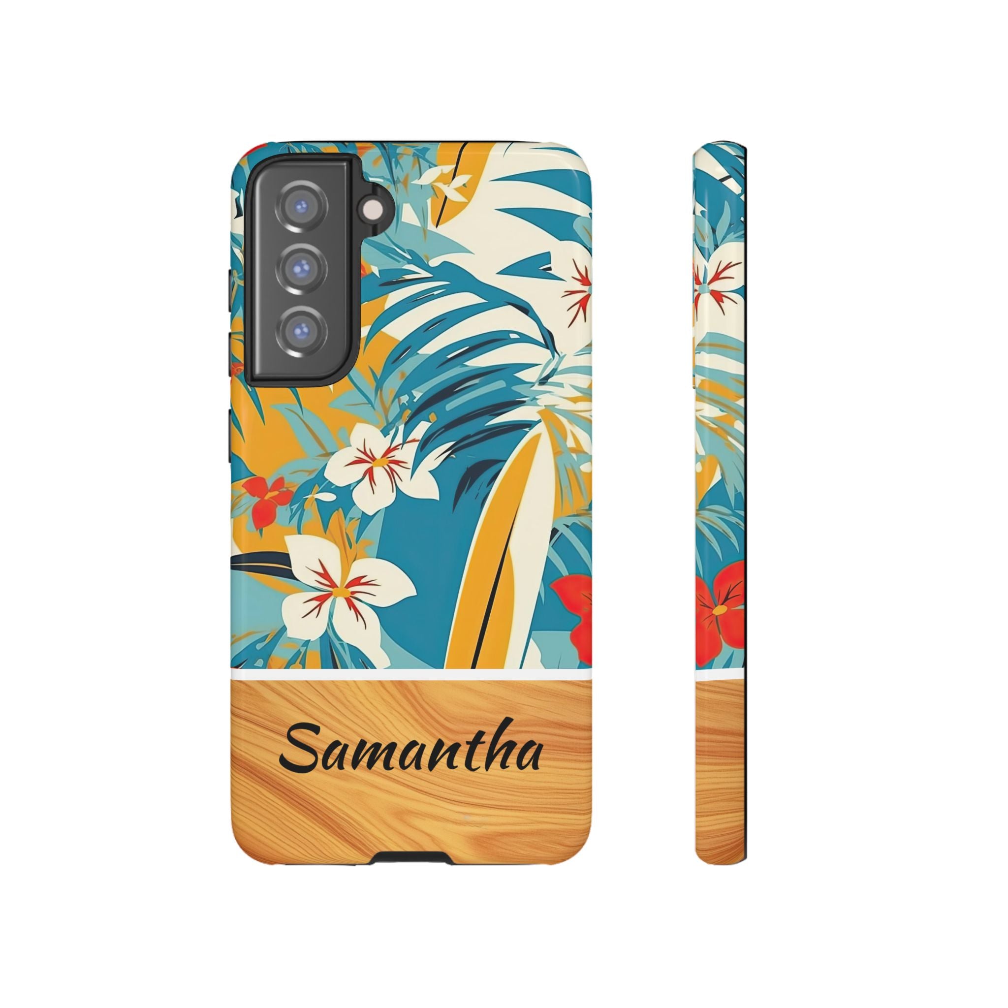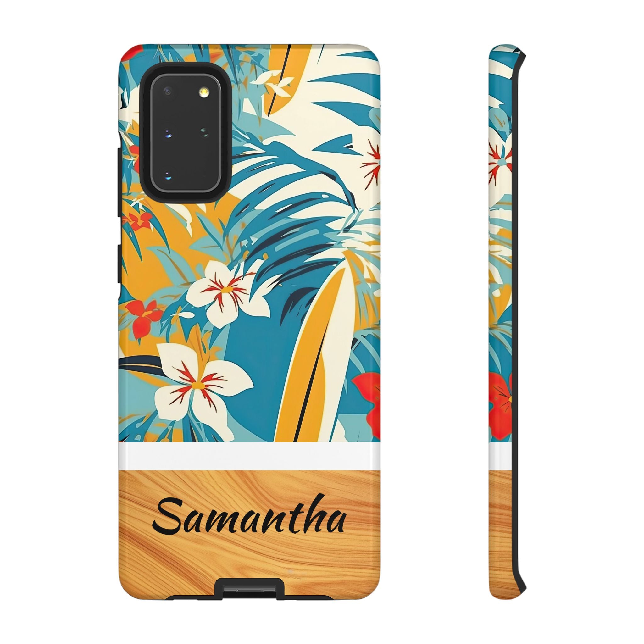 Custom Phone Tough Case Hawaii Surf Boards with Woodgrain Personalize with Name