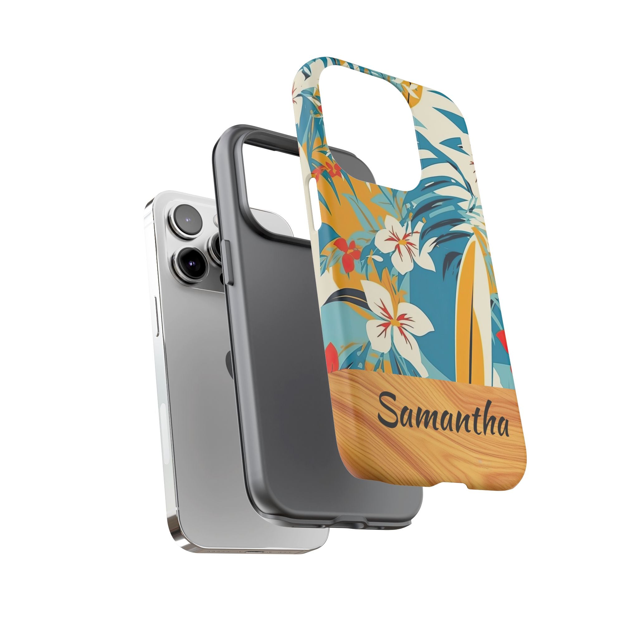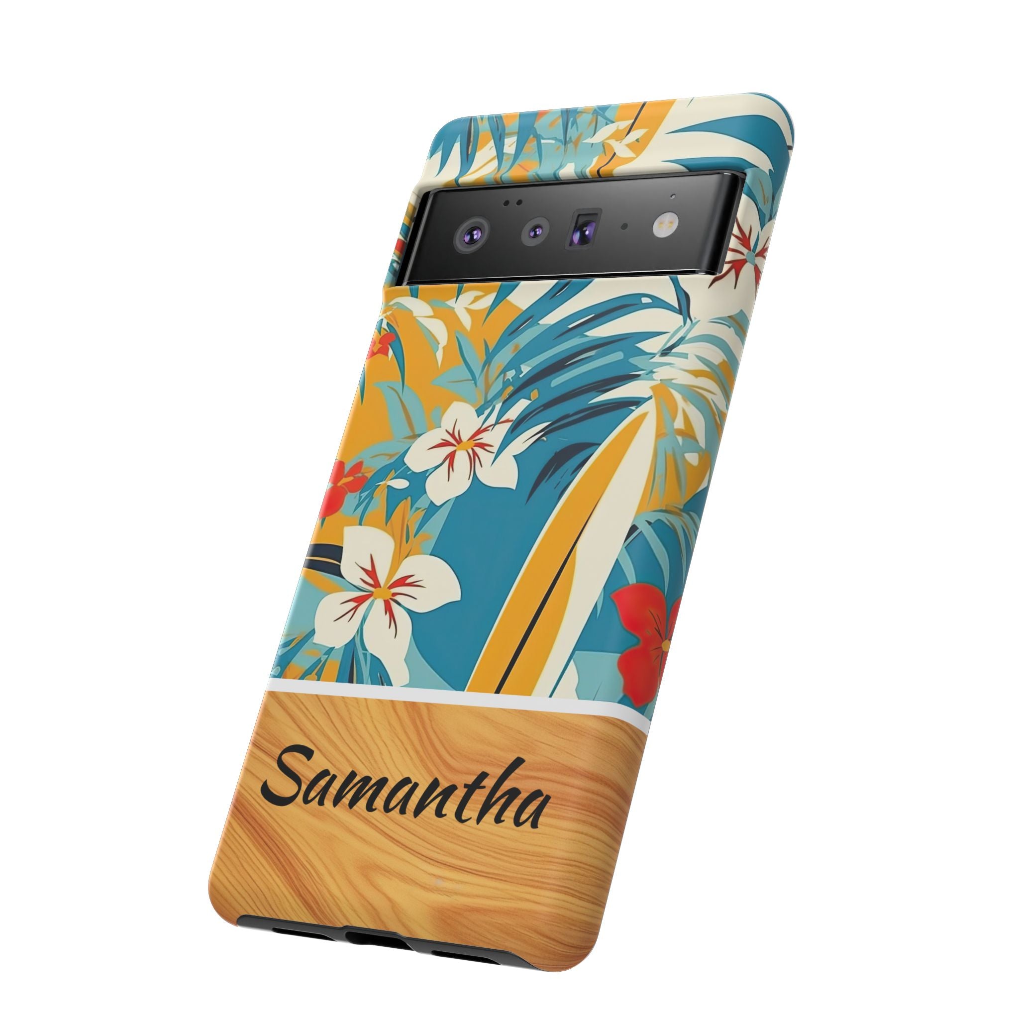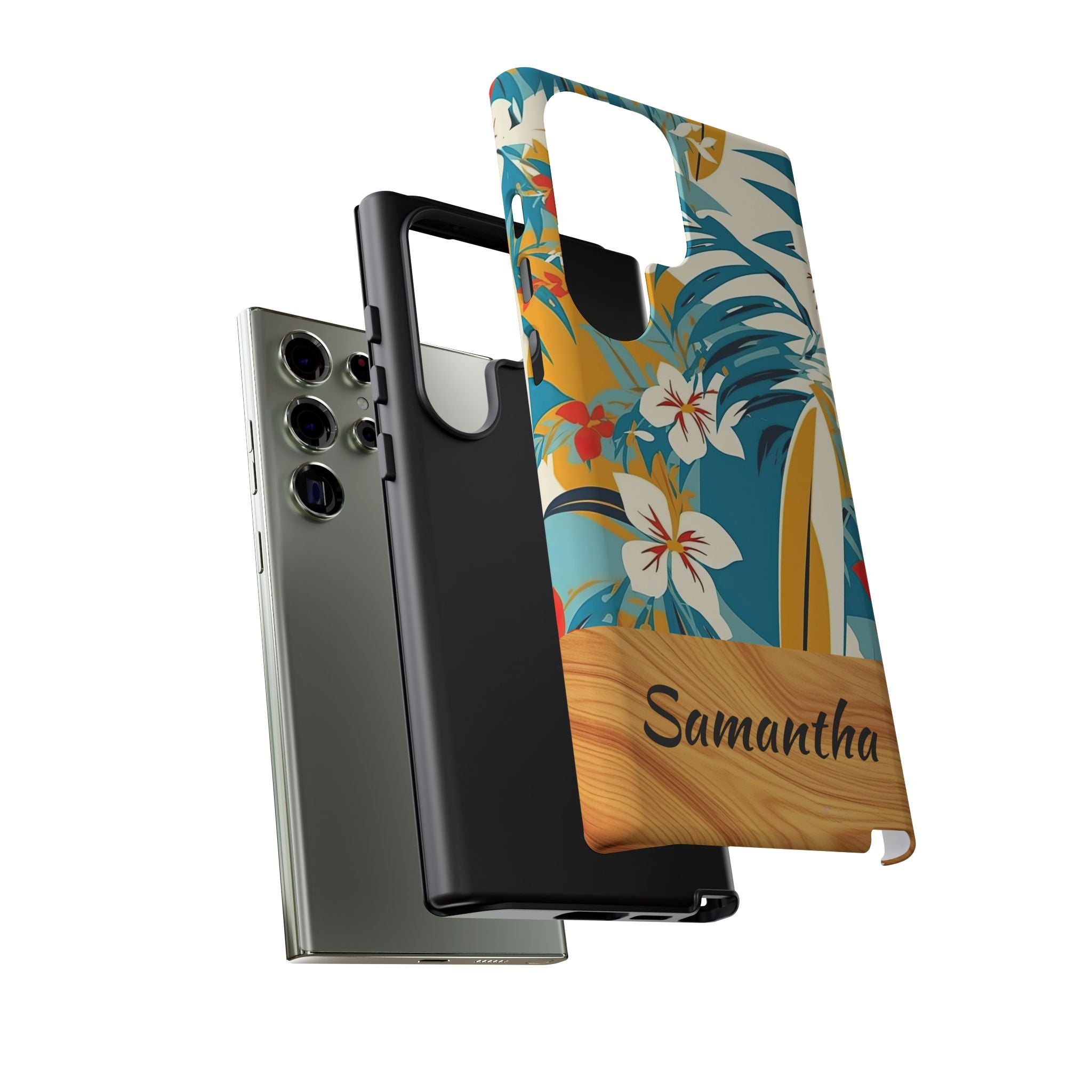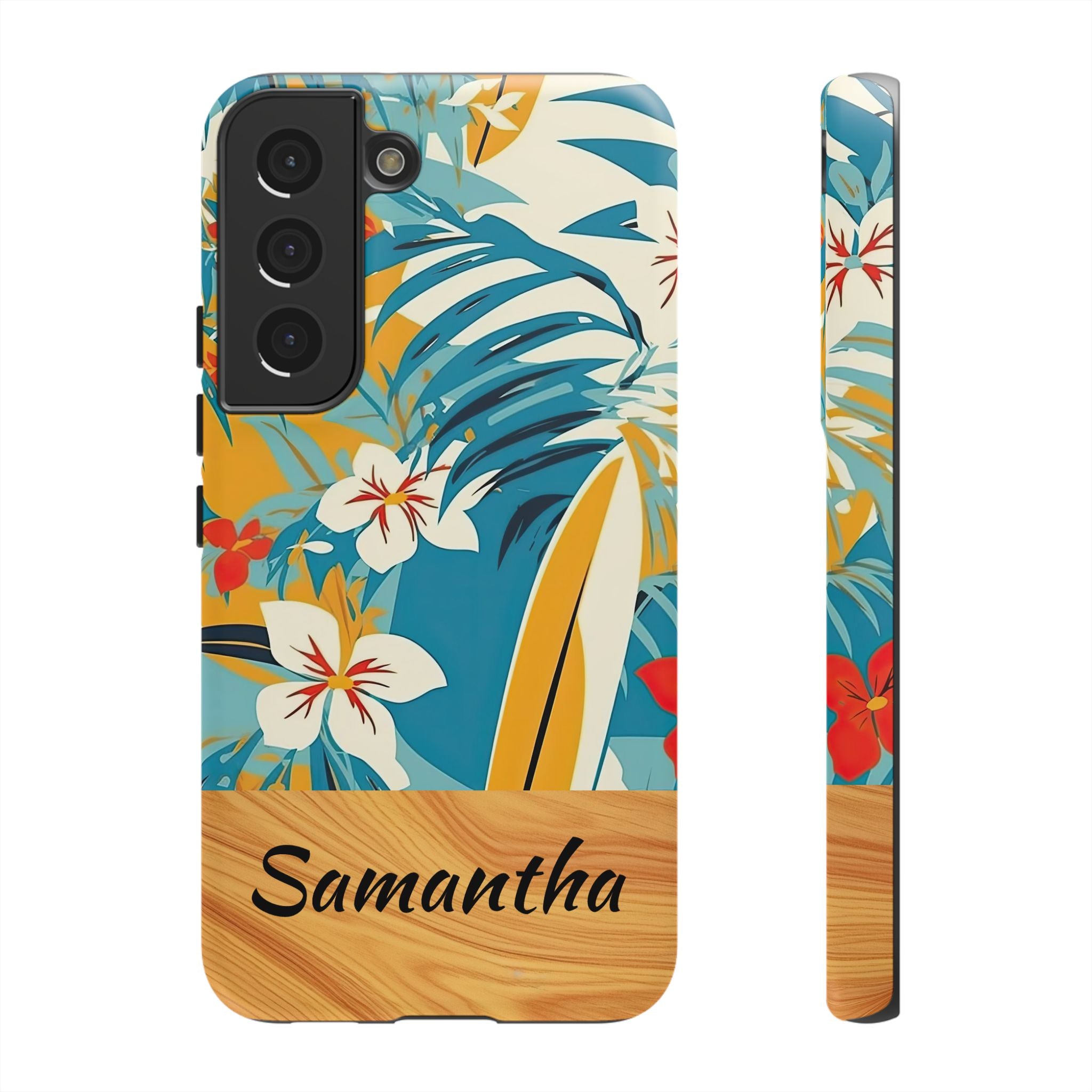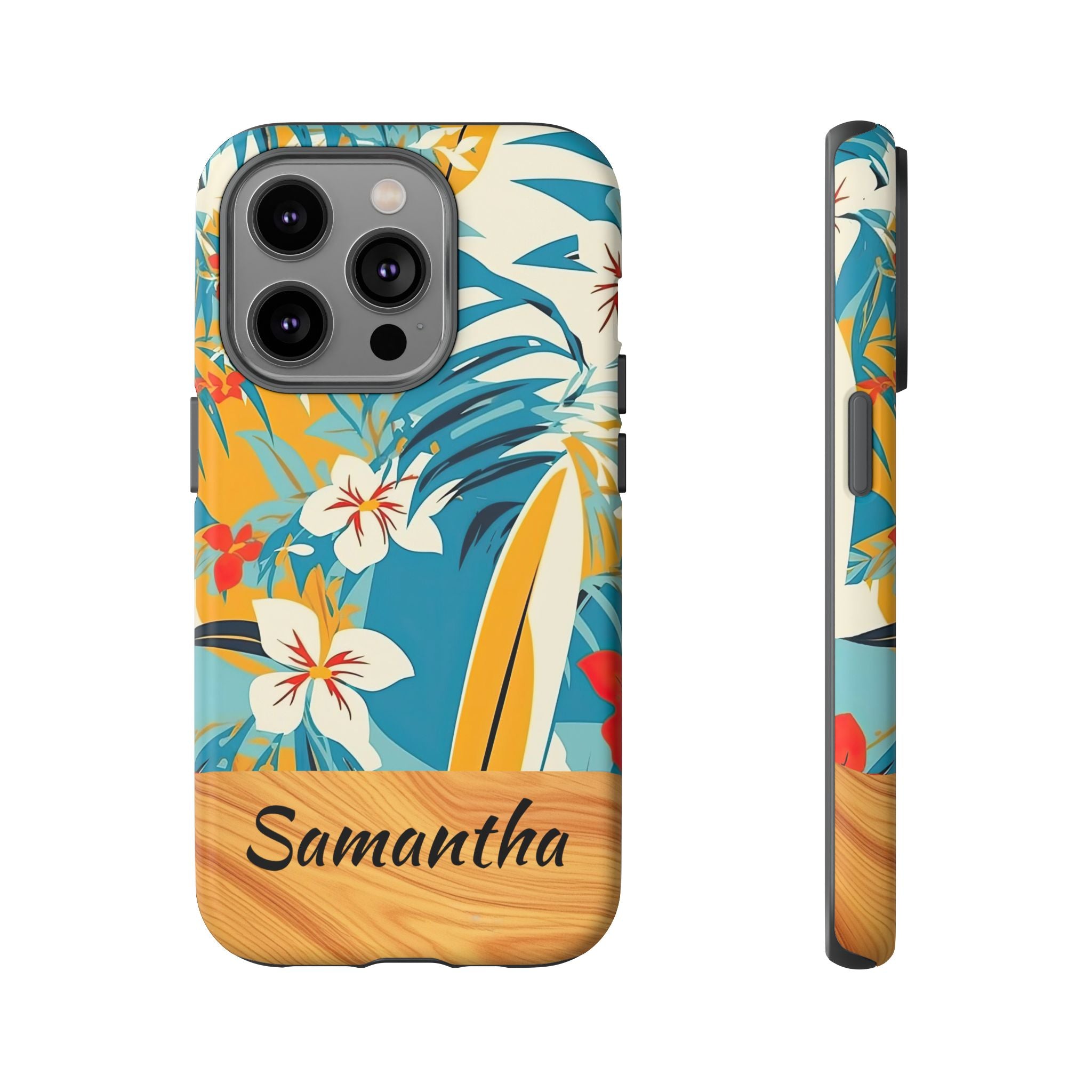 Custom Phone Tough Case Hawaii Surf Boards with Woodgrain Personalize with Name