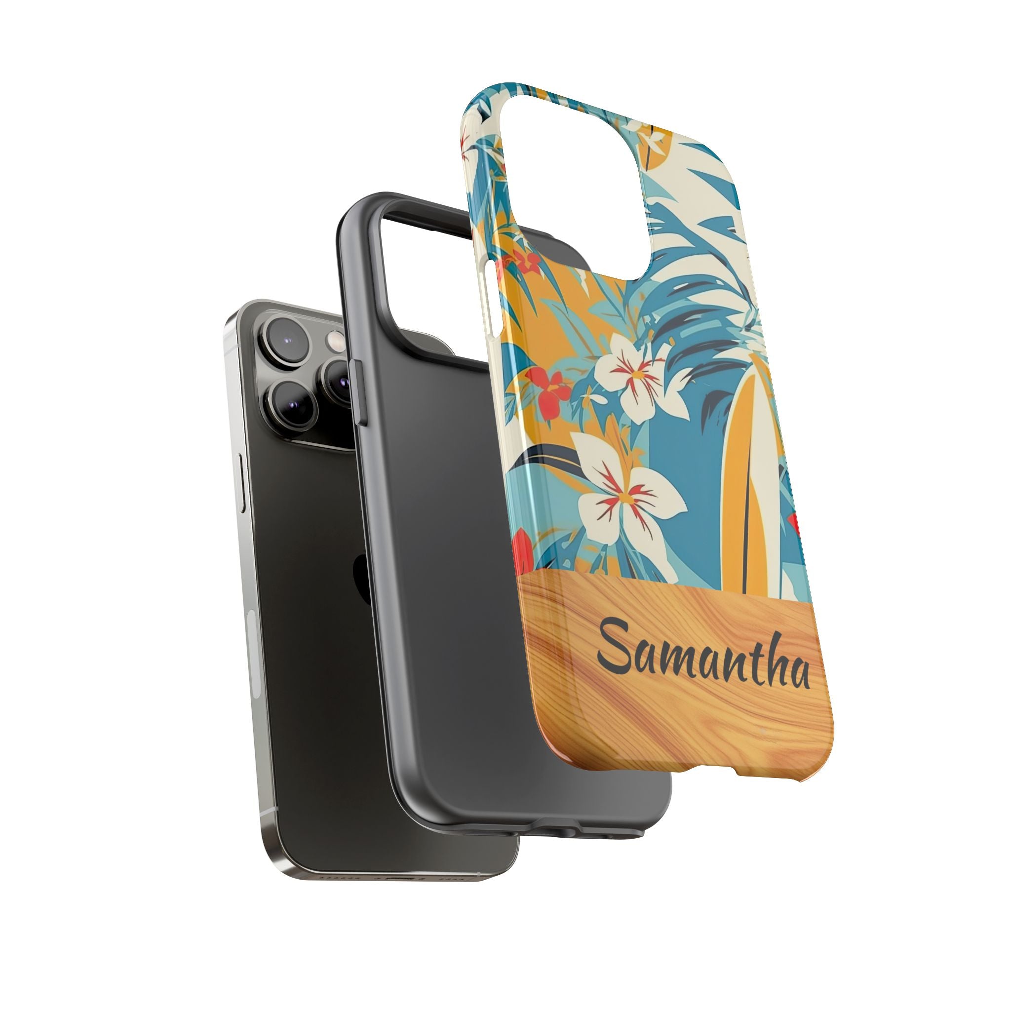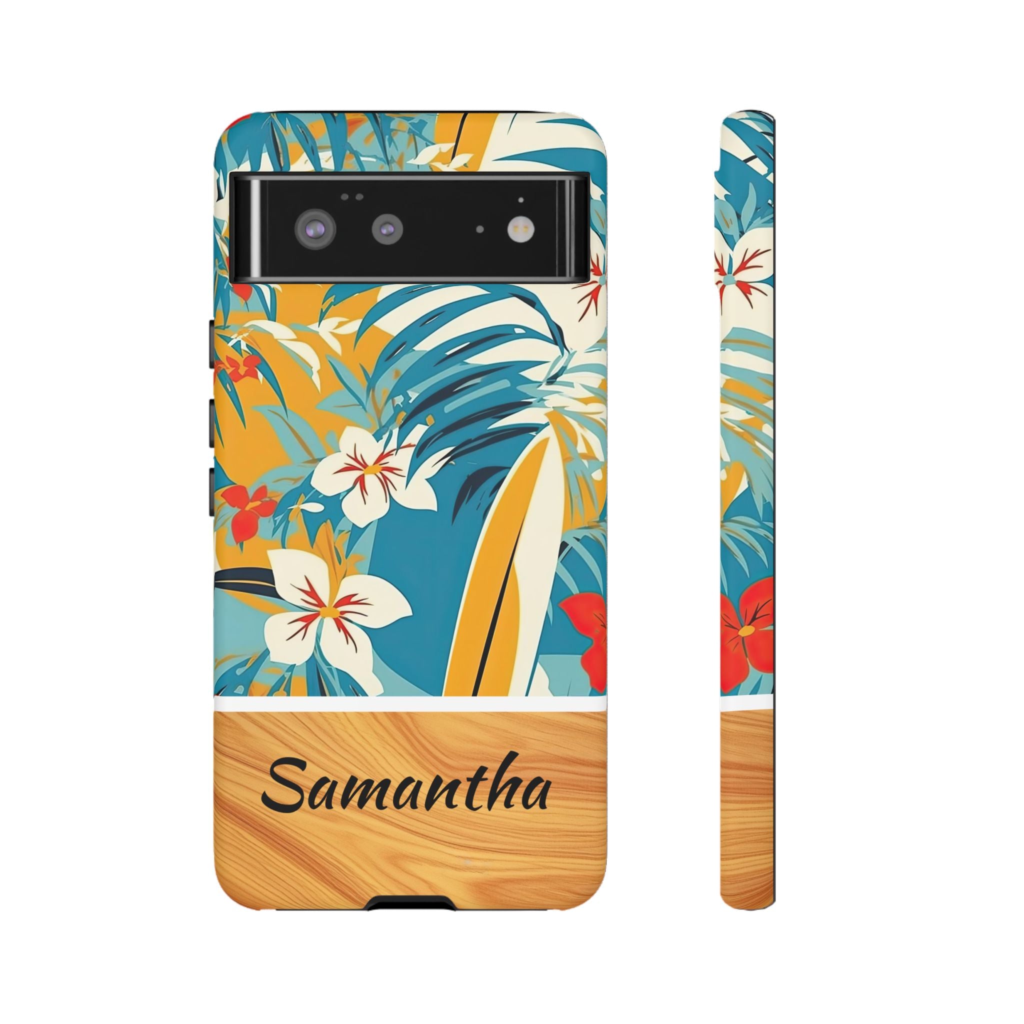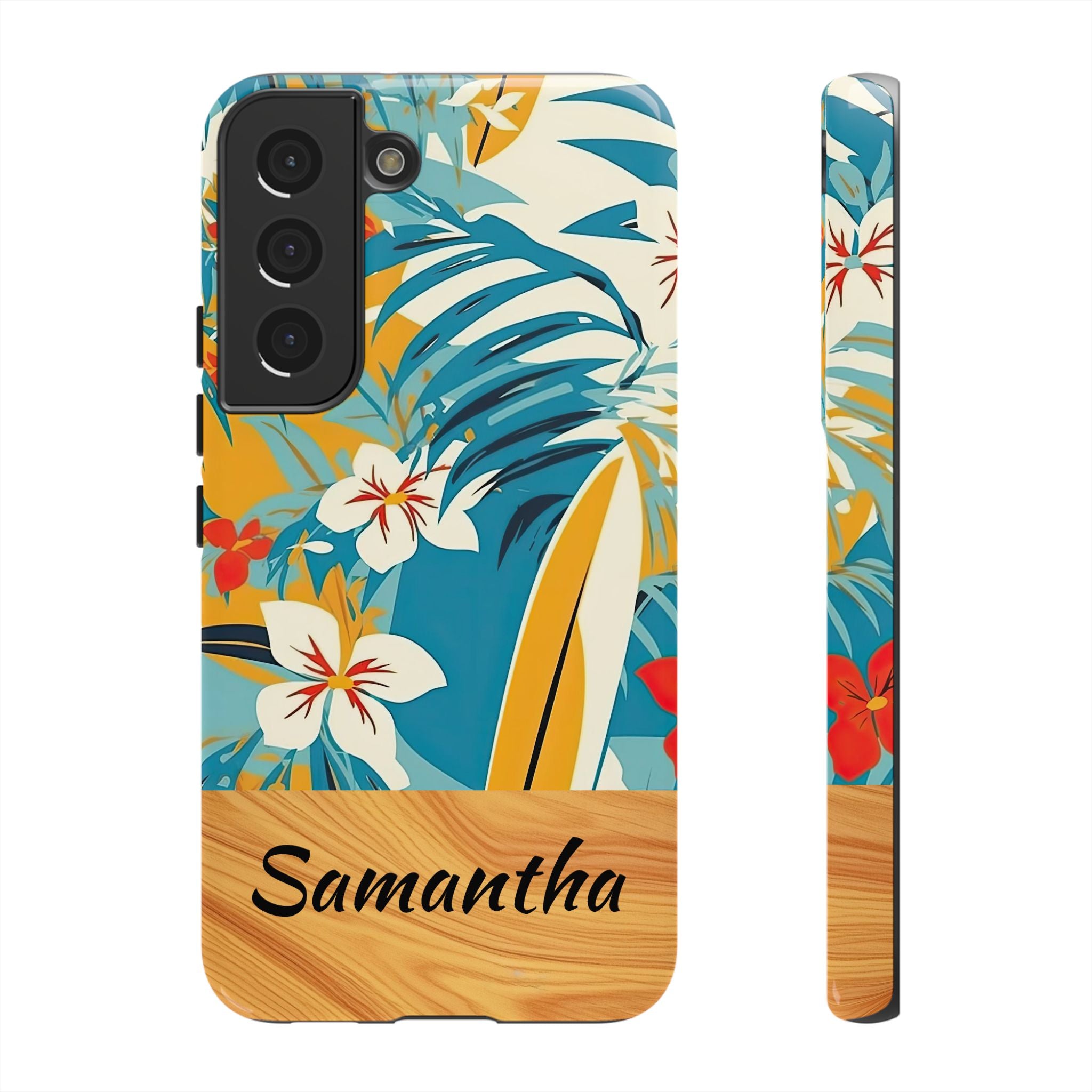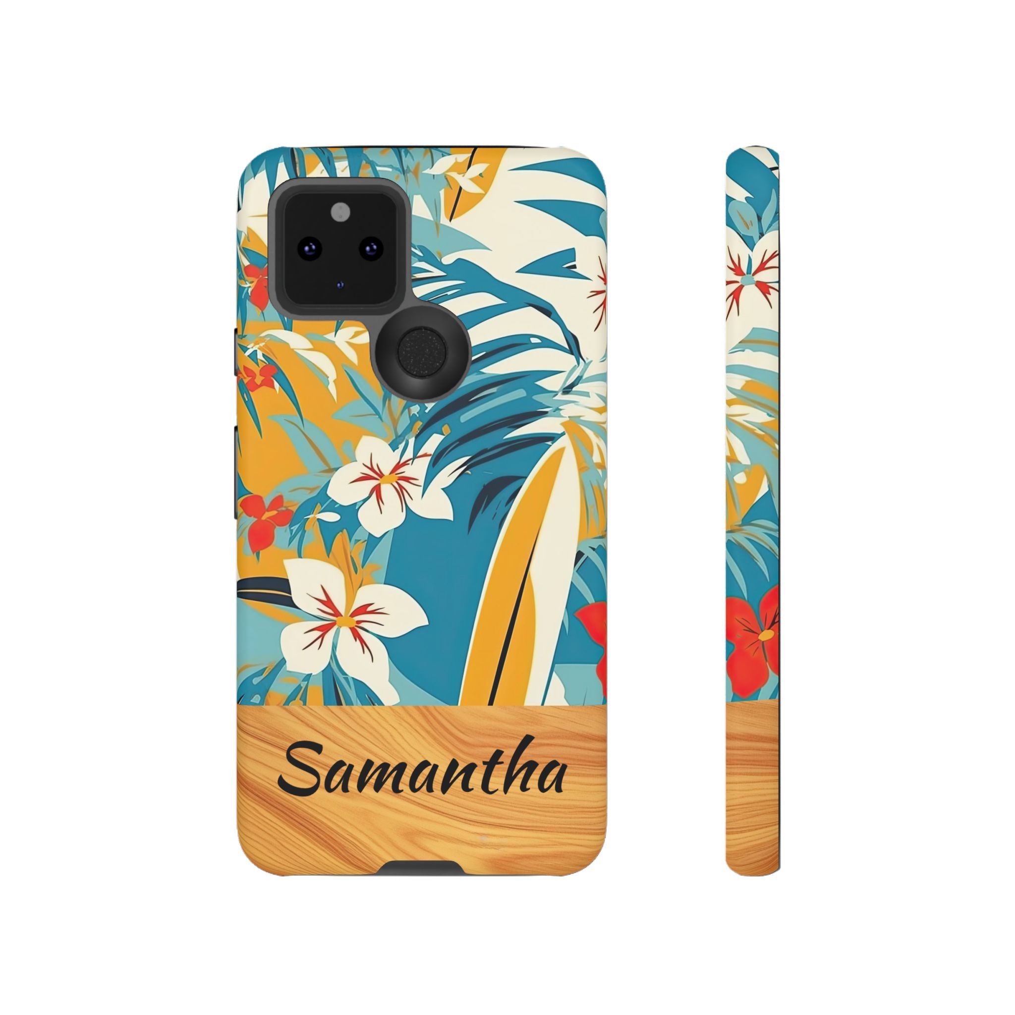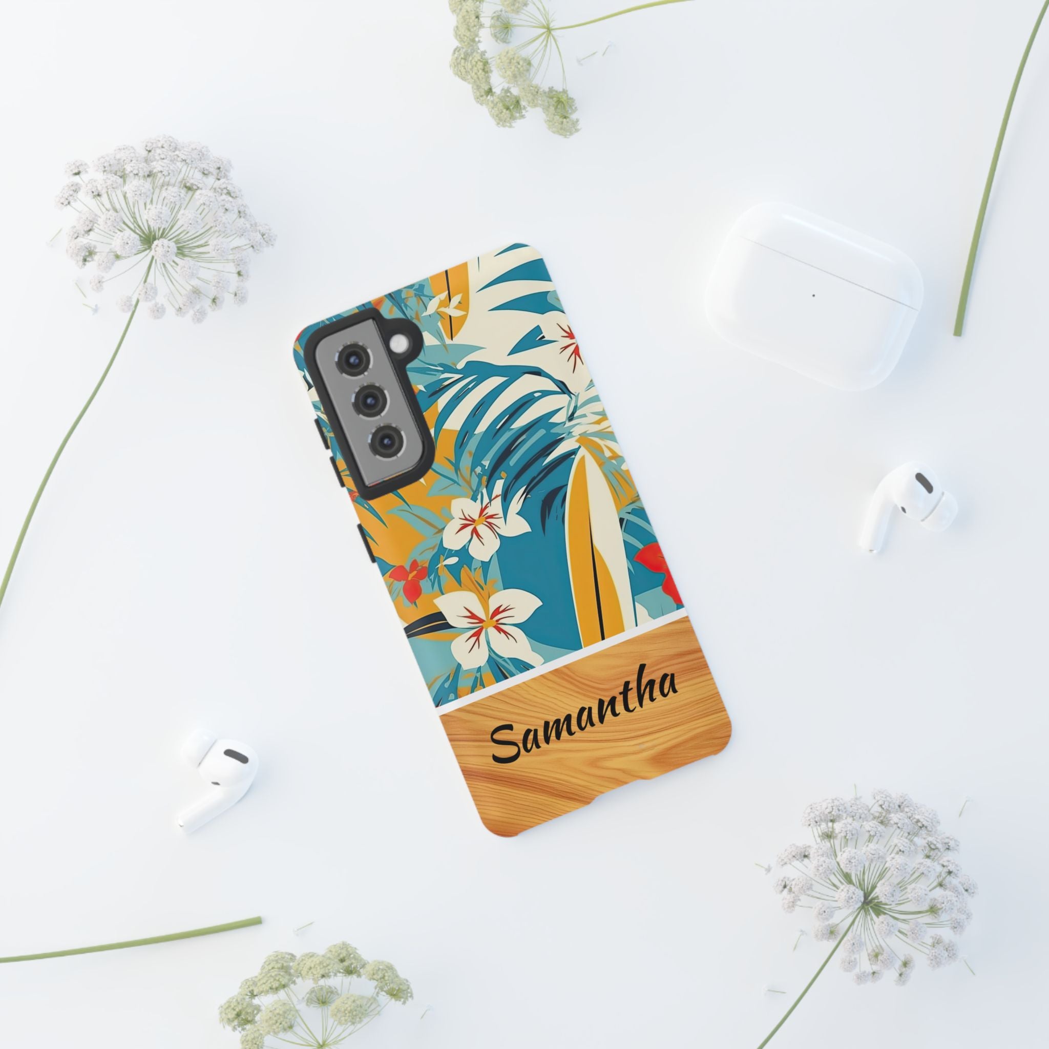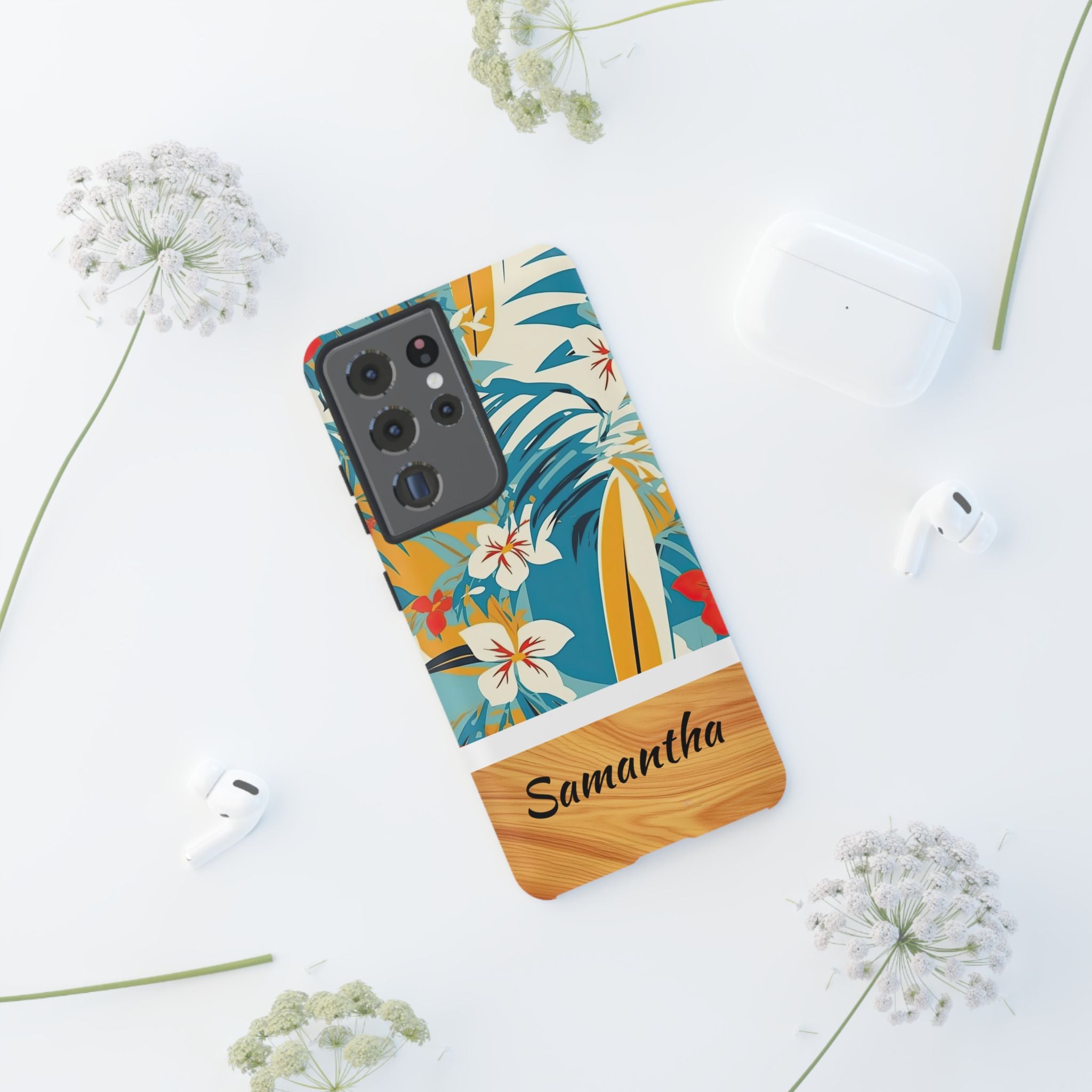 Custom Phone Tough Case Hawaii Surf Boards with Woodgrain Personalize with Name