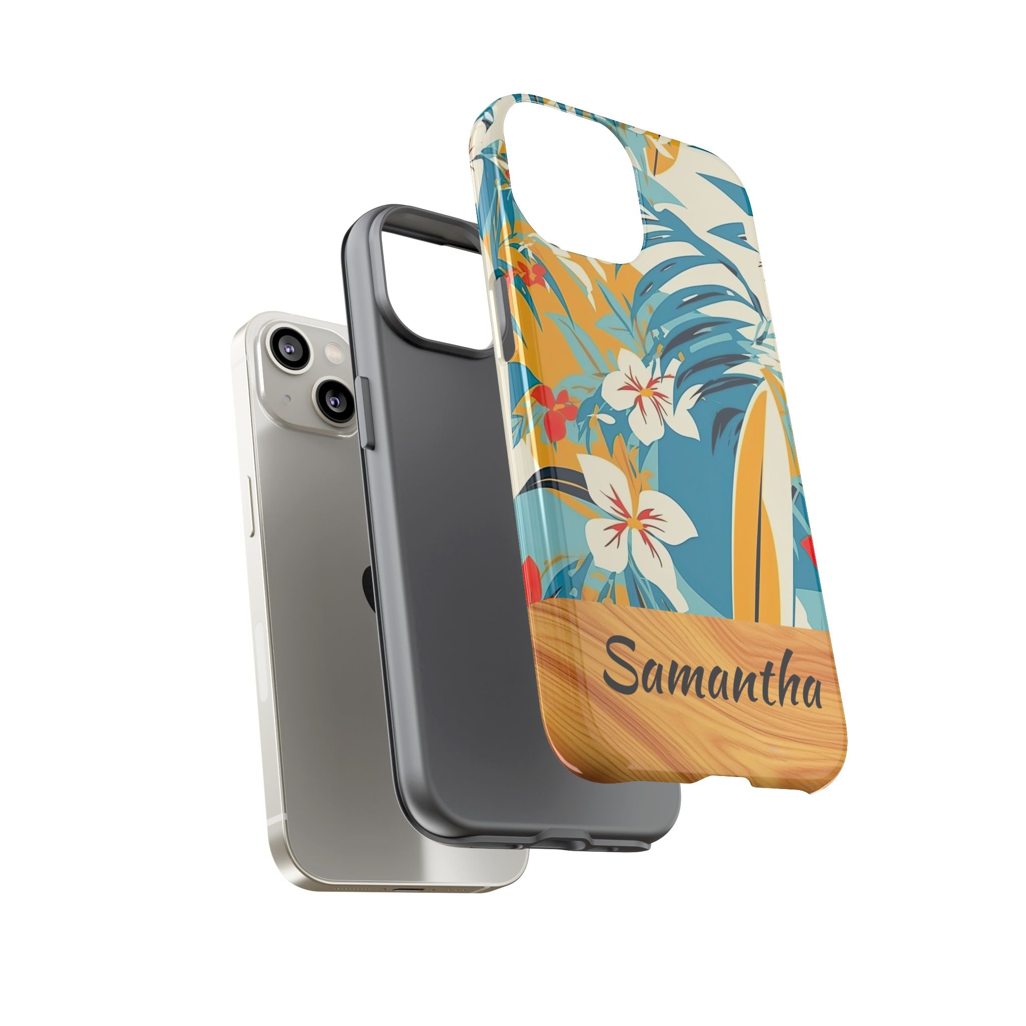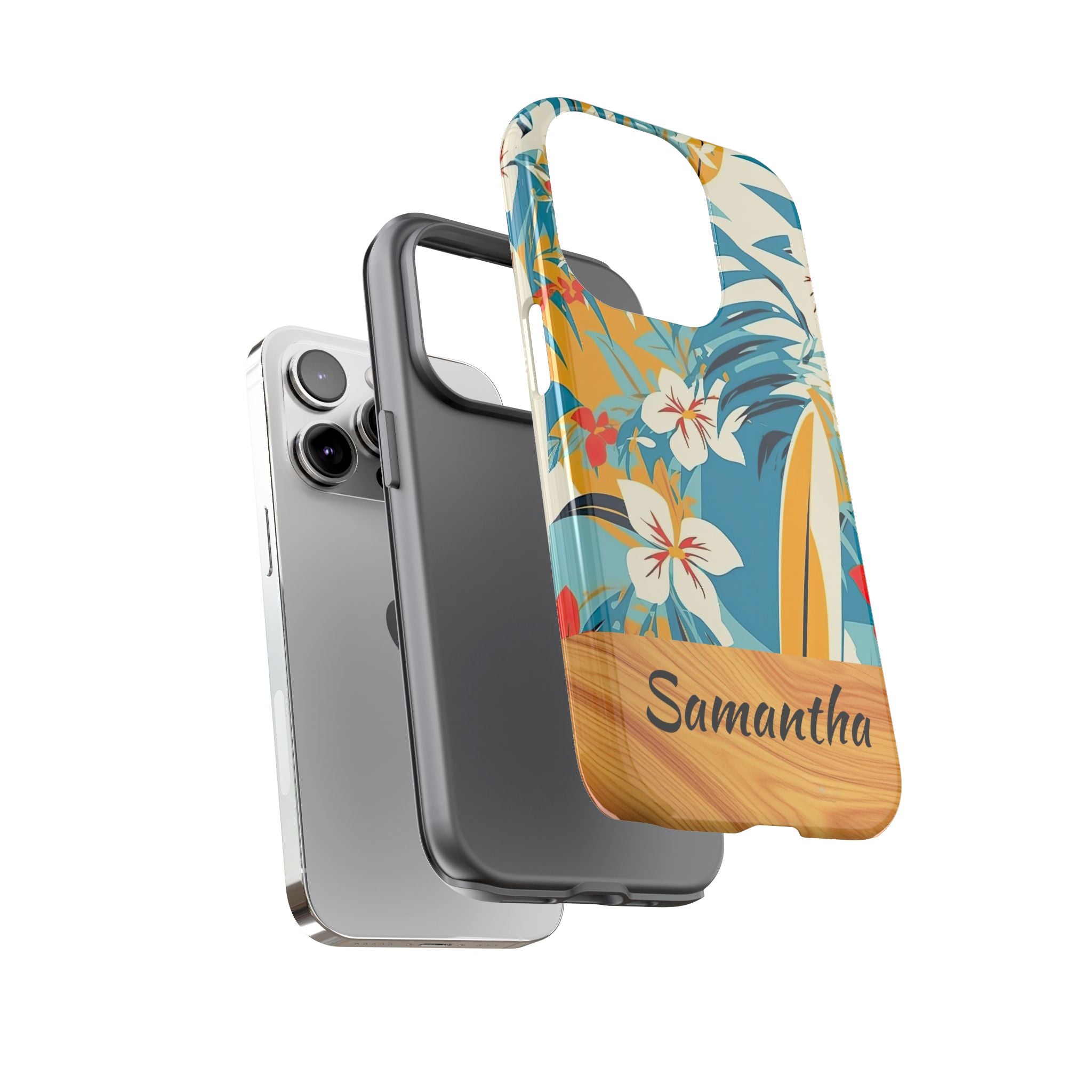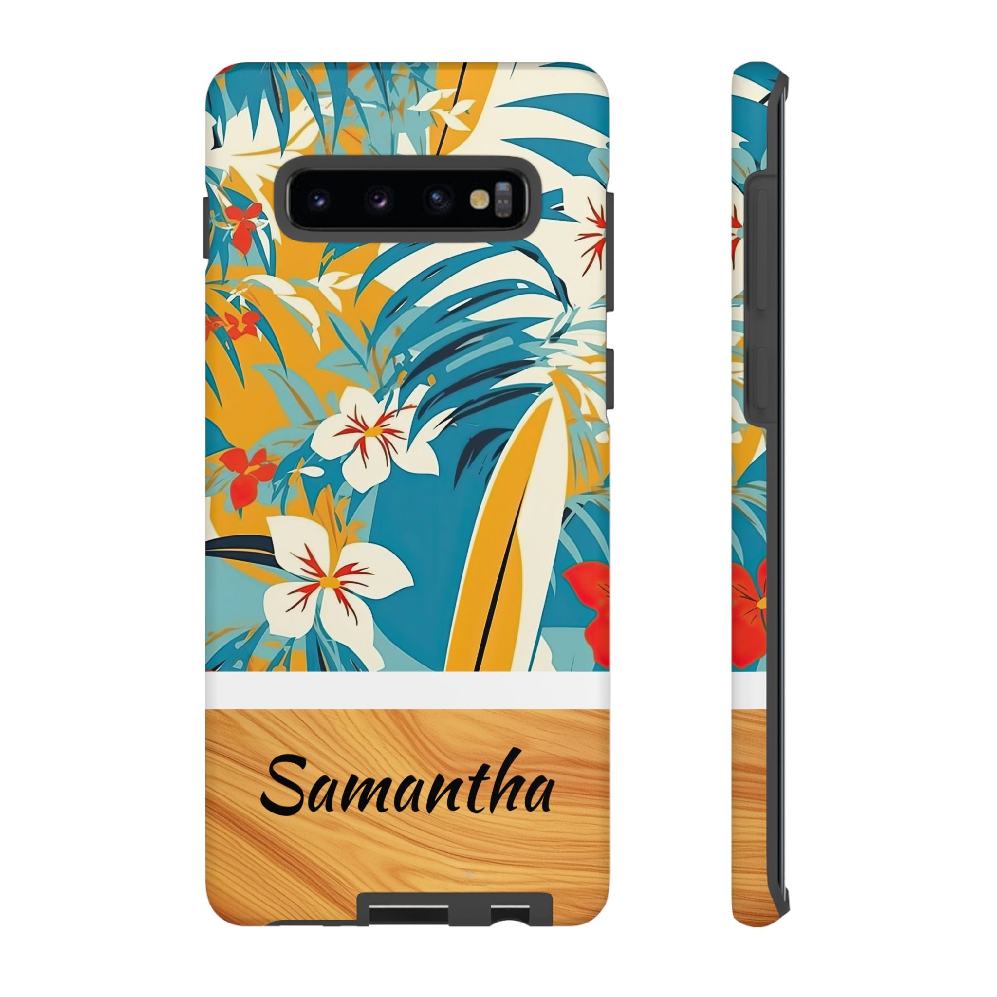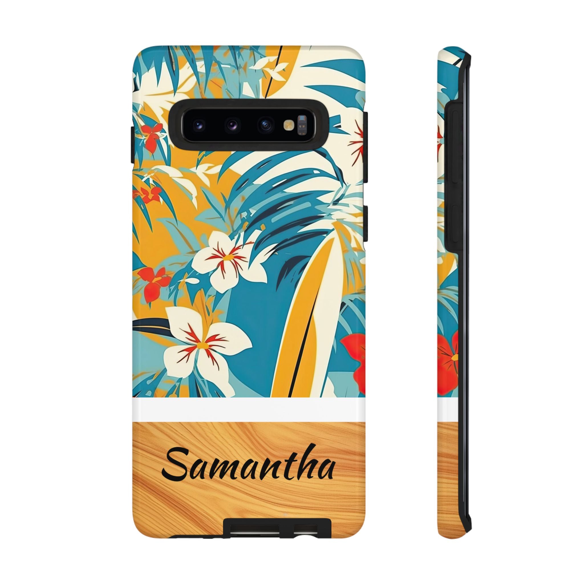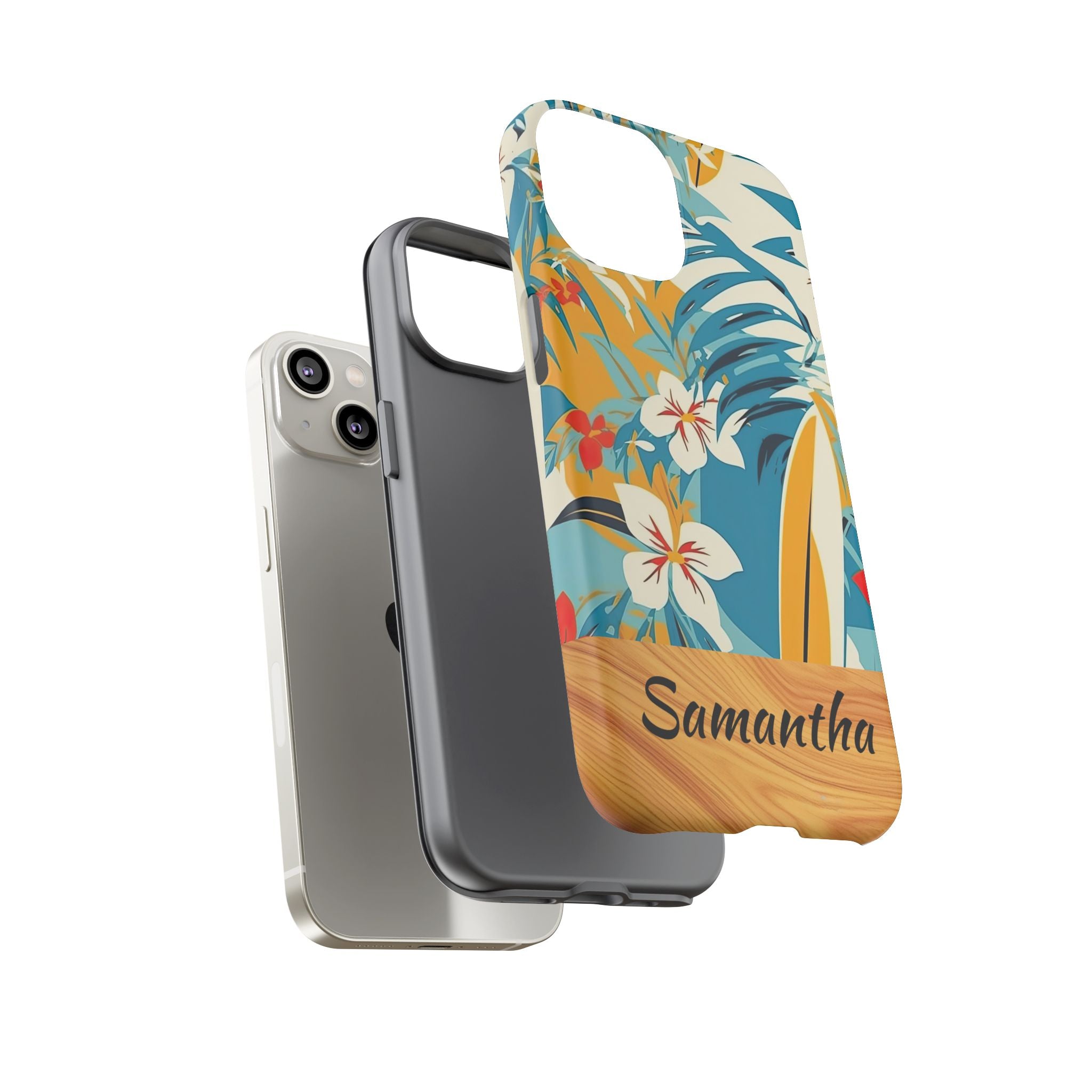 Custom Phone Tough Case Hawaii Surf Boards with Woodgrain Personalize with Name