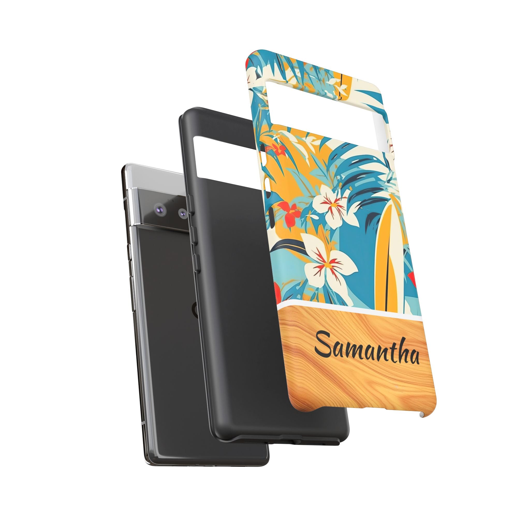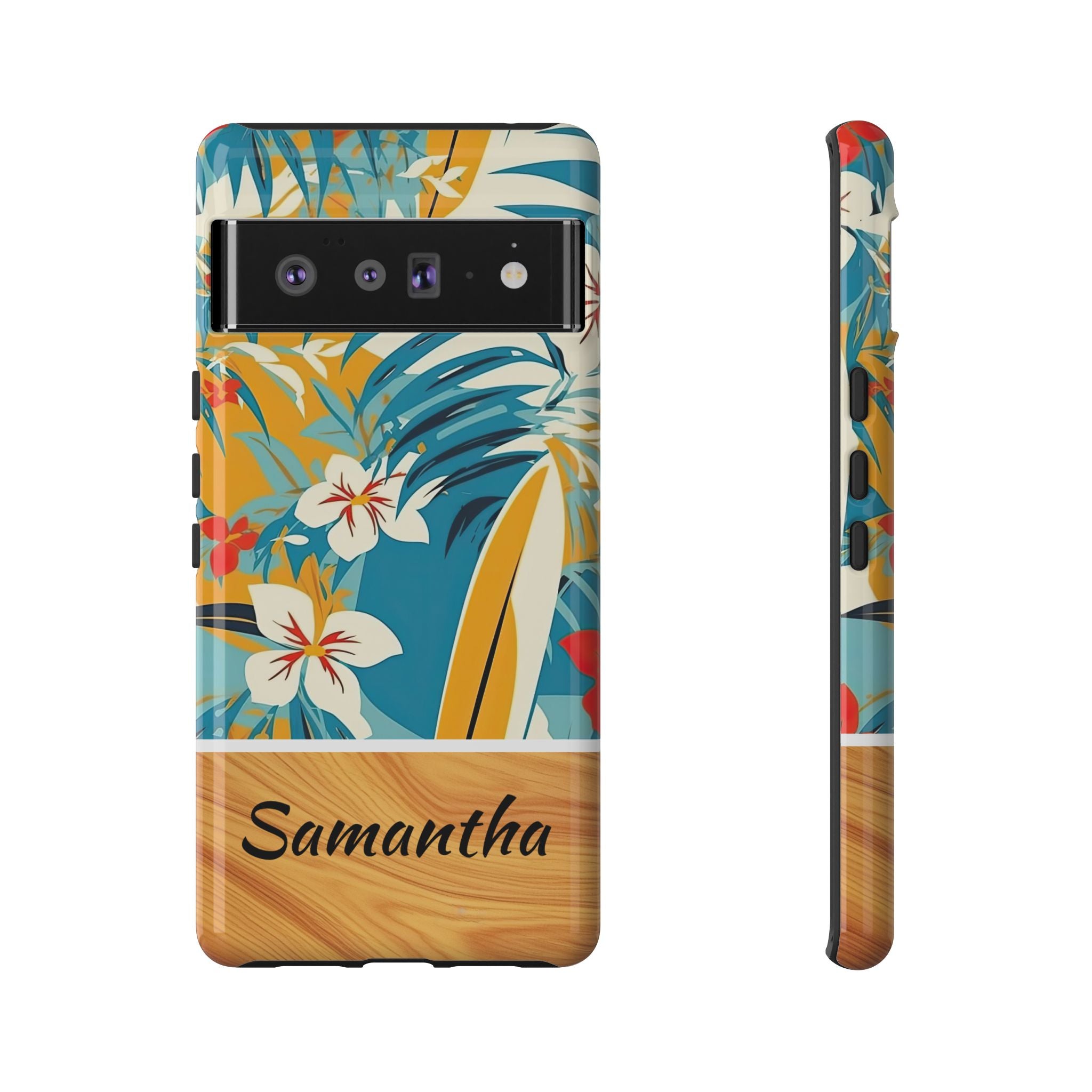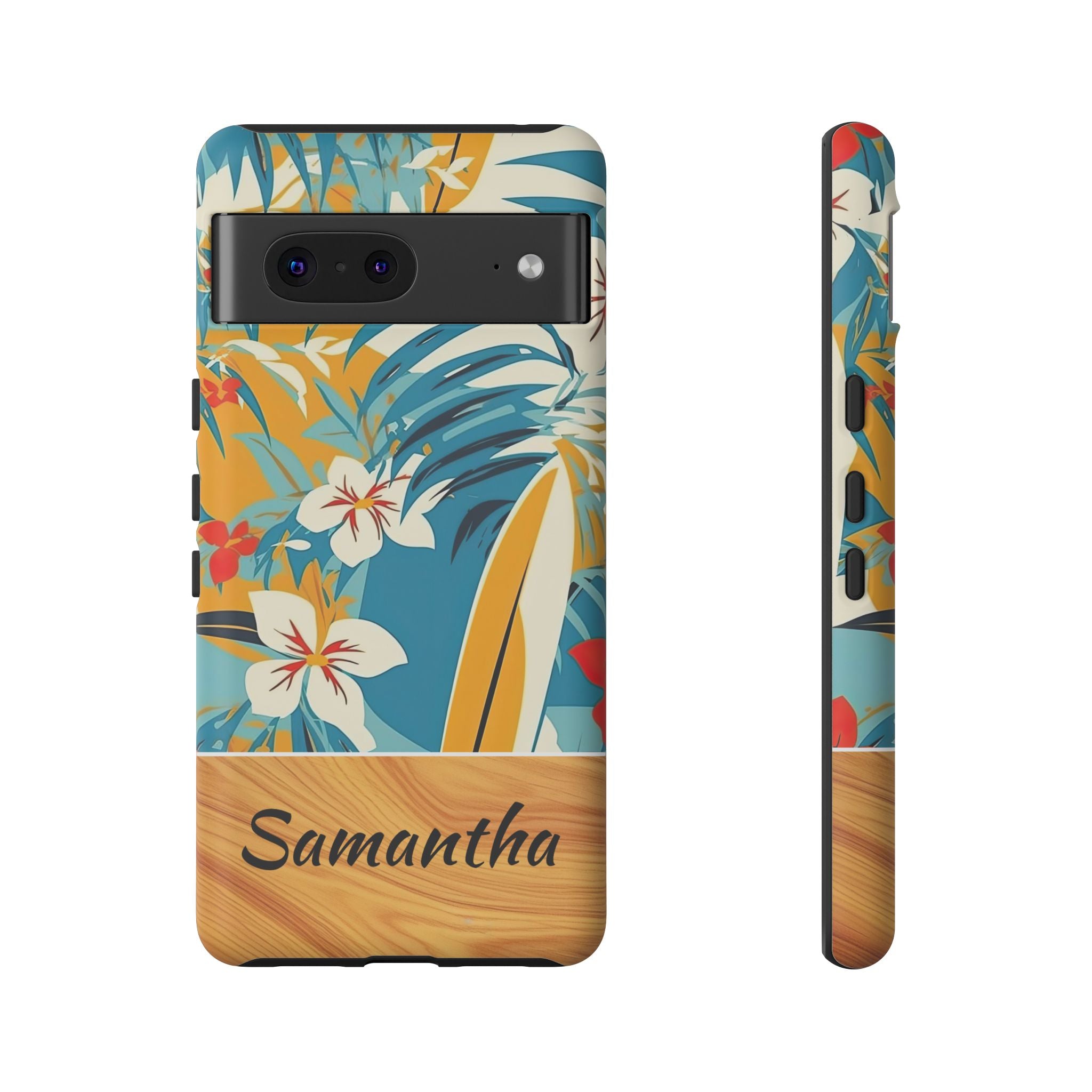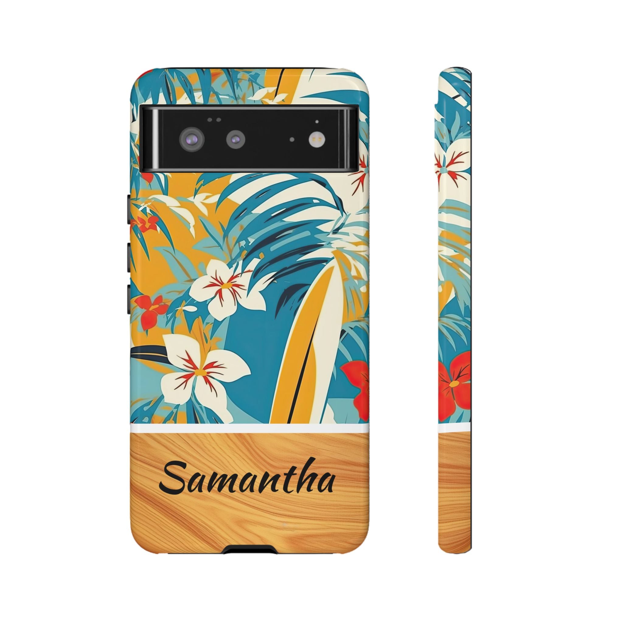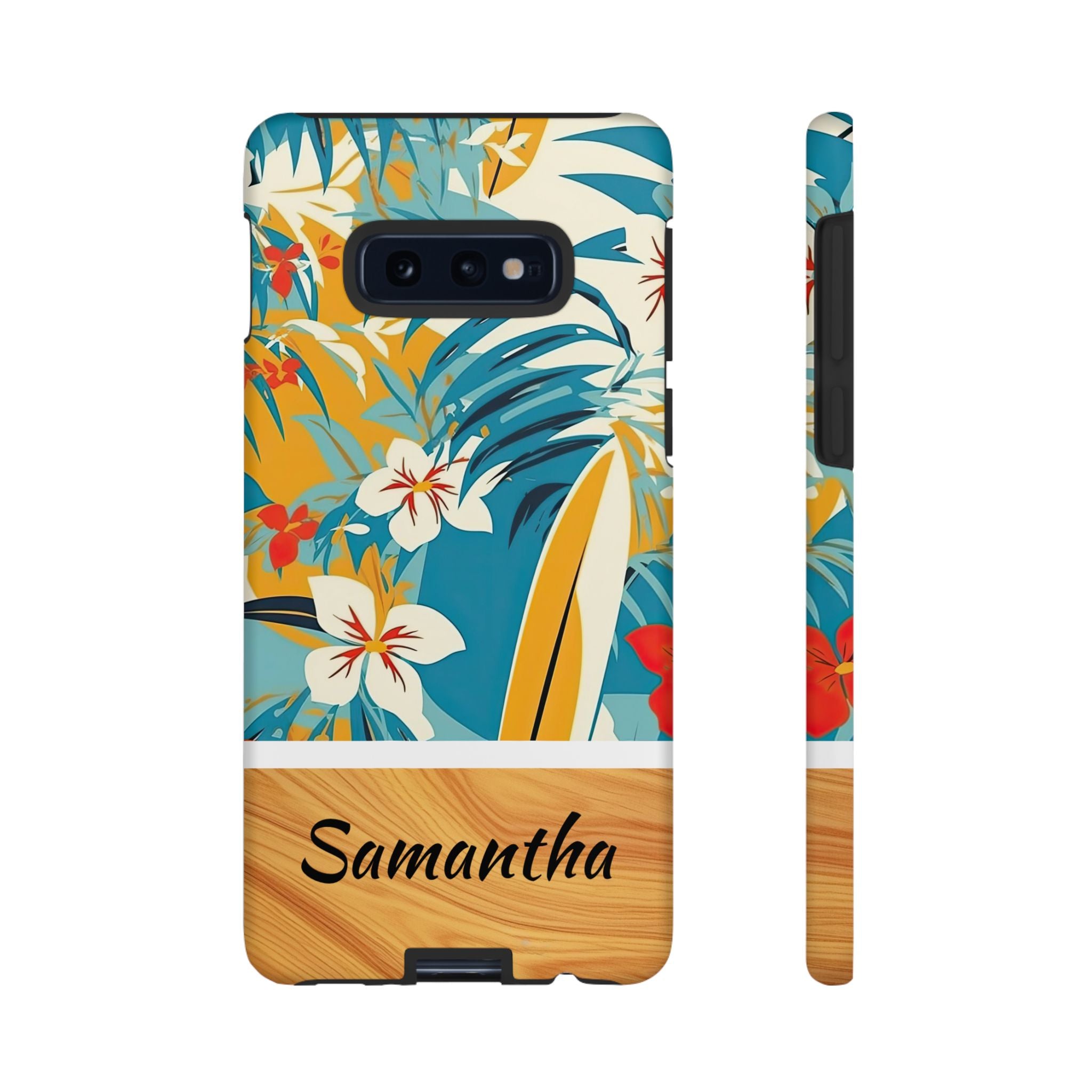 Custom Phone Tough Case Hawaii Surf Boards with Woodgrain Personalize with Name