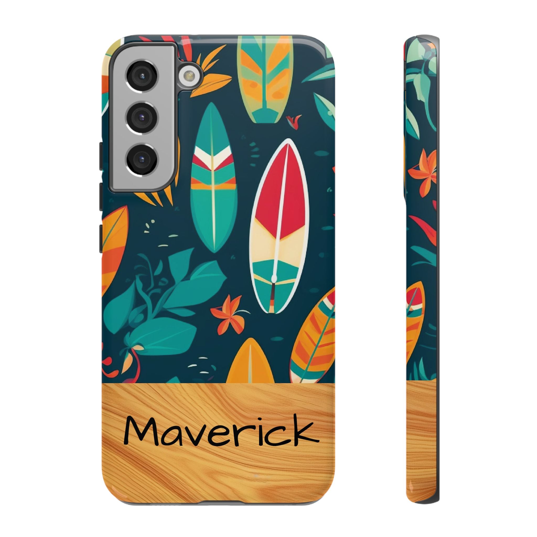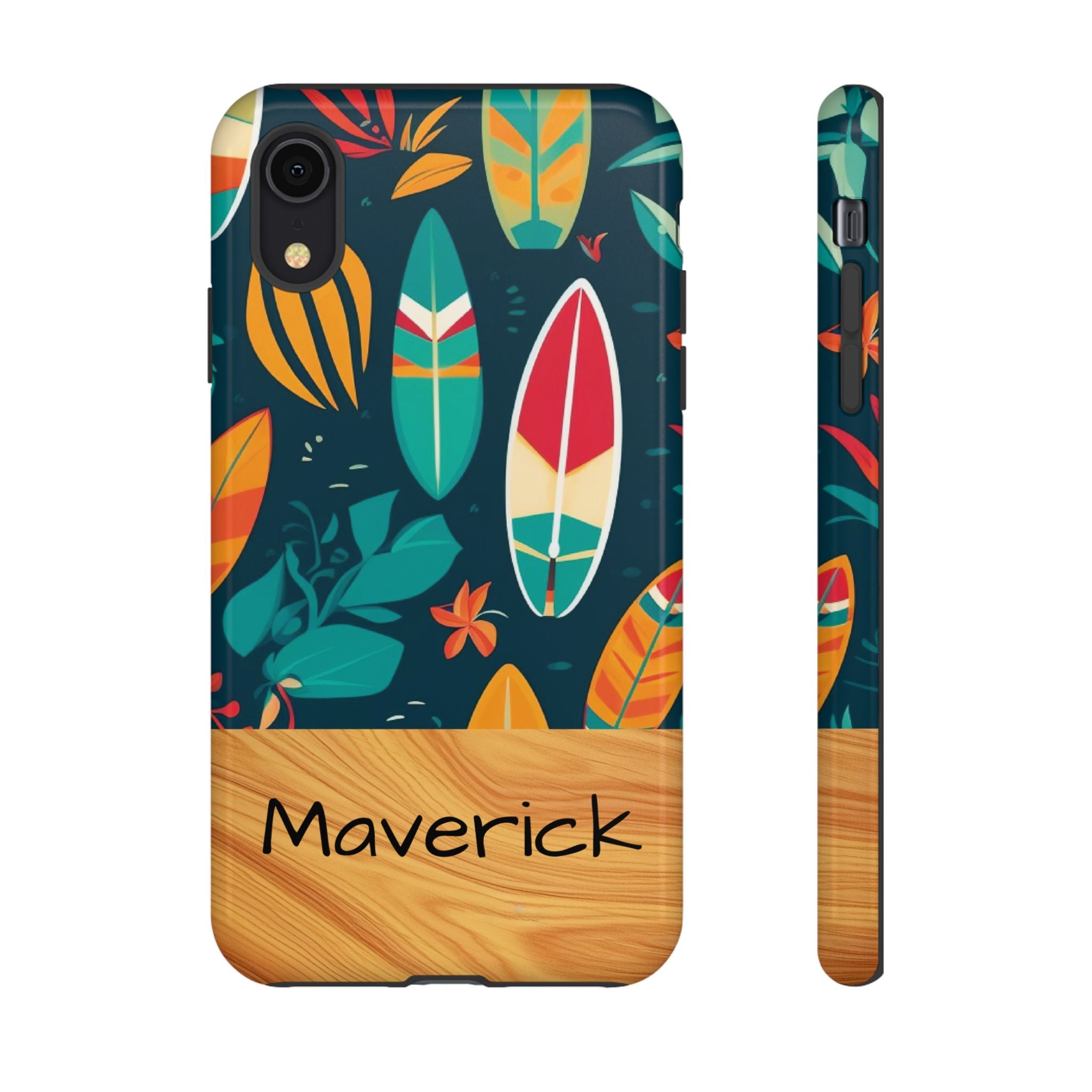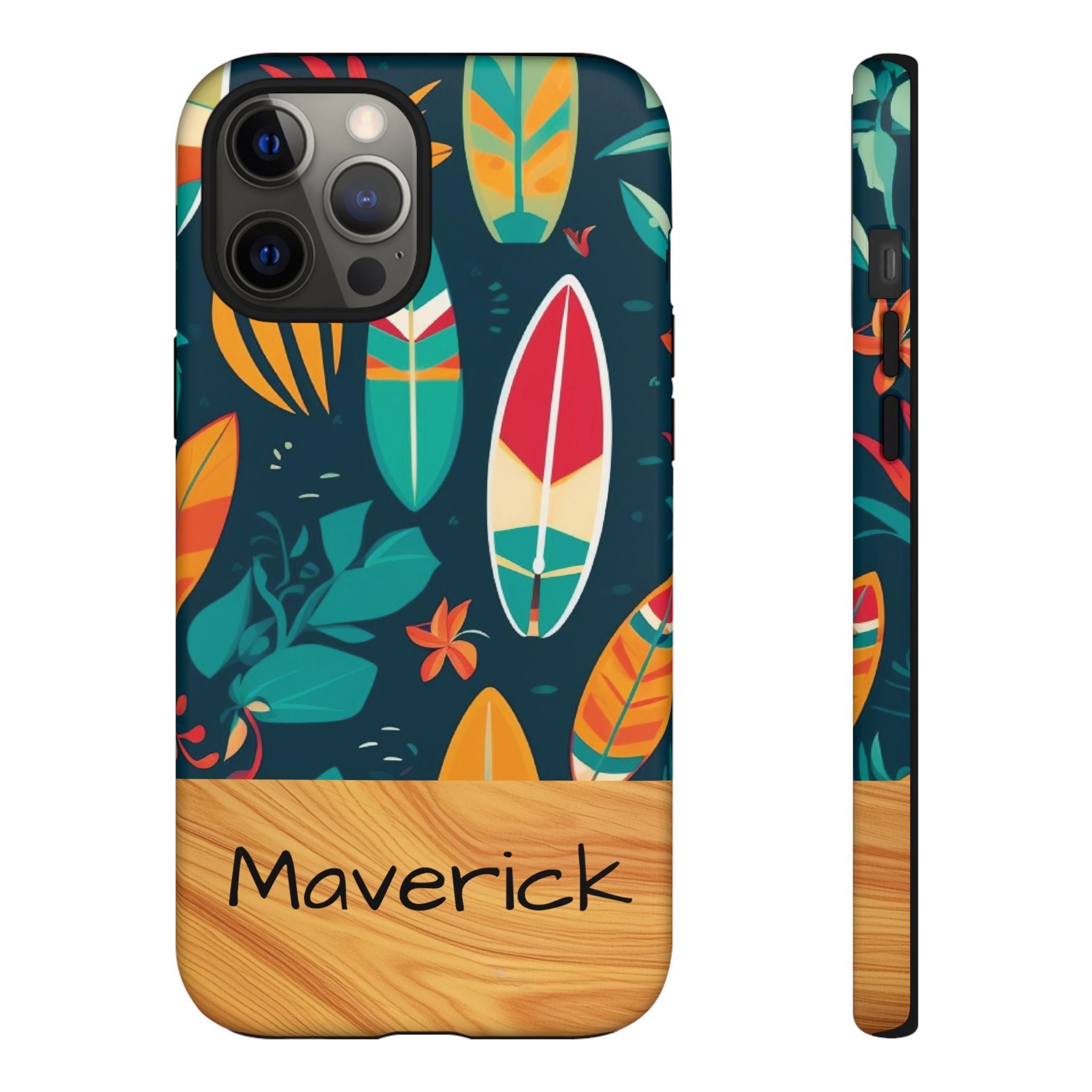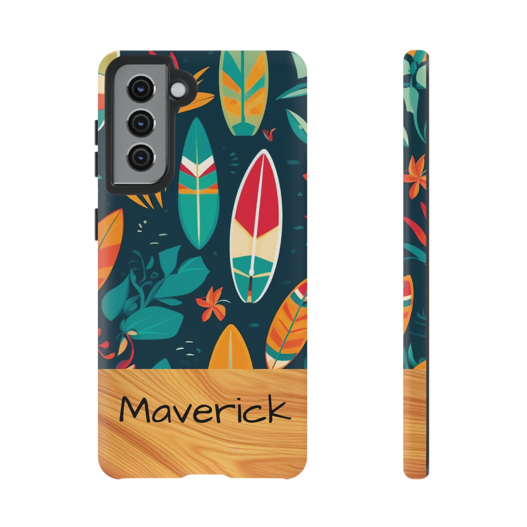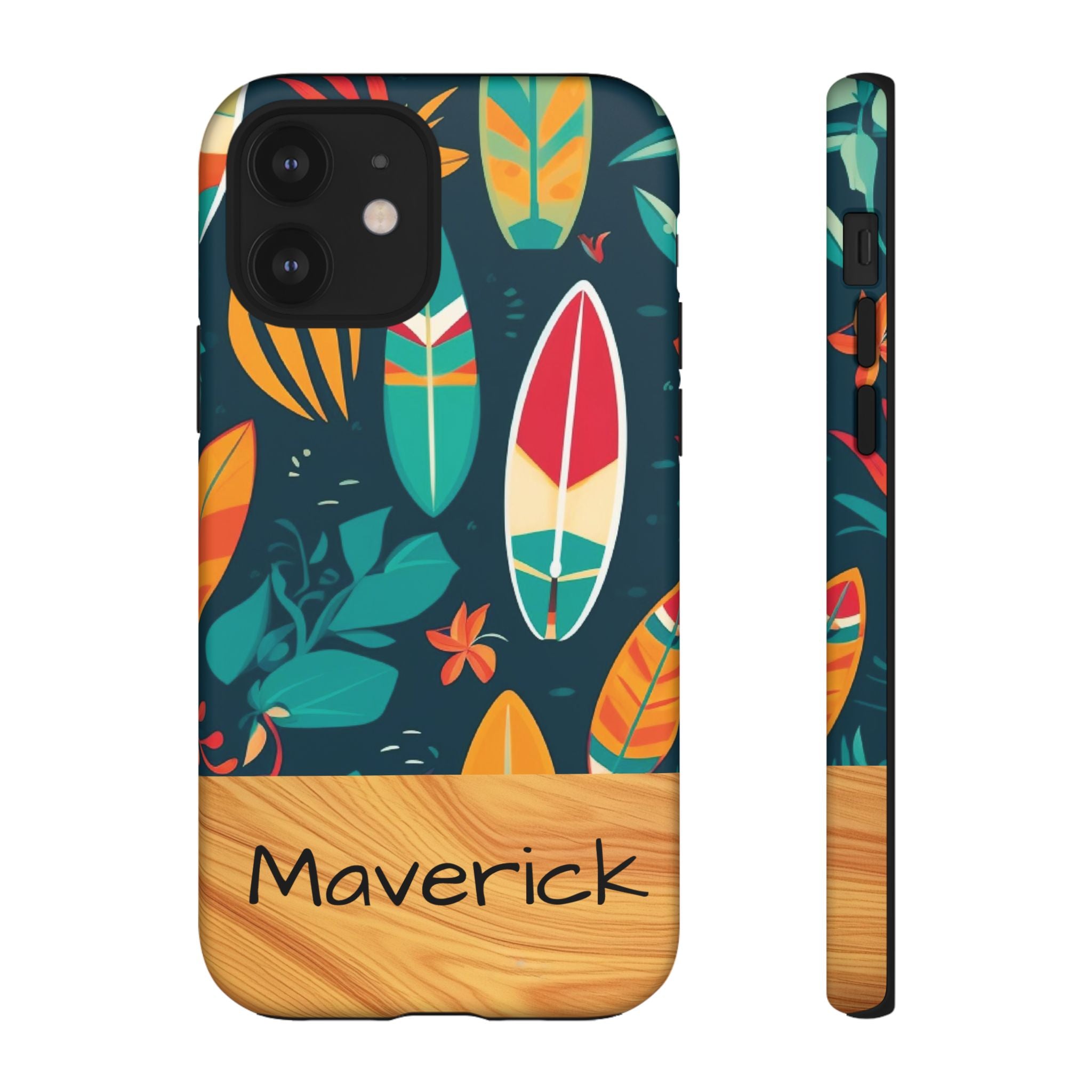 Custom Phone Tough Case Hawaii Surf Boards with Woodgrain Personalize with Name