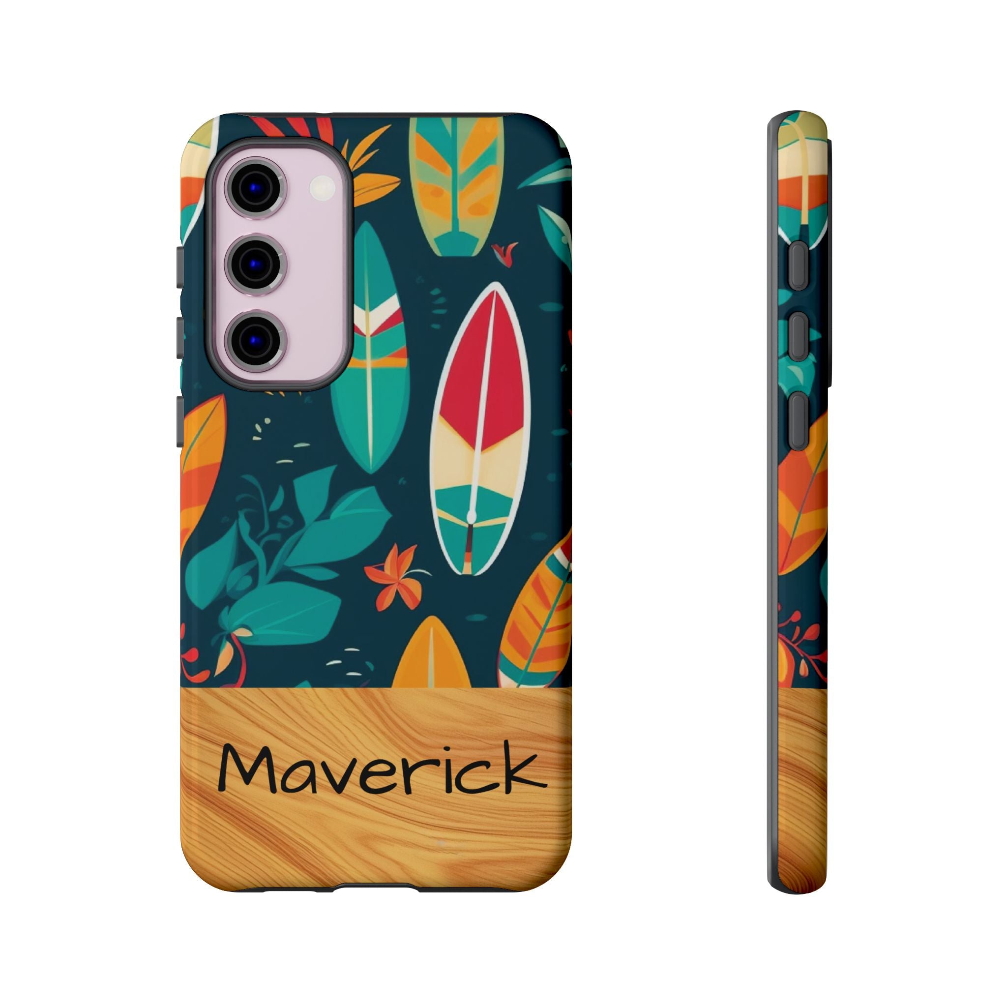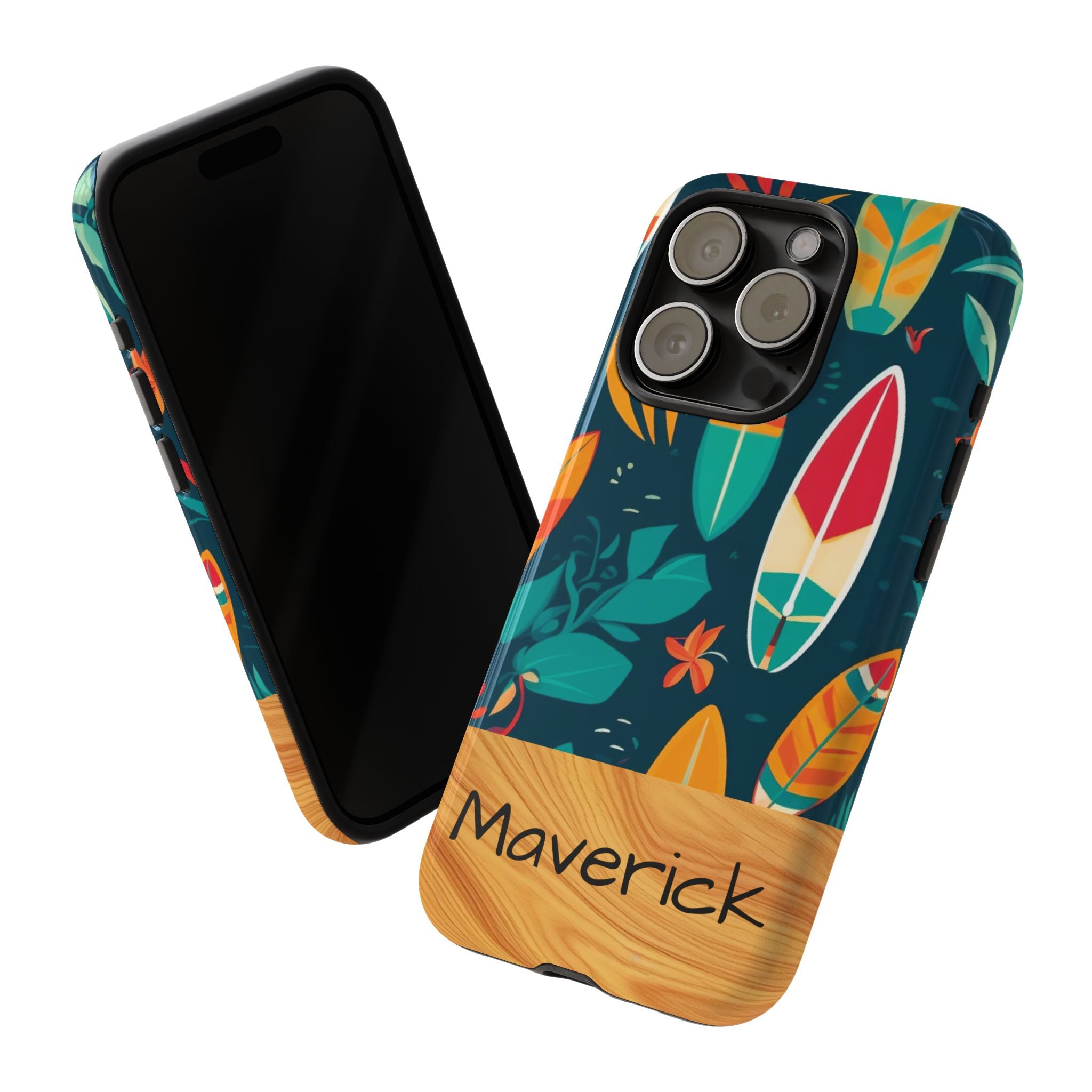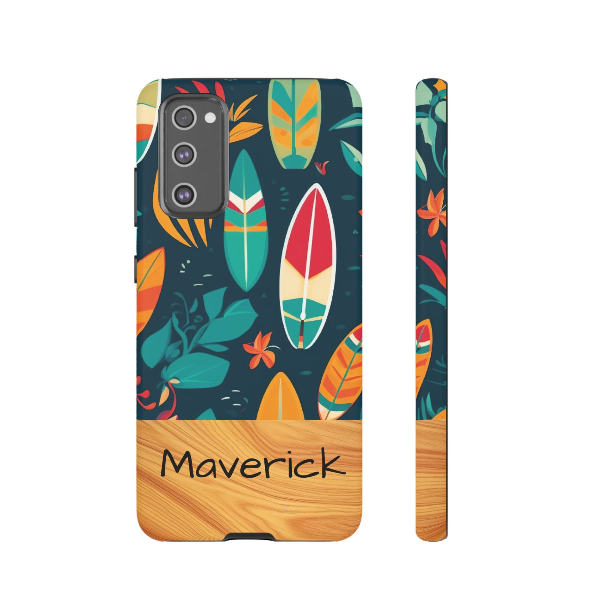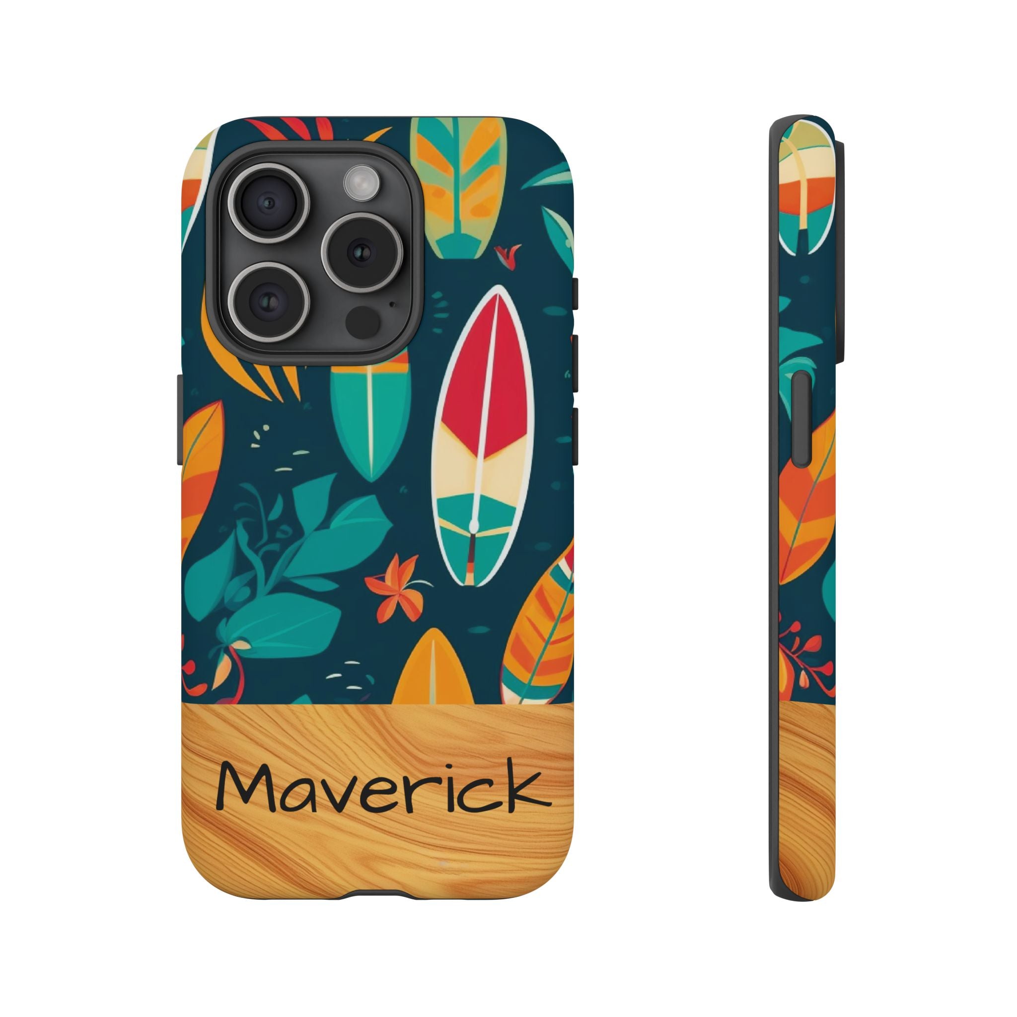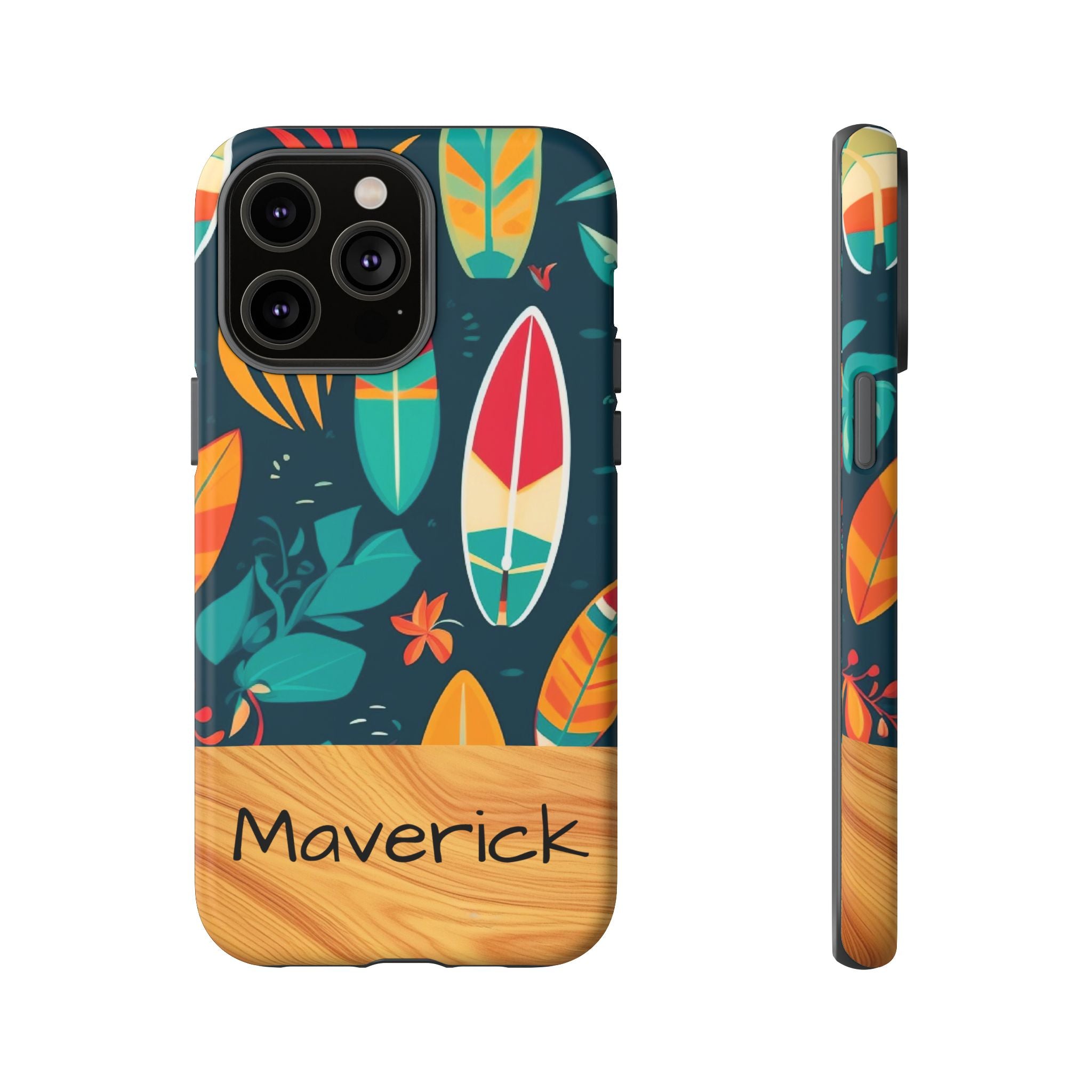 Custom Phone Tough Case Hawaii Surf Boards with Woodgrain Personalize with Name