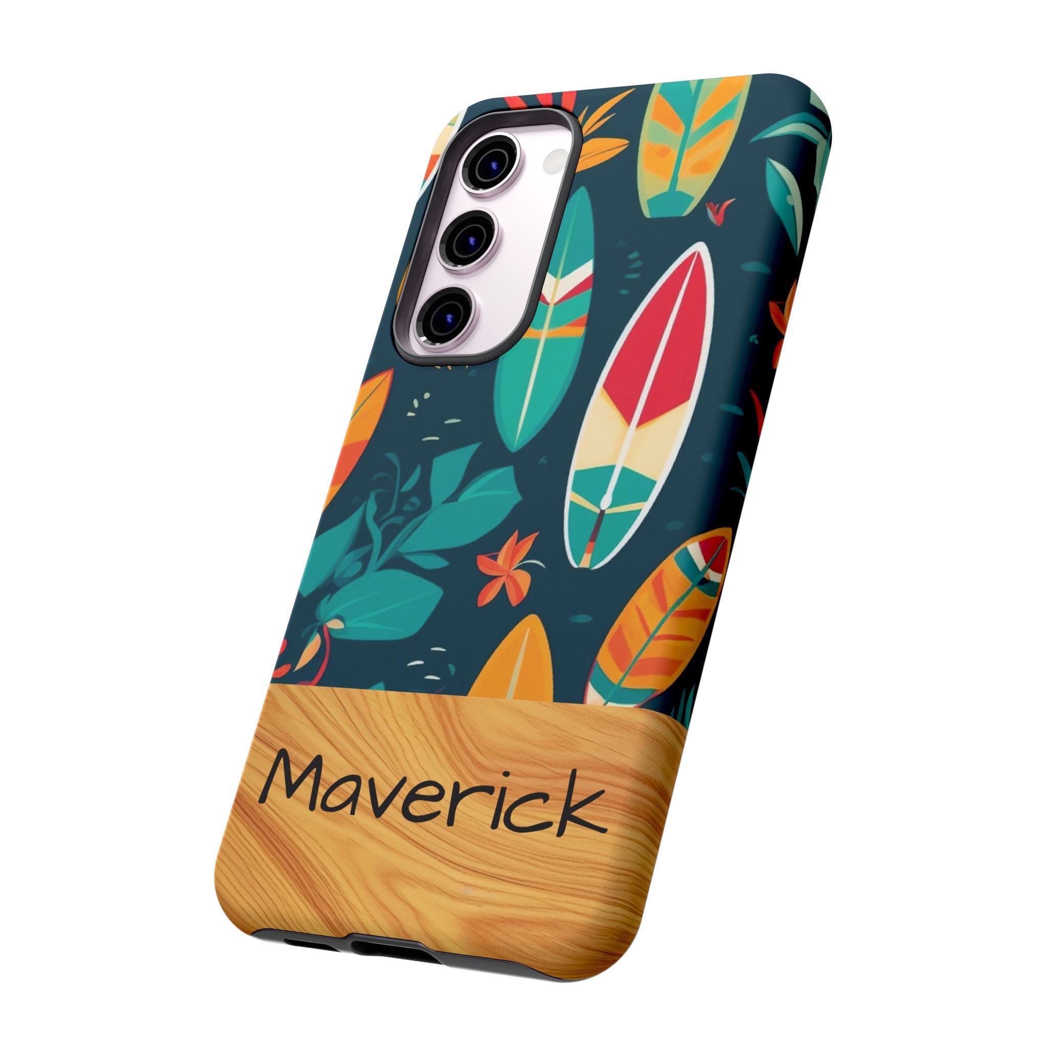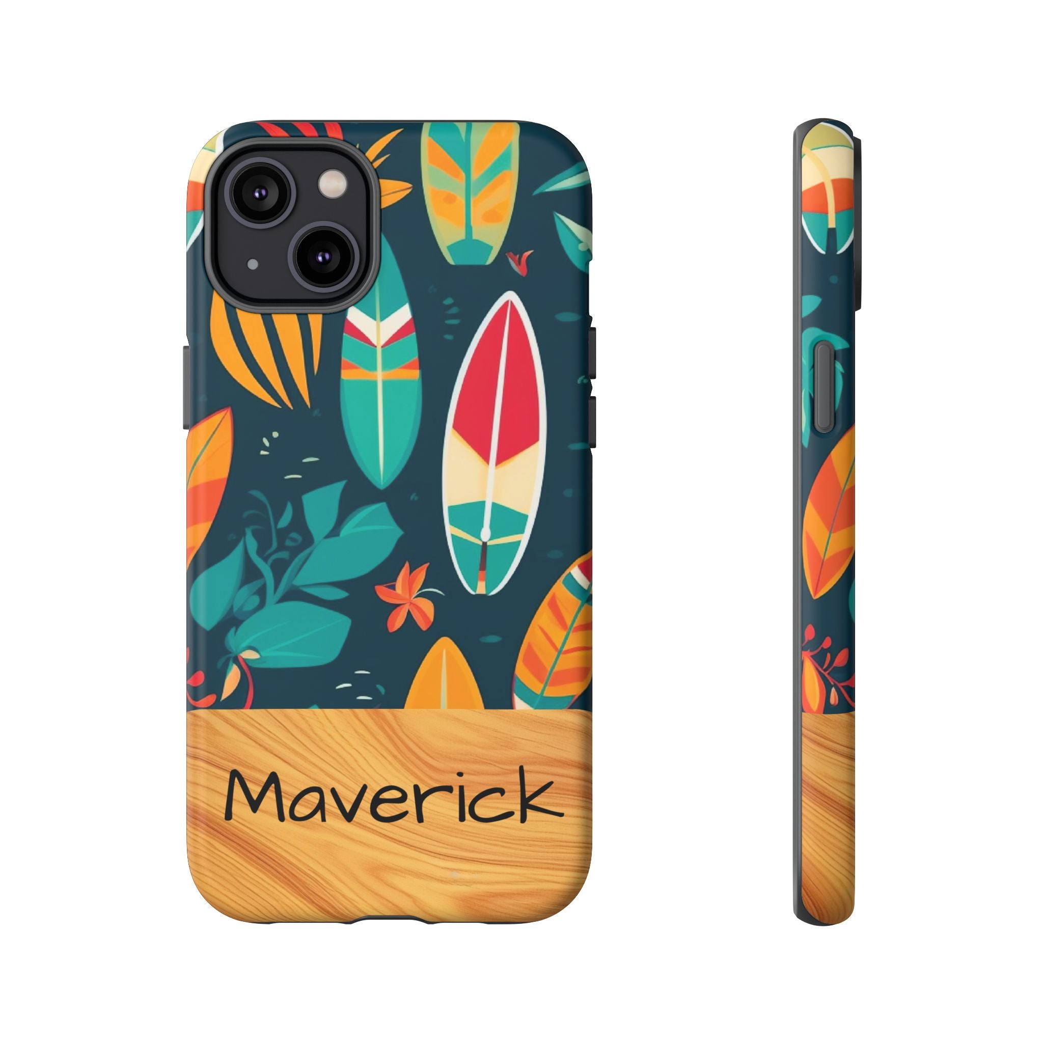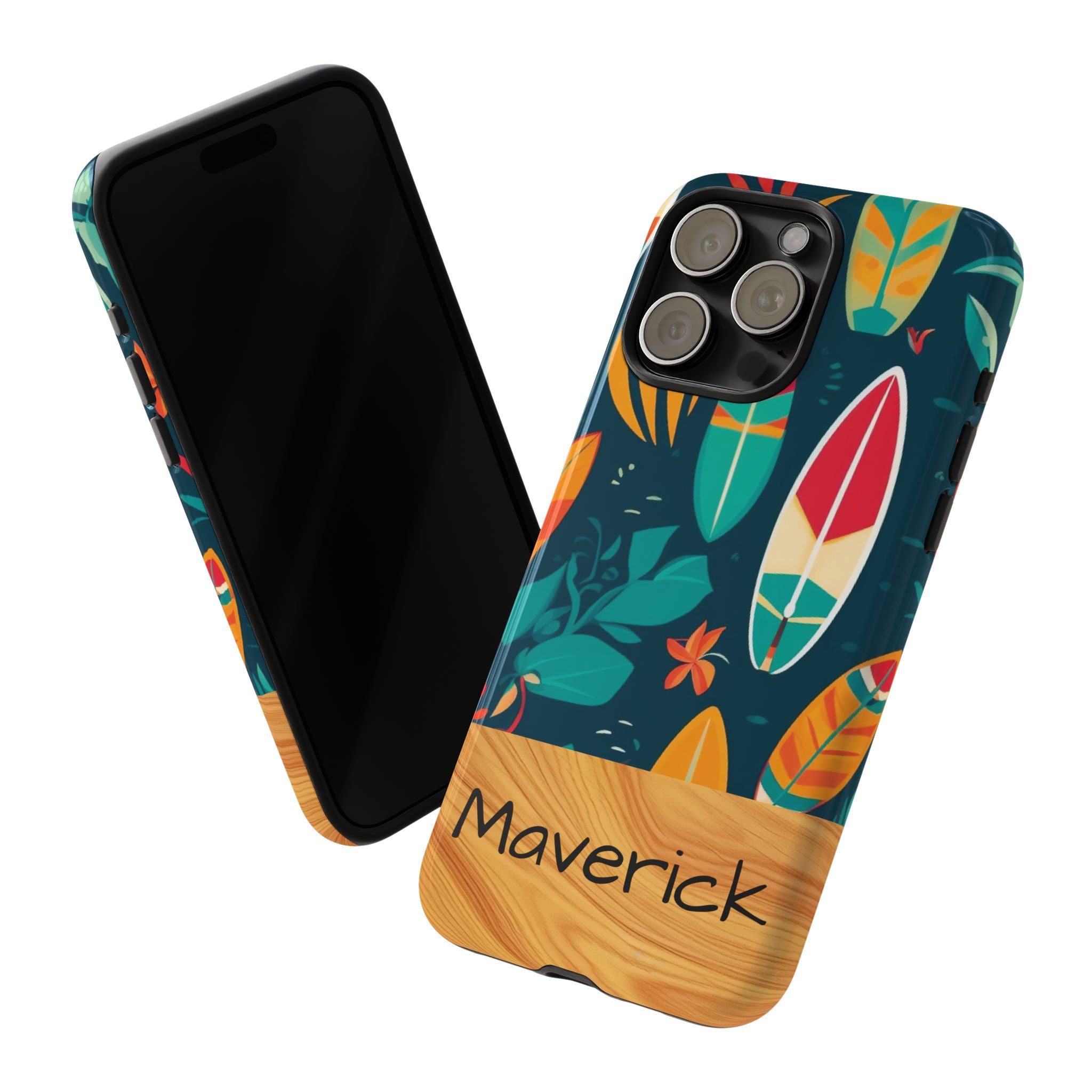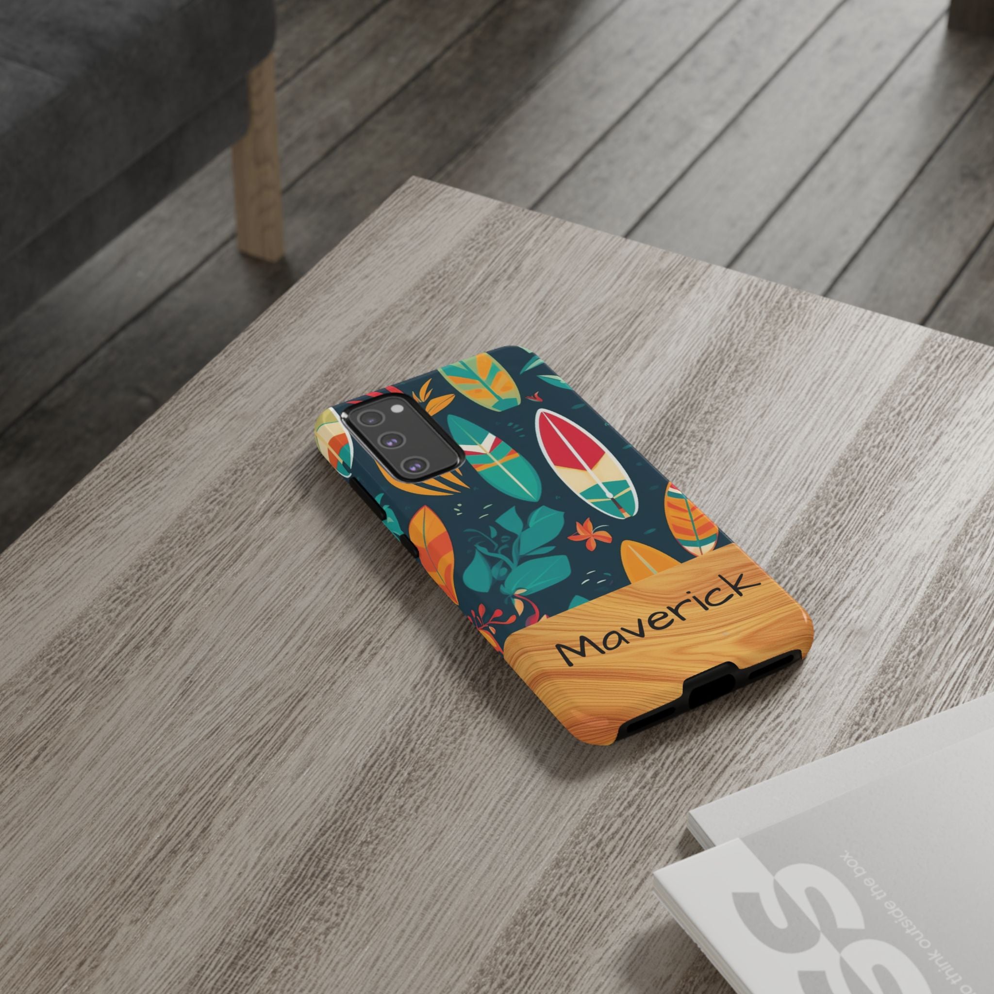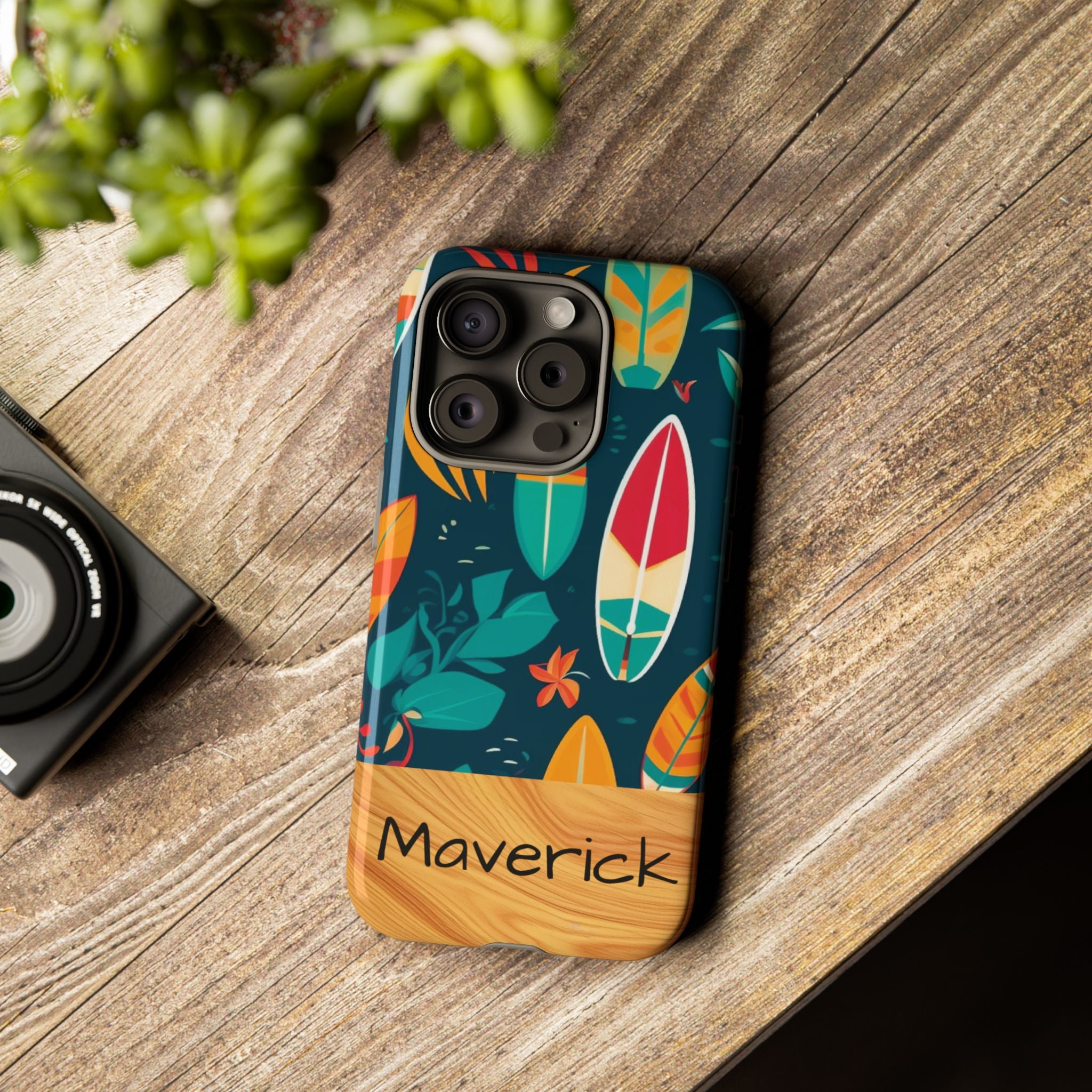 Custom Phone Tough Case Hawaii Surf Boards with Woodgrain Personalize with Name