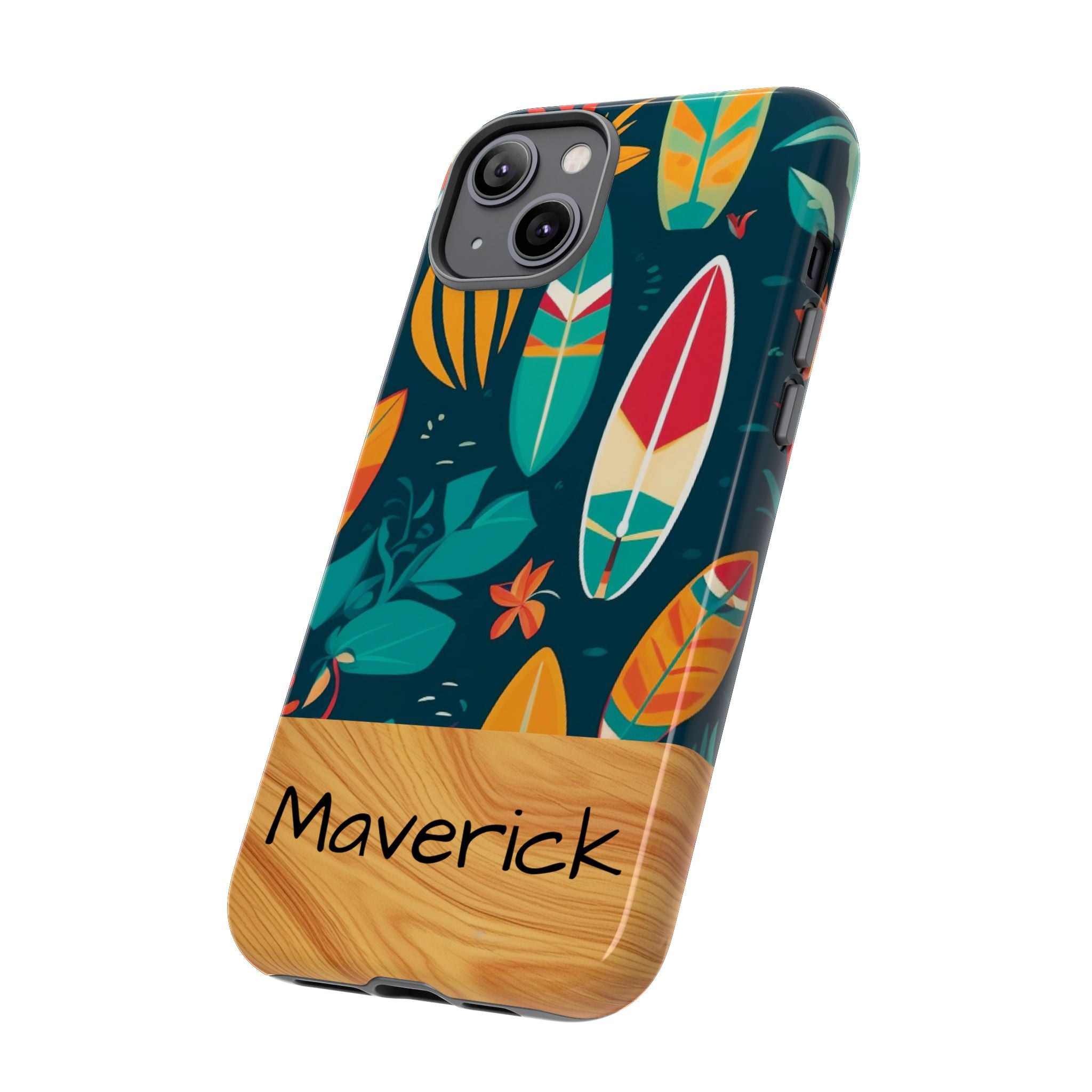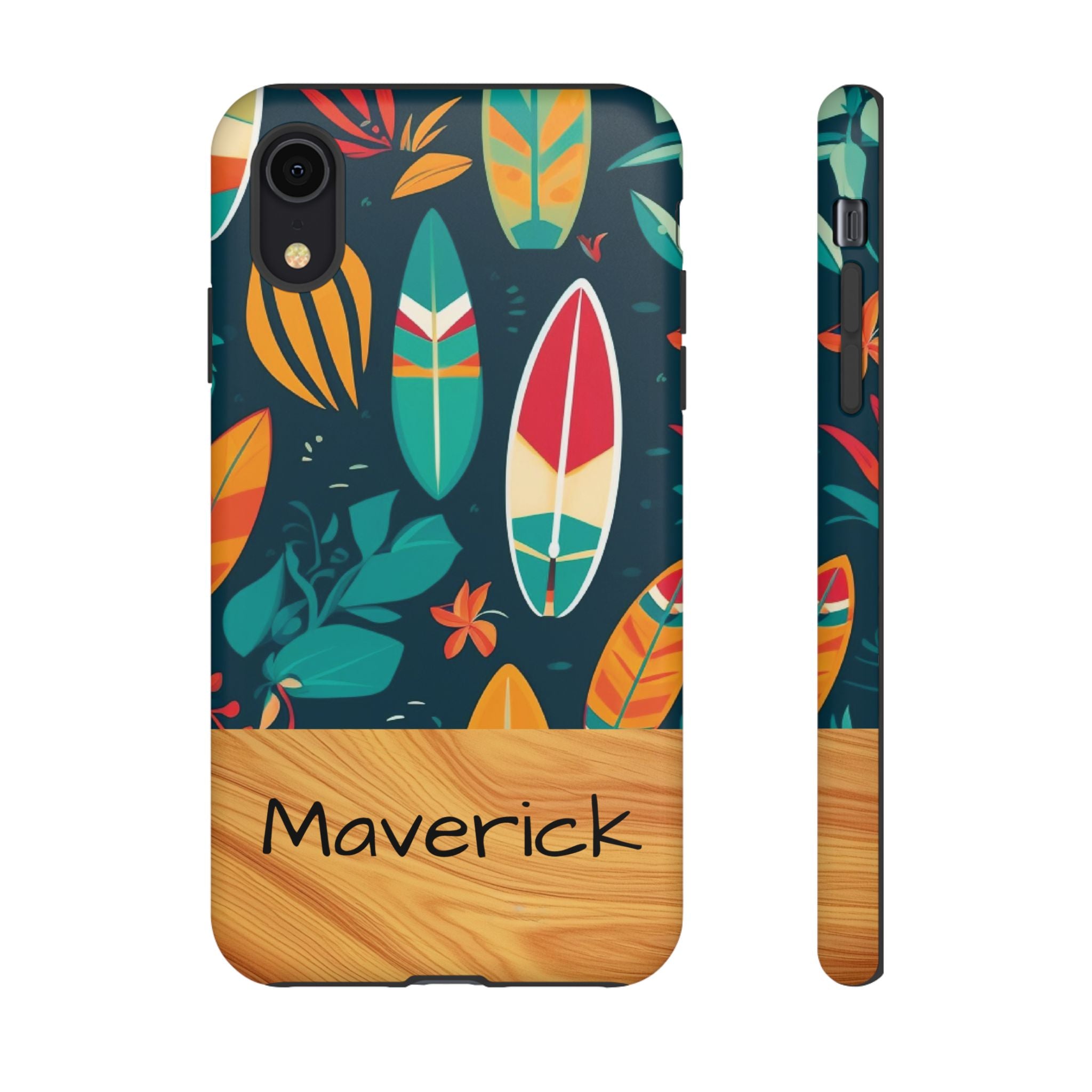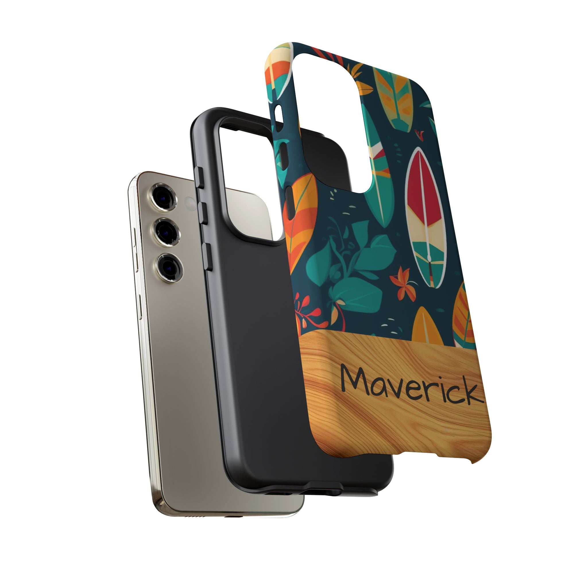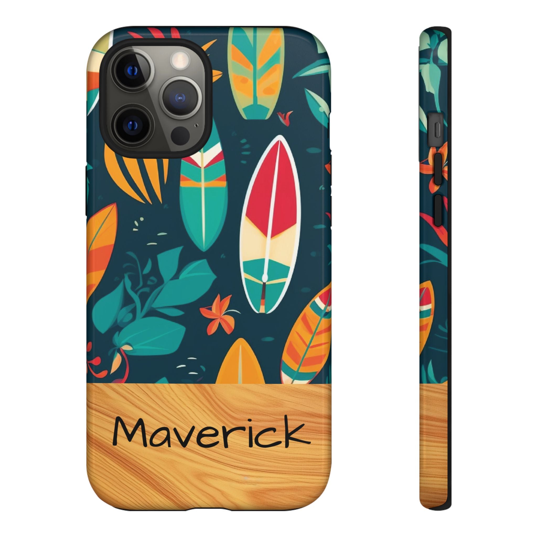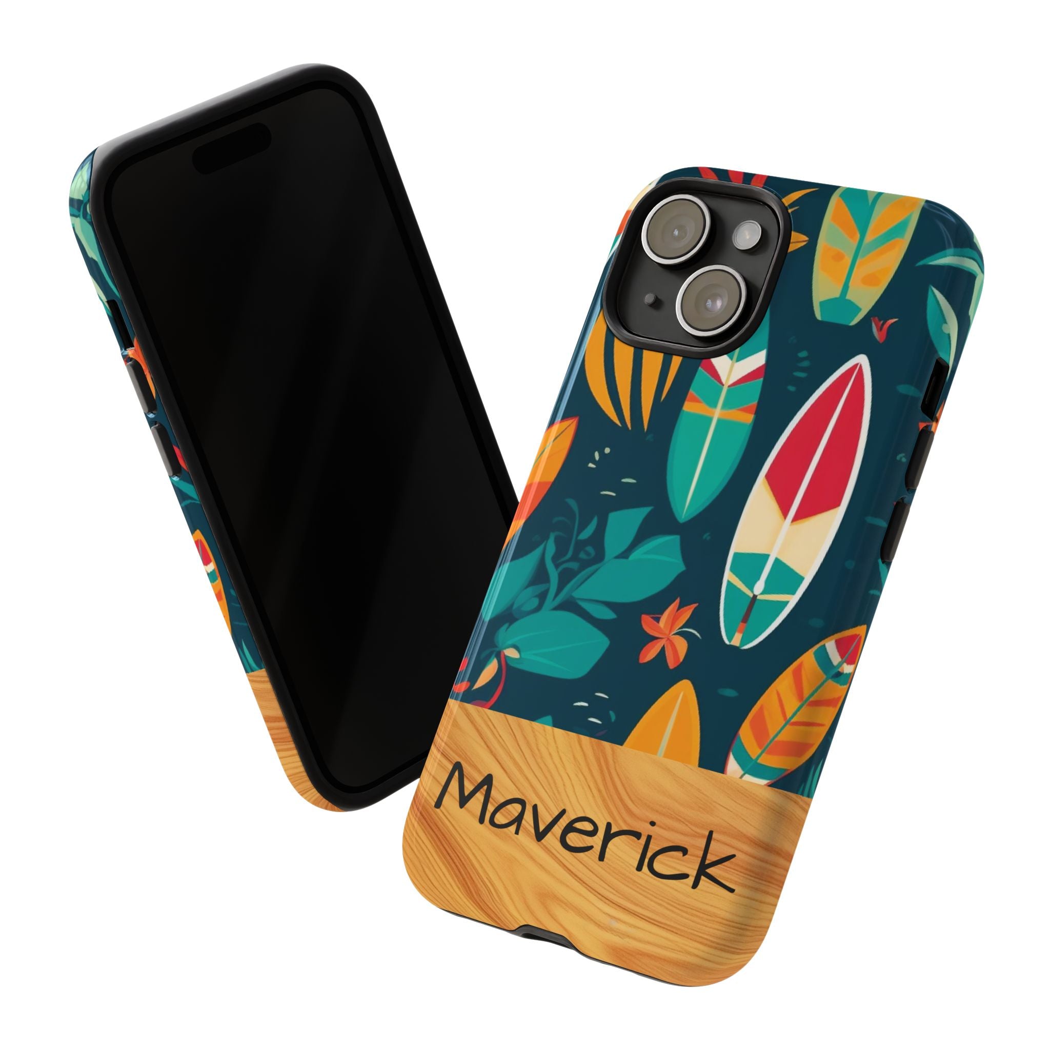 Custom Phone Tough Case Hawaii Surf Boards with Woodgrain Personalize with Name