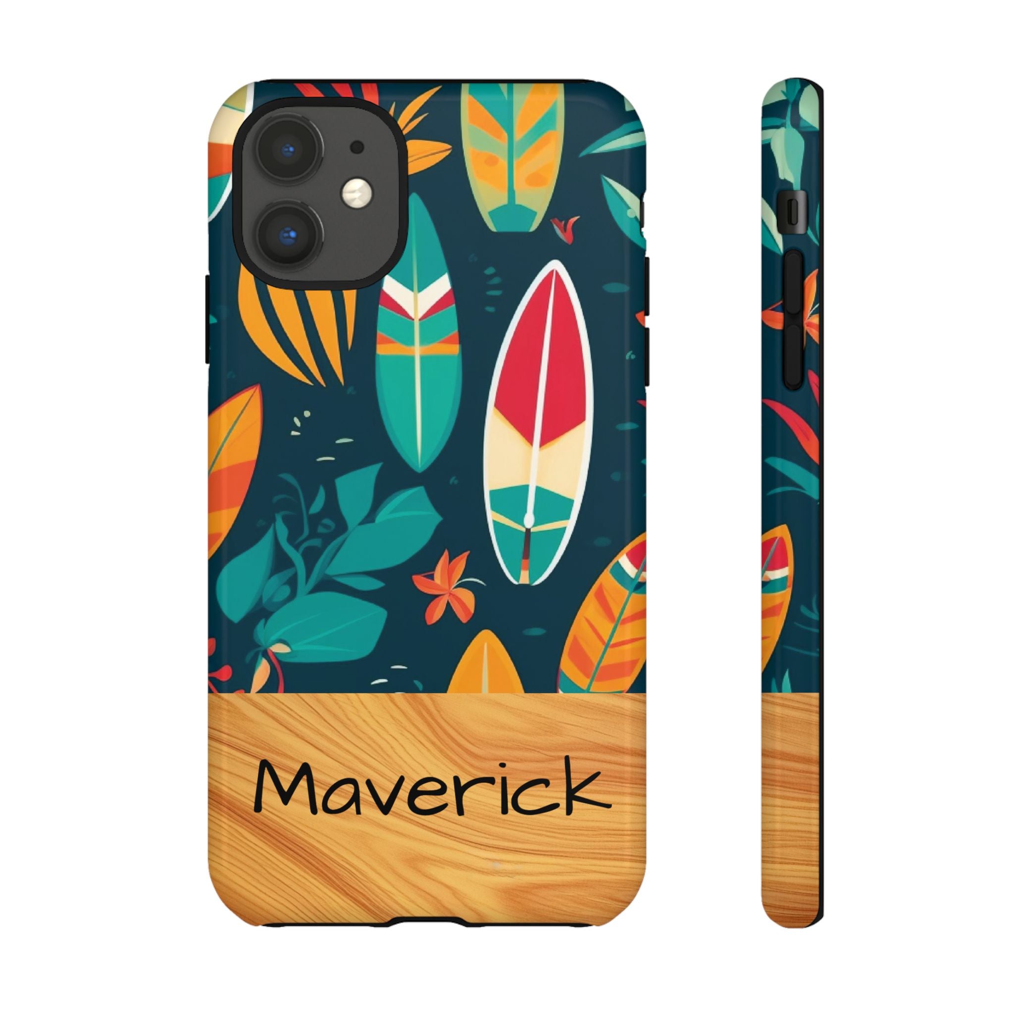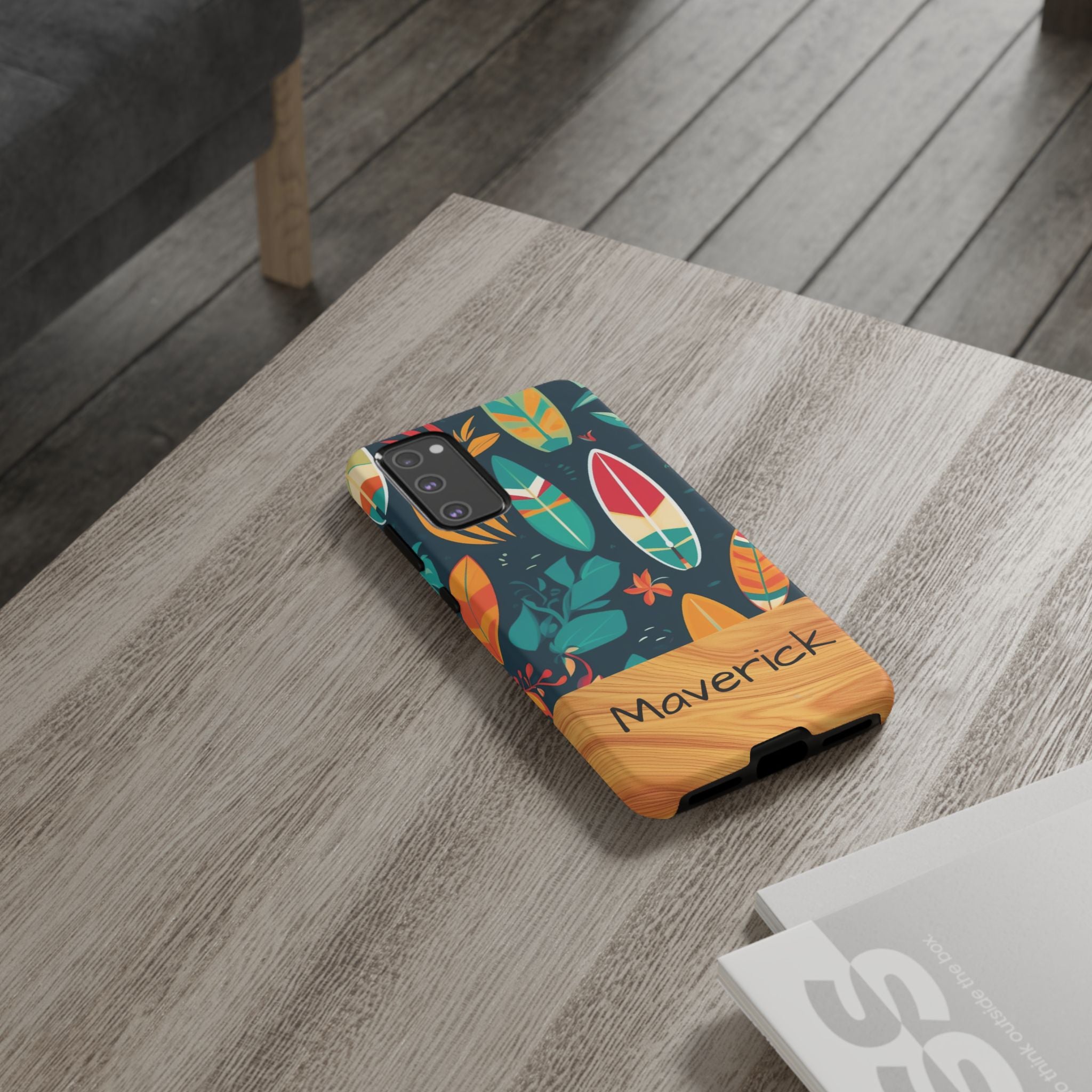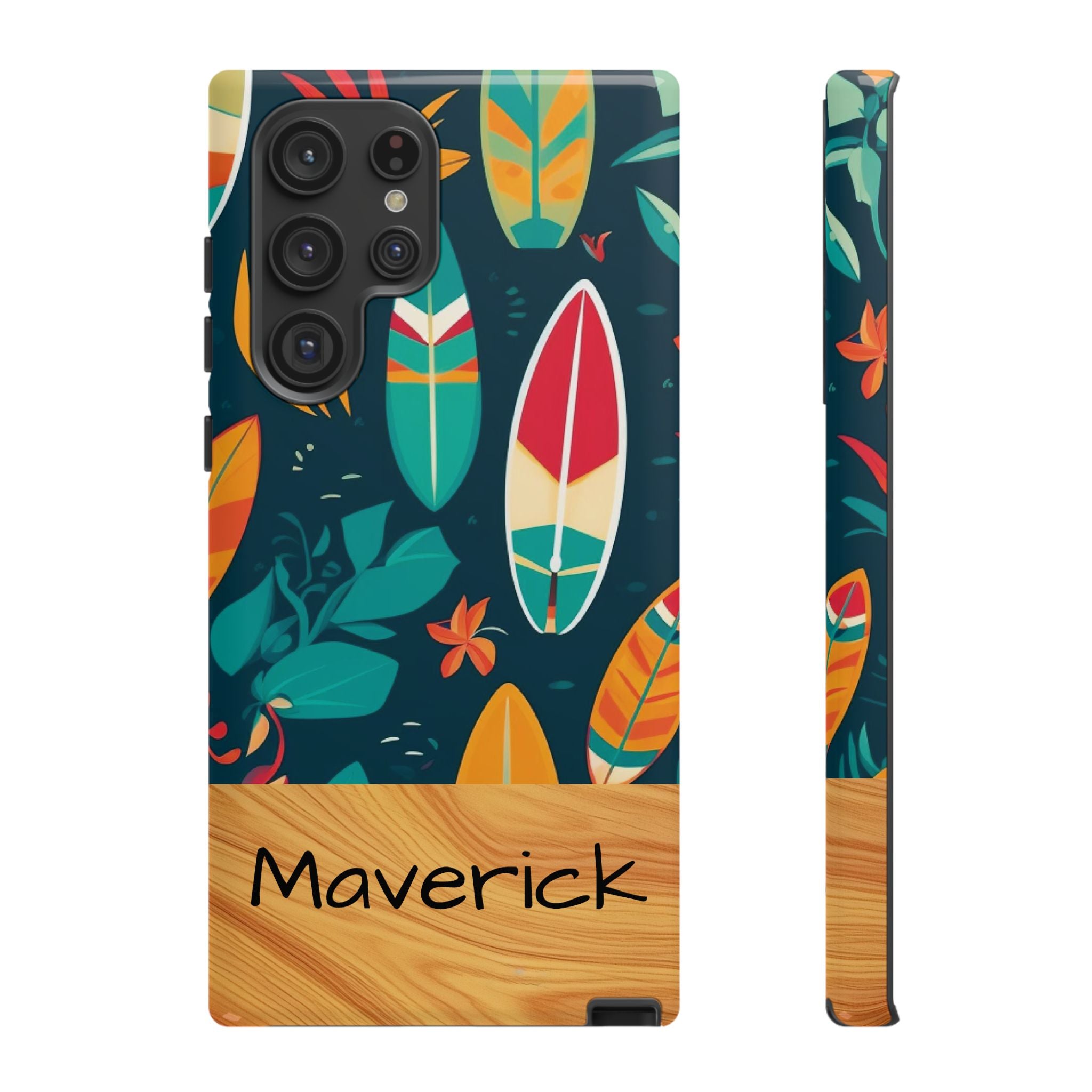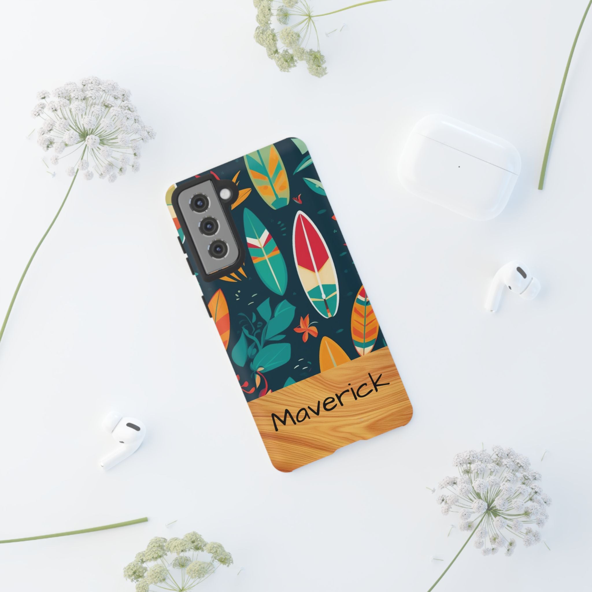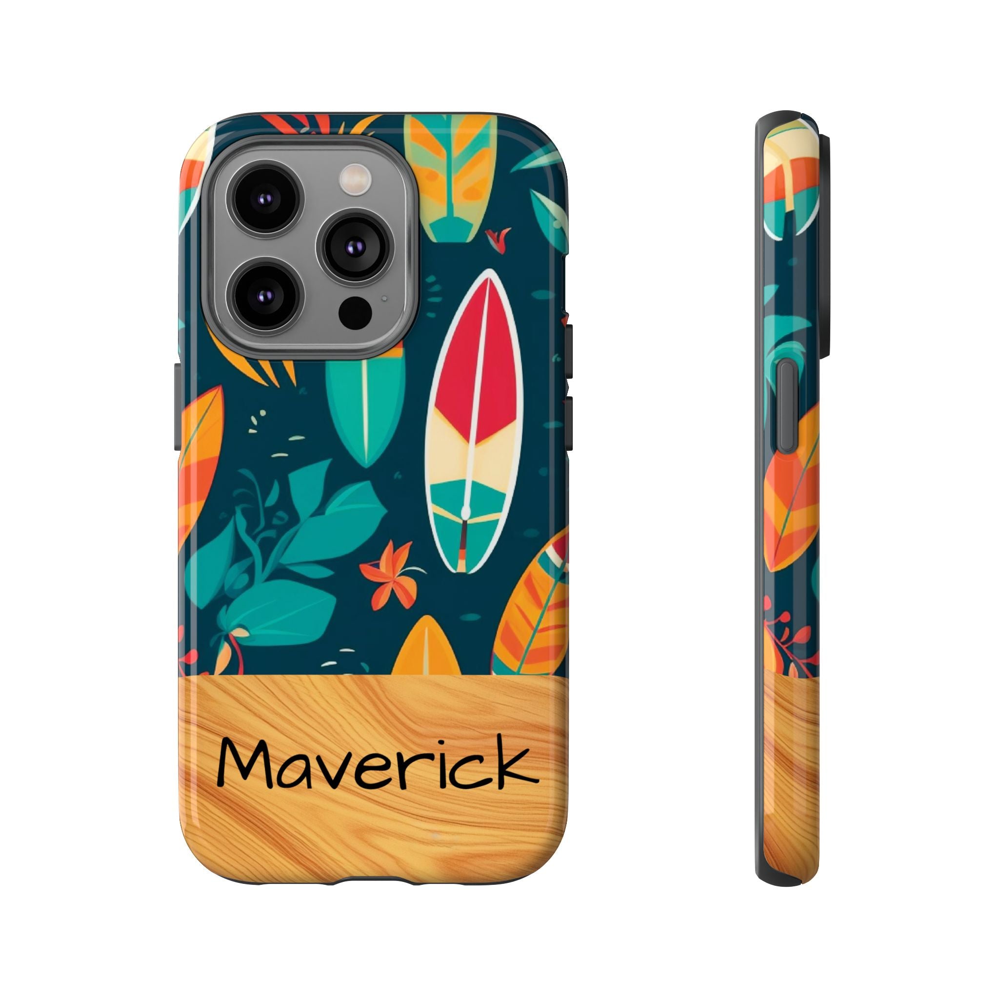 Custom Phone Tough Case Hawaii Surf Boards with Woodgrain Personalize with Name