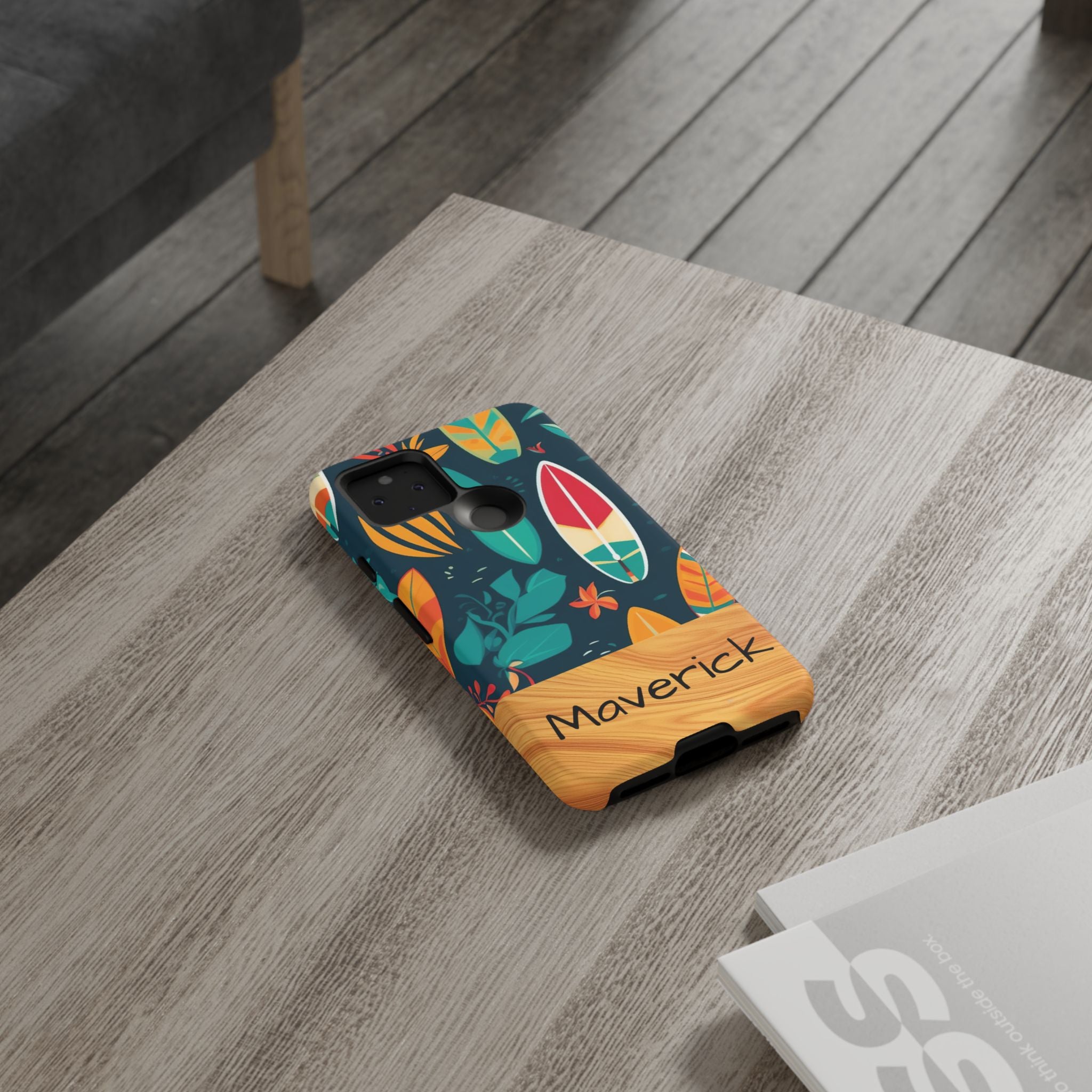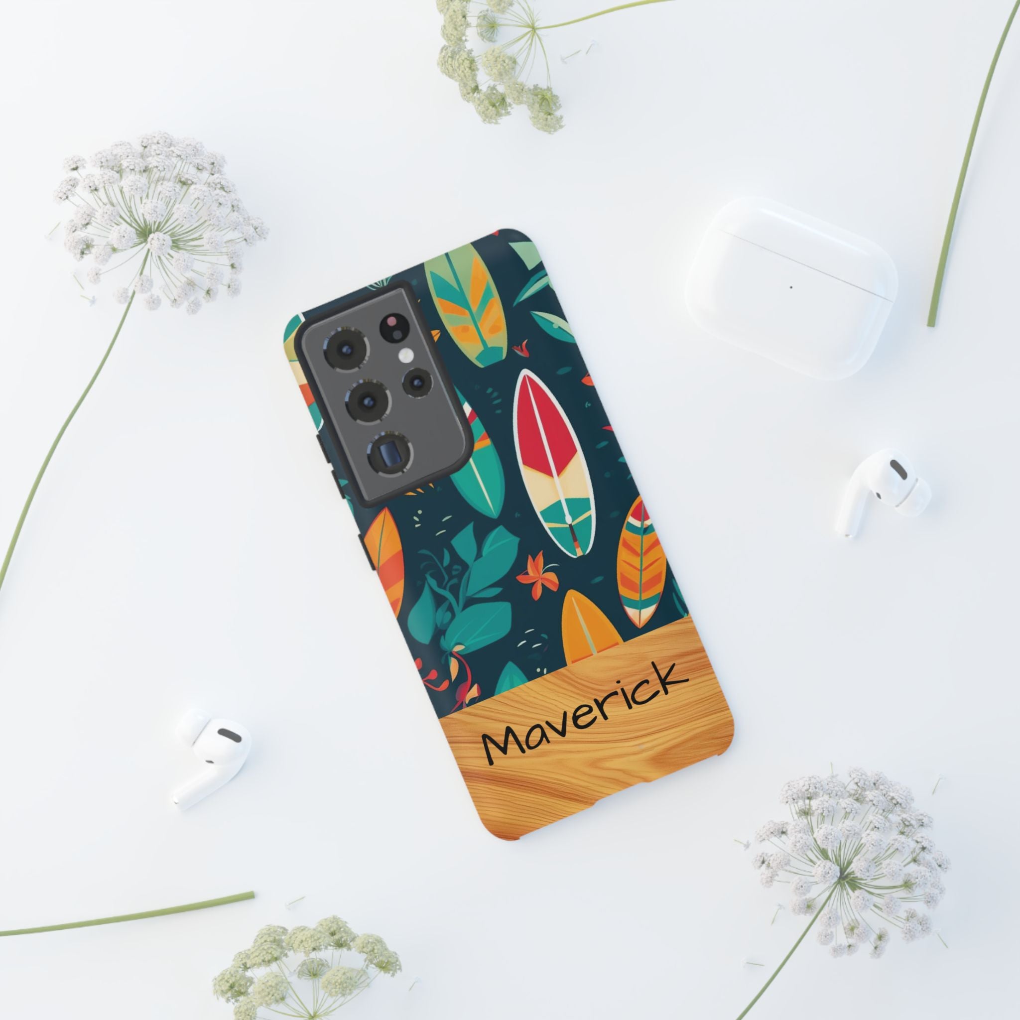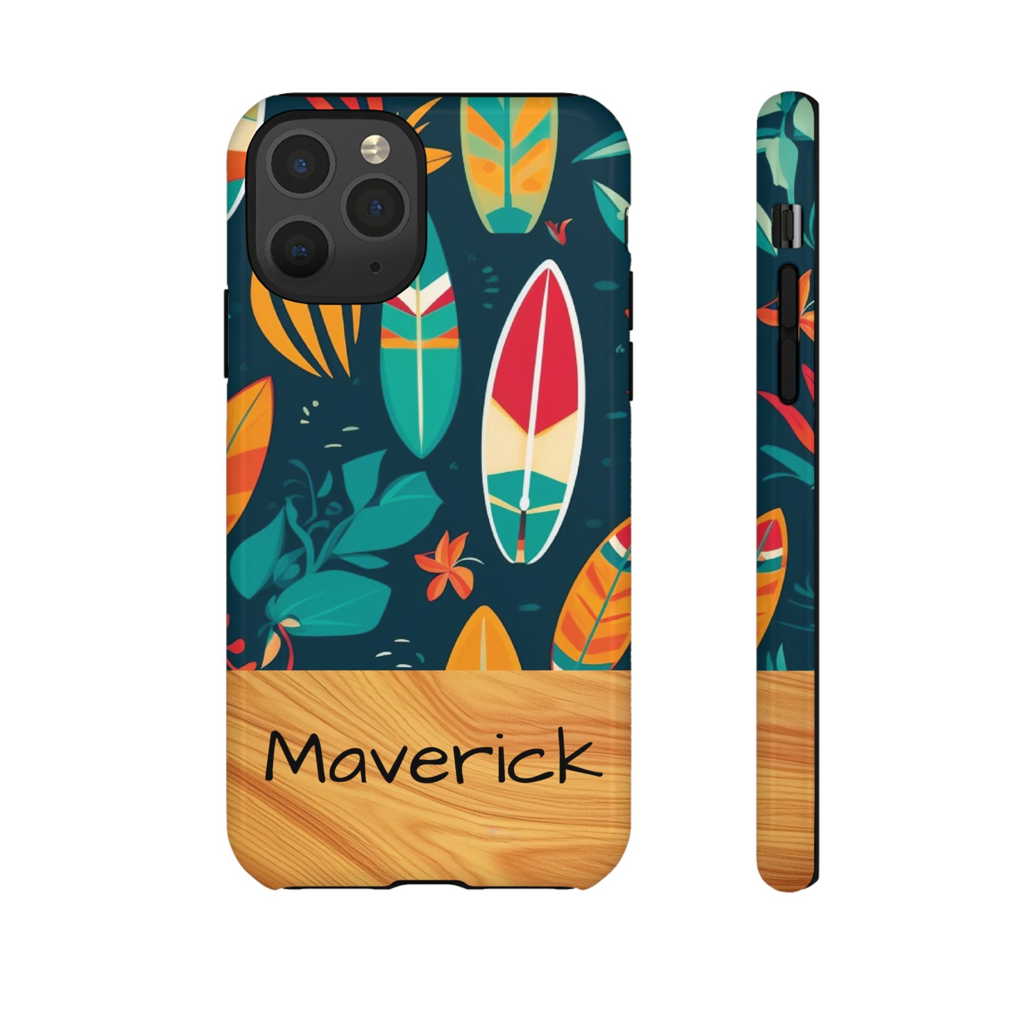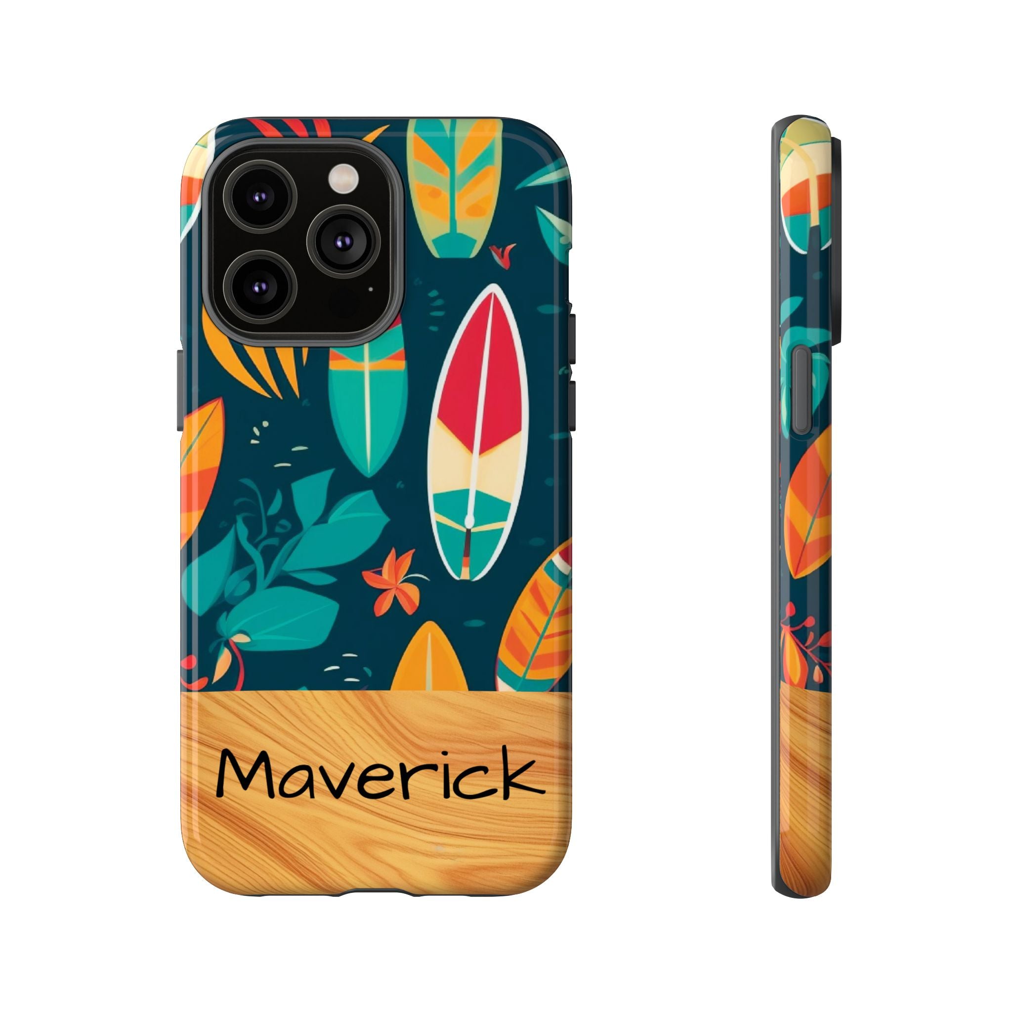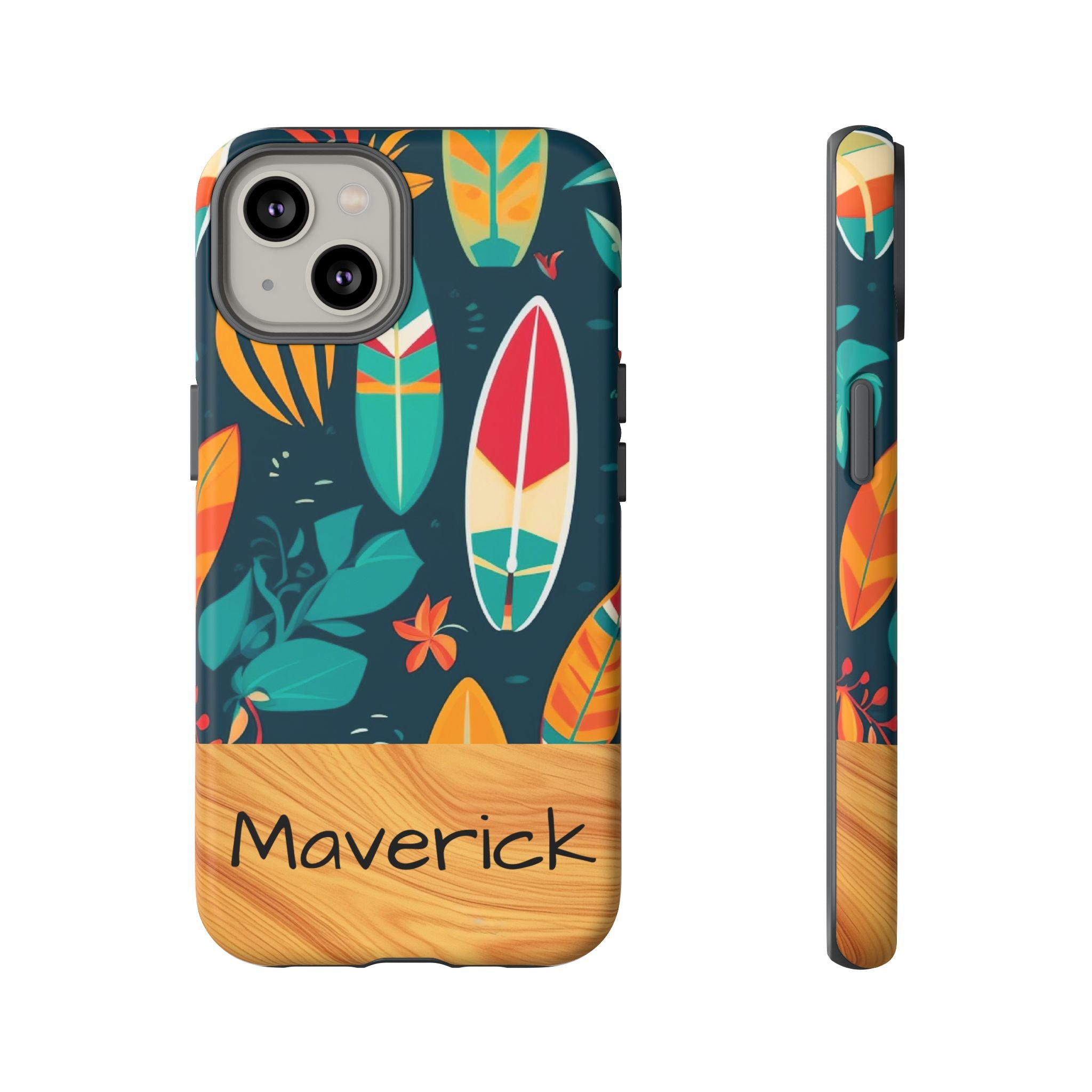 Custom Phone Tough Case Hawaii Surf Boards with Woodgrain Personalize with Name