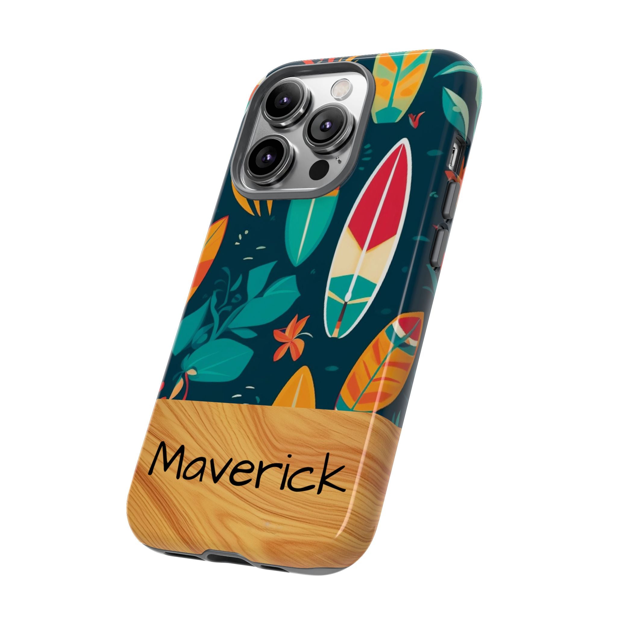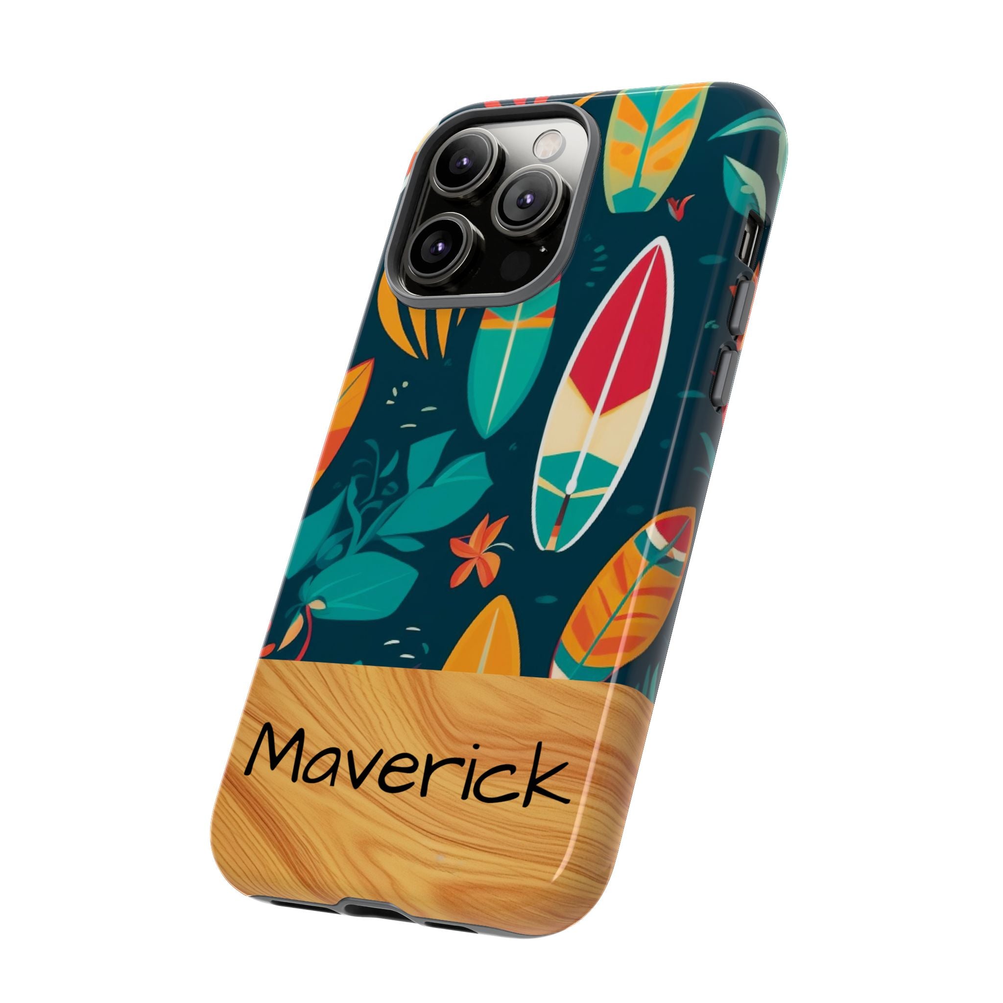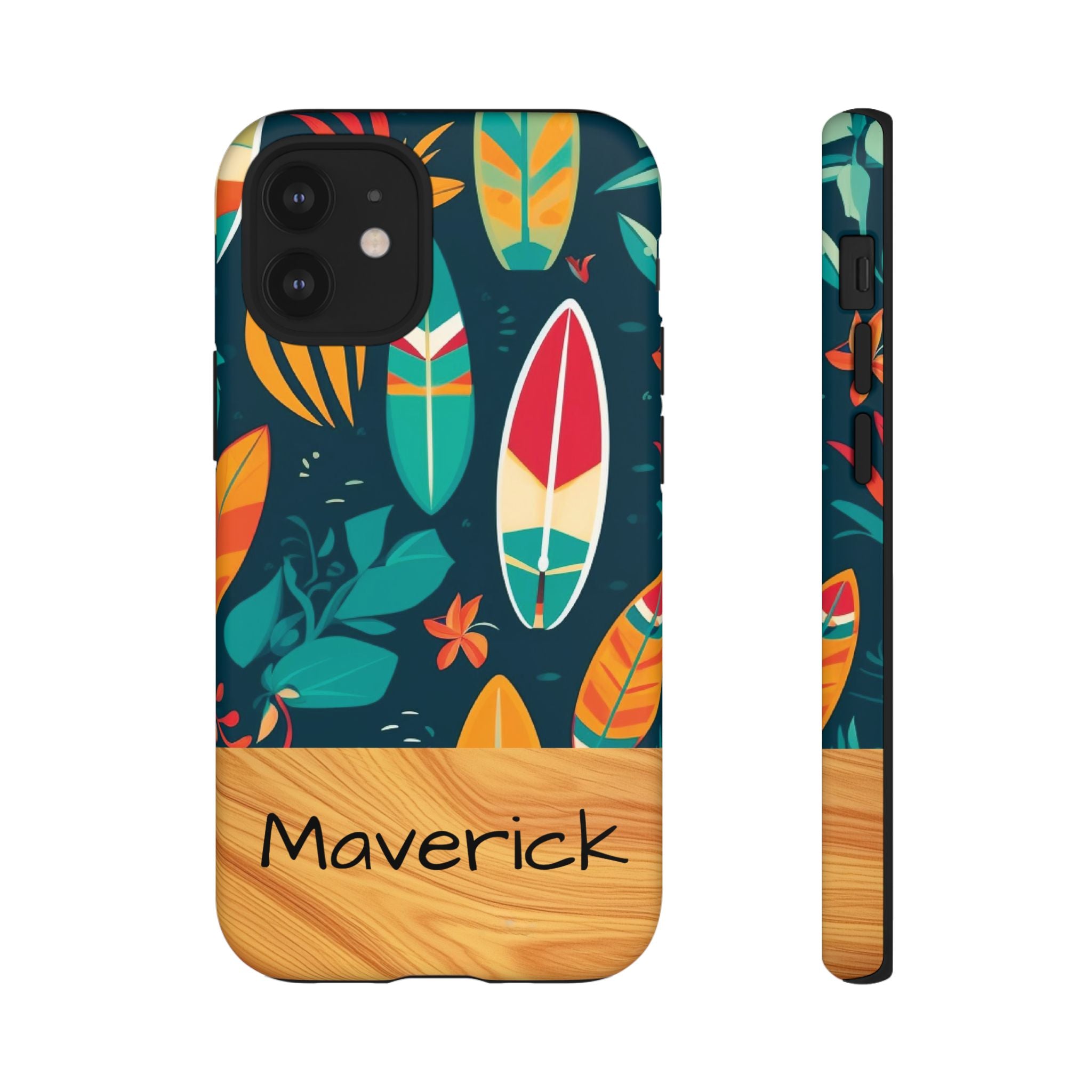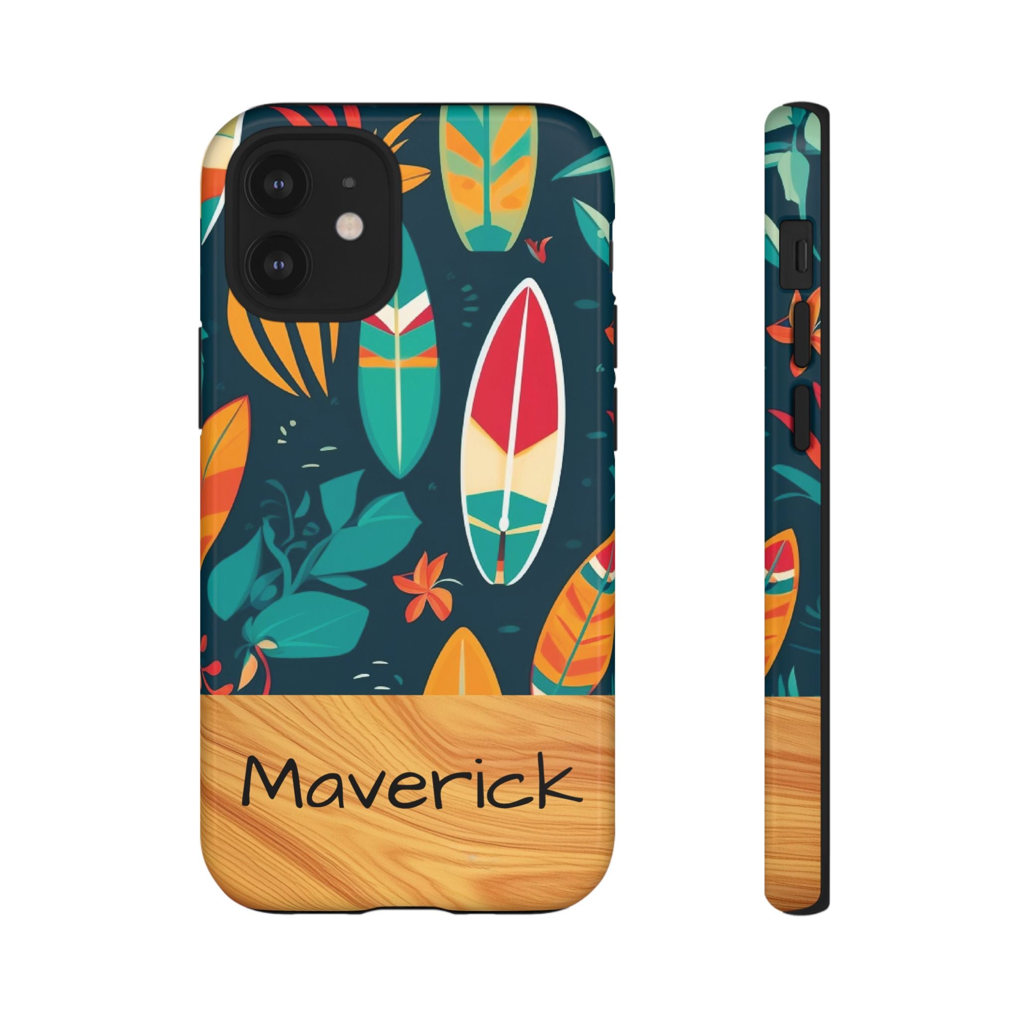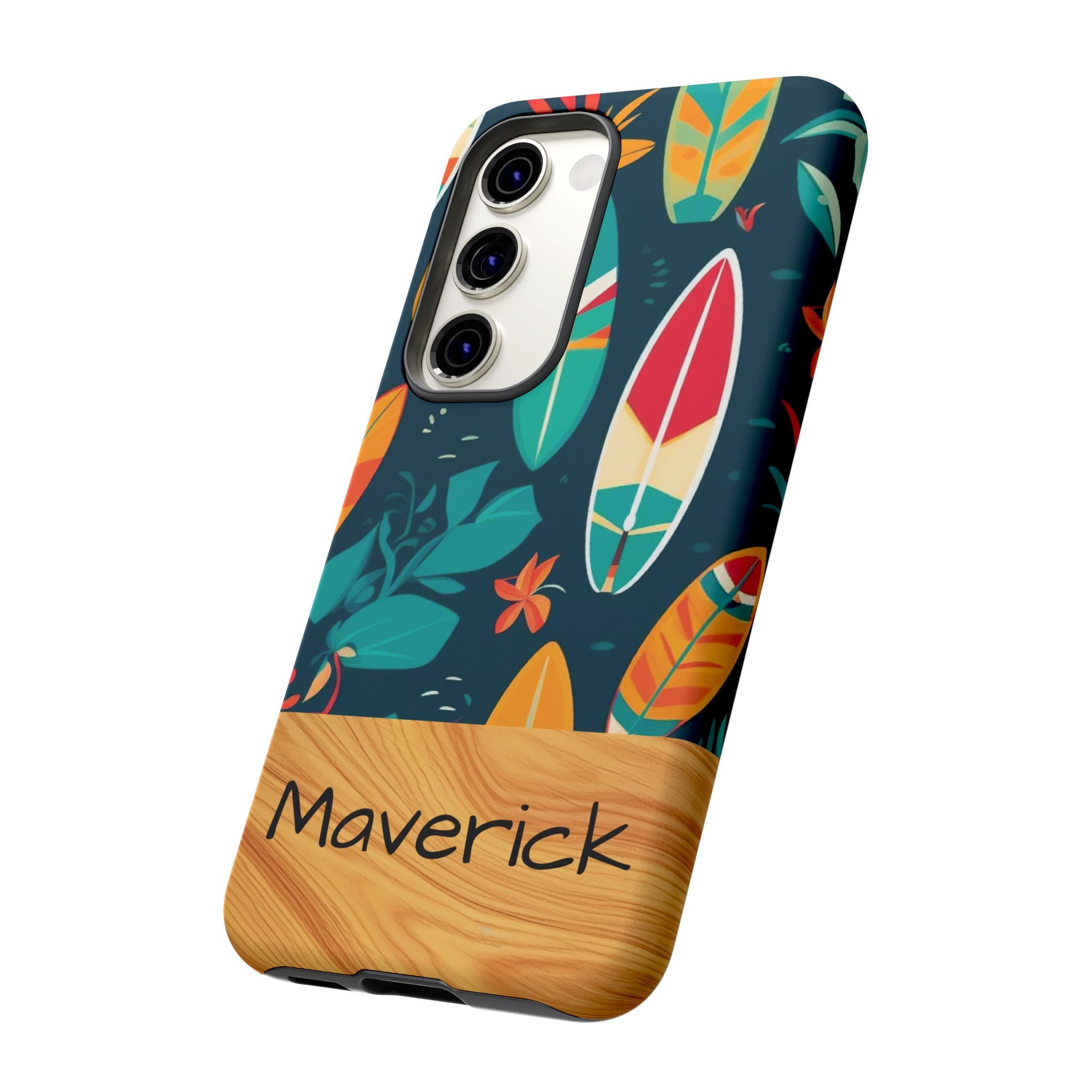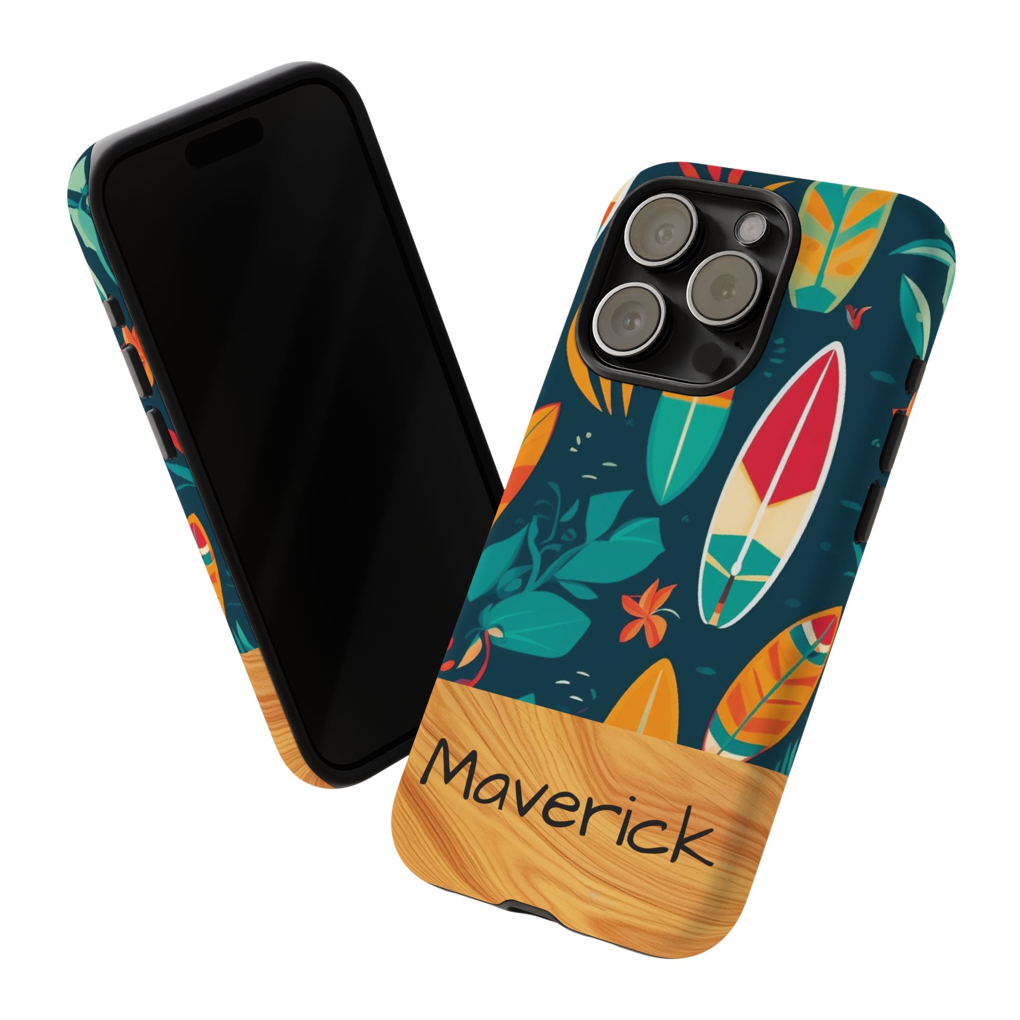 Custom Phone Tough Case Hawaii Surf Boards with Woodgrain Personalize with Name