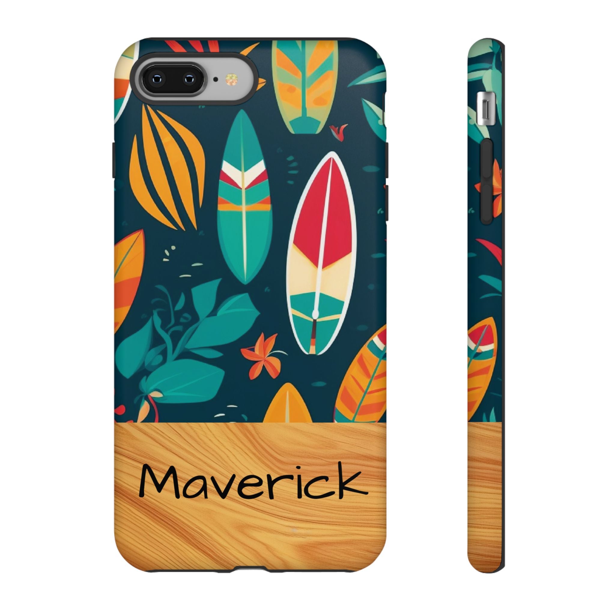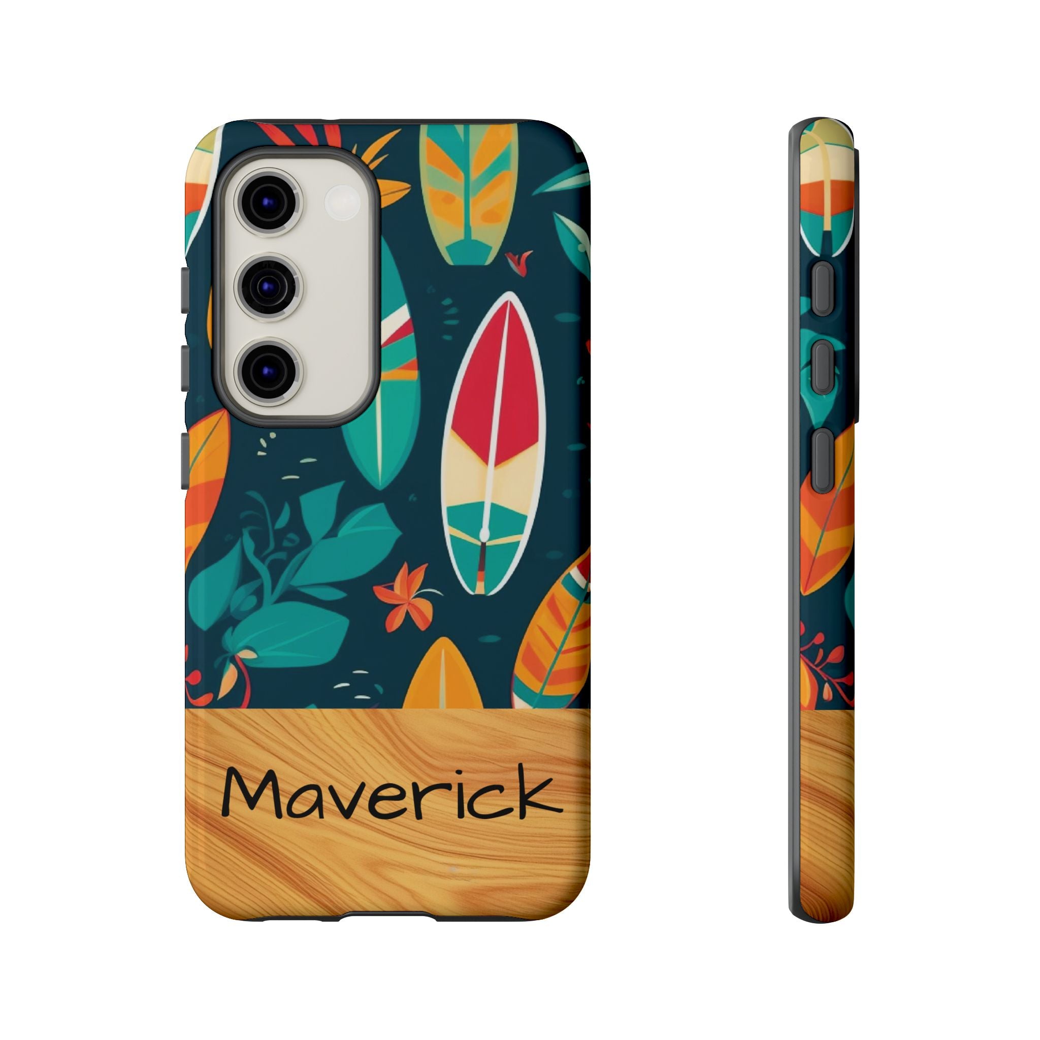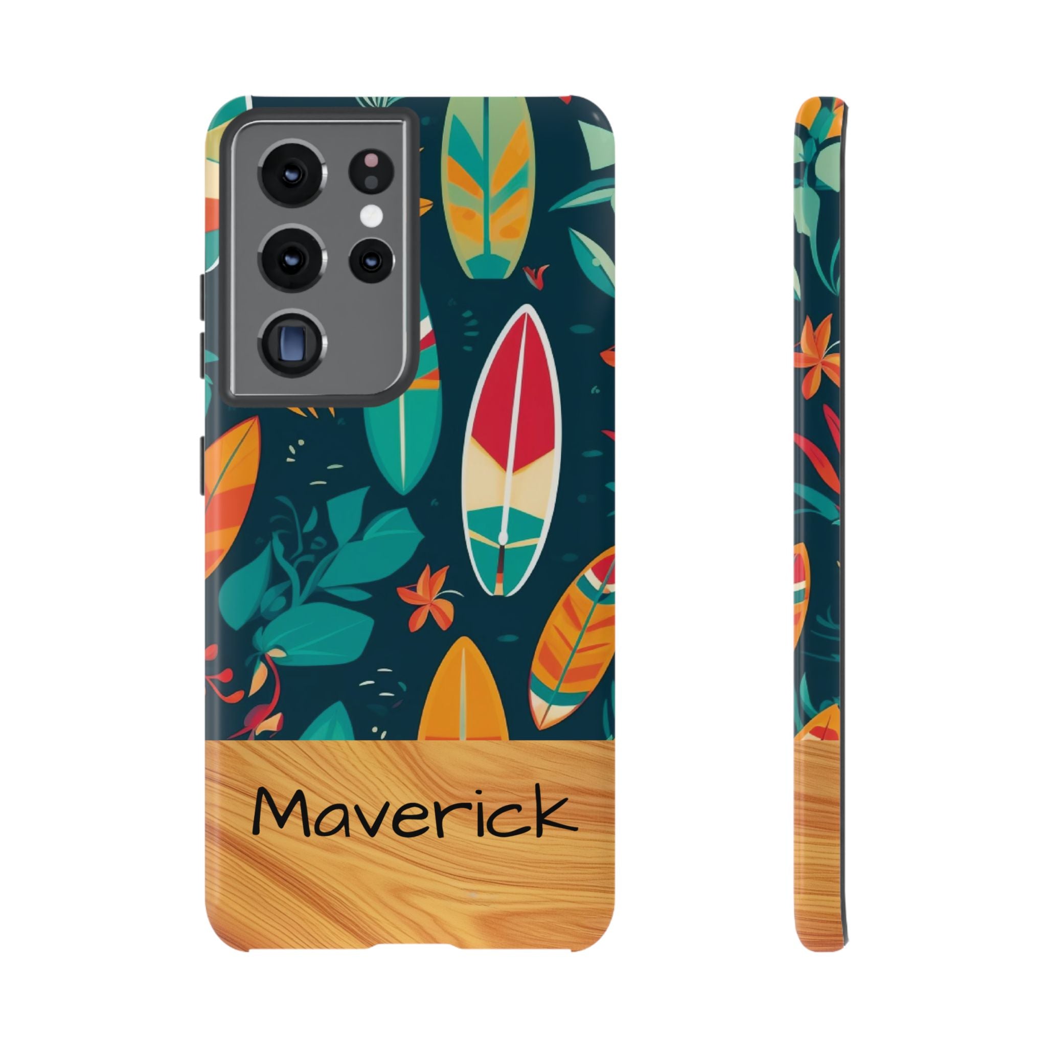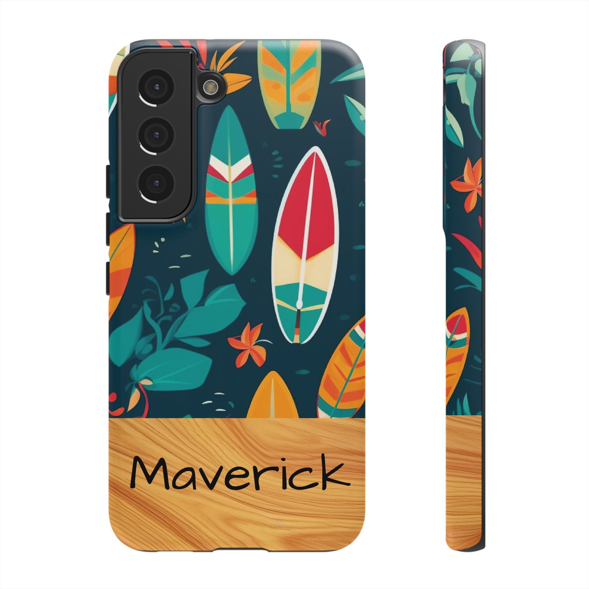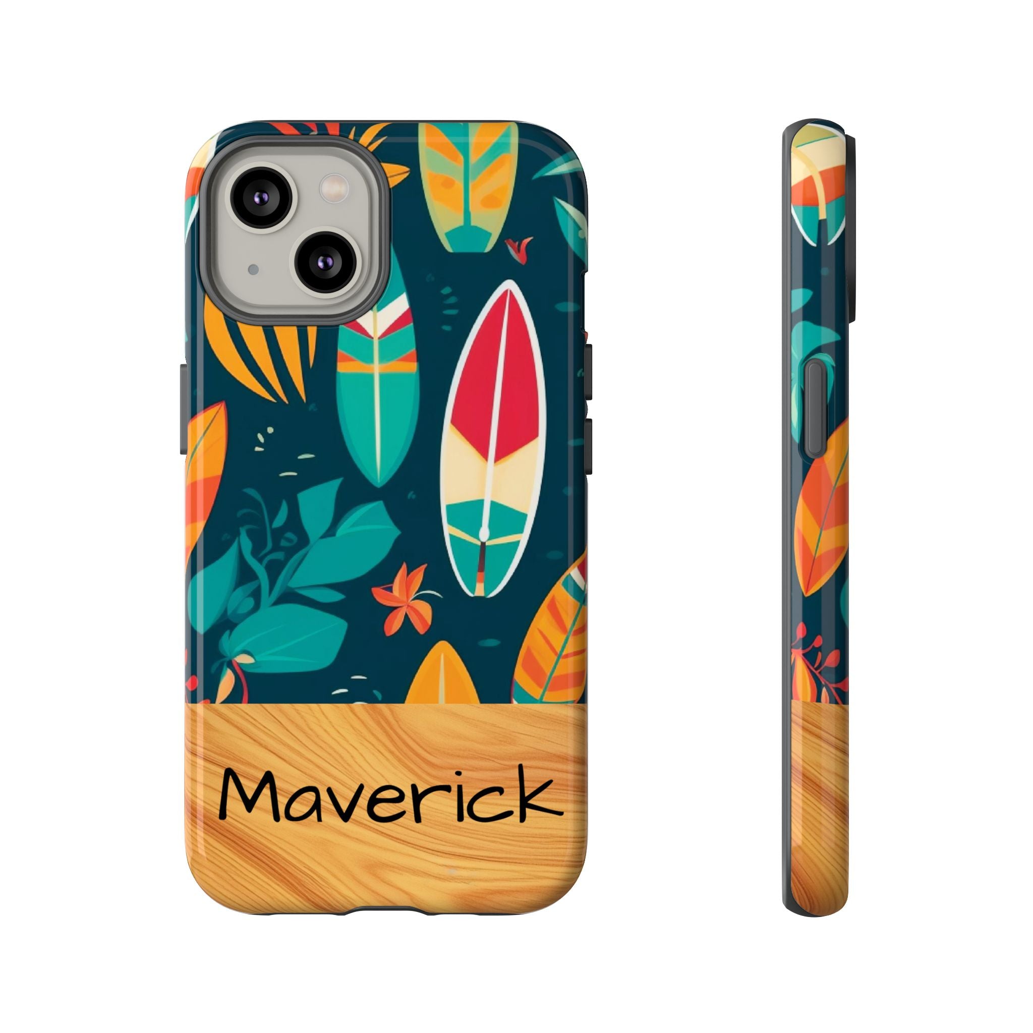 Custom Phone Tough Case Hawaii Surf Boards with Woodgrain Personalize with Name