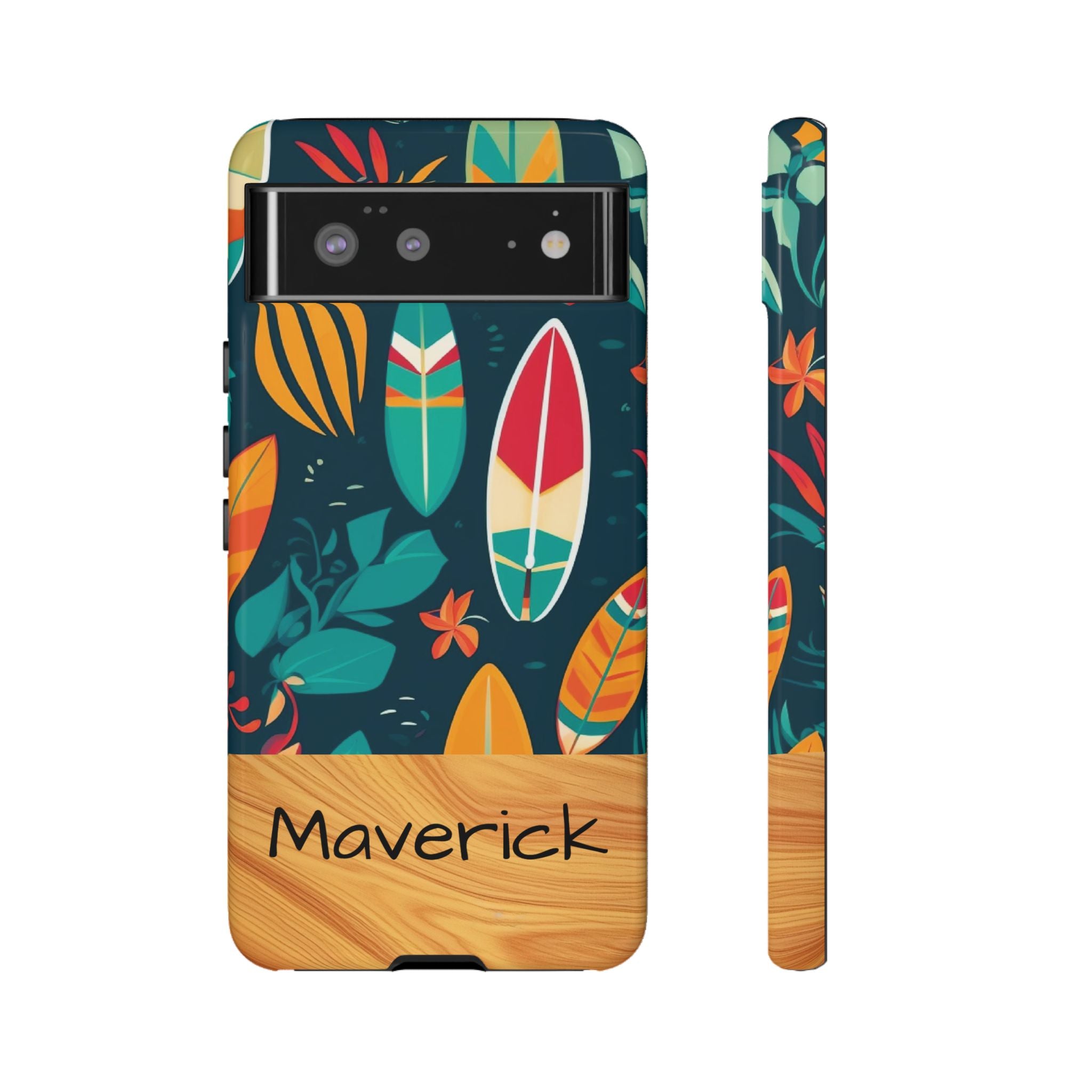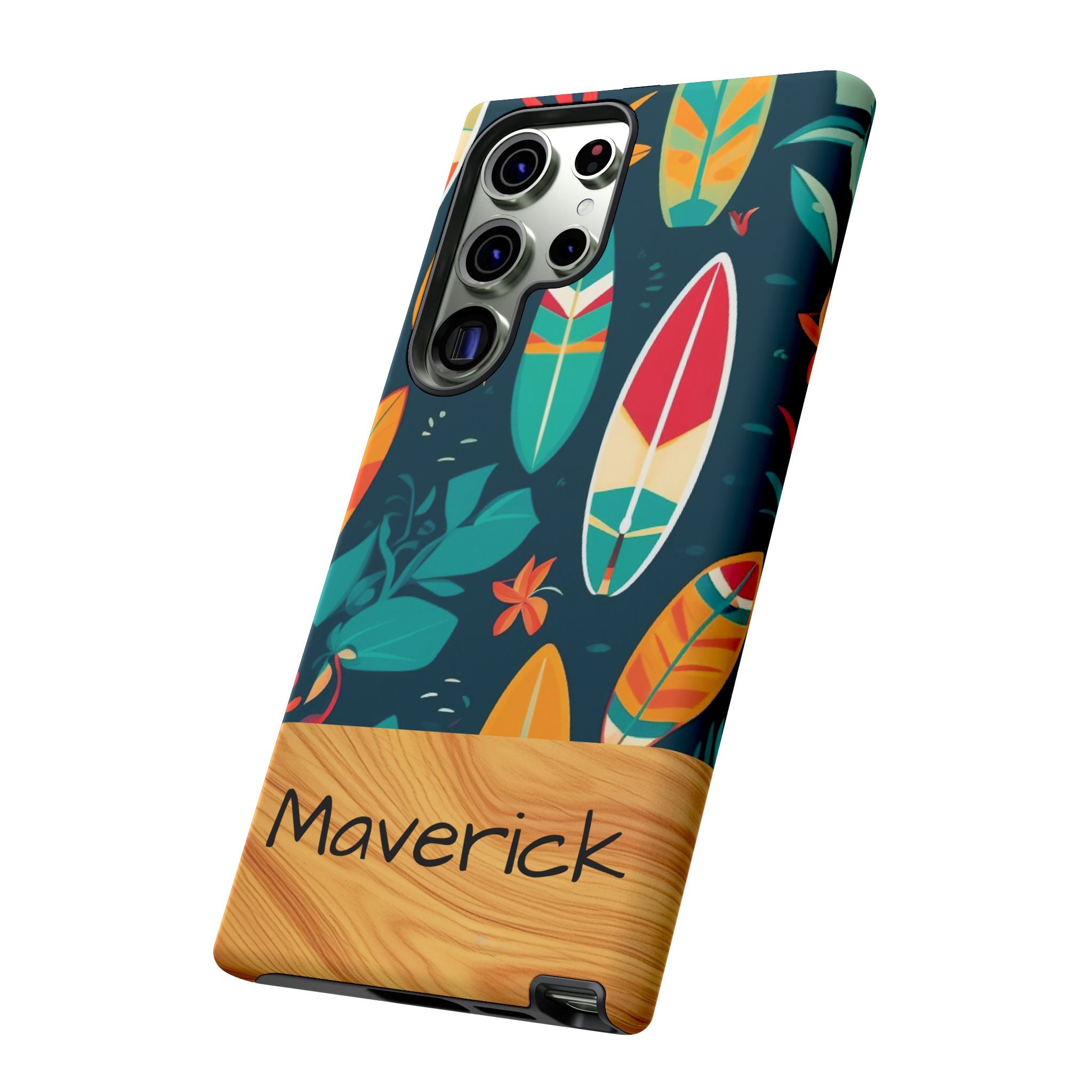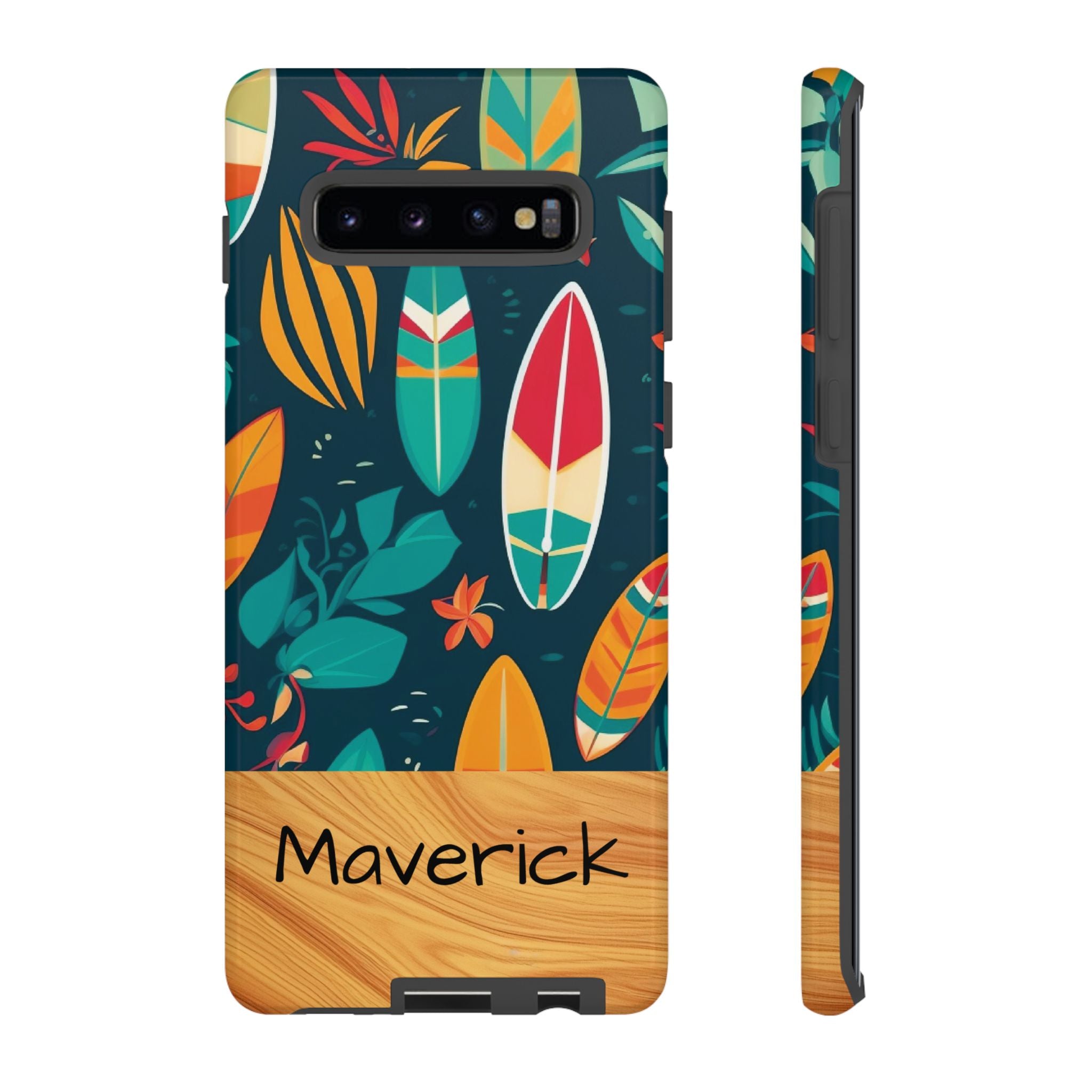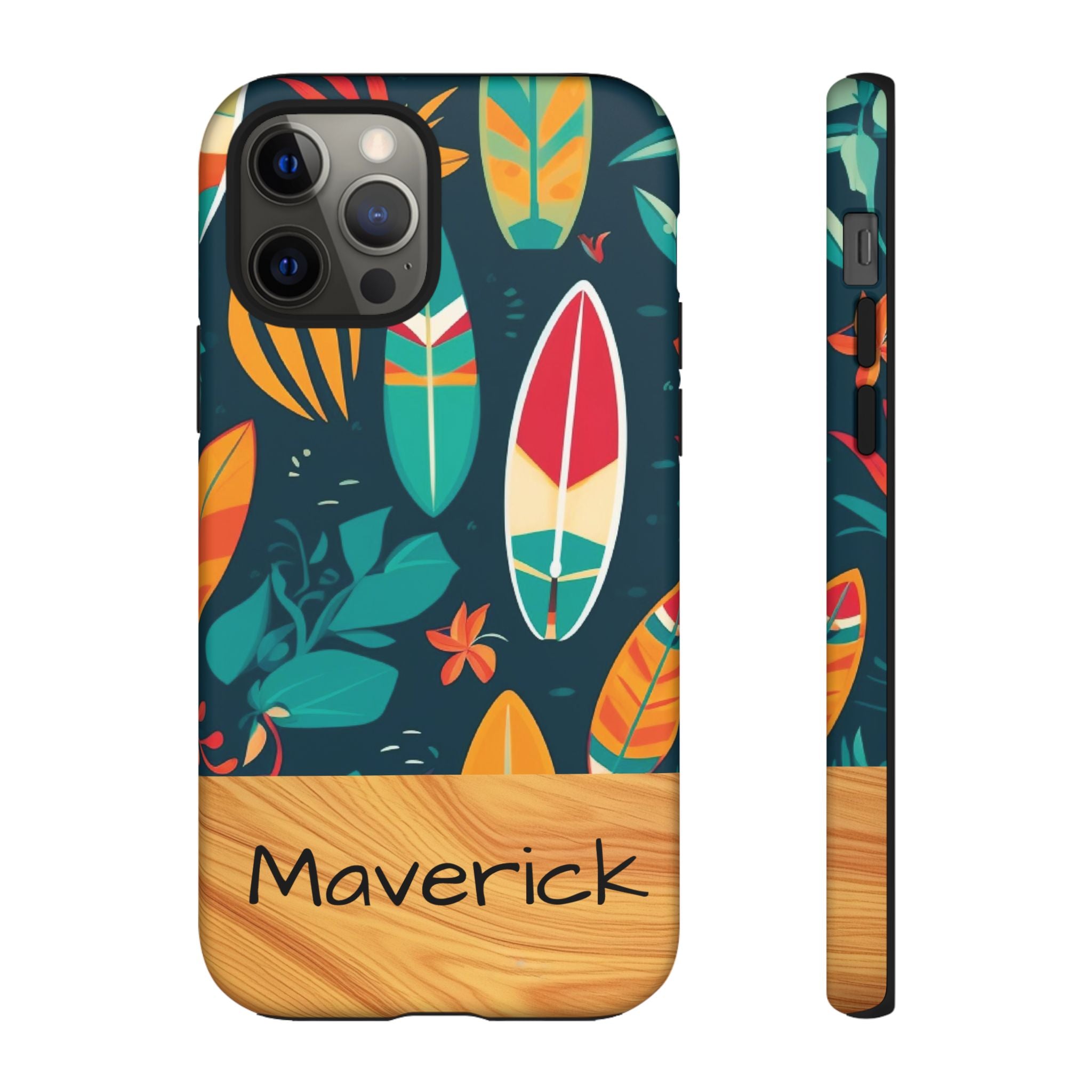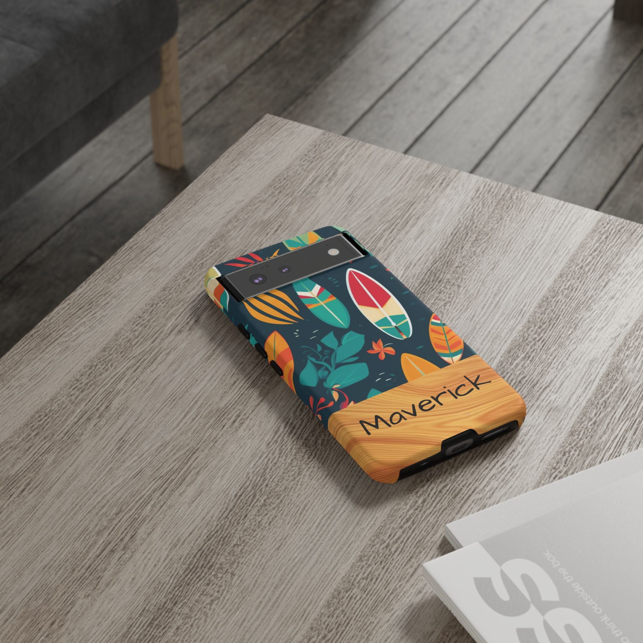 Custom Phone Tough Case Hawaii Surf Boards with Woodgrain Personalize with Name
