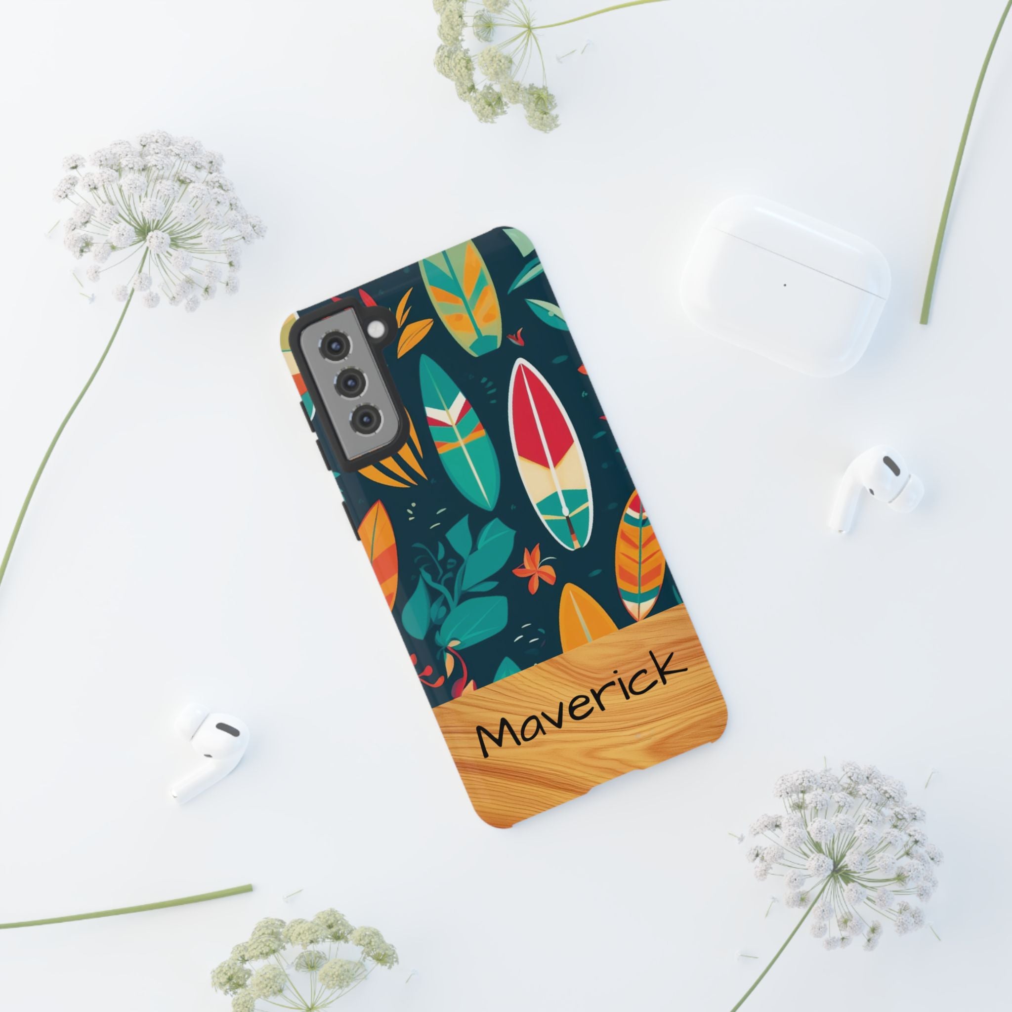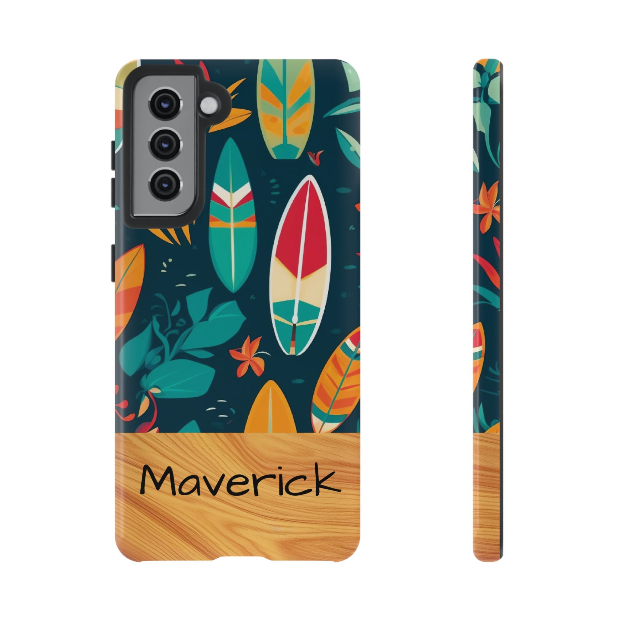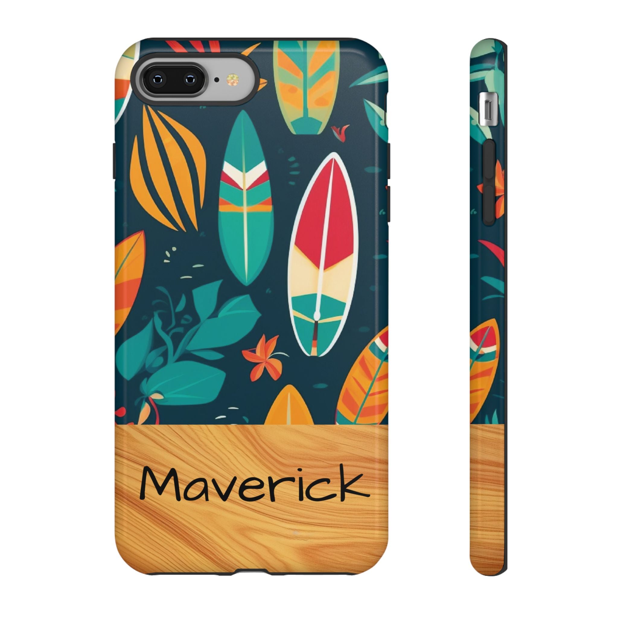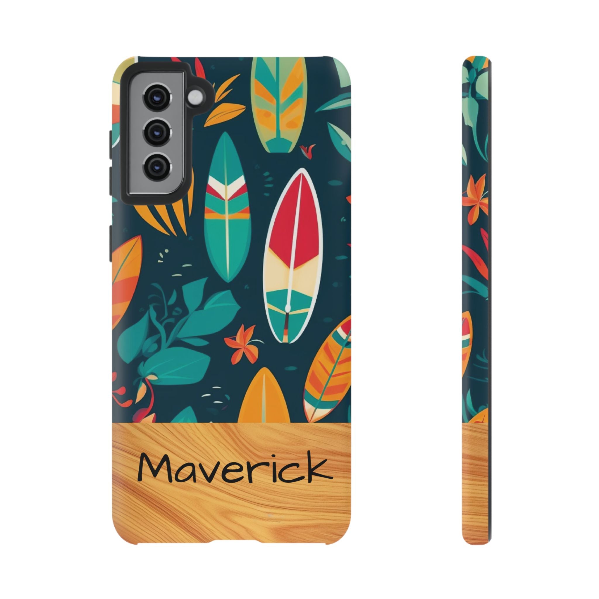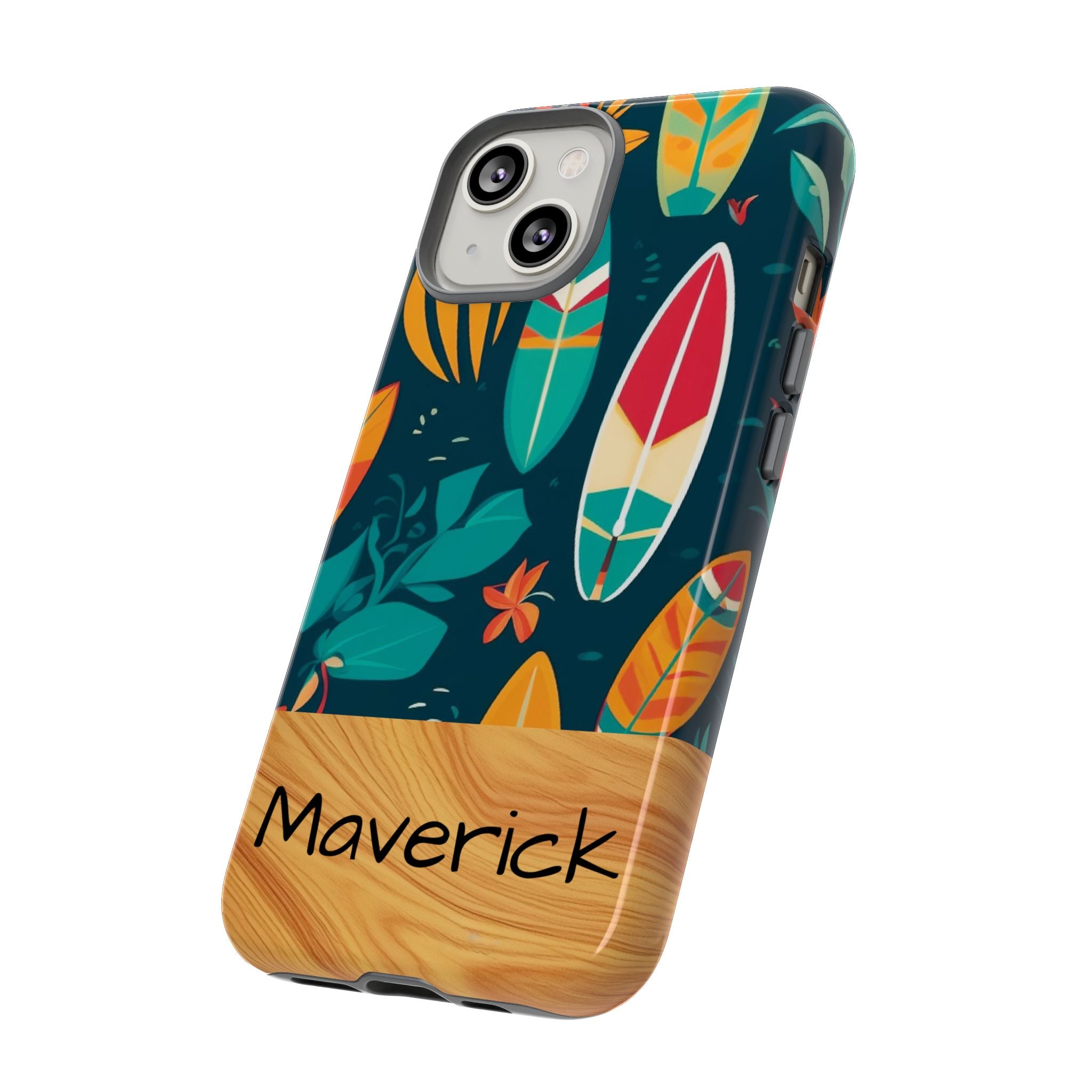 Custom Phone Tough Case Hawaii Surf Boards with Woodgrain Personalize with Name