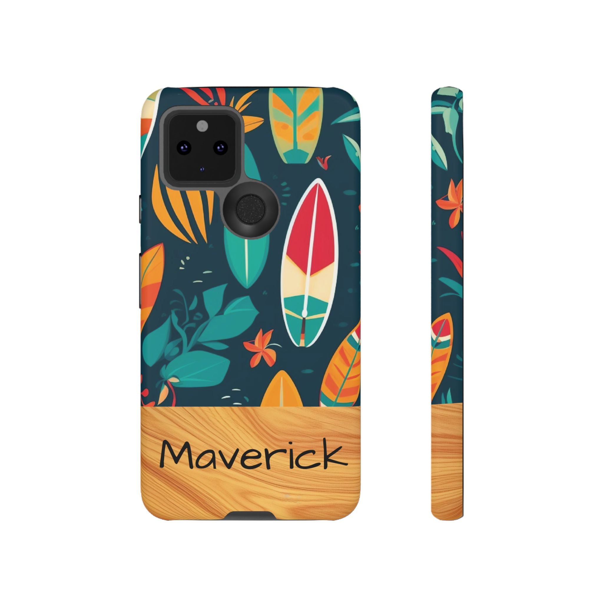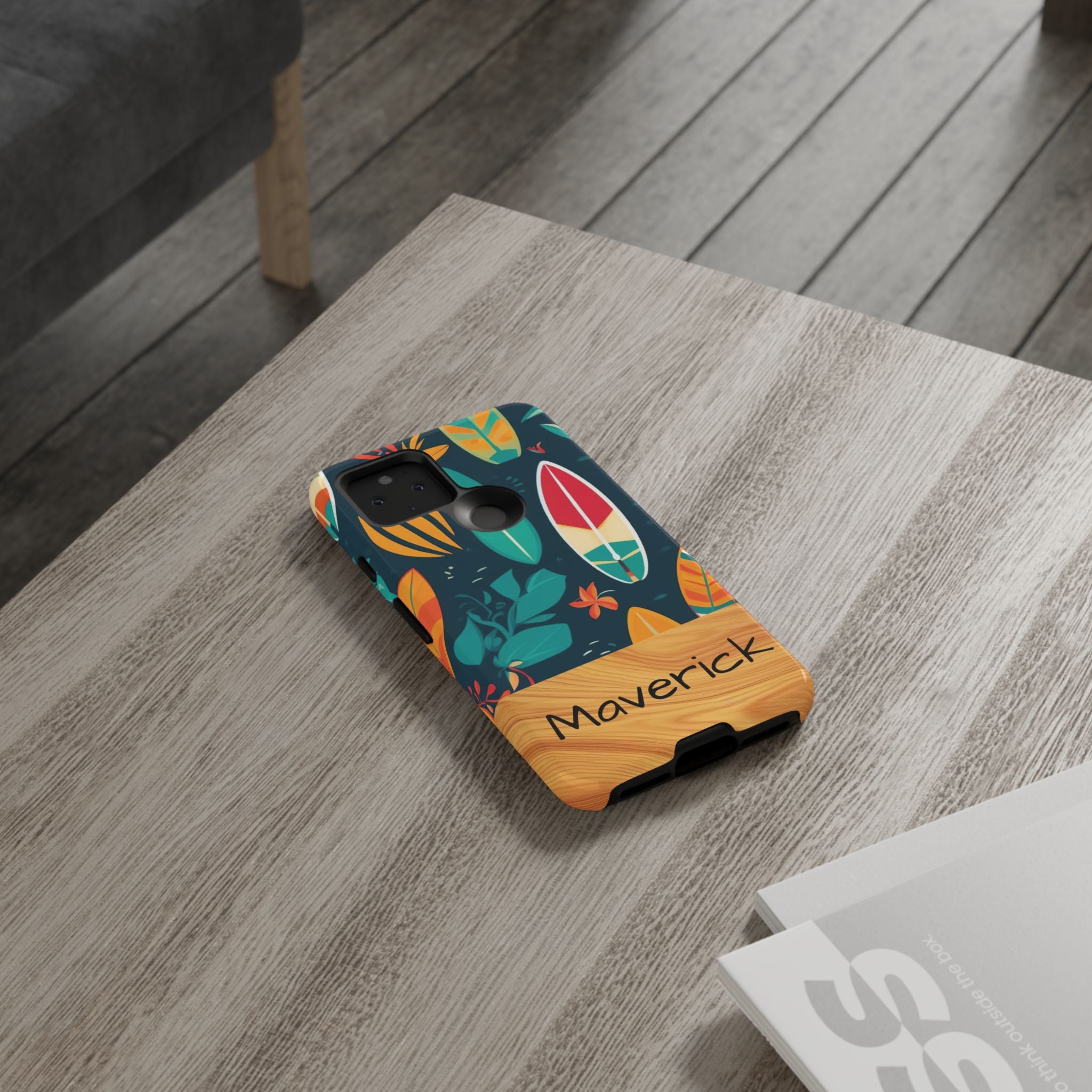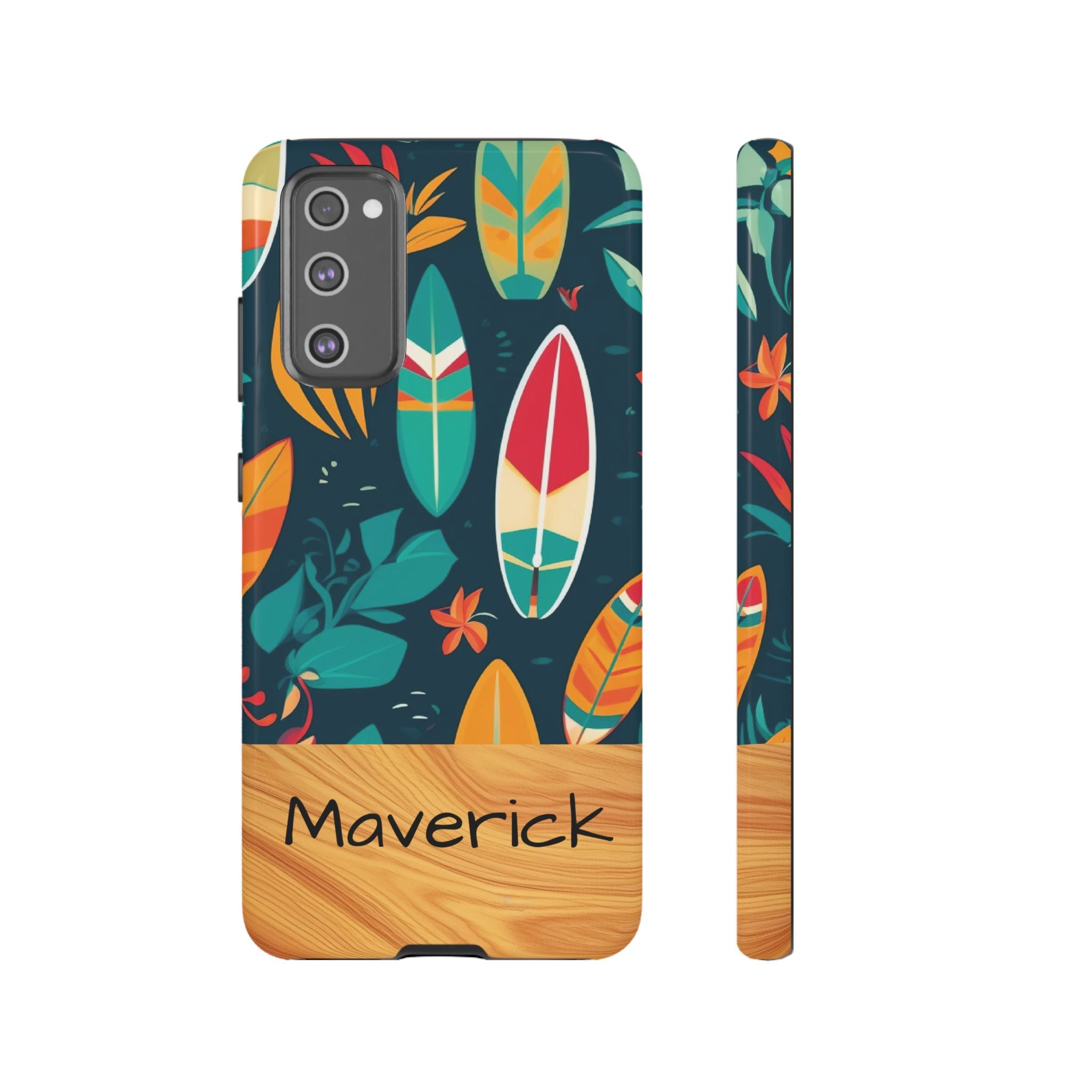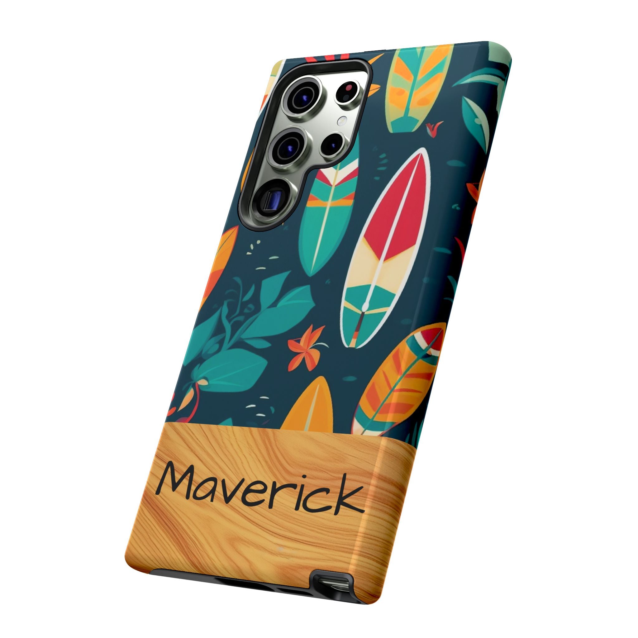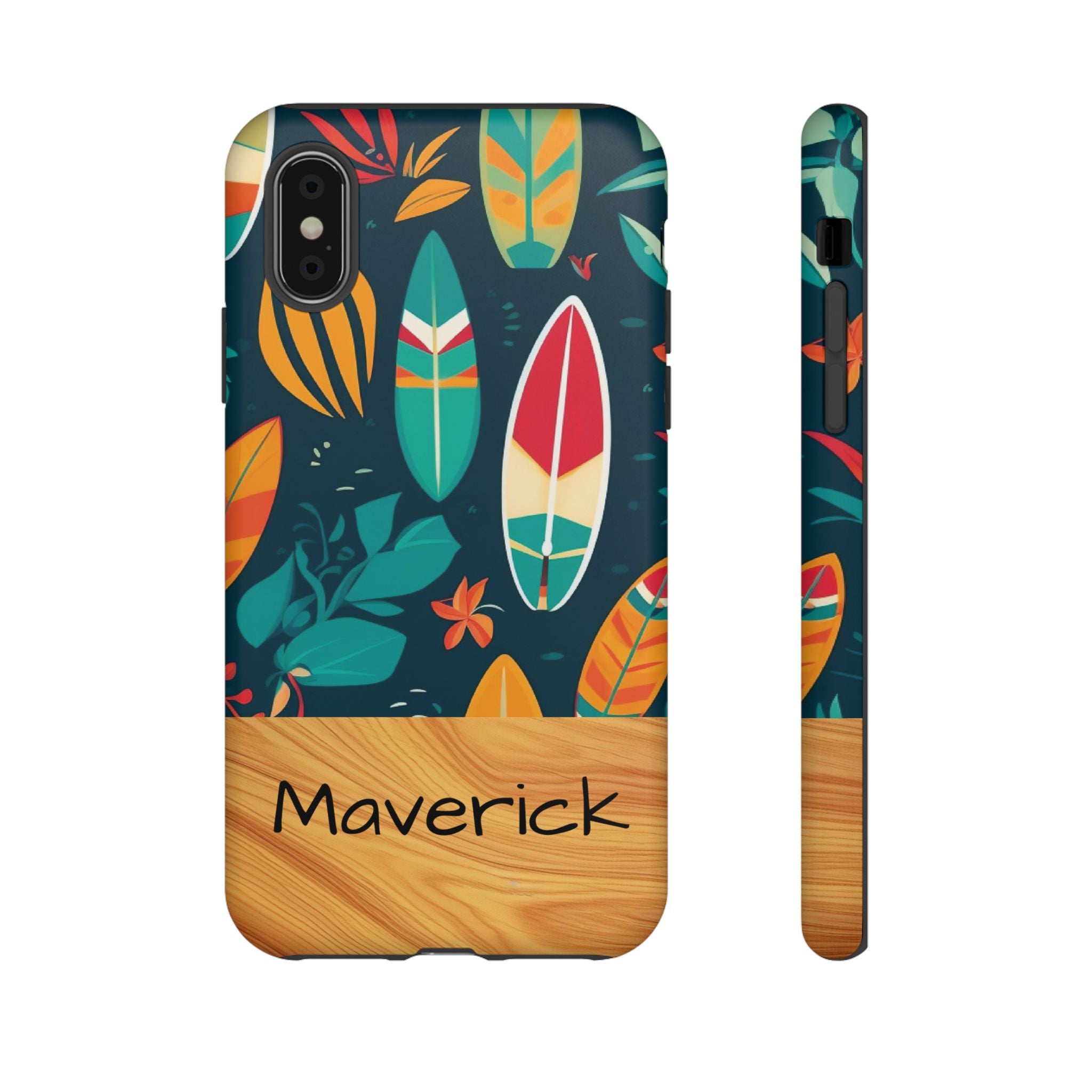 Custom Phone Tough Case Hawaii Surf Boards with Woodgrain Personalize with Name