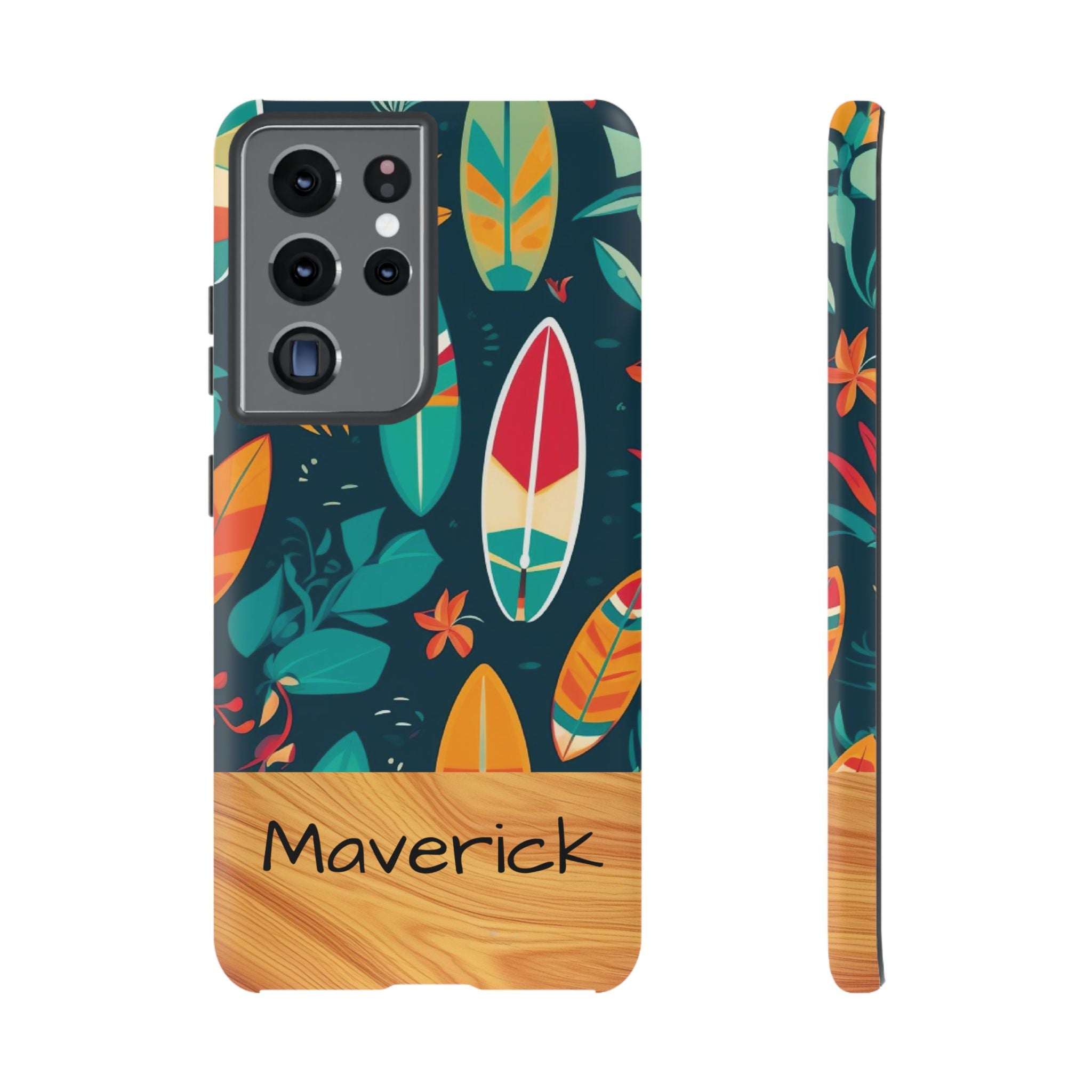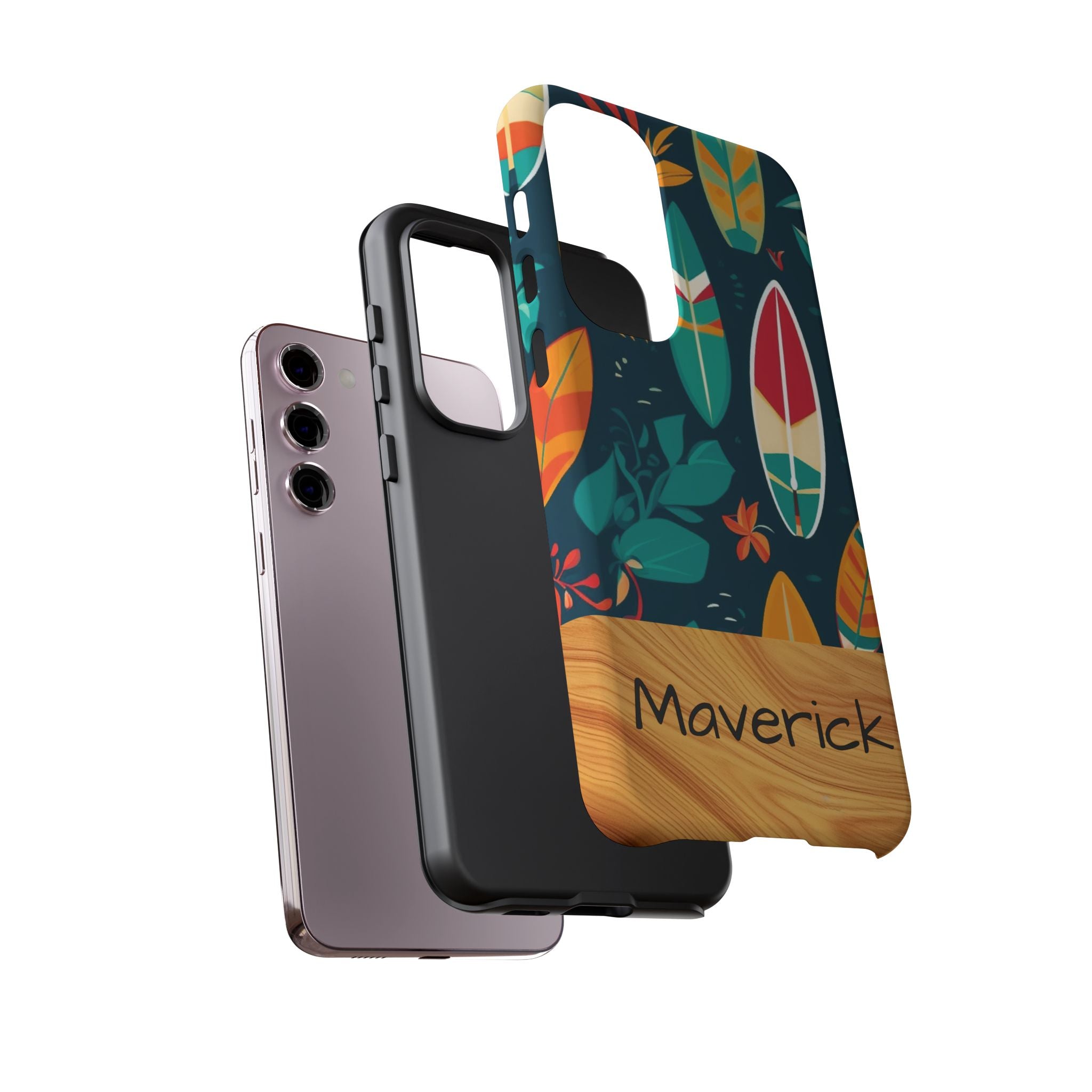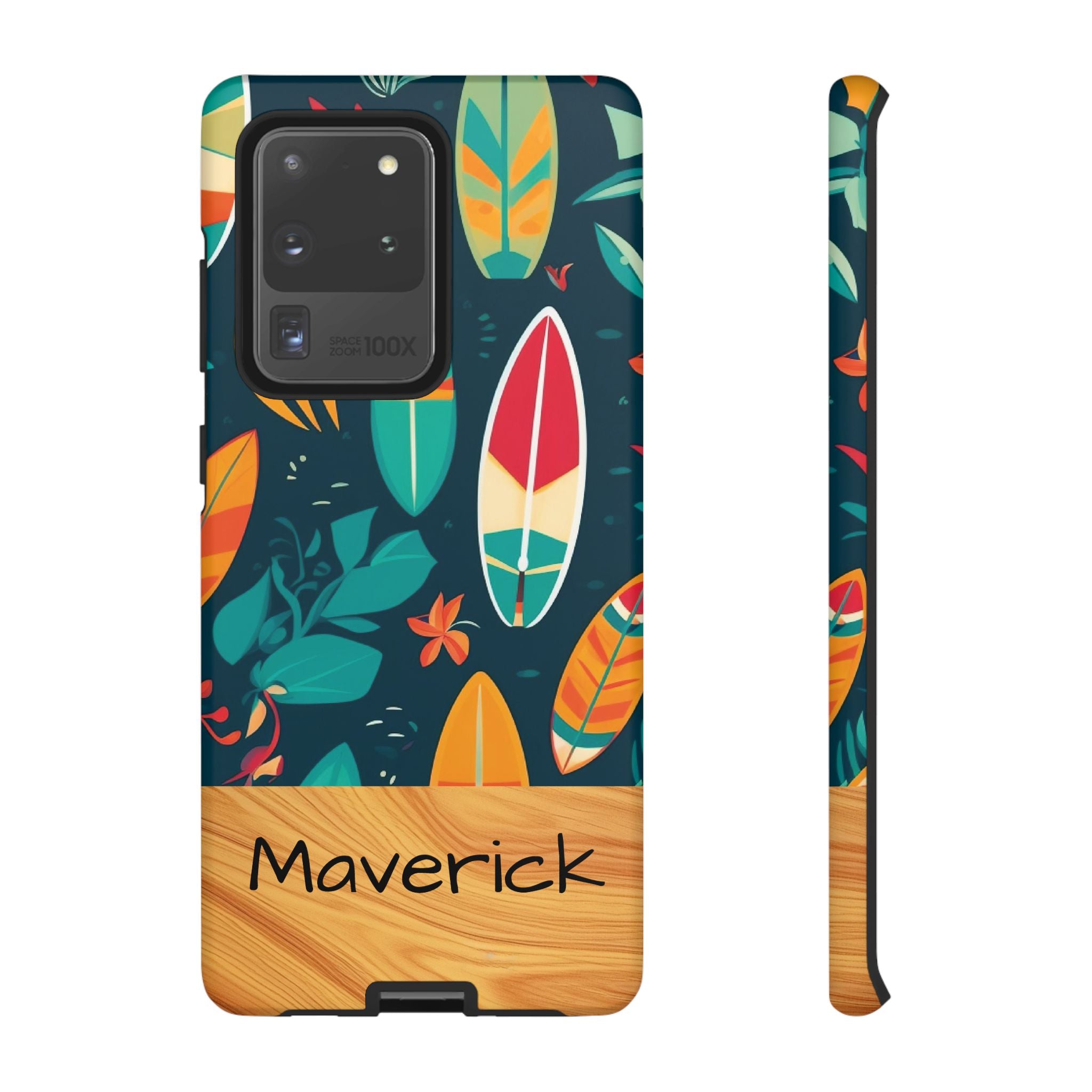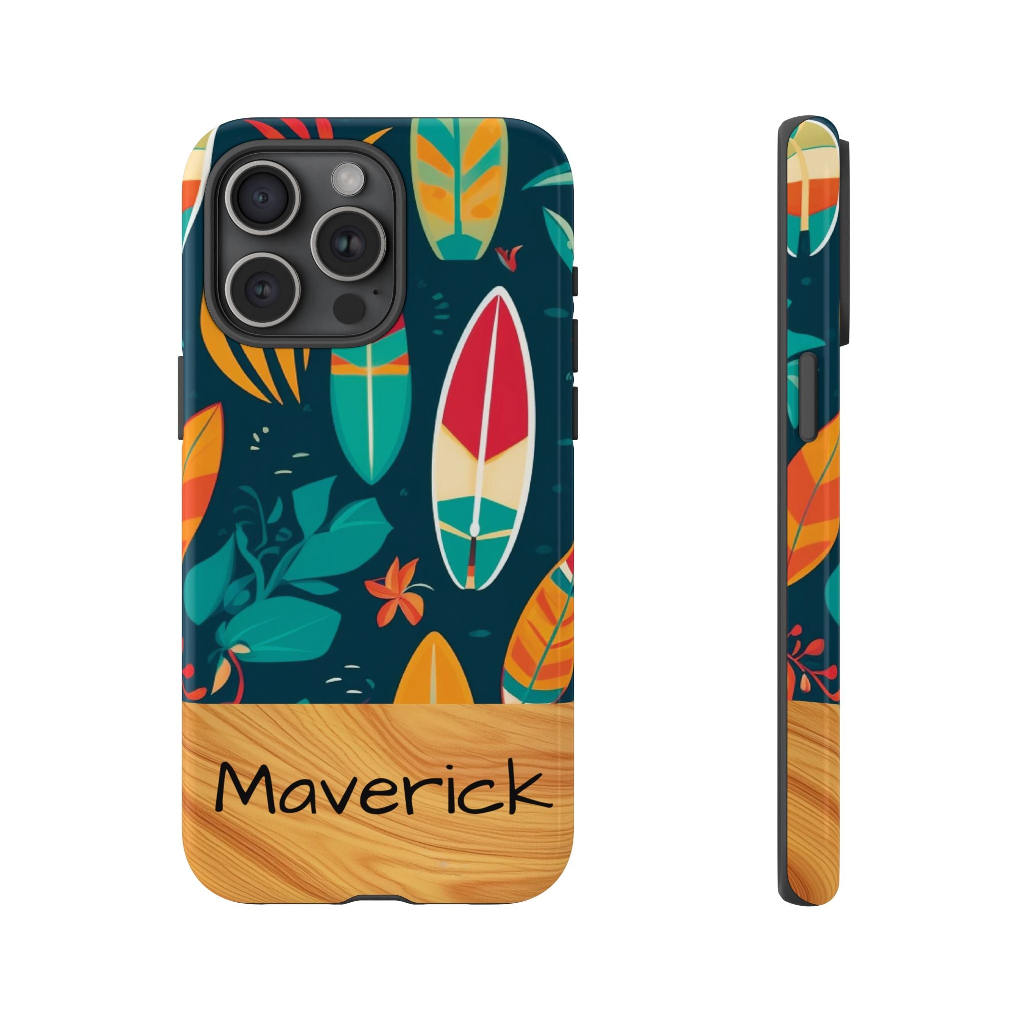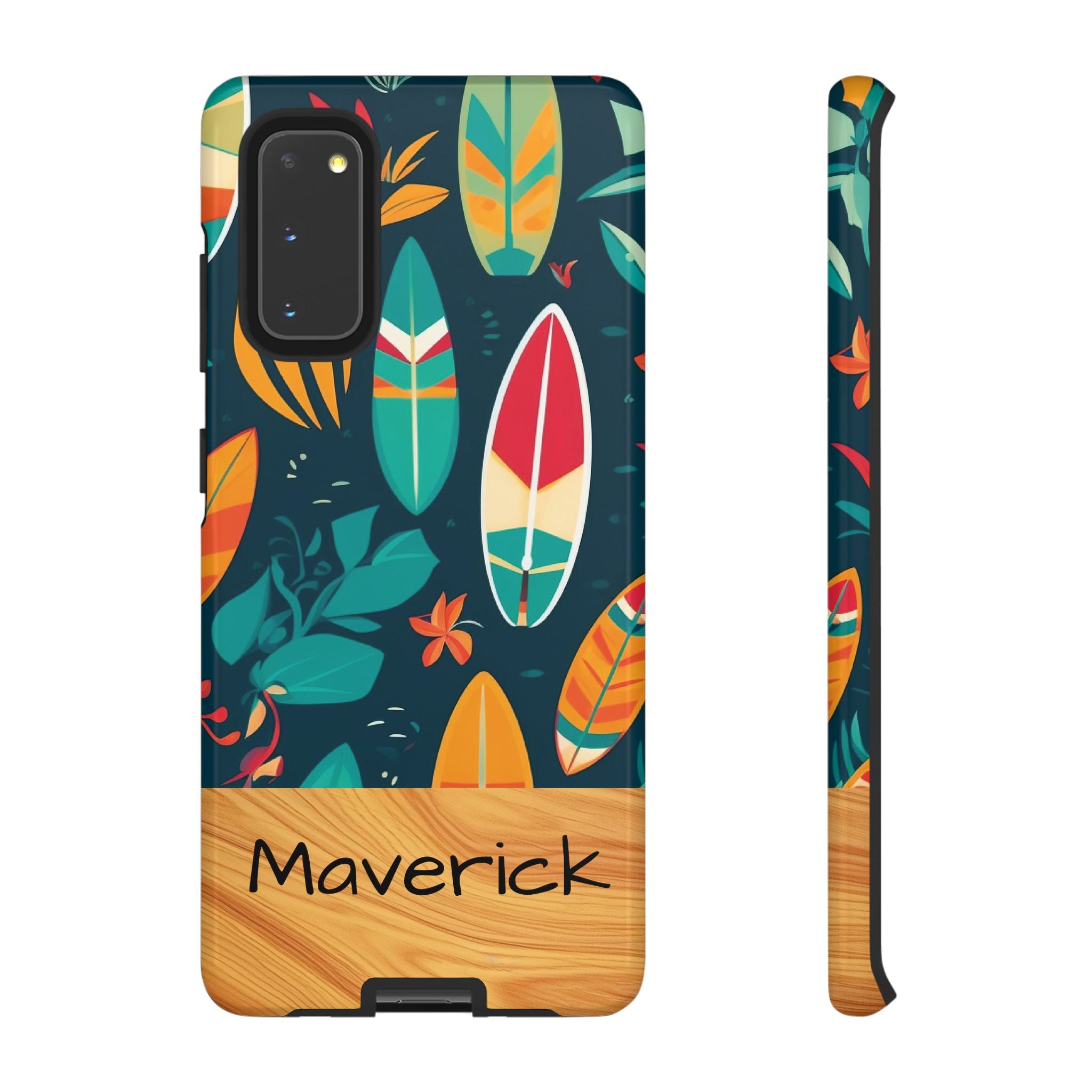 Custom Phone Tough Case Hawaii Surf Boards with Woodgrain Personalize with Name