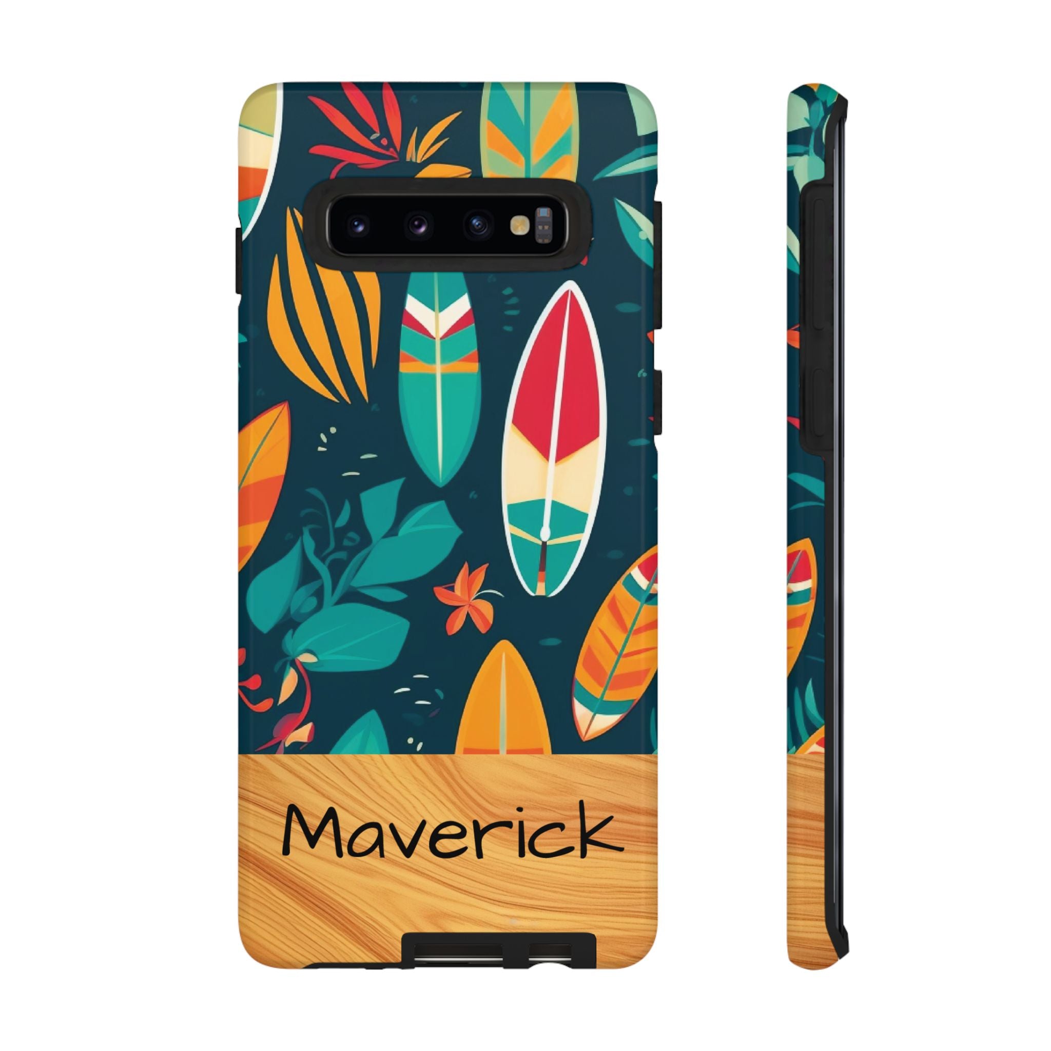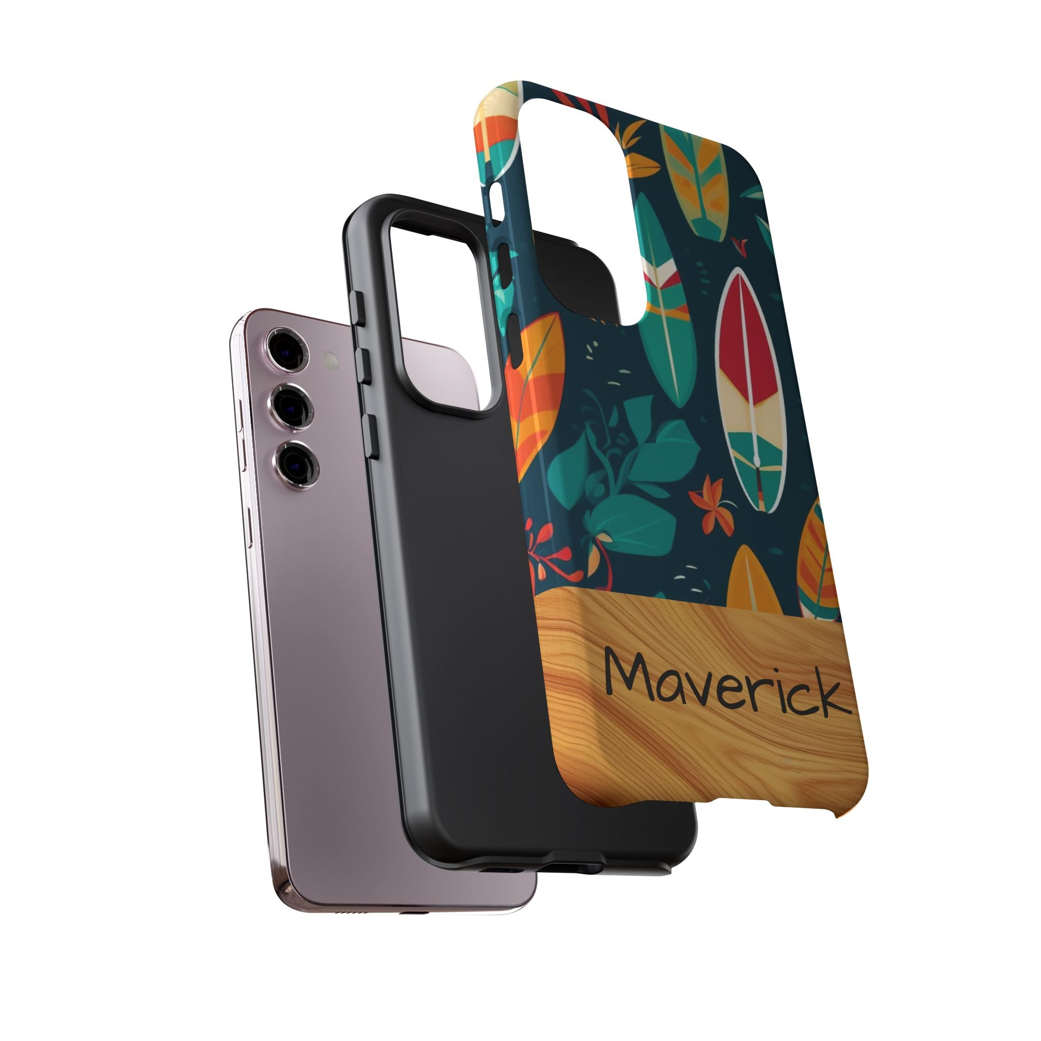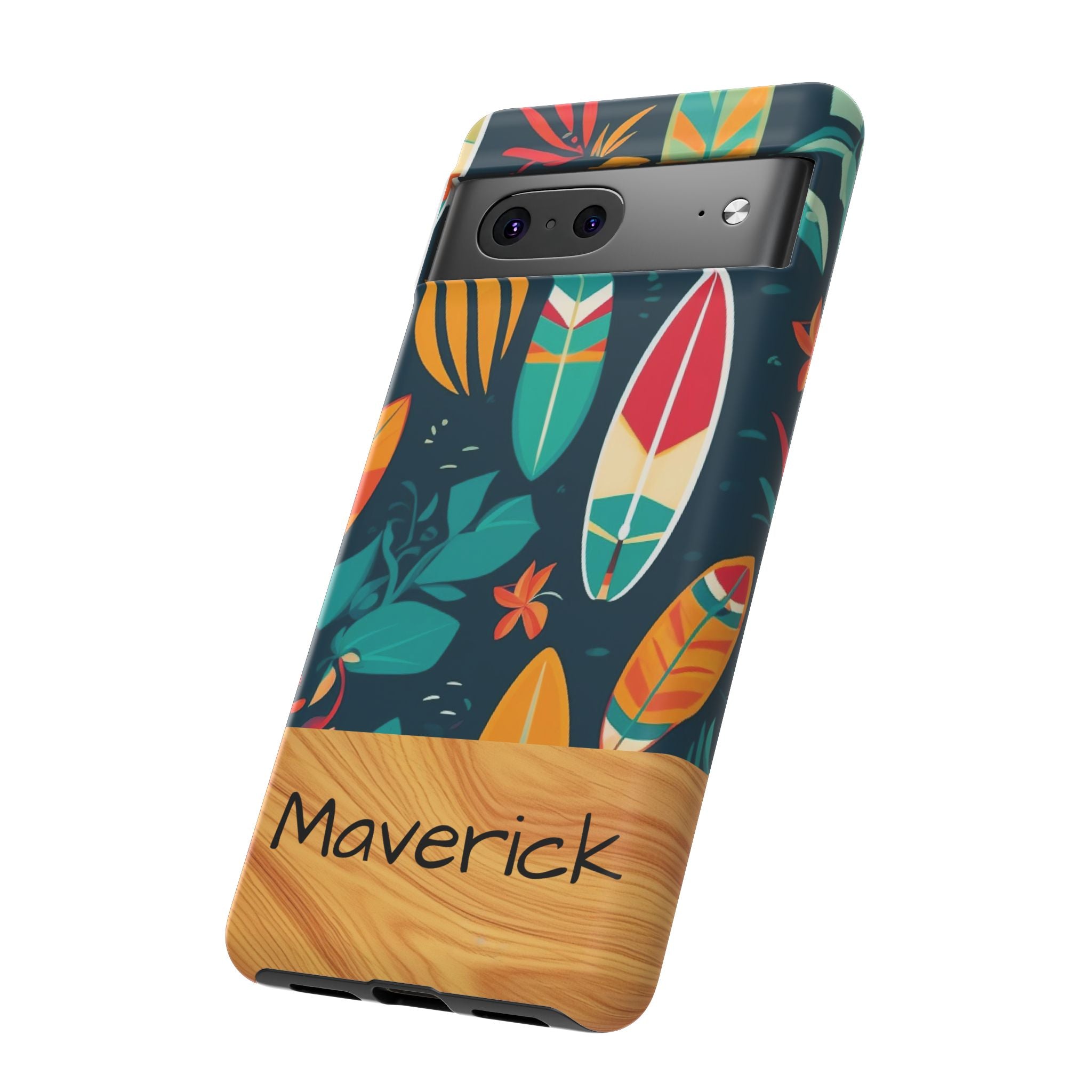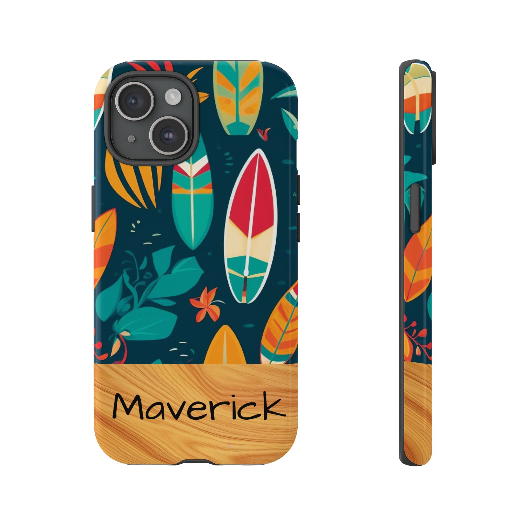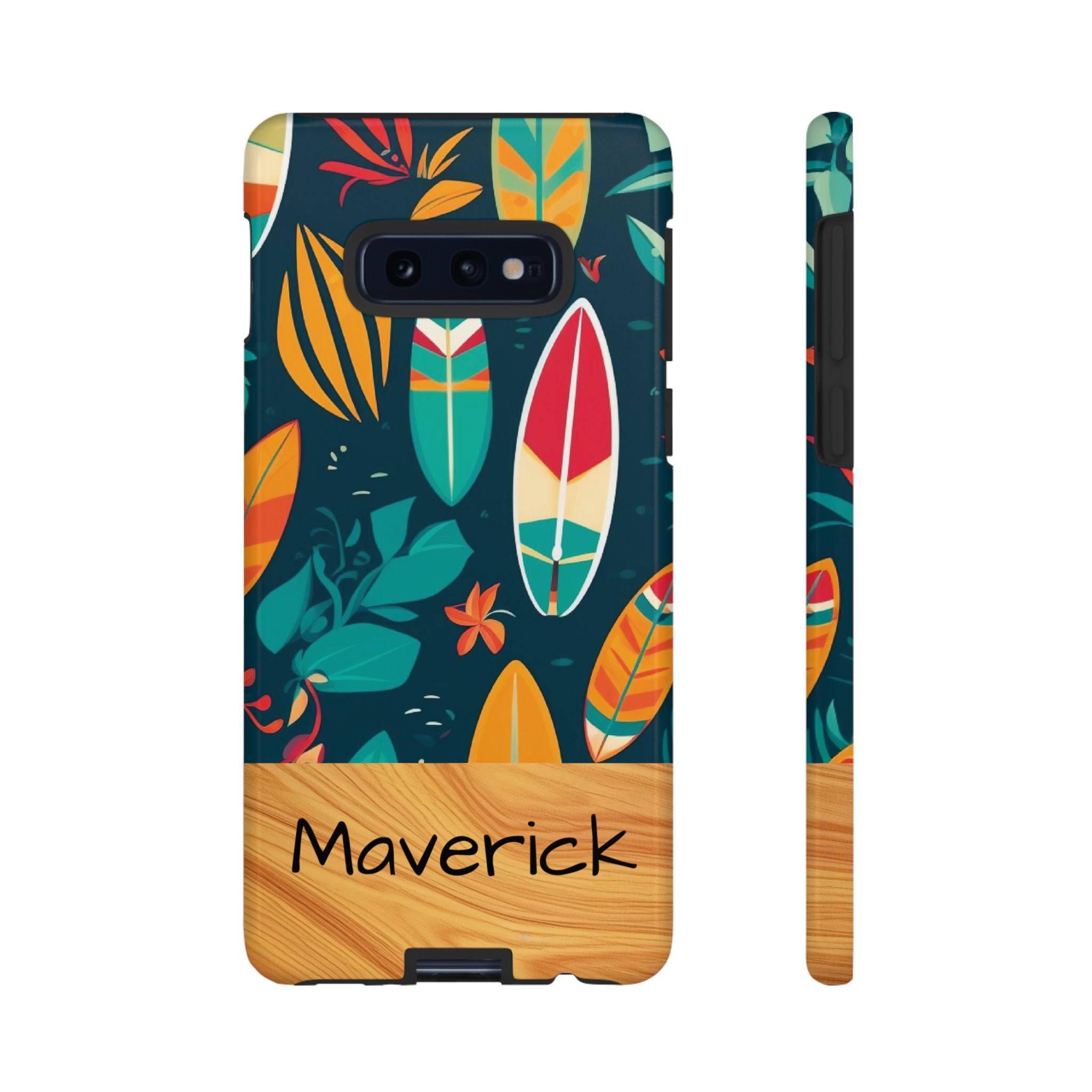 Custom Phone Tough Case Hawaii Surf Boards with Woodgrain Personalize with Name